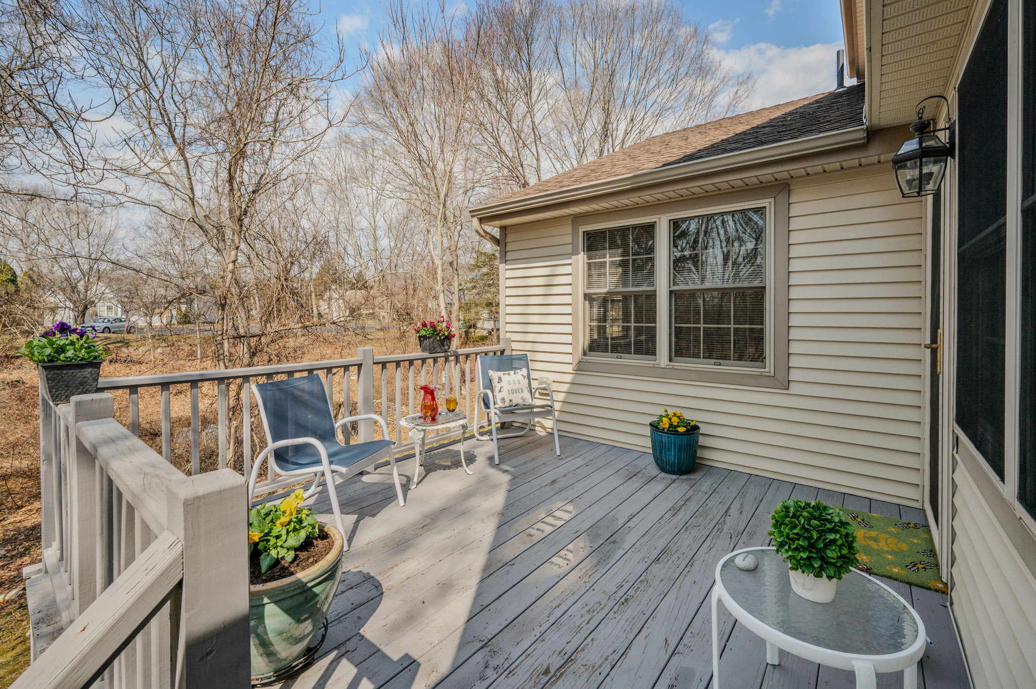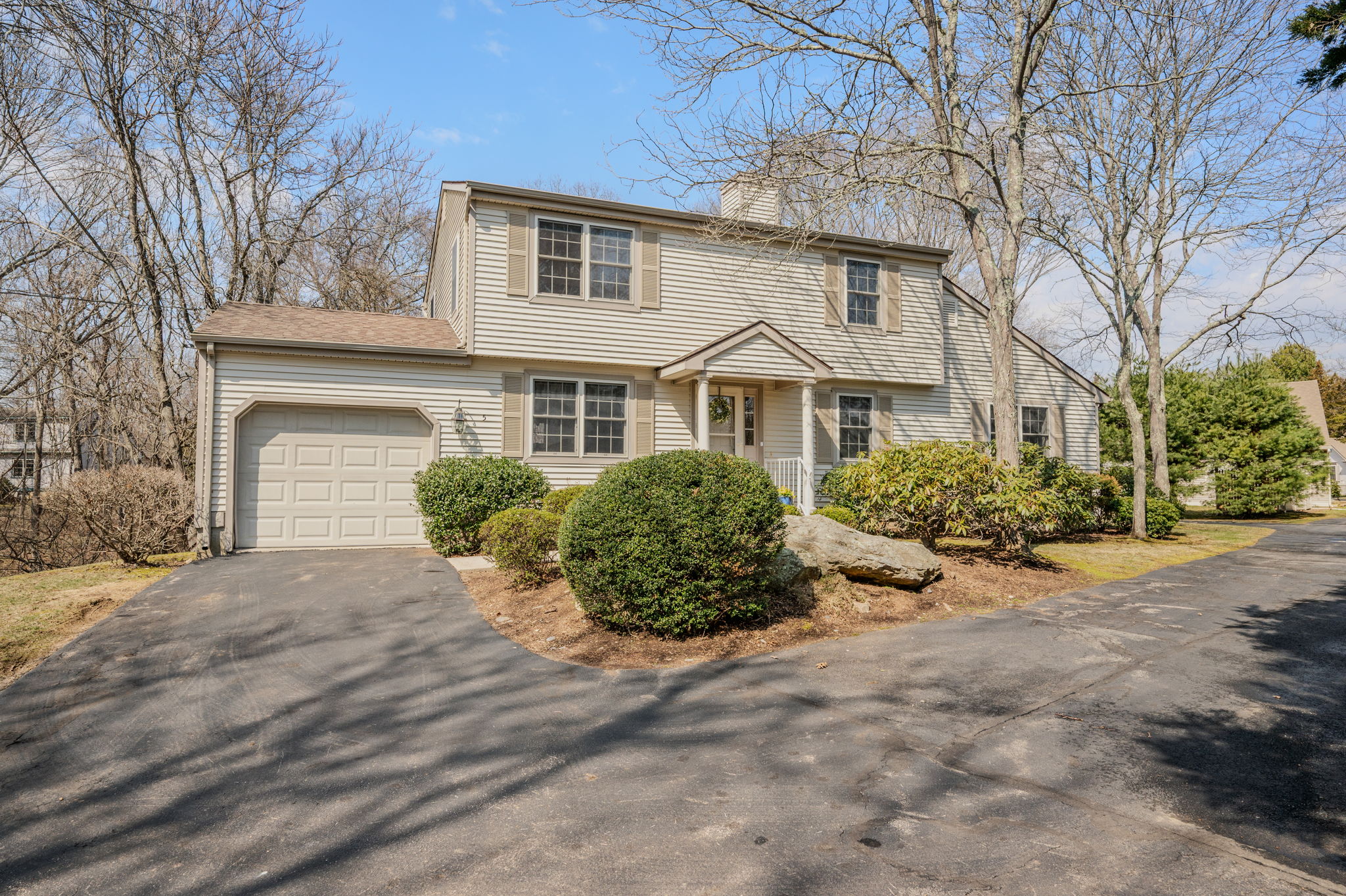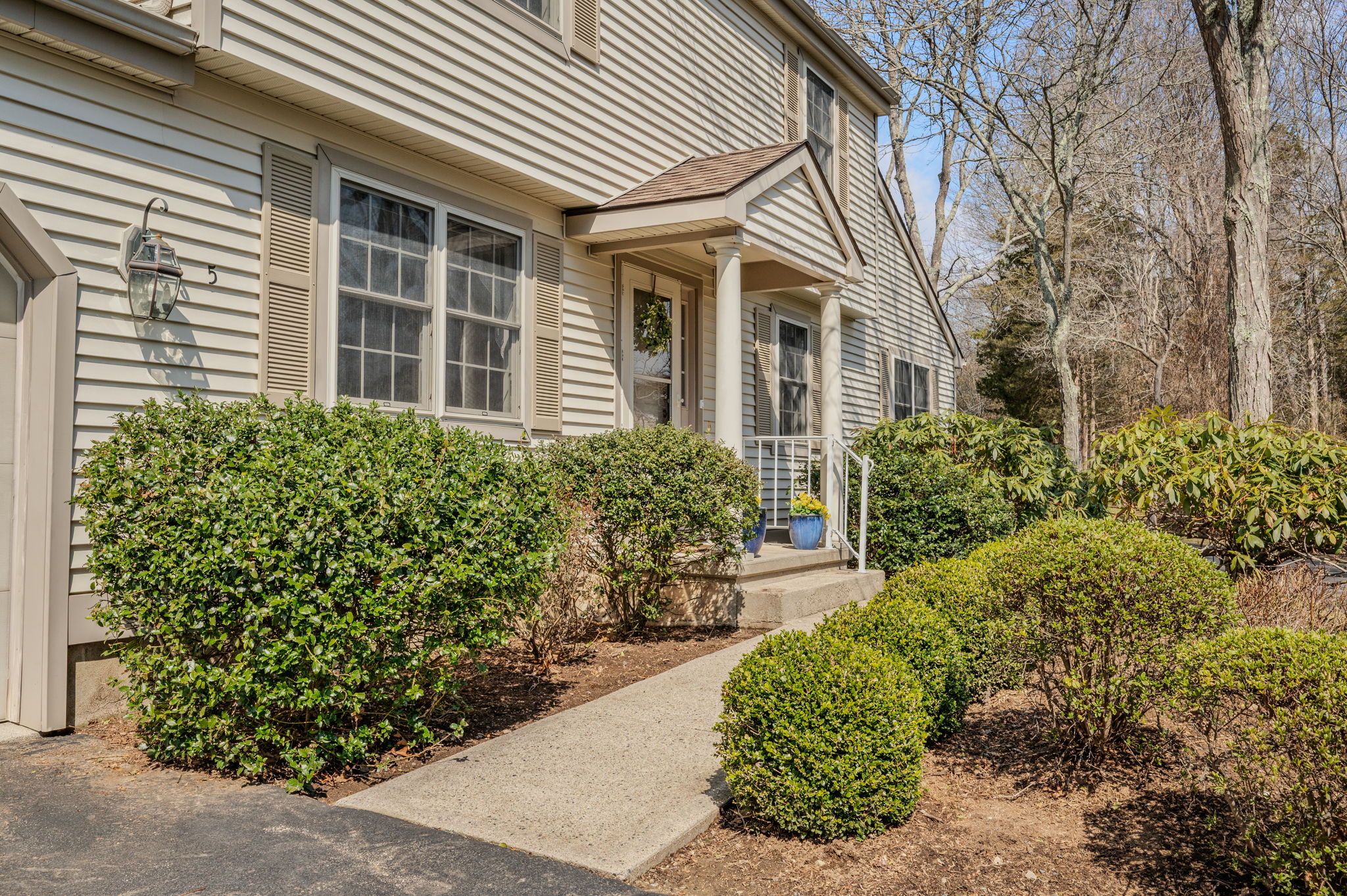 Welcome Home to 5 Cherry Blossom Lane, one of the largest, most private condominiums in popular, desirable Chapman Farms, an Active Adult, 55+ community in the seaside village of Niantic. This condo is located down a private lane off a cul-de-sac offering 2,200 sq.ft., featuring one-floor living including a large first floor office/den, laundry, and primary bedroom suite. A well equipped eat-in kitchen adjacent to the attached garage where you can watch birds & wildlife from your kitchen dining table. Or enjoy the peaceful outdoor deck off the Dining Room. A large Living Room offers a versatile furniture & seating arrangement. A first floor large office or den or craft room offers endless possibilities. A full bath with showers nearby. A spacious first floor primary suite is enhanced by a custom walk-in tub in the full bath for easy access & luxurious baths. A laundry closet is conveniently located near this primary suite. Upstairs, you will find two more spacious bedrooms and a full bath with a tub and shower, plus a large walk-in closet room. This condo is conveniently located to all the benefits of this shoreline town, The Boardwalk along Long Island Sound, Rocky Neck State Park, and array of popular restaurants, shops, and bakeries to delight you. Enjoy costal living without worries about lawn care, snow removal, or leaf removal, 2 hours from Boston or NYC, the best of all worlds!