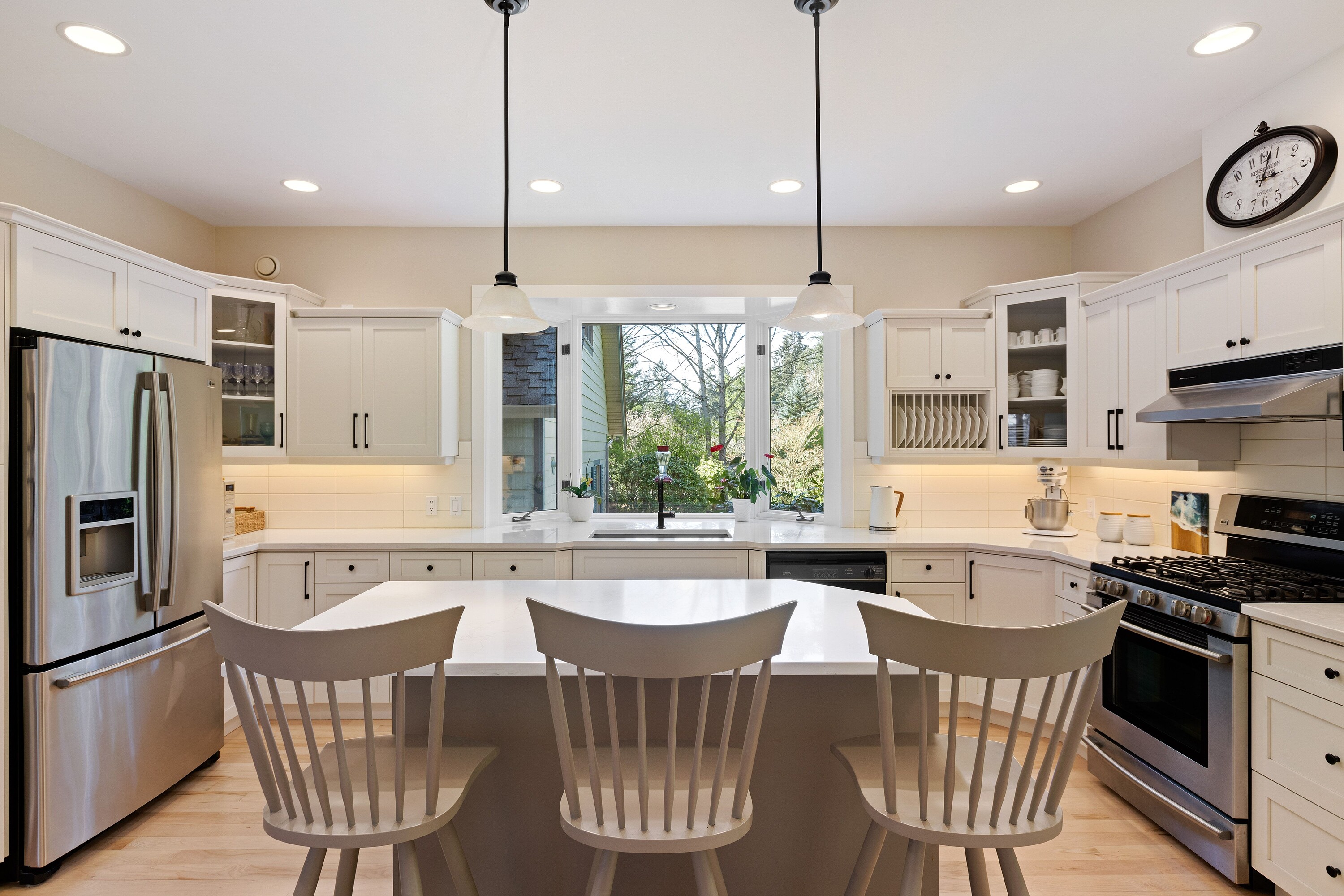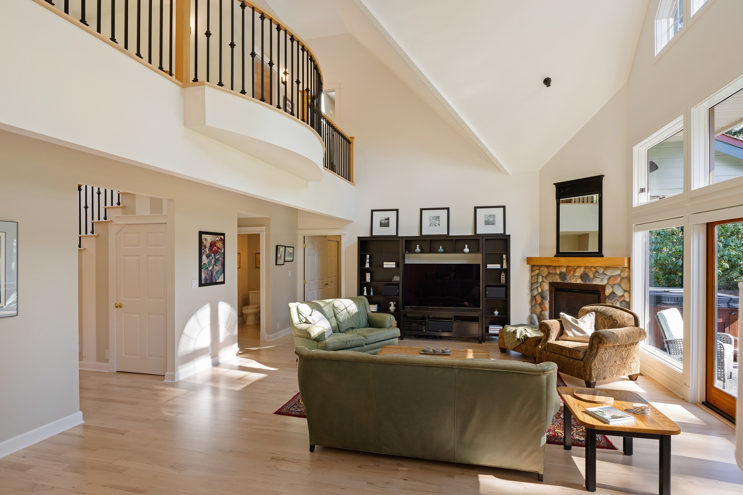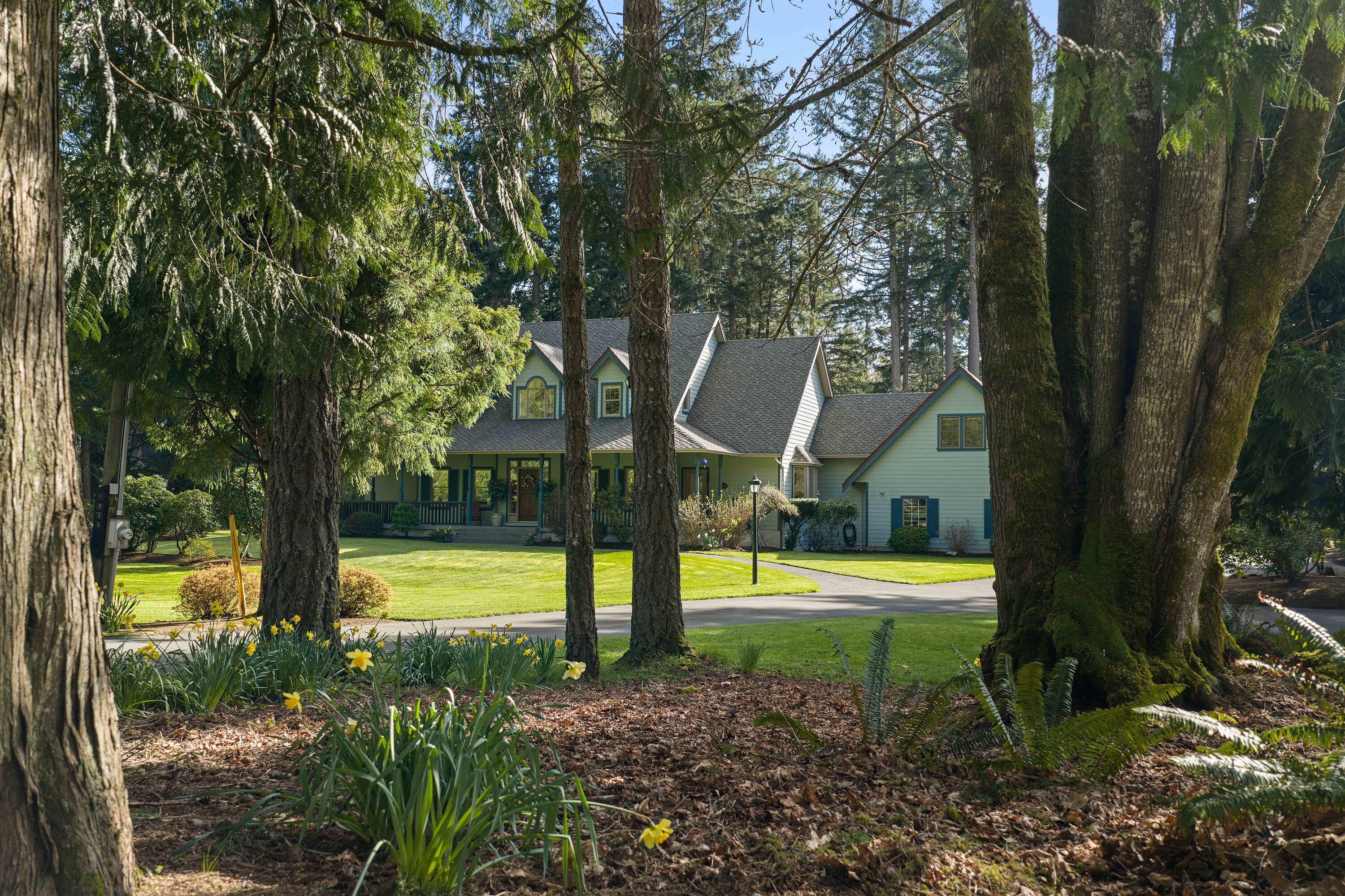 Pristine perfection. Set on nearly two acres of idyllic landscaped grounds, this immaculate estate residence offers over 4,000 square feet of refined living, thoughtfully updated for today’s family. The heart of the home is a stunning great room with vaulted ceiling and Vermont Casting gas fireplace, creating an inviting atmosphere. The crisp white kitchen, renovated in 2023, with large island and quartz countertops, flows seamlessly to the main living spaces. Main floor primary suite offers a retreat with updated ensuite and direct access to a covered porch with secluded hot tub. Two generous bedrooms upstairs and a large bathroom plus versatile exercise room. Extensive updates include refinished maple floors, renovated family and laundry rooms, new window coverings and updated guest suite. Quality craftsmanship is evident throughout, with high-end Loewen windows, natural gas furnace and HRV system plus triple car garage. A gently sloping property with peaceful views toward Gowlland Tod Provincial Park.