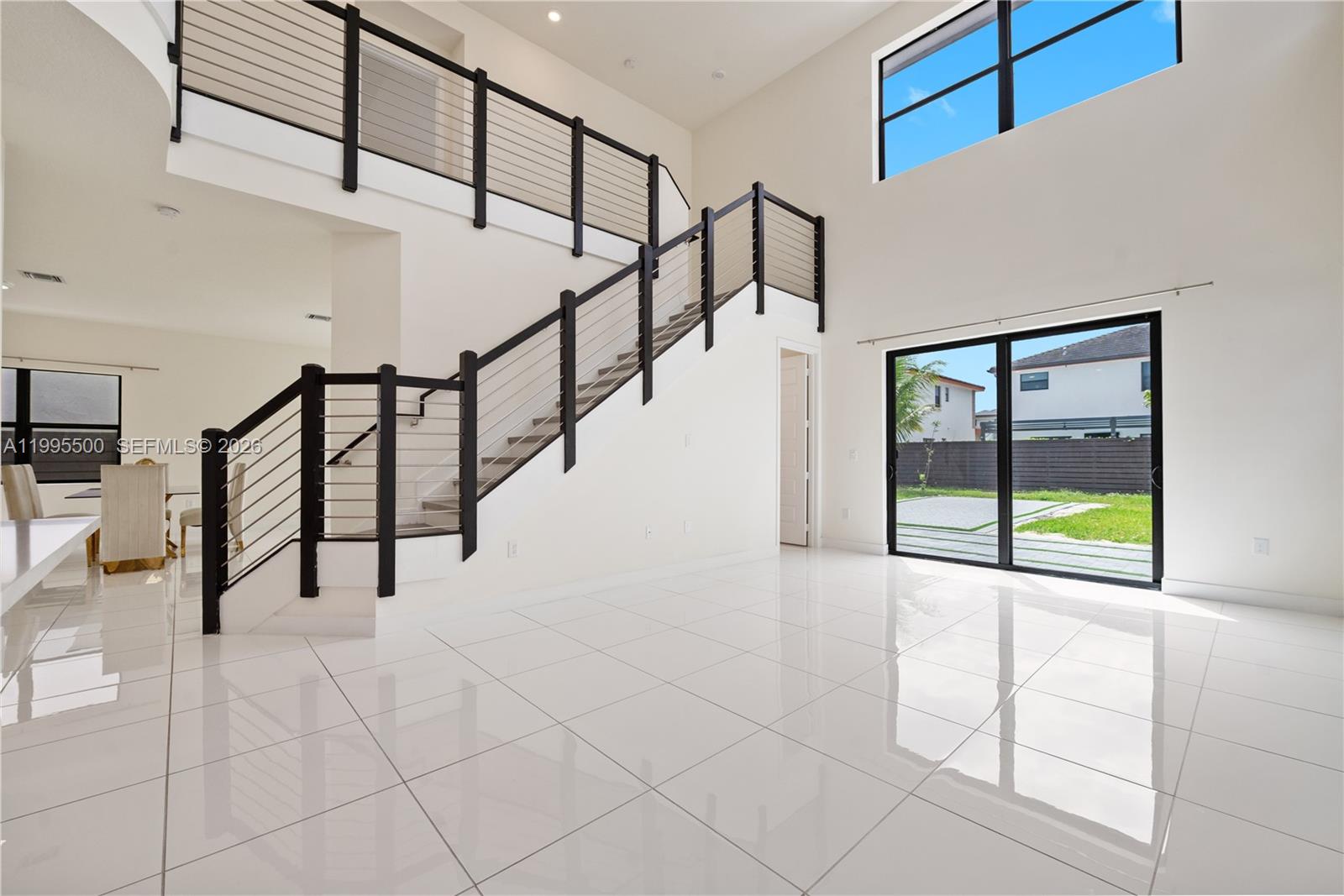 Welcome to The Retreat at Satori in Miami Lakes, where contemporary resort-style living meets thoughtful design. This 5-bedroom, 3.5-bath home features a bright, open split floor plan with soaring ceilings and elegant architectural details throughout. A wrap-around balcony overlooks the main living area, enhanced by expansive windows that flood the space with natural light. The kitchen boasts a large island, added under-counter storage, and stainless steel GE appliances. Enjoy an oversized fenced yard with a newly installed patio, plus new upstairs flooring. Additional features include a 2-car garage and impact windows/doors. Resort-style amenities include a clubhouse, pool, gym, playground, and a stunning 67-acre lake.