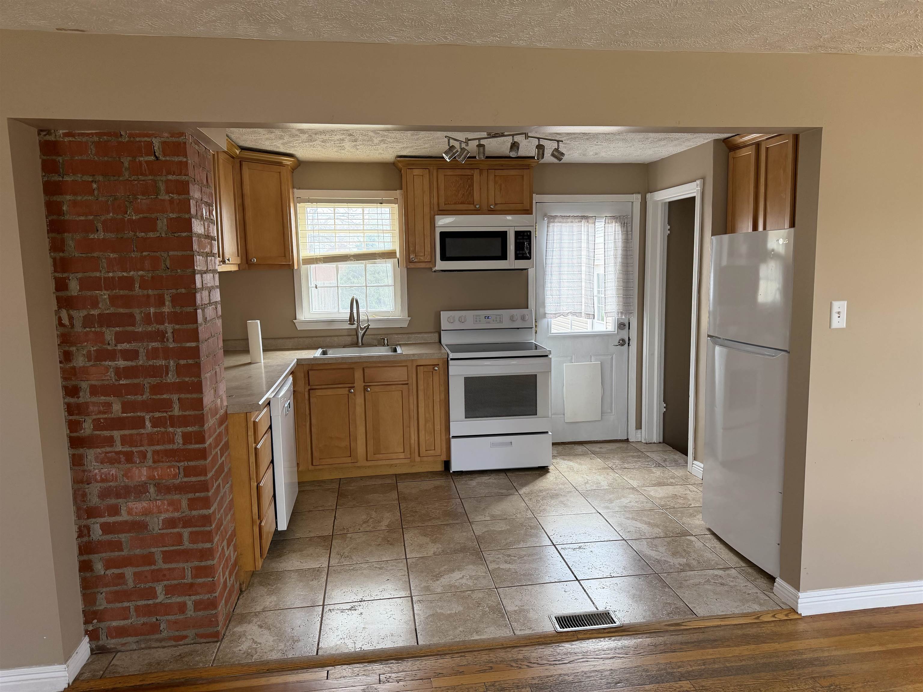 Check out this charming brick house complete with 3 bedrooms and 1 bathroom! It features two bedrooms upstairs and a large master bedroom downstairs with a walk in closet. Out back you will find a fenced in yard with access to the garage and a firepit. There are many updated features including Bluetooth in the bathroom and a newer roof. Call for a showing today!