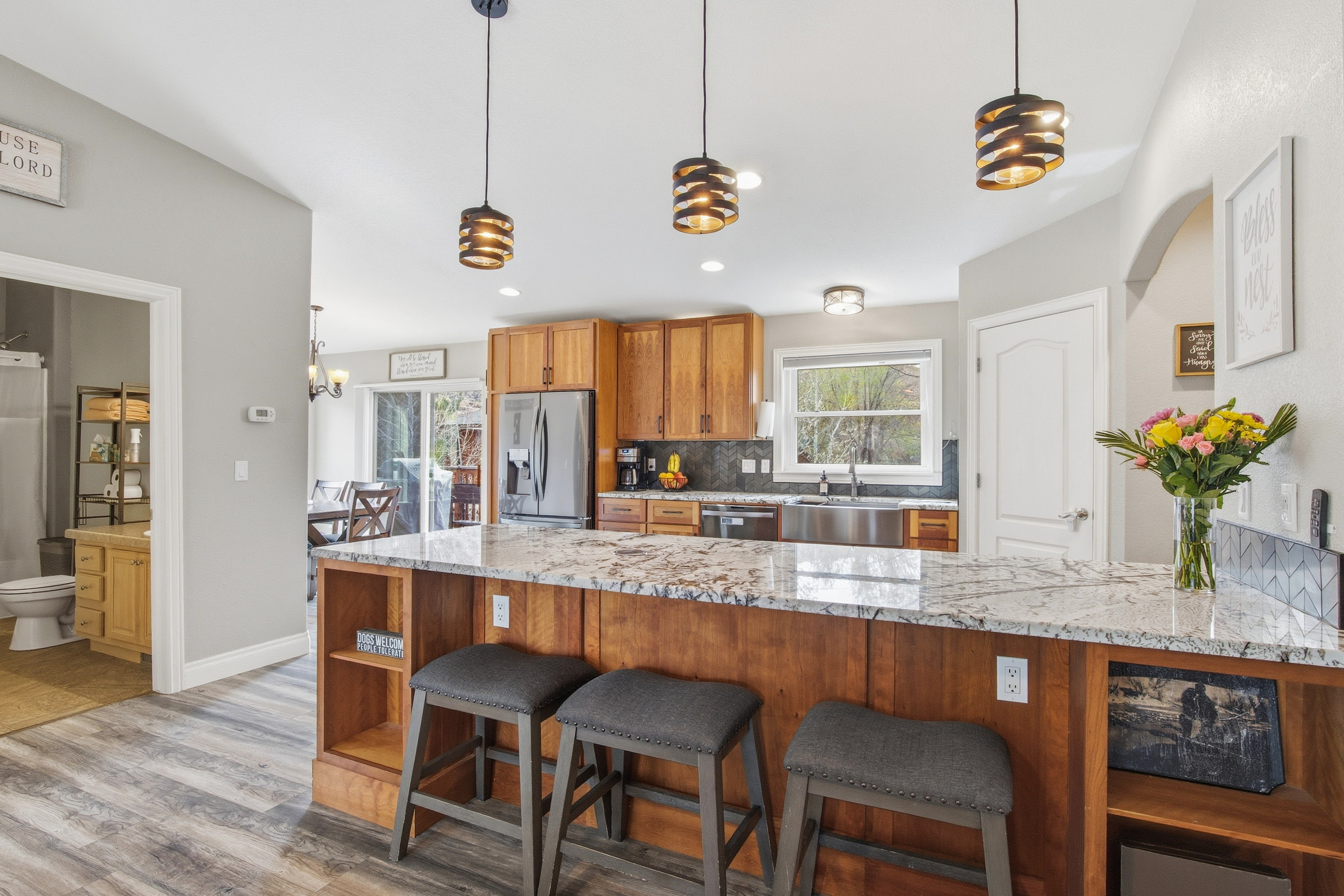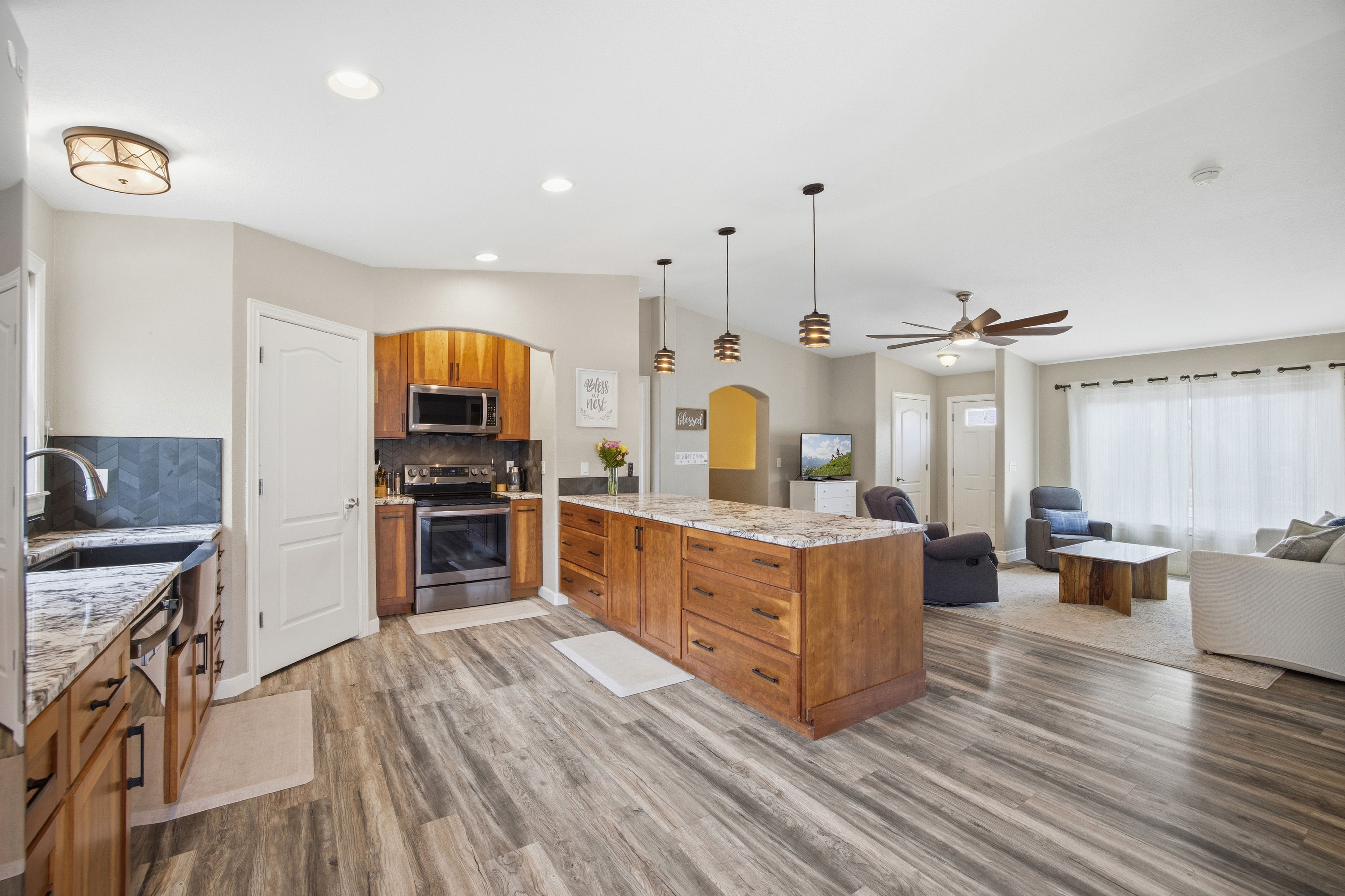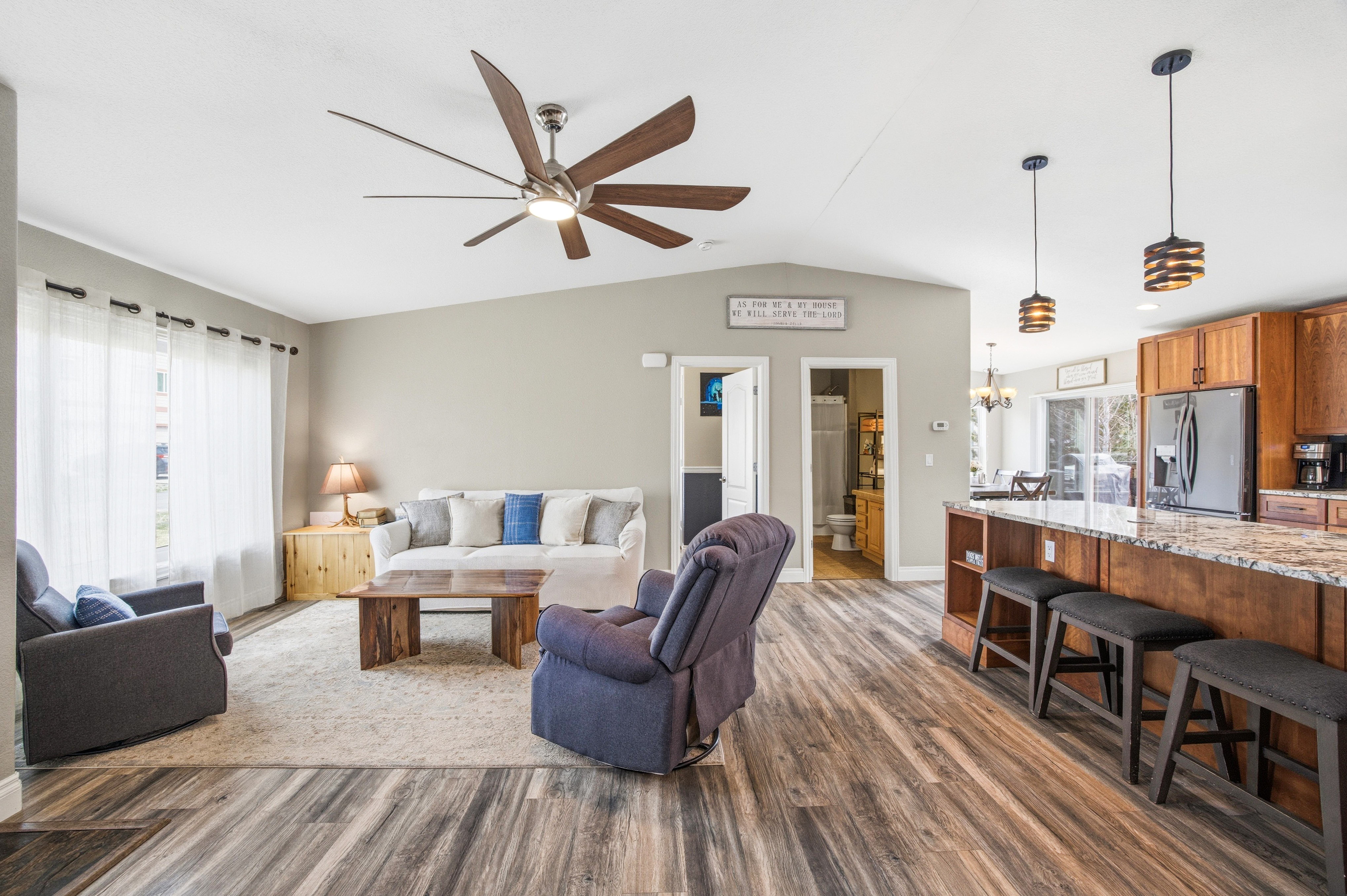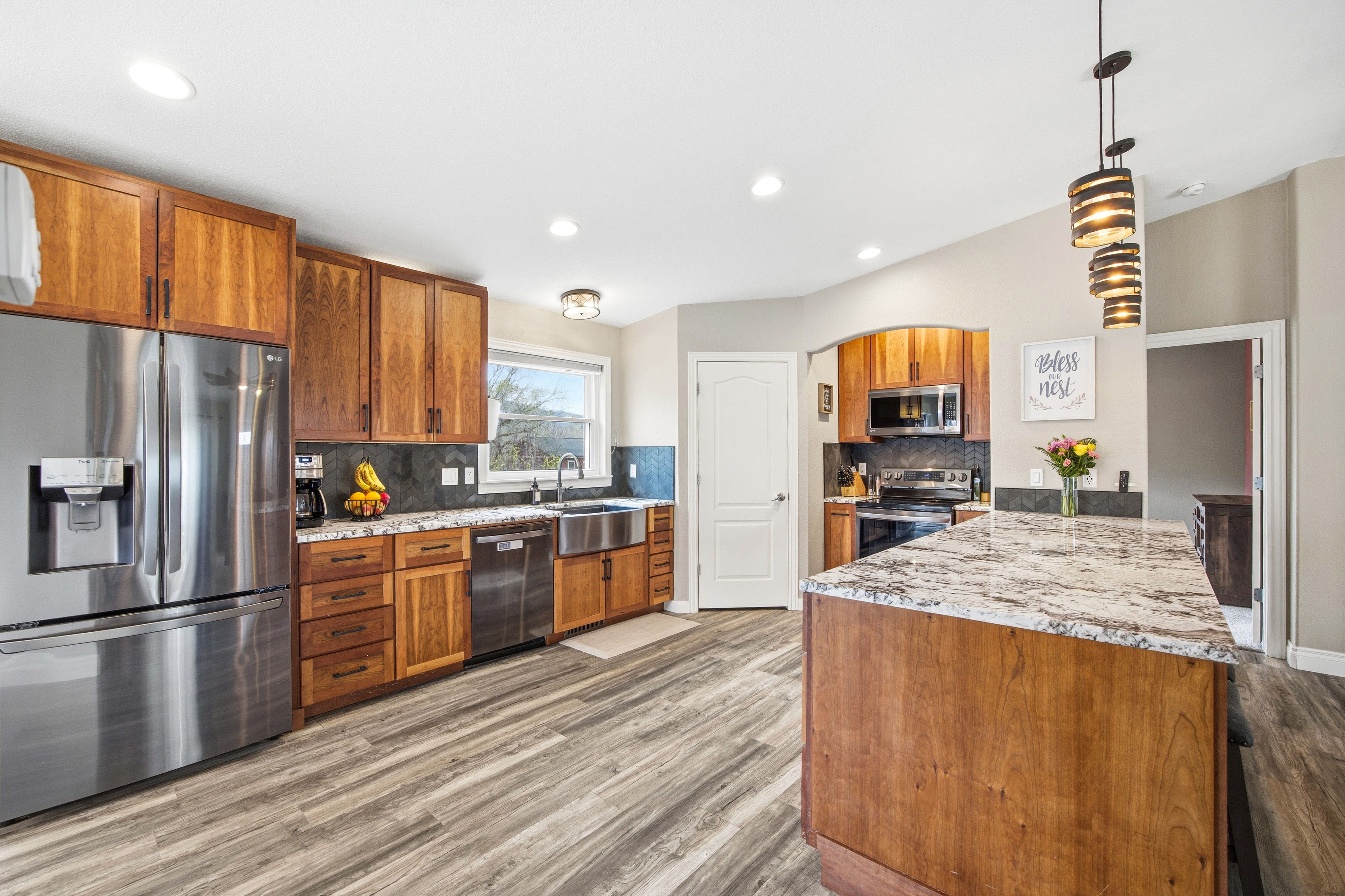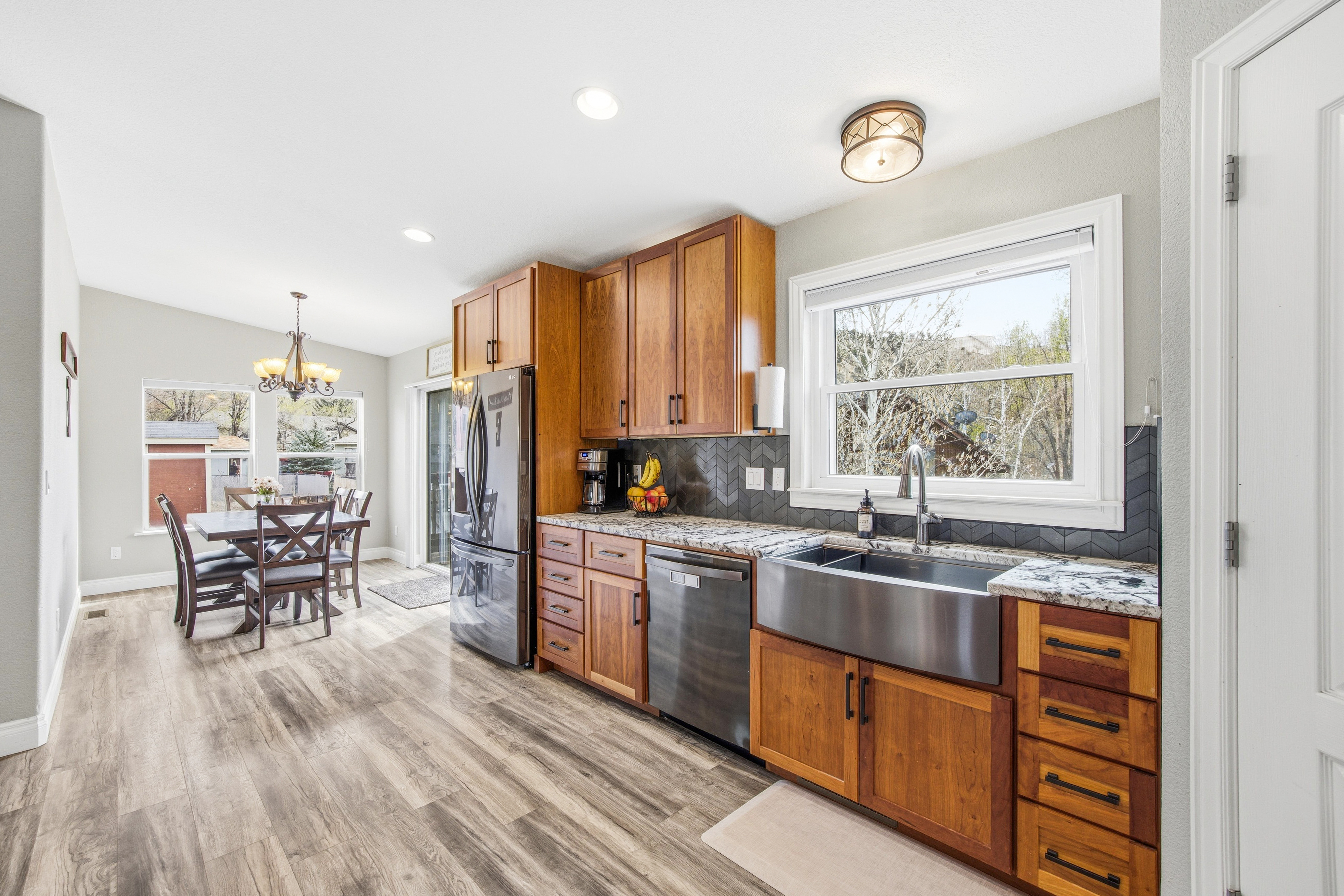 Set on a private cul-de-sac in one of Old Eagle's most desirable locations, this move-in ready home offers an exceptional blend of space, comfort, and everyday livability with no HOA. A thoughtfully designed floor plan features 4 bedrooms, a spacious recreation room, and a versatile flex space ideal for a home office, fitness studio, or potential fifth bedroom.The main-level primary suite creates a true retreat, complete with a jetted soaking tub, walk-in closet, double sinks, and private water closet. A secondary main-floor bedroom offers ideal flexibility for family, guests, or a home office. The great room is anchored by an inviting, open-concept kitchen with slab granite countertops, custom cherry cabinetry, an complete LG suite of Energy Star stainless steel appliances, and a generous walk-in pantry.The lower level is designed for entertaining with a recreation room enhanced by surround sound, perfect for movie nights or gatherings. Recent improvements include a new roof, new carpet in 2024 and a garage heater for year-round convenience.Outdoor living is equally appealing, with a fully fenced and landscaped yard featuring a new greenhouse and storage shed, along with deck and patio spaces for seamless indoor-outdoor living and backyard entertaining. An oversized two-car garage and a 40-foot concrete parking pad provide abundant space for vehicles, gear, or recreational toys. With no HOA and close proximity to schools, dining, shopping, and trail systems, this home offers an exceptional blend of lifestyle, location, and livability.