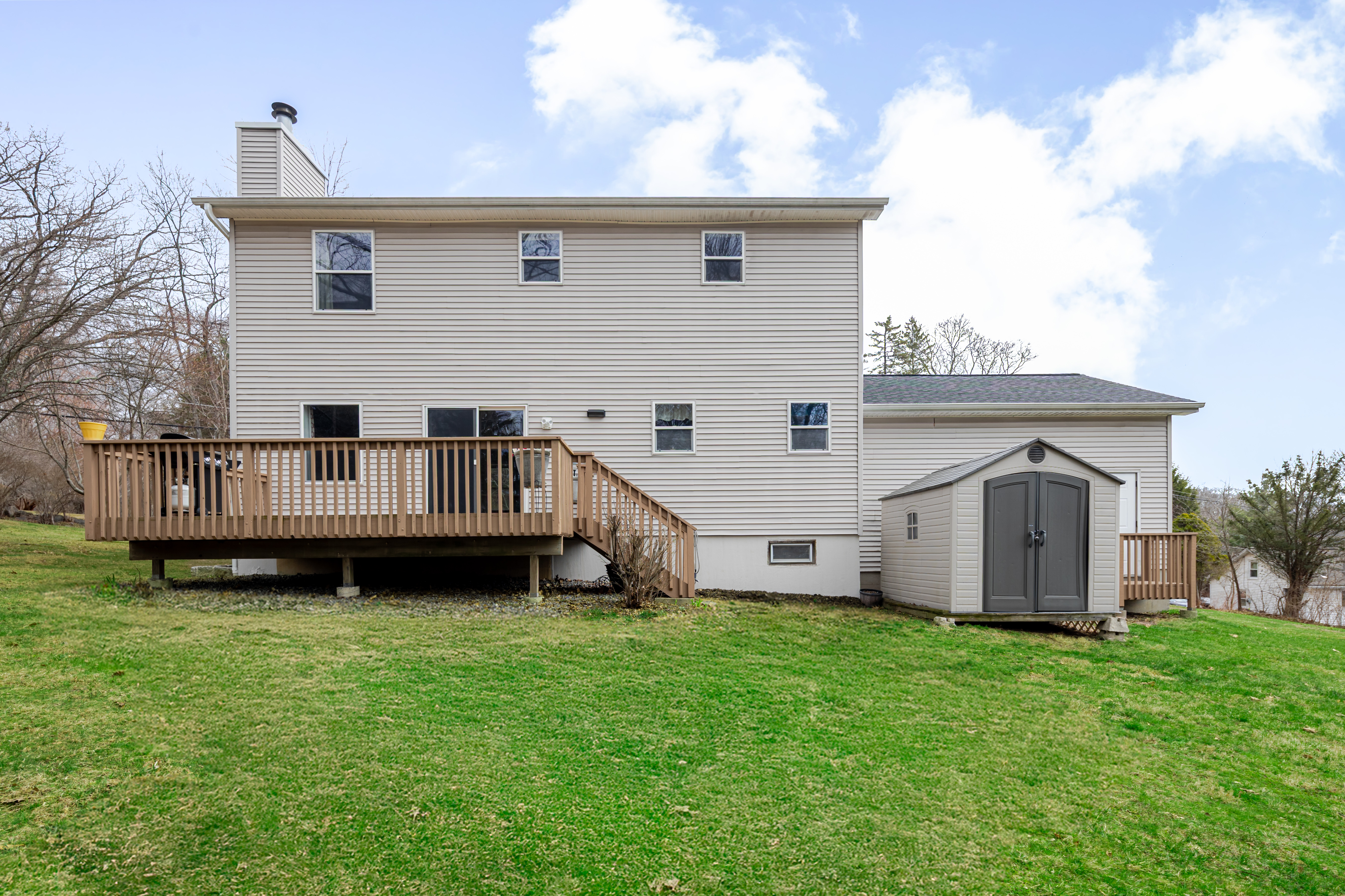 Welcome to this stunning, move-in-ready 3-bedroom, 2.5-bath Colonial, perfectly situated on Danbury's premier West-side. This home offers incredible curb appeal with its wide paved driveway, newer architectural roof and extensive stone wall. Inside features an updated open floor plan with gleaming hardwood floors and natural light. The heart of the home is the eat-in kitchen, boasting solid cherry cabinetry, quartz countertops, a center island, and a stylish tile backsplash complemented by stainless steel appliances. The kitchen flows seamlessly into the family room featuring a cozy gas fireplace or step through the sliders to a sprawling deck which overlooks a private, level backyard with mature trees-perfect for summer barbecues-and includes a shed for extra storage. The spacious formal living and dining rooms are perfect for entertaining guests in style anytime. The upper level continues the hardwood flooring and every bathroom in the home has been tastefully updated, ensuring a modern feel throughout. The primary bedroom hosts double walk-in closets and a full luxury bath complete with double sinks and contemporary finishes. Two additional guest bedrooms are well-appointed with ample closet space and share a full bath. For those needing more space, the lower level offers a large area ideal for a home gym, private office, or a recreation room.