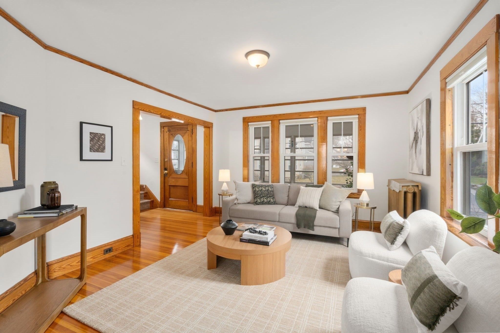 Welcome Home! A+ location near Norwood Center’s vibrant shops, dining and parks, this classic Colonial blends timeless charm with thoughtful updates across three levels of versatile living. Sun-drenched main level showcases a beautifully renovated kitchen with granite counters, breakfast bar and stainless appliances, opening seamlessly to generous living and dining spaces with gleaming wood floors, crisp finishes and abundant natural light. Clean lines and a natural flow create a home that feels both elevated and comfortable throughout. Upper levels deliver flexibility with three well-proportioned bedrooms plus a standout third floor retreat featuring the fourth bedroom and bonus space ideal for office, gym or playroom. Mudroom leads to outdoor living - shines with a paver patio and inviting backyard built for entertaining, play and gardening. Additional highlights include garage, lower-level storage, laundry and workbench. Commuter Rail with seamless access to Boston.