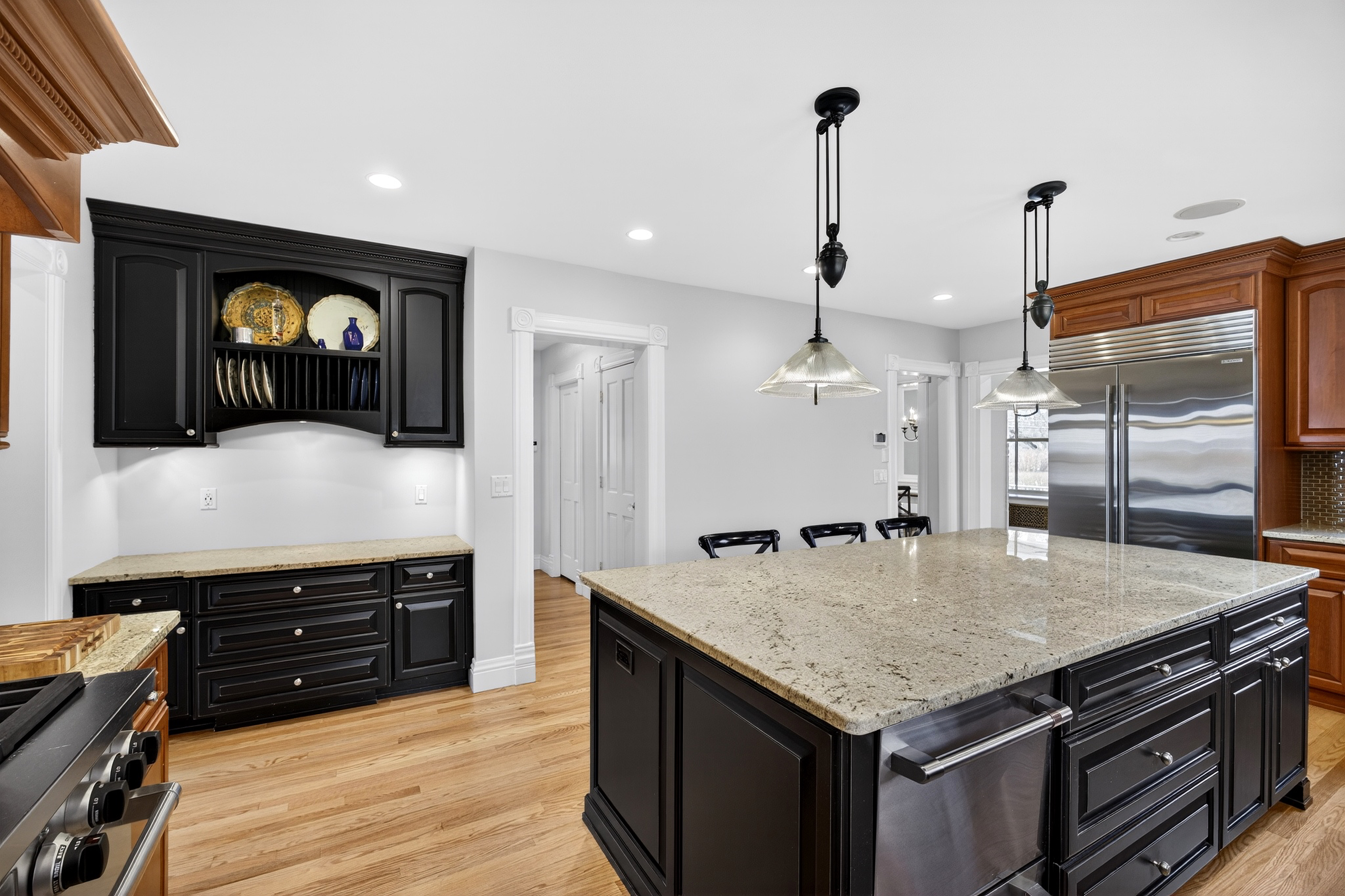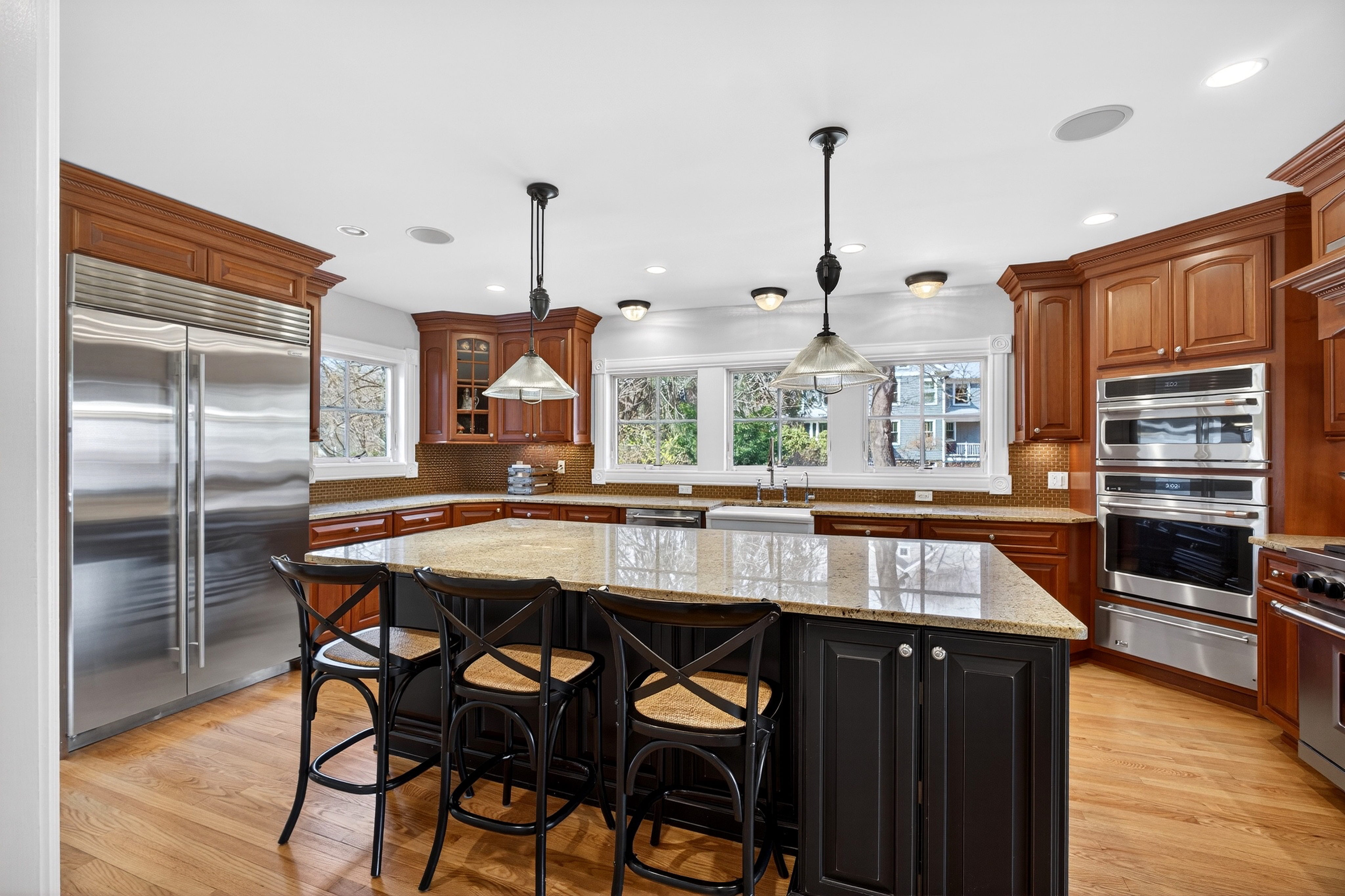 The main level presents open, light-filled spaces designed for both everyday living and entertaining, anchored by a stunning kitchen featuring high-end stainless steel appliances, including Sub-Zero and Wolf. Rooms flow seamlessly and connect to the outdoors, creating an effortless indoor-outdoor lifestyle.