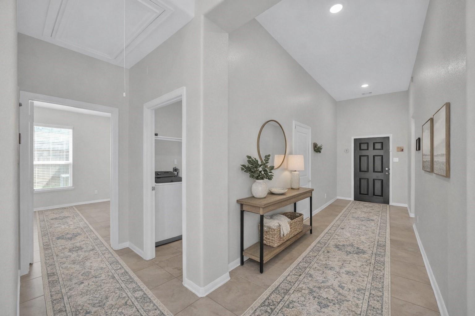 Welcome home! This beautiful one-story Castlerock home is ideally located on a quiet street near the brand-new Creekside Elementary and Lake Creek High School in the highly sought-after Montgomery ISD, offering both convenience and a strong sense of community. amenity-filled neighborhood, this home truly has it all. Featuring 3 spacious bedrooms plus a dedicated 4th bedroom that is perfectly suited for a home office, 2 bathrooms, and an oversized 2.5-car garage, this layout is both functional and flexible for today's lifestyle. You'll love the builder upgrades including granite countertops, a gourmet-style kitchen, and ALL tile flooring throughout - no carpet anywhere. The 12' ceilings in the entry, kitchen, and living area create an open, airy feel, while the upgraded primary bath suite offers a spa-like retreat. Situated on an oversized homesite, this property offers extra space and privacy - the ideal place to settle in and grow. Amenities galore... come take a tour today!