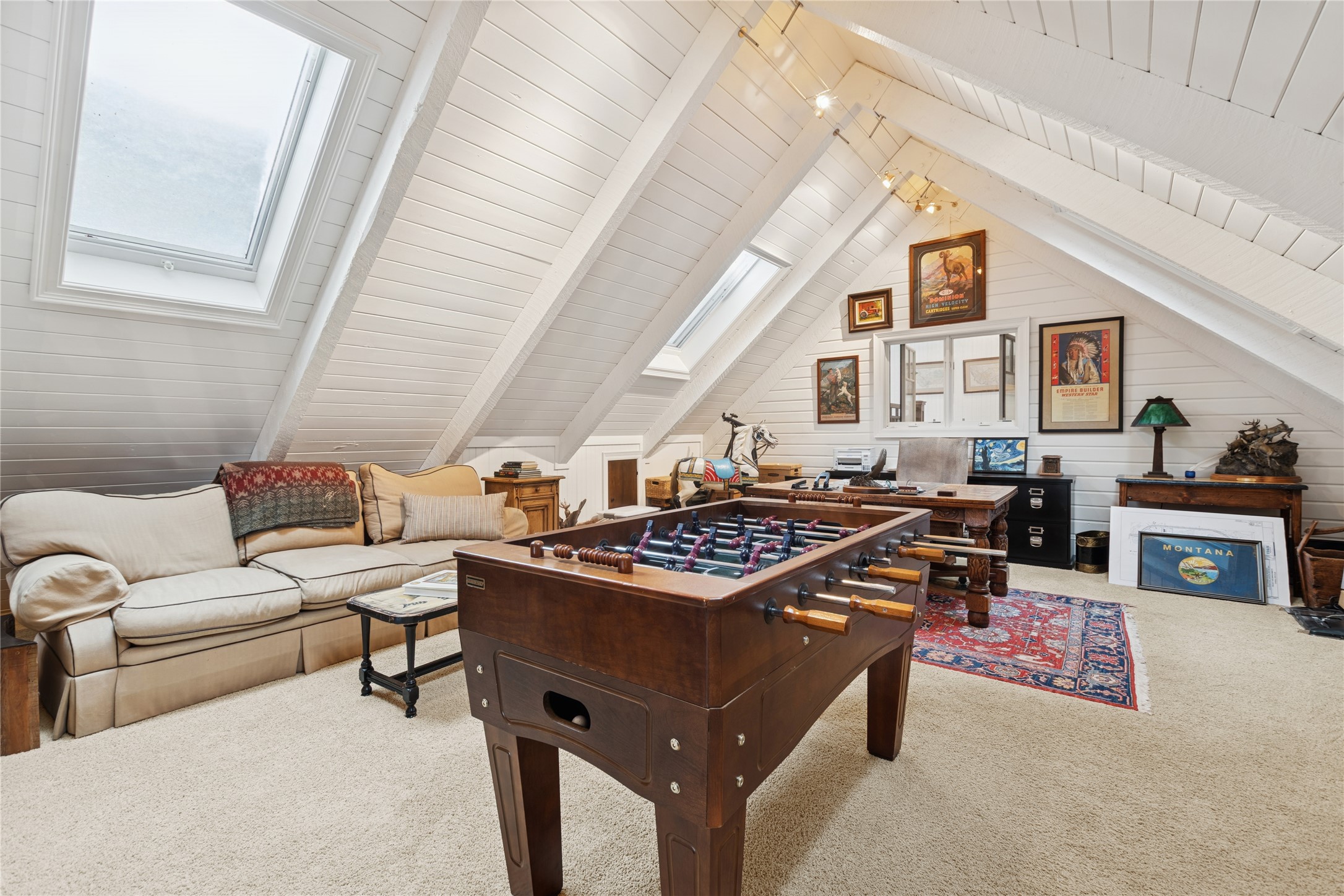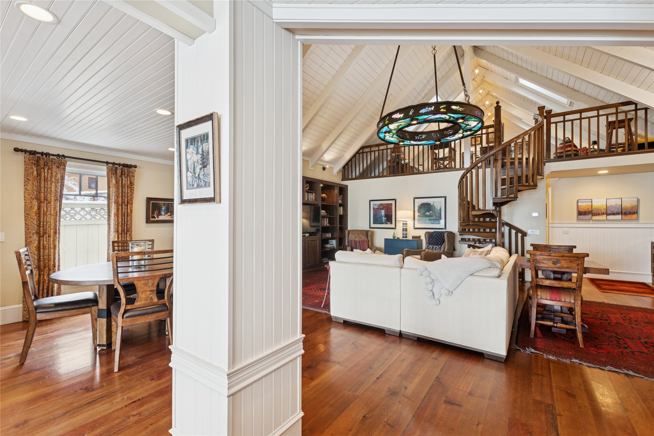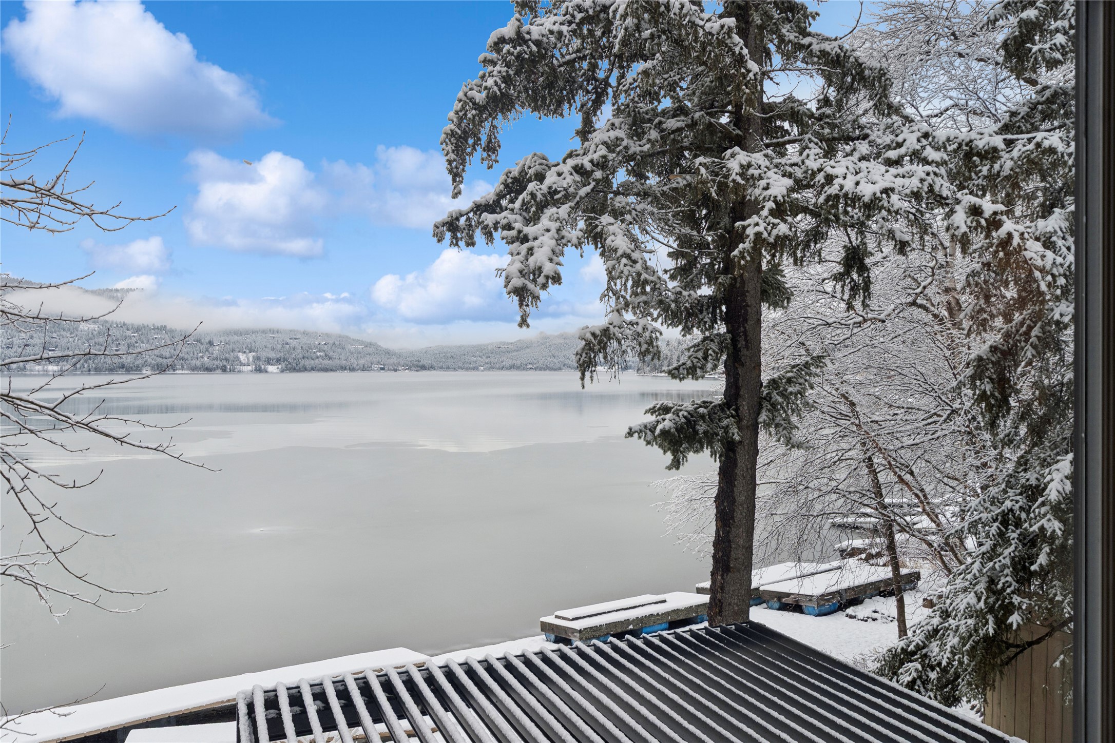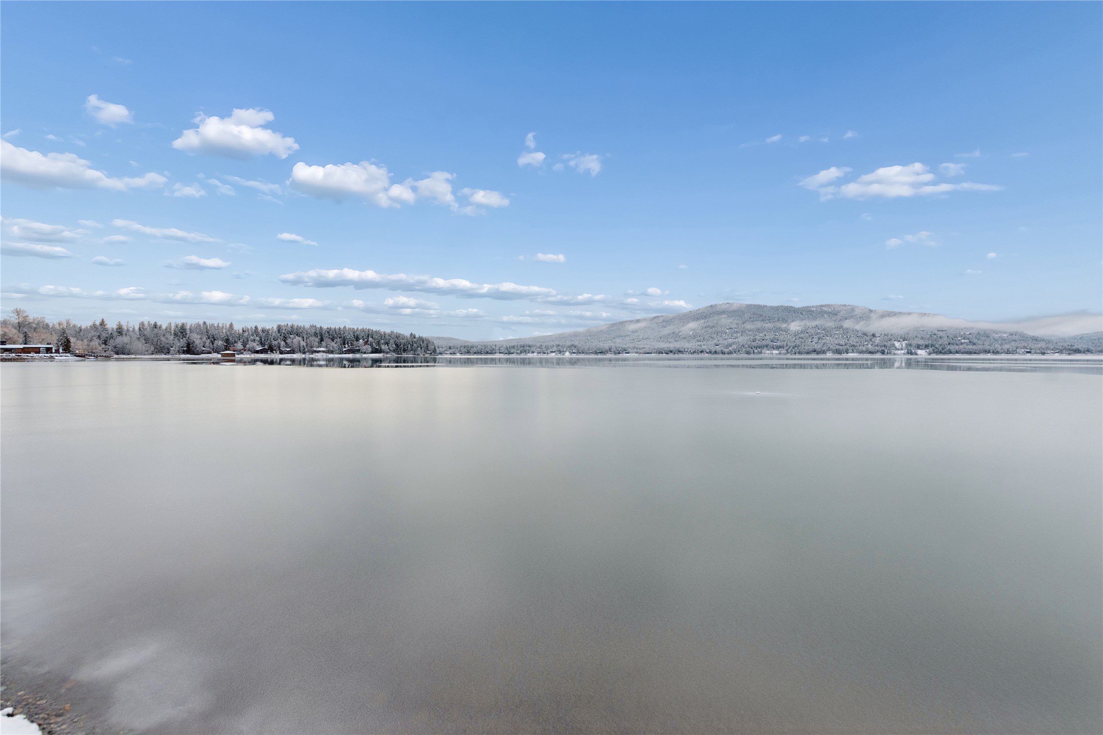 45+/- feet of gentle sloping Whitefish Lake frontage with private dock. This home is positioned to capture expansive lake views from multiple interior spaces. The main level is organized around an open kitchen and great room layout with large windows and glass doors, providing western exposure, natural light, and continuous lake and mountain view sightlines.