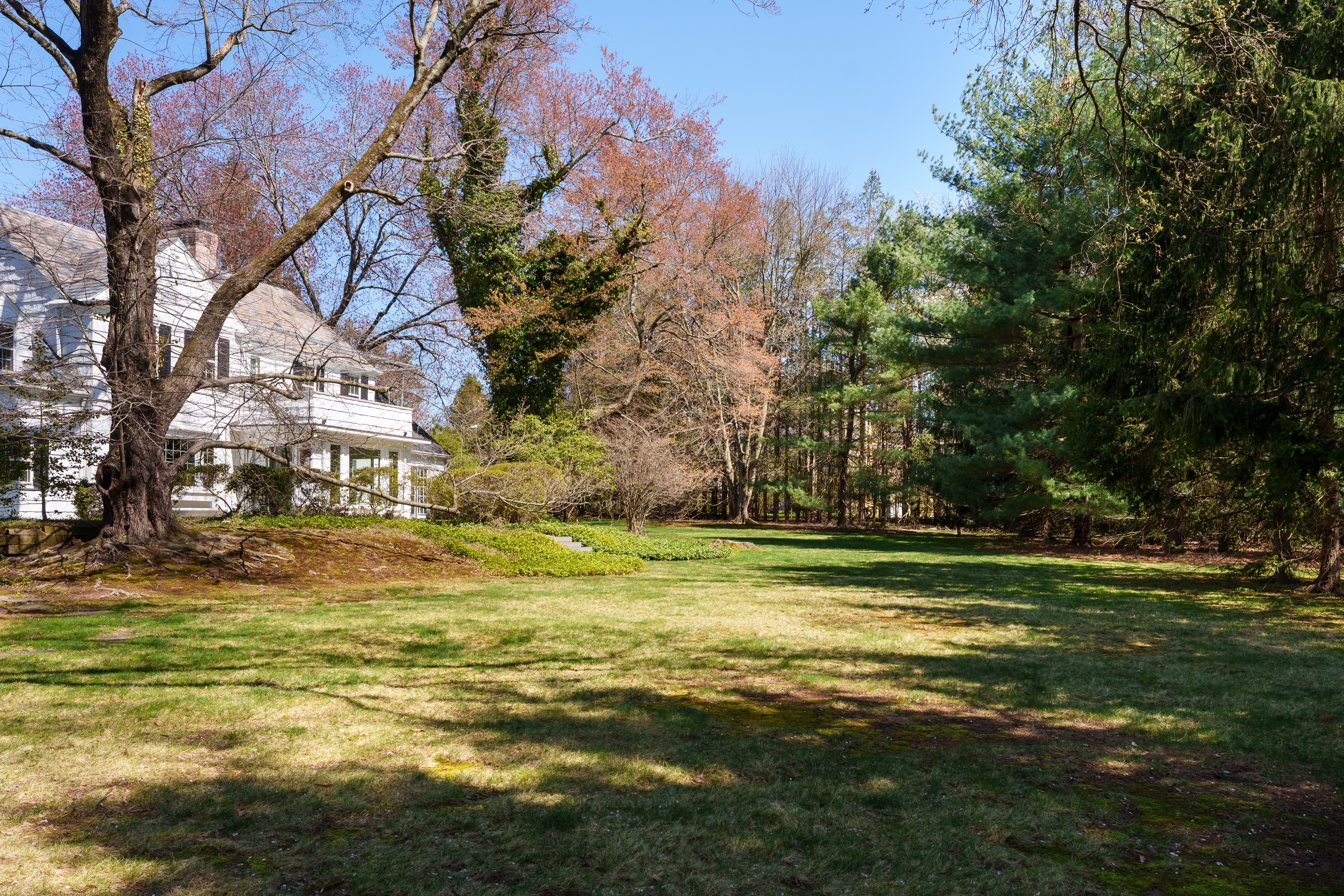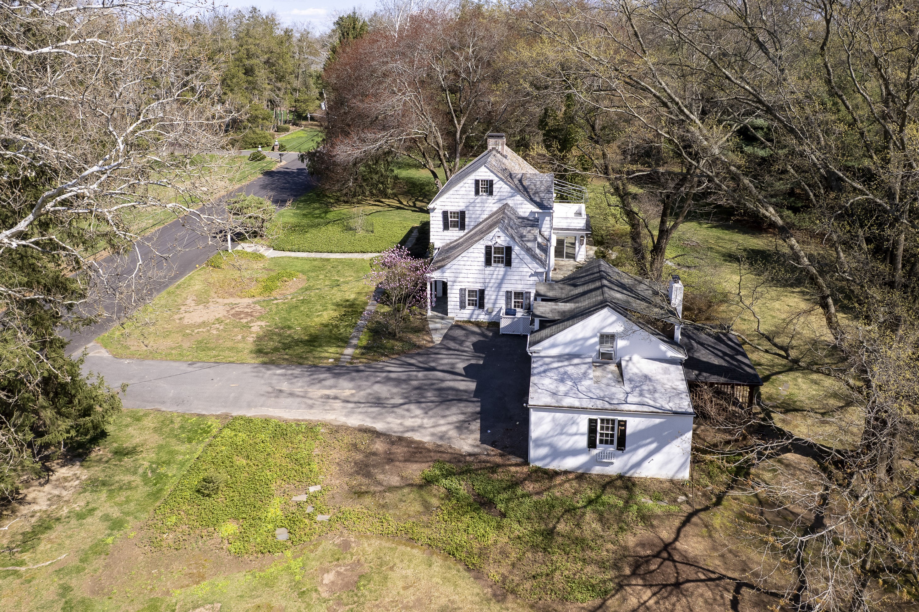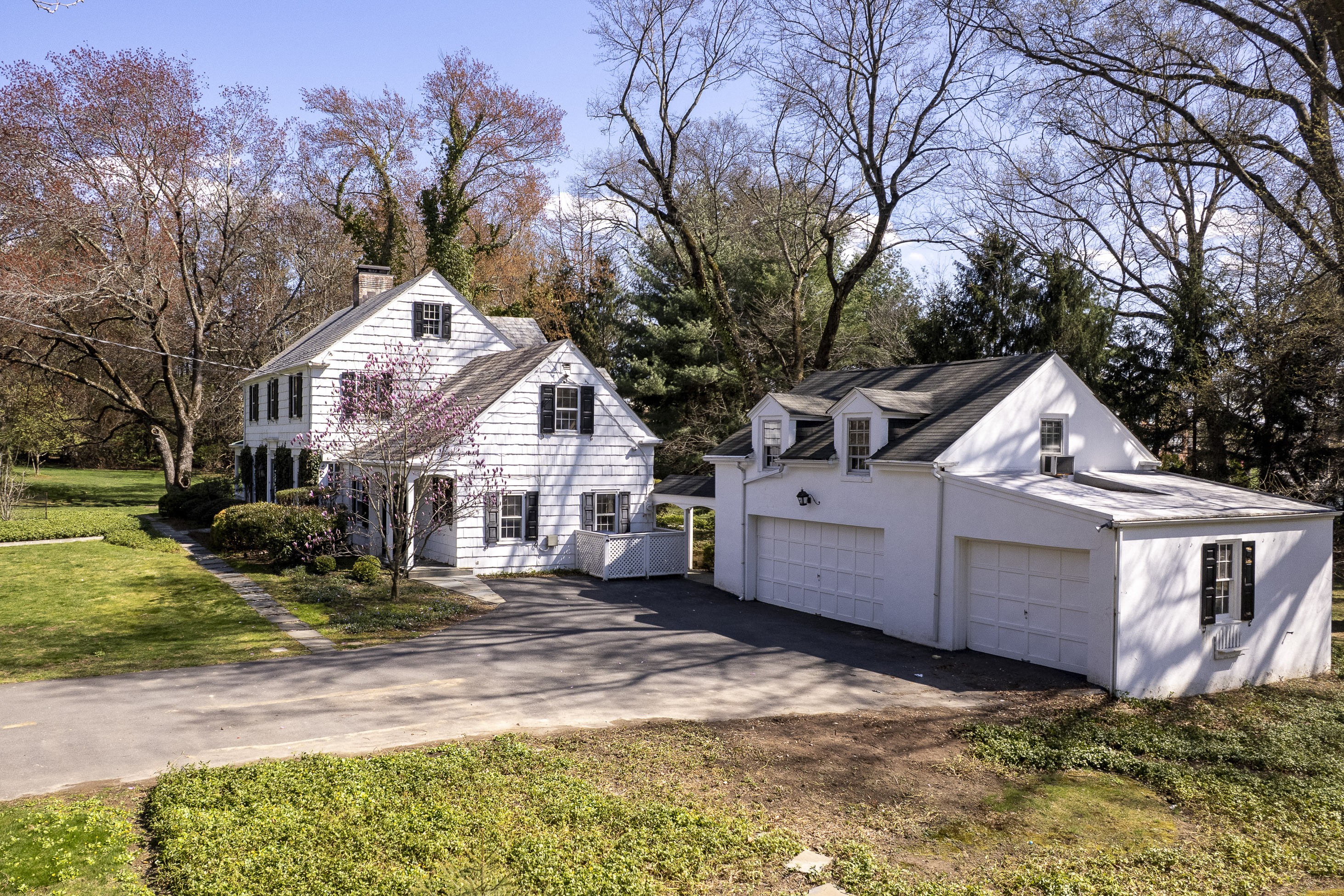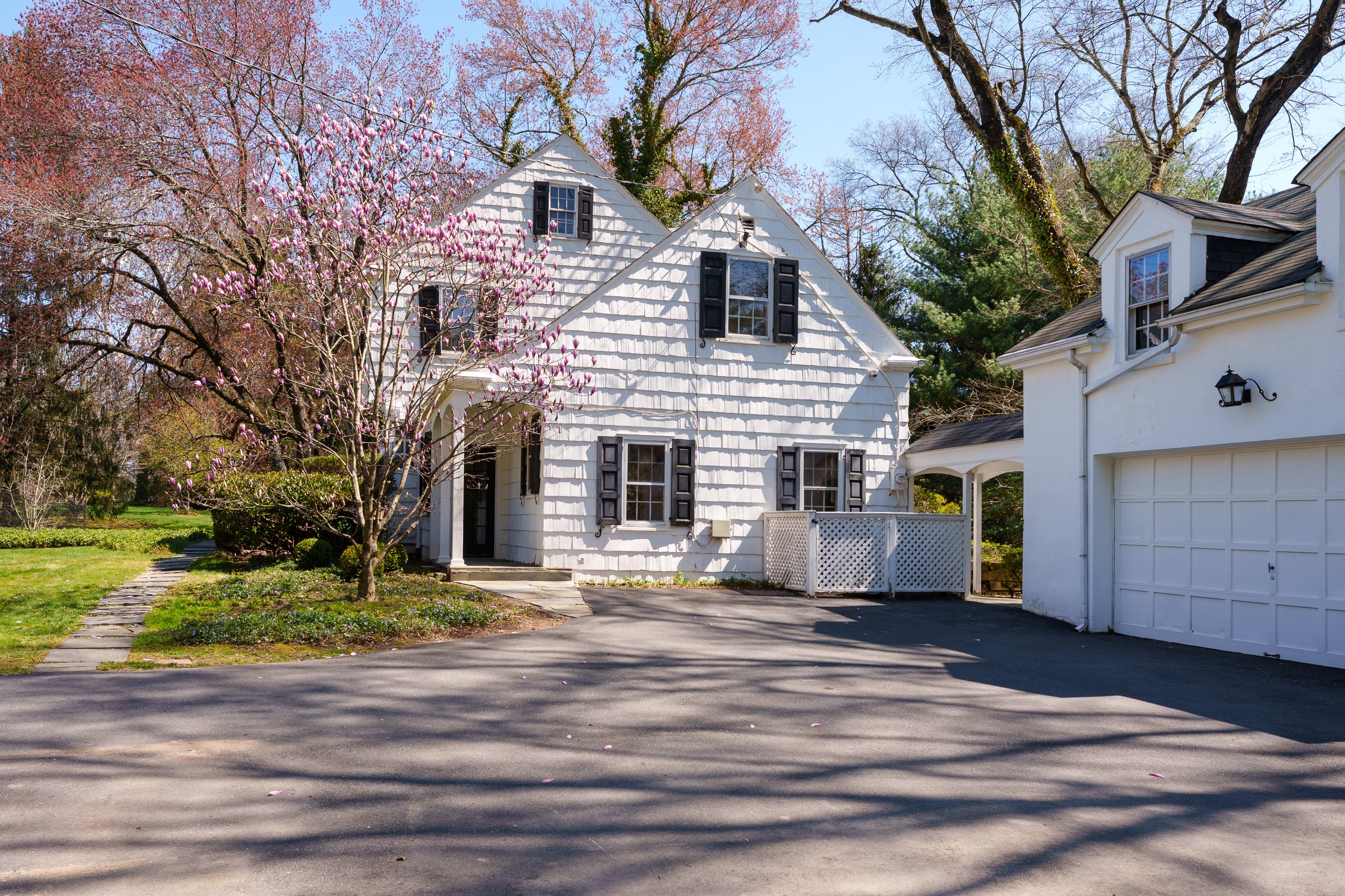 Set within the beloved Long Acres neighborhood, just a mile from The Lawrenceville School’s rolling campus and the shops and dining of Main Street, this charming shingled Colonial pairs a peaceful tree-lined setting with immediate access to I-295. Boasting an extra-wide lot, the property offers space, flexibility and exceptional potential. Inside, features like hardwood flooring, generously proportioned gathering spaces and a first floor suite provide a strong foundation for a cosmetic refresh. The open living and dining areas flow together, allowing both to enjoy the wood-paneled fireplace and hidden wet bar, while tucked-away storage keeps entertaining essentials ready to go. Merge the kitchen and breakfast room to create an expansive chef-approved workspace overlooking the sweeping backyard. A stone-floor sunroom invites relaxed afternoons in the cool shade, while above, a balcony soaks up sunset views. Two staircases lead up to four bedrooms, three with cedar closets, served by two full baths. The primary suite even includes a dedicated dressing room lined with storage. A first-floor wing with a private entrance offers ideal guest or au pair accommodations with convenient access to the laundry. A cozy family room with a second fireplace makes the lower level a destination for play and recreation, while a loft above the three-car garage presents additional space that can be customized for work or exercise. After being cherished by a single family for decades, this special home awaits the stylish touches of your choosing, resulting in an interior tailor-made for your contemporary lifestyle!