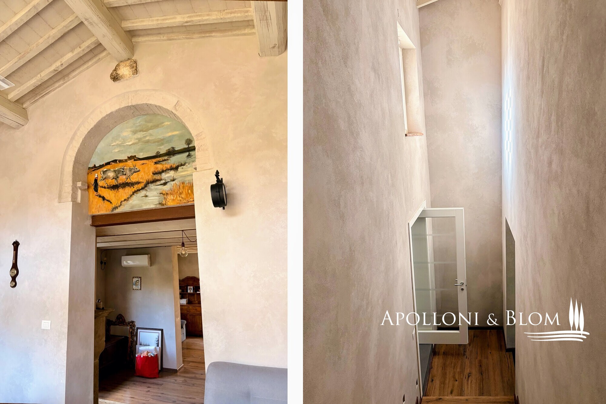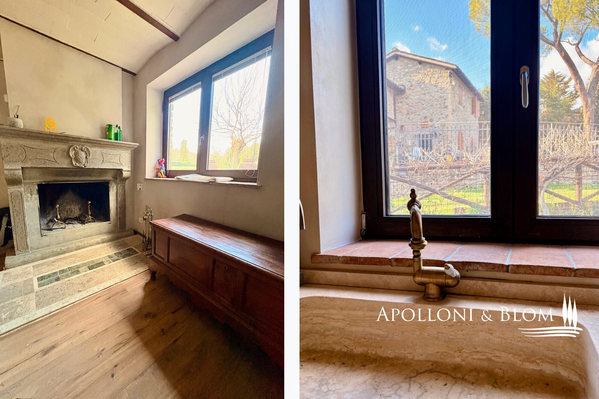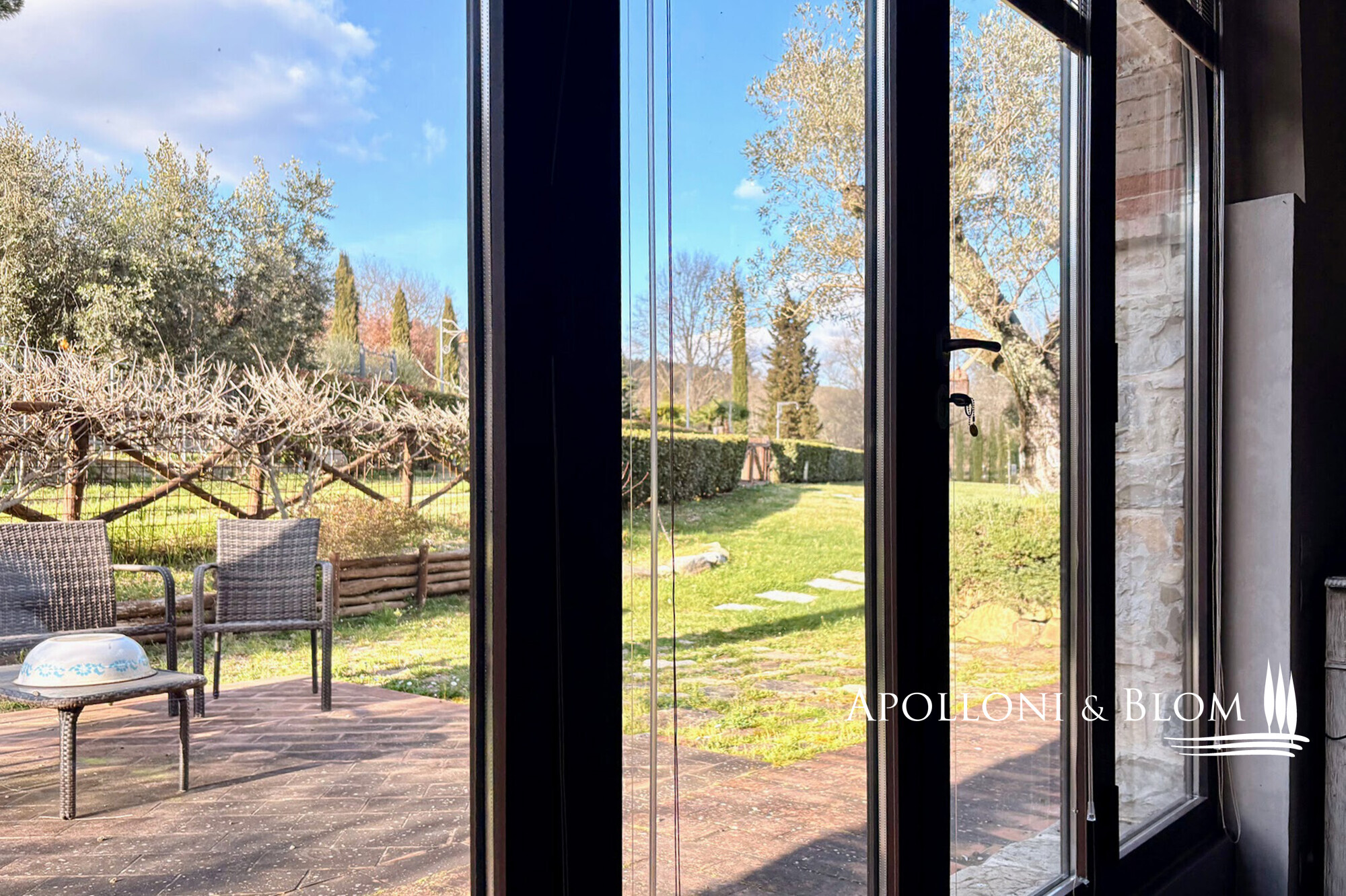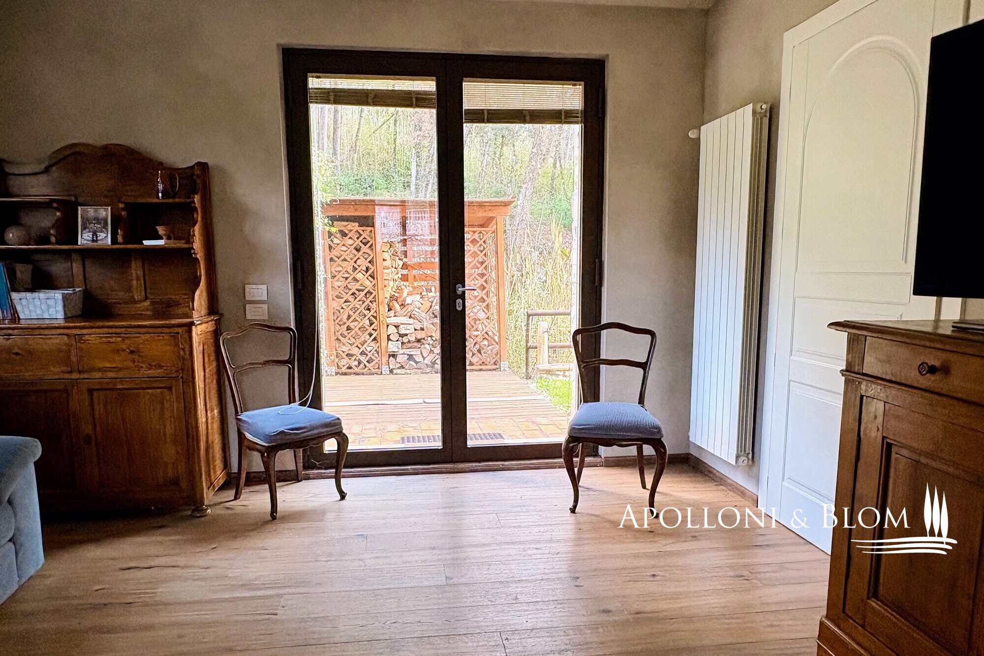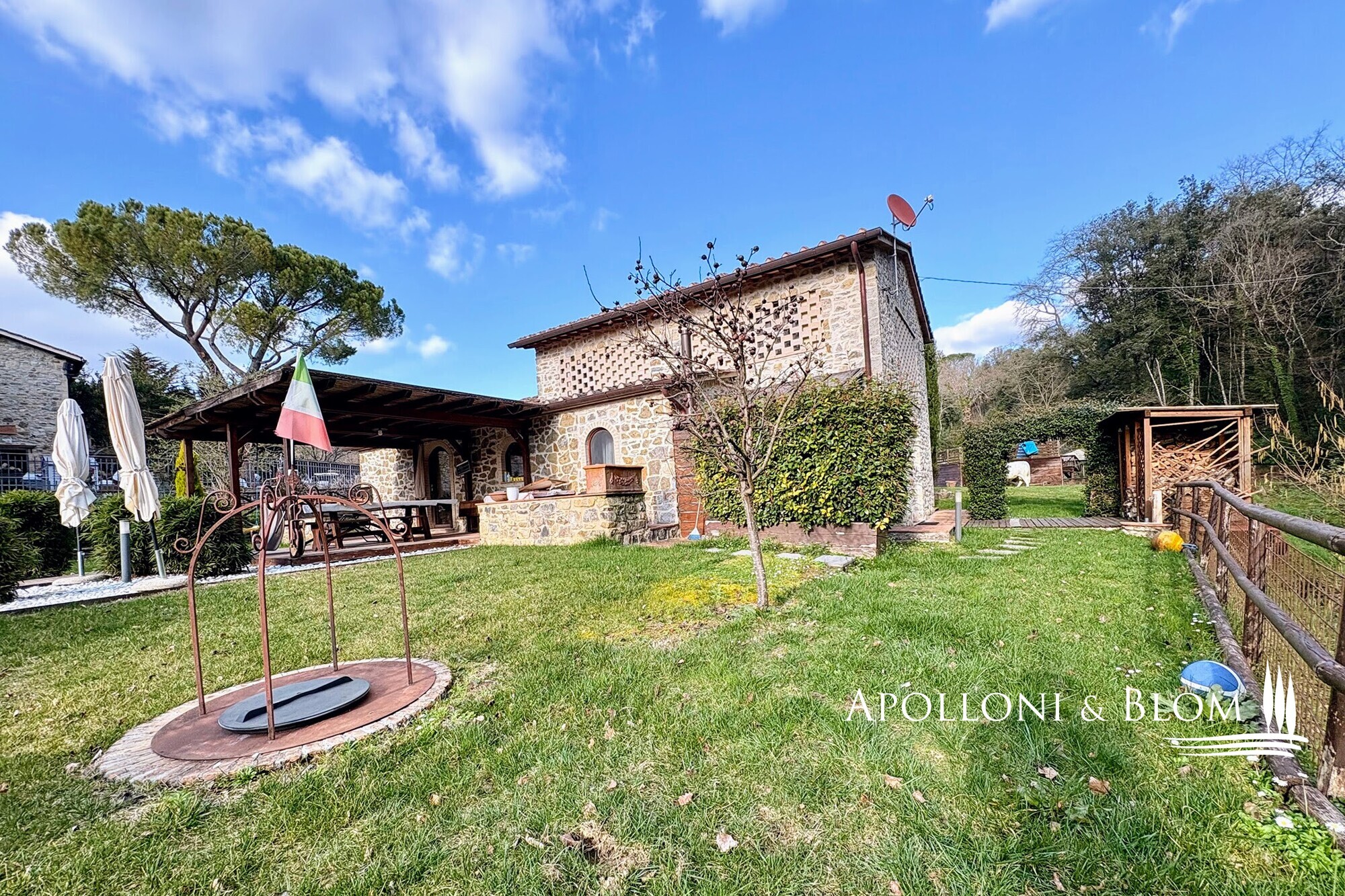 Restored rustic country house with one hectare of parkland, stream, private swimming pool and timber outbuildings for sale in Castellina in Chianti. Nestled in a valley carved by a picturesque stream, we are pleased to offer for sale a magnificent Tuscan stone barn of approximately 200 sq m/2,153 sq ft, expertly restored to the highest standards with outstanding energy efficiency (Energy Class A4). The exterior is distinguished by elegant exposed stone facades, enhanced by generous arched openings that flood the interiors with natural light, and decorative brick grilles in perfect keeping with local architectural tradition. The property is surrounded by a private park of approximately one hectare/2.47 acres, immaculately maintained, comprising woodland and an olive grove that extends beyond the stream, ensuring complete privacy. Outdoor amenities include a private above-ground swimming pool, a dining terrace with a wood-fired oven and barbecue, and a covered parking area with a timber canopy. The interiors offer a well-considered layout. On the ground floor, a loggia leads into the living and dining area, connected to a fully fitted masonry kitchen. Two steps down, an impressive sitting room opens up, featuring an open fireplace, polished resin floors, and exposed timber-beamed ceilings. A utility room and a bathroom with bath complete this level. The first floor, accessed via a staircase of contemporary design, houses the sleeping accommodation: two bedrooms and a second bathroom with shower. All rooms are finished in wood-effect porcelain stoneware and fitted with high-quality aluminium triple-glazed windows with mosquito screens. This property is ideal for those wishing to live immersed in nature without sacrificing modern comfort ,perfectly suited as a principal residence or as an exceptional holiday rental investment. PROPERTY Ref: CNT3575Location: Castellina in Chianti, Province: Siena, Region: TuscanyType: restored stone barn of approx. 200 sq m/2,153 sq ft, arranged over two floors, with garden, loggia and swimming poolEnergy Efficiency Rating: A4Annex: timber shed for firewood and garden equipYear of construction: 1700Year of restoration: 2010Conditions: excellentLand/Garden: 1 hectare/2.47 acres divided between parkland, woodland and olive groveTerrace/Balcony: external loggia and paved terrace with wood-fired oven and barbecueSwimming pool: private, above-ground, 5 x 3 mParking: covered canopy for 3 cars + open parking (4 spaces total)Utilities:Fixed telephone network: availableInternet: available (ADSL, cable, satellite TV, mobile network)Heating: pellet hydro-stove and hot/cold air-conditioning systemWater: mains city supply + natural spring well + rainwater collection well (electric boilers for summer use)Electricity: availableWater waste: Imhoff tankDistance from services: 7 km/4.3 miles (Castellina in Chianti and Poggibonsi)Distance from main airports: Florence 59 km/37 miles, Pisa 98 km/61 miles, Perugia 147 km / 91 milesGravel road: 1 km/0.6 milesLayout:Ground Floor: loggia, entrance into sitting/dining room, masonry kitchen, sitting room with open fireplace, 1 bathroom with bath, utility roomFirst Floor: 2 bedrooms, landing, 1 large bathroom with shower