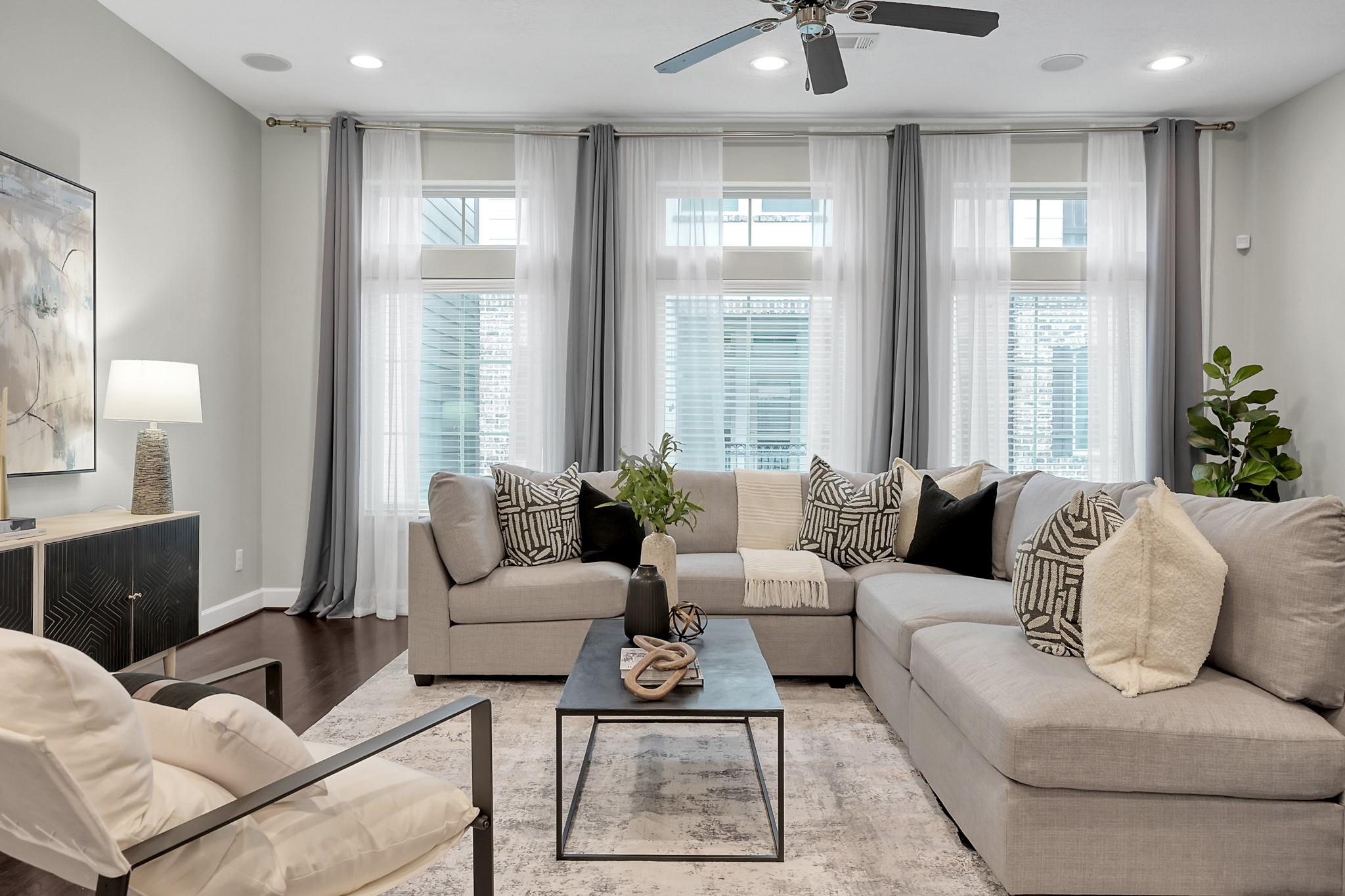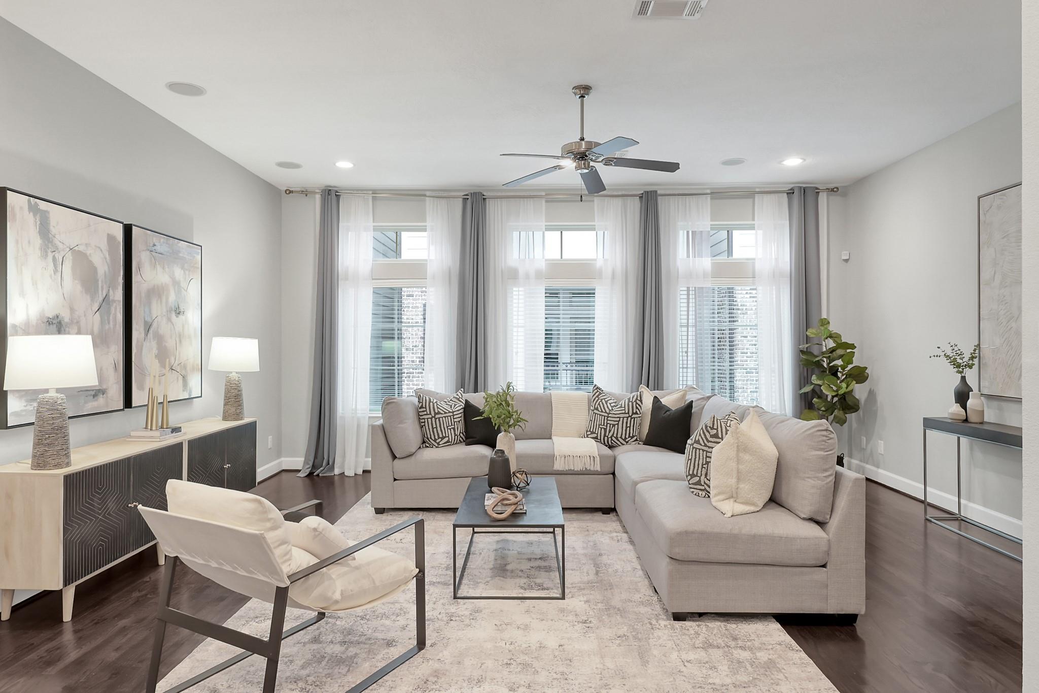 For Sale! 3-story home in the sought-after Greater Heights area. Tri-level, 3-bed, 3.5-bath with open concept, hardwood floors, and natural light. First floor: bedroom with en-suite full bath, 2- car garage with Tesla charger. Second floor: modern kitchen with stainless steel appliances, breakfast bar, dining area with balcony, wine bar, and spacious living room. Third floor: two bedrooms with walk-in closets and en-suite baths. Primary suite features a luxurious bath with double sinks, granite countertops, travertine flooring, soaking tub, separate shower, and private toilet room. Easy access to freeways 610, I-10, and I-45 North. Close to stores, schools, parks, and restaurants. Just one block from the Heights hike and bike trails. Your ideal home awaits! Contact me for details!