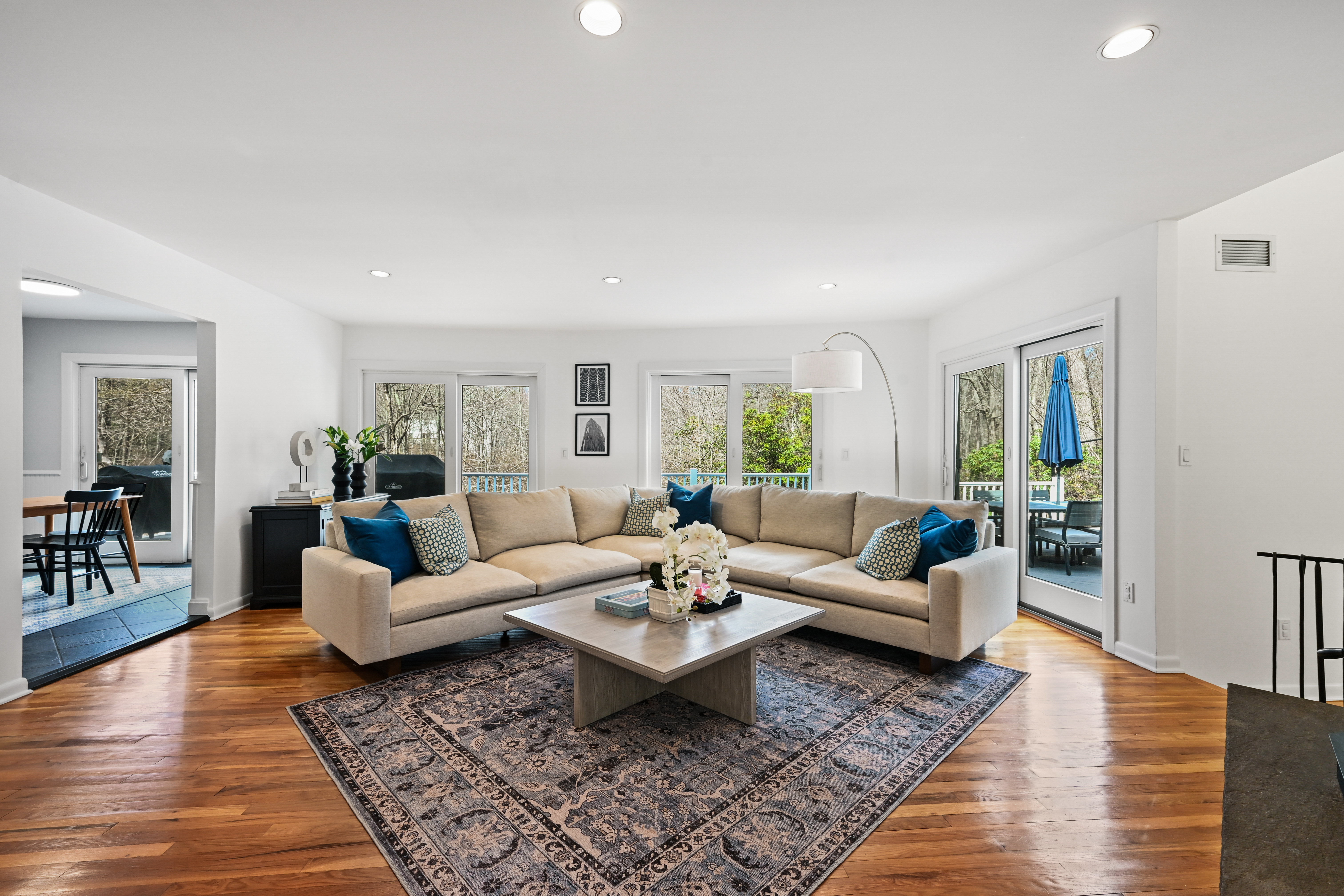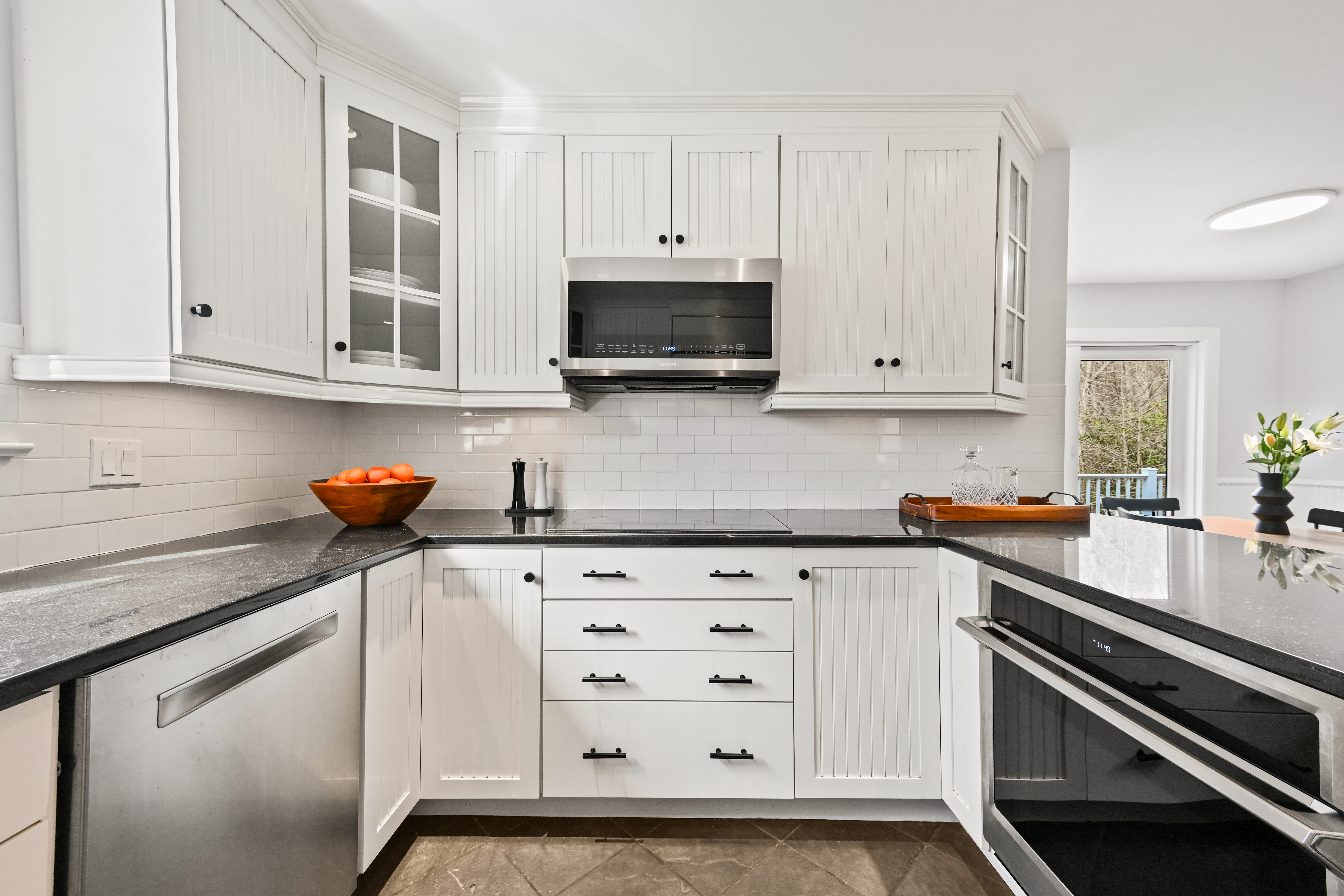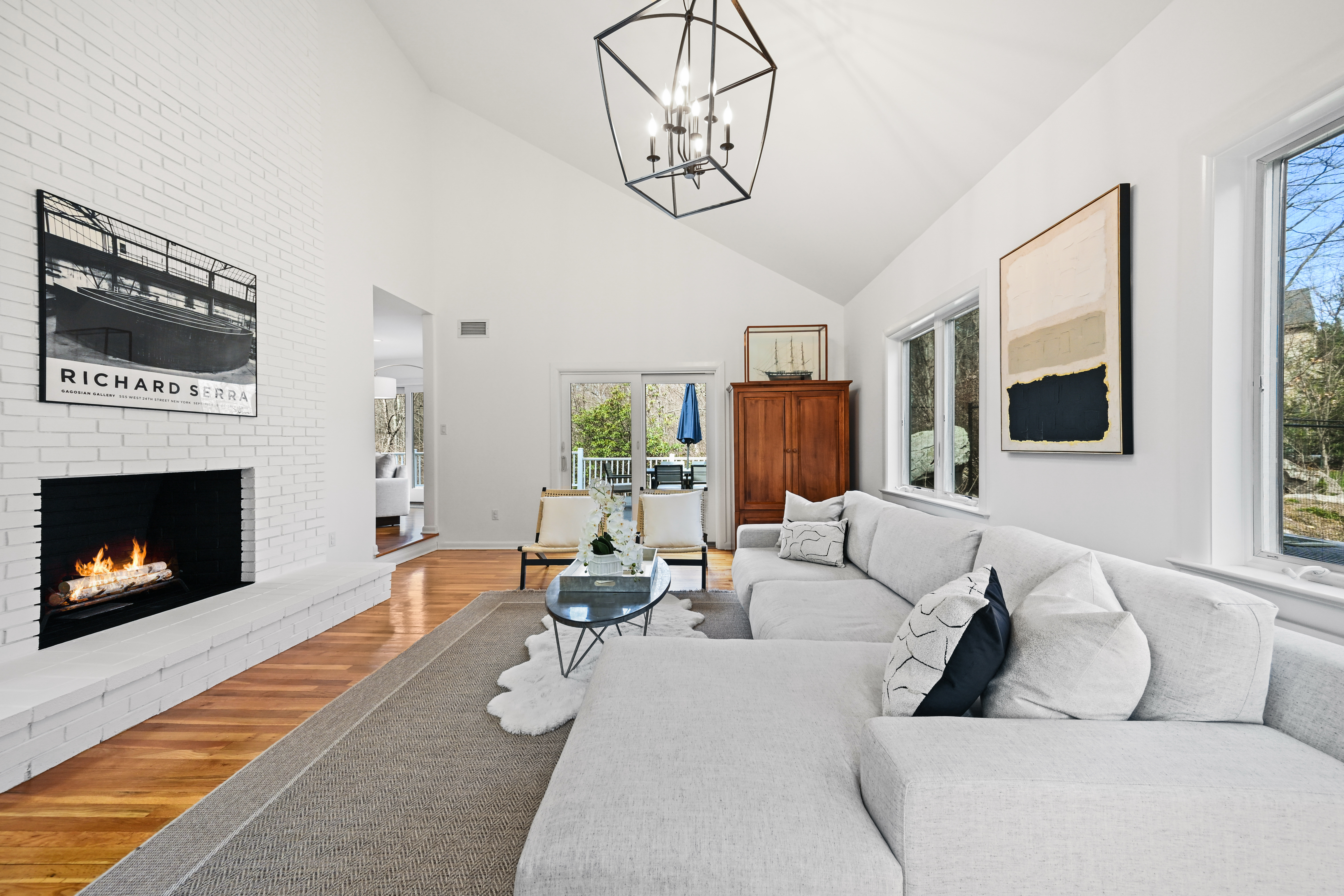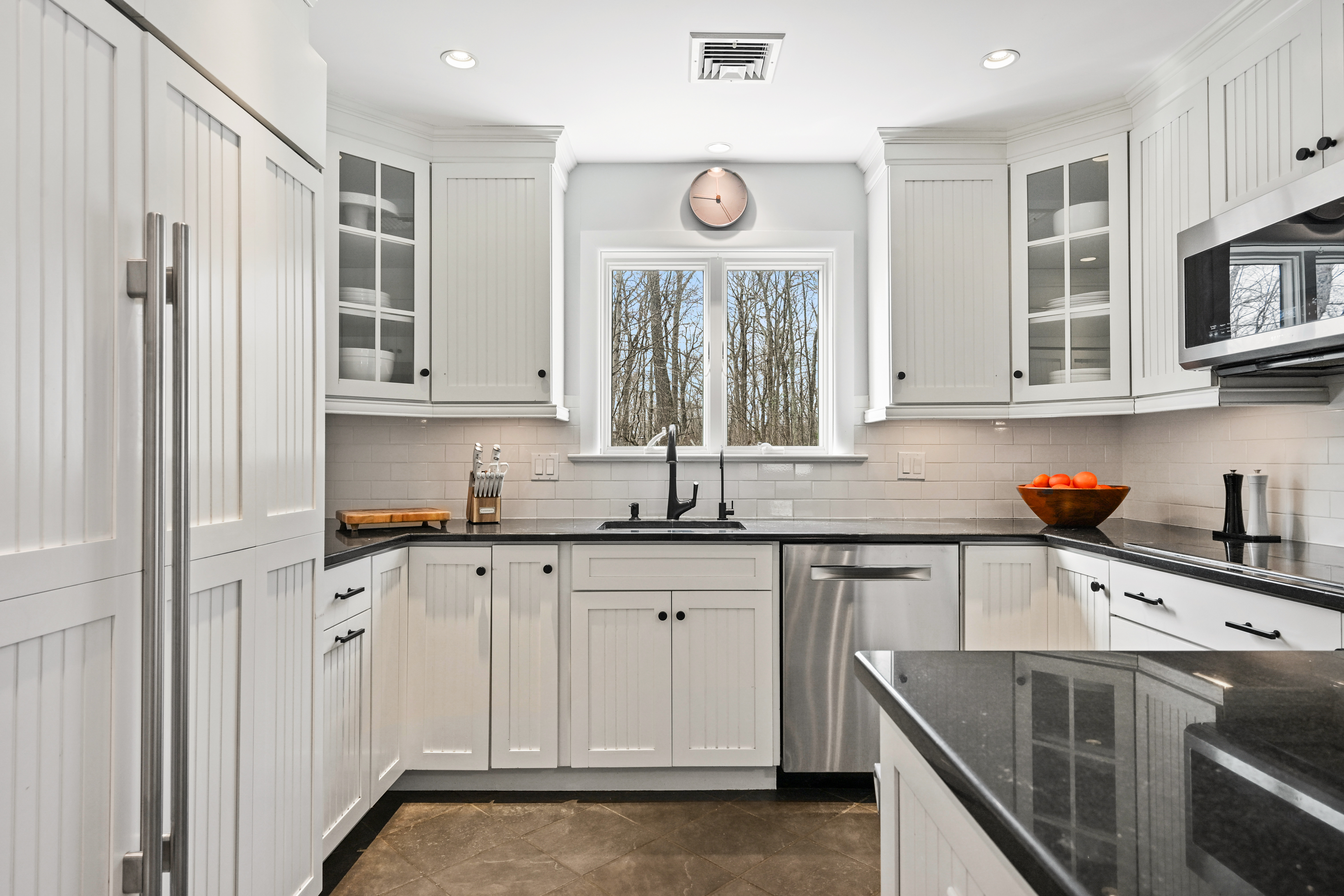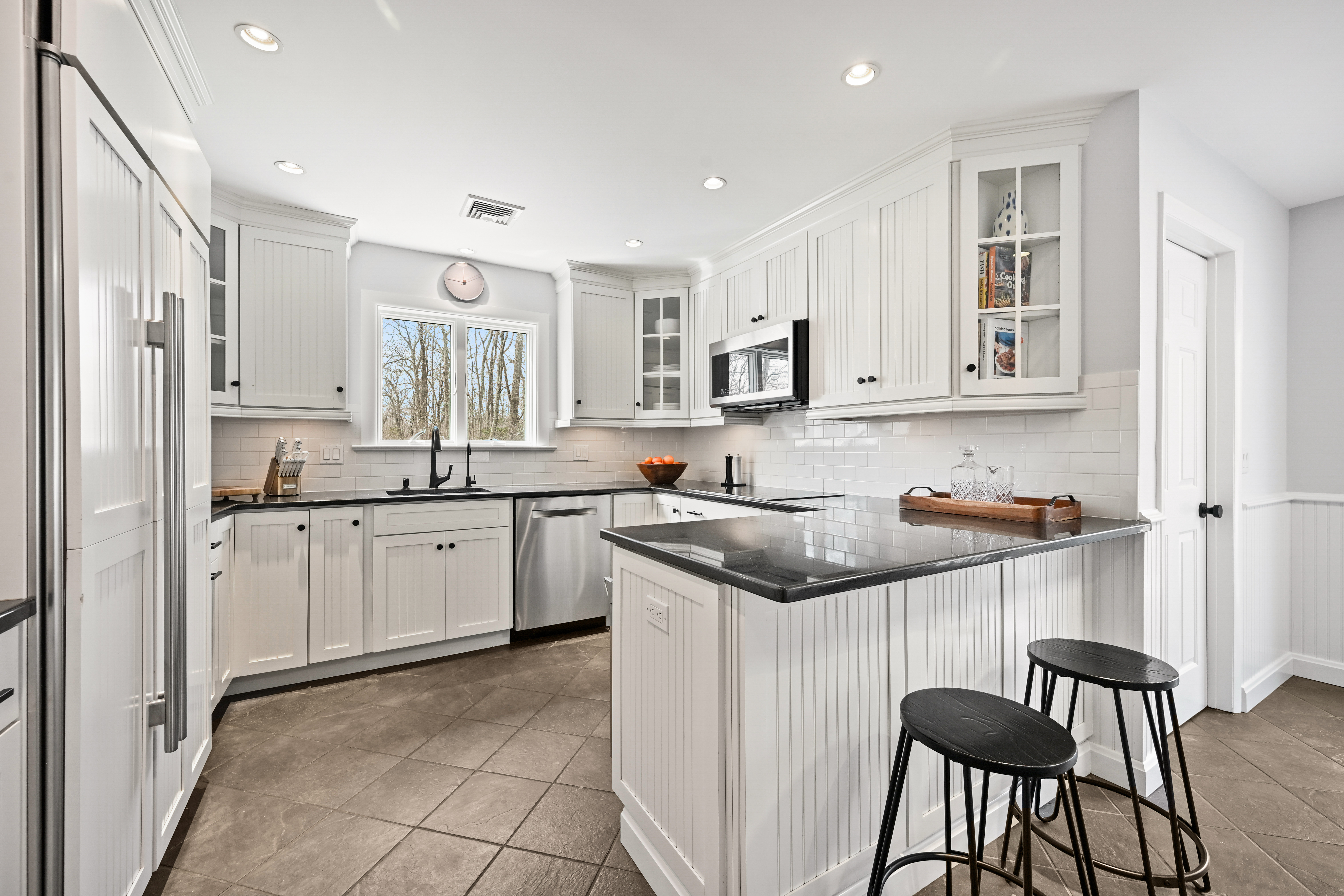Set along a quiet private drive in North Stamford, this thoughtfully updated home offers a rare sense of calm, privacy, and effortless living. Positioned atop a gentle rise and backing to protected wetlands, the setting is both peaceful and enduring-surrounded by private, untouched land. Recent improvements enhance both longevity and ease, including Hardie Board siding, Trex decking, and a new roof, skylights, gutters, and guards. Fully paid solar panels support an energy-conscious lifestyle. Inside, the home is defined by light and openness. Skylights and expansive windows fill the space with soft natural brightness, while vaulted ceilings in the sitting room and primary bedroom add volume and airiness. Two working fireplaces, one a wood-burning stove, create warmth and character throughout. Radiant heated floors in the kitchen and advanced water filtration systems elevate everyday comfort. An oversized two-car garage offers added functionality, while the surrounding landscape provides a lasting sense of stillness and privacy-all just minutes from the Merritt Parkway and downtown Stamford.