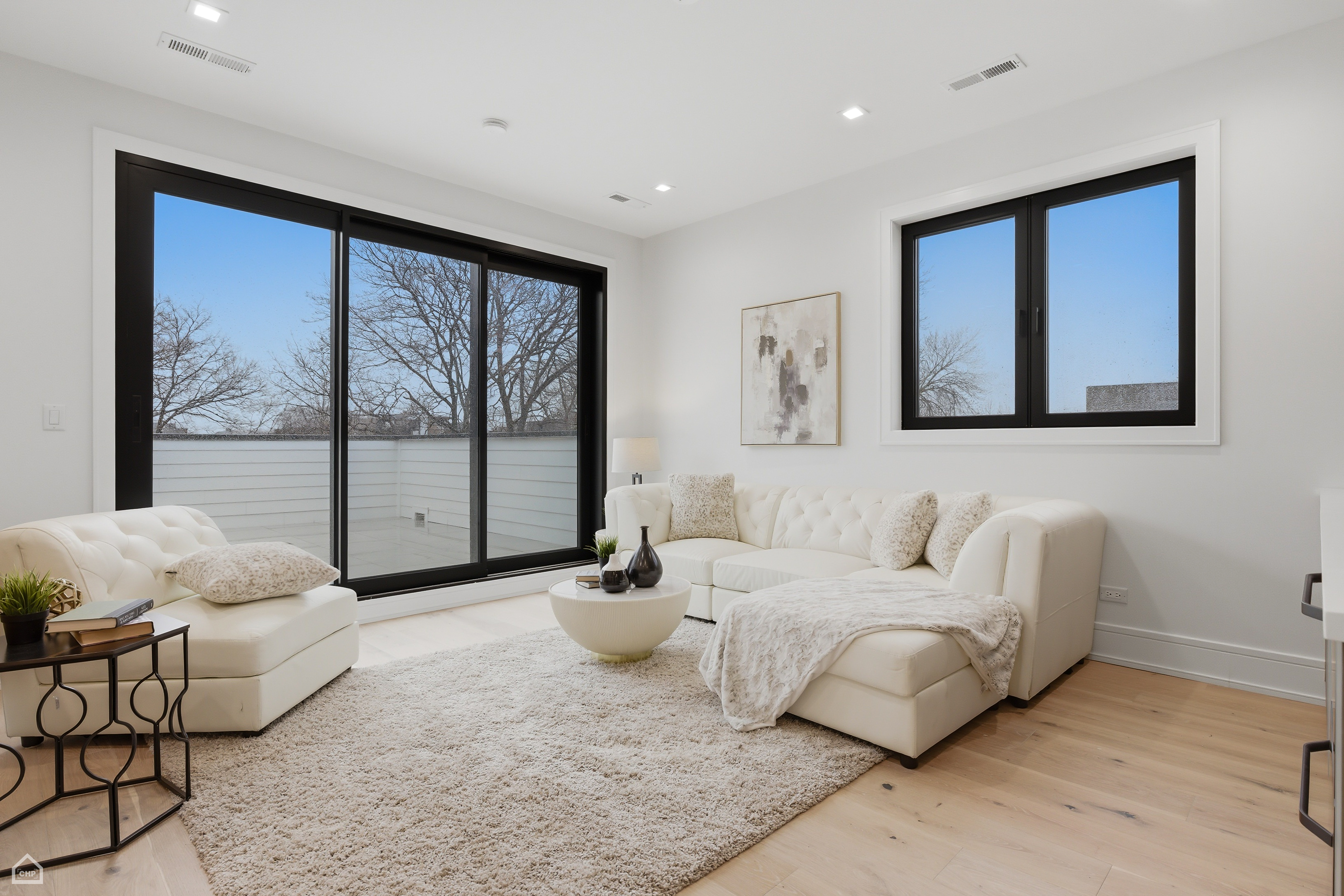 99% NEW CONSTRUCTION (enjoy lower taxes) - 1 WALL LEFT TO GIVE THE HOME 2 FEET OF MORE WIDTH. RARE 3 LEVELS ABOVE GROUND HOME - OVER 4200 SQFT. 6 BED + 5.5 BATHS (4 BEDS ABOVE GRADE). RARE ZONING IN BUCKTOWN THAT IS 1 BLOCK AWAY FROM HOLSTIEN PARK. SHORT WALK TO BLUE LINE, PULASKI SCHOOL. QUIET STREET THAT ONLY RUNS 1 BLOCK (NO TRAFFIC). ALL HIGH LEVEL FINISHES - 1ST FLOOR HAS OPEN KITCHEN WITH LARGE HEART OF THE HOME THAT OPENS UP TO GRILL DECK AND THEN UP TO GARAGE ROOF TOP DECK. SECOND FLOOR HAS 2 ON SUIT BEDROOMS, LAUNDRY AND LARGE MASTER BEDROOM SUIET (EVERY BEDROOM HAS ITS OWN BATHROOM). 3RD FLOOR (BONUS FLOOR) HAS 3RD FAMILY ROOM W/ BAR THAT WALKS OUT TO EAST FACING ROOF TOP DECK WITH FULL BATHROOM AND LARGE BEDROOM (ALMOST LIKE ITS OWN APARTMENT ON THE 3RD FLOOR). LOWER LEVEL HAS LARGE FAMILY ROOM, ANOTHER WET BAR. WHOLE BASEMENT HAS RADIANT HEATED FLOORS, AND 2 BEDROOMS. IN ALL - 3 ROOF DECKS, 6 BEDROOMS, 3 FAMILY ROOMS, 2 WET BARS, 5 AND HALF BATHS AND 2 CAR GARAGE.
