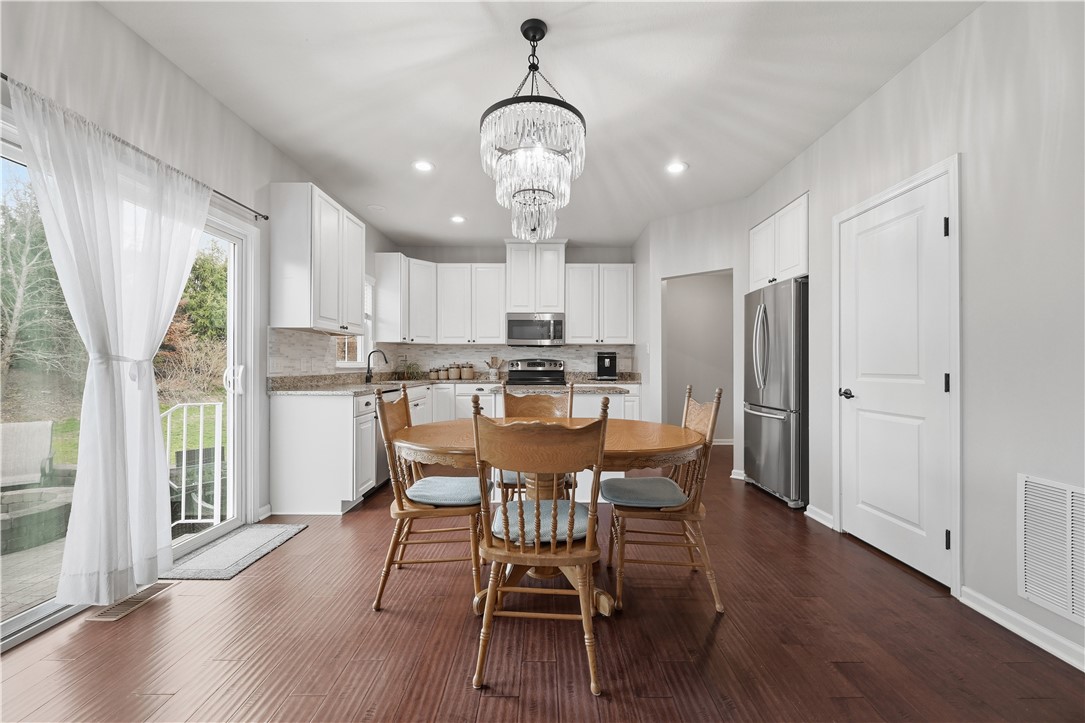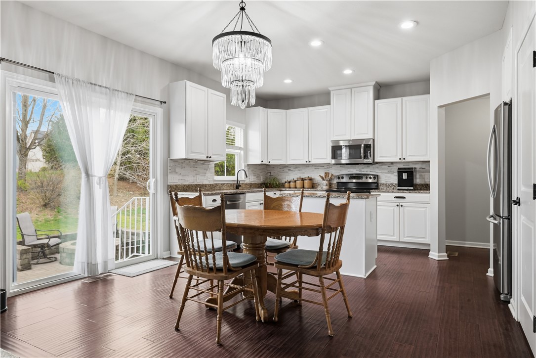 Welcome to 2704 Pittsburgh Ct in the highly desirable Ridge Forest community of Franklin Park! This move-in ready home offers a modern, open-concept layout with today's most sought-after features. The main level showcases engineered hardwood flooring, crown molding, updated lighting, a custom fireplace, and a versatile flex space - perfect for a home office or playroom. The bright and spacious family room flows seamlessly into the fully updated kitchen, designed for both everyday living and entertaining. Highlights include granite countertops, a center island, marble backsplash, and stainless steel appliances - everything today's buyers are searching for. From the kitchen, step outside to your private outdoor retreat featuring a stone patio with fire pit and a flat backyard - perfect for entertaining or relaxing. Upstairs, you'll find four generously sized bedrooms, ample closet space, and the convenience of a second-floor laundry room. The spacious primary suite features a large walk-in closet and a spa-like en-suite bath with dual vanity, soaking tub, separate shower, and stylish tile flooring. The tastefully finished basement adds valuable living space, ideal for a media room, home gym, or guest area, complete with a bonus room and half bath. Bonus new carpet and freshly painted. Located just minutes from I-279, shopping, dining, this home truly checks all the boxes!