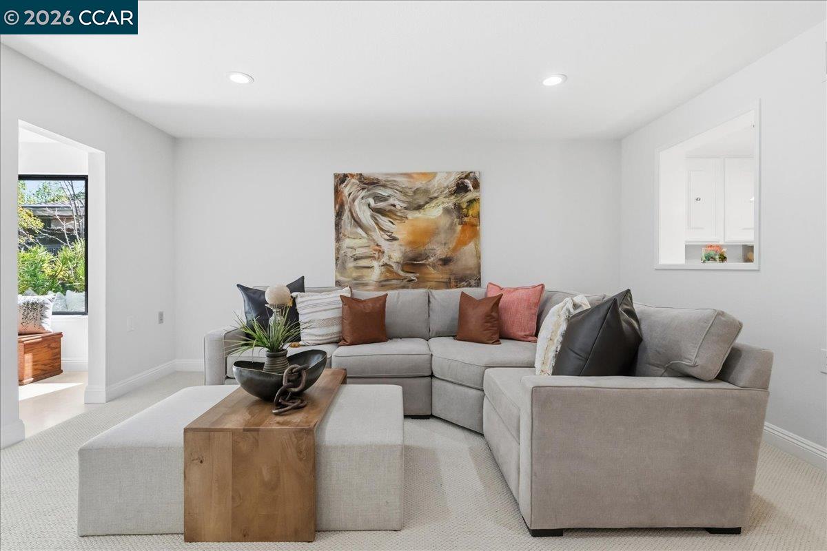 Tucked away among the trees in a quiet, park-like setting, this beautifully updated Piedmont Townhouse offers the perfect blend of space, comfort, and effortless living. Boasting over 1,900 square feet, the thoughtfully designed floor plan features three bedrooms and two-and-a-half tastefully remodeled bathrooms, a convenient first-floor level-in bedroom suite, ideal for guests, as an office, or easy one-level living when desired. Bathed in natural light, the home welcomes you with fresh paint, new carpeting, smooth ceilings, recessed lighting, washer/dryer, and an expansive living area that flows into a stunning enclosed sunroom with Travertine tile, perfect for relaxing, entertaining, or simply enjoying the tranquil views. The oversized primary suite is a true retreat, complete with a spacious bedroom, private open balcony, and a luxurious spa-like bath featuring a large tiled step-in shower. Move-in ready and thoughtfully maintained, this lovely townhouse is nestled in the highly sought-after Rossmoor community, renowned for its vibrant lifestyle. Privacy, comfort, and an active lifestyle, all in one wonderful home!