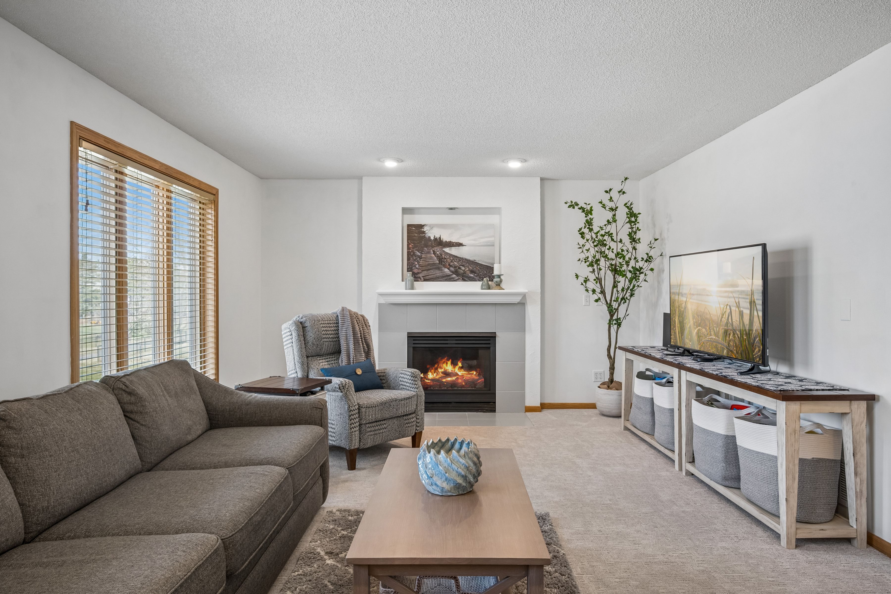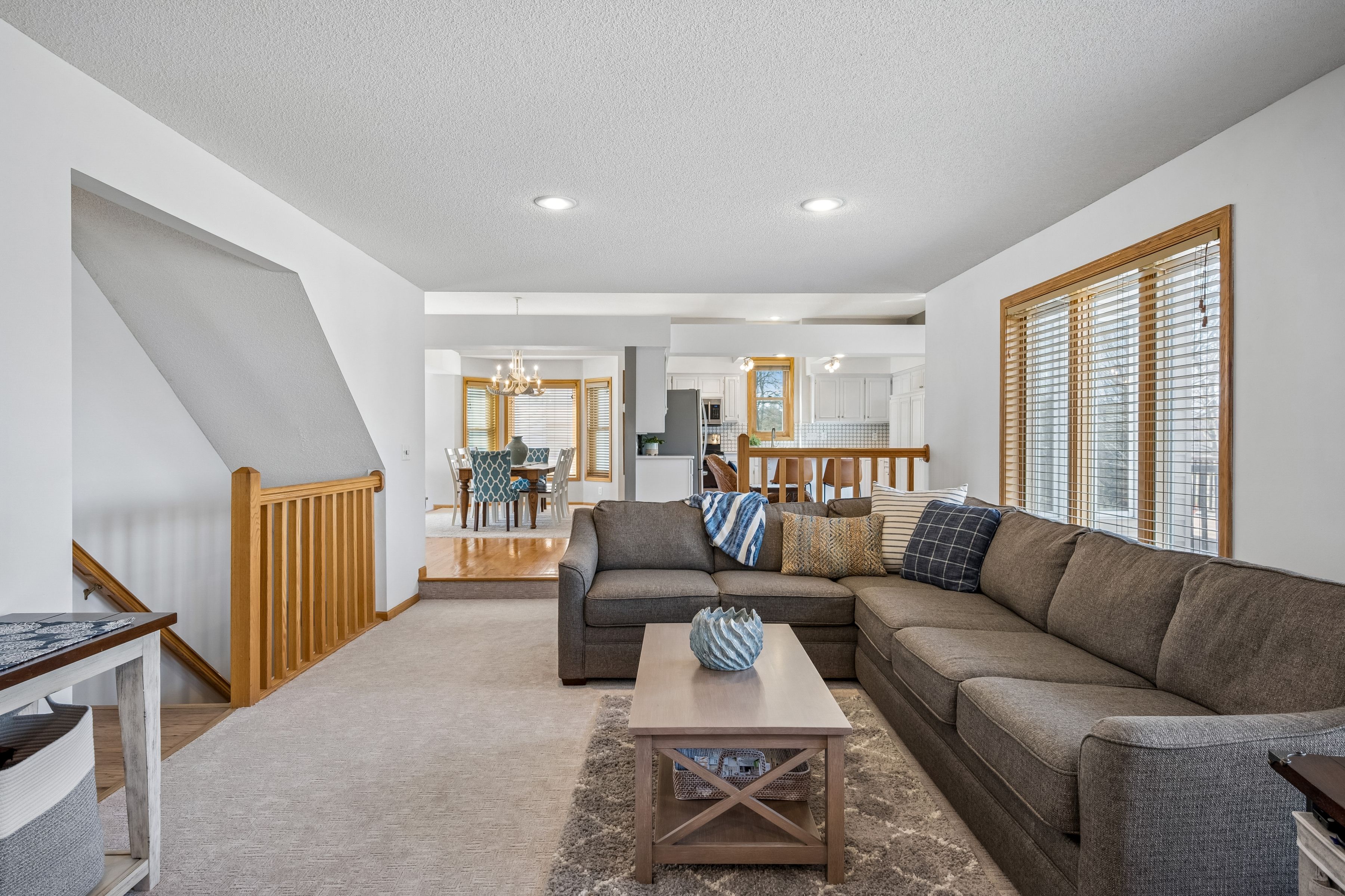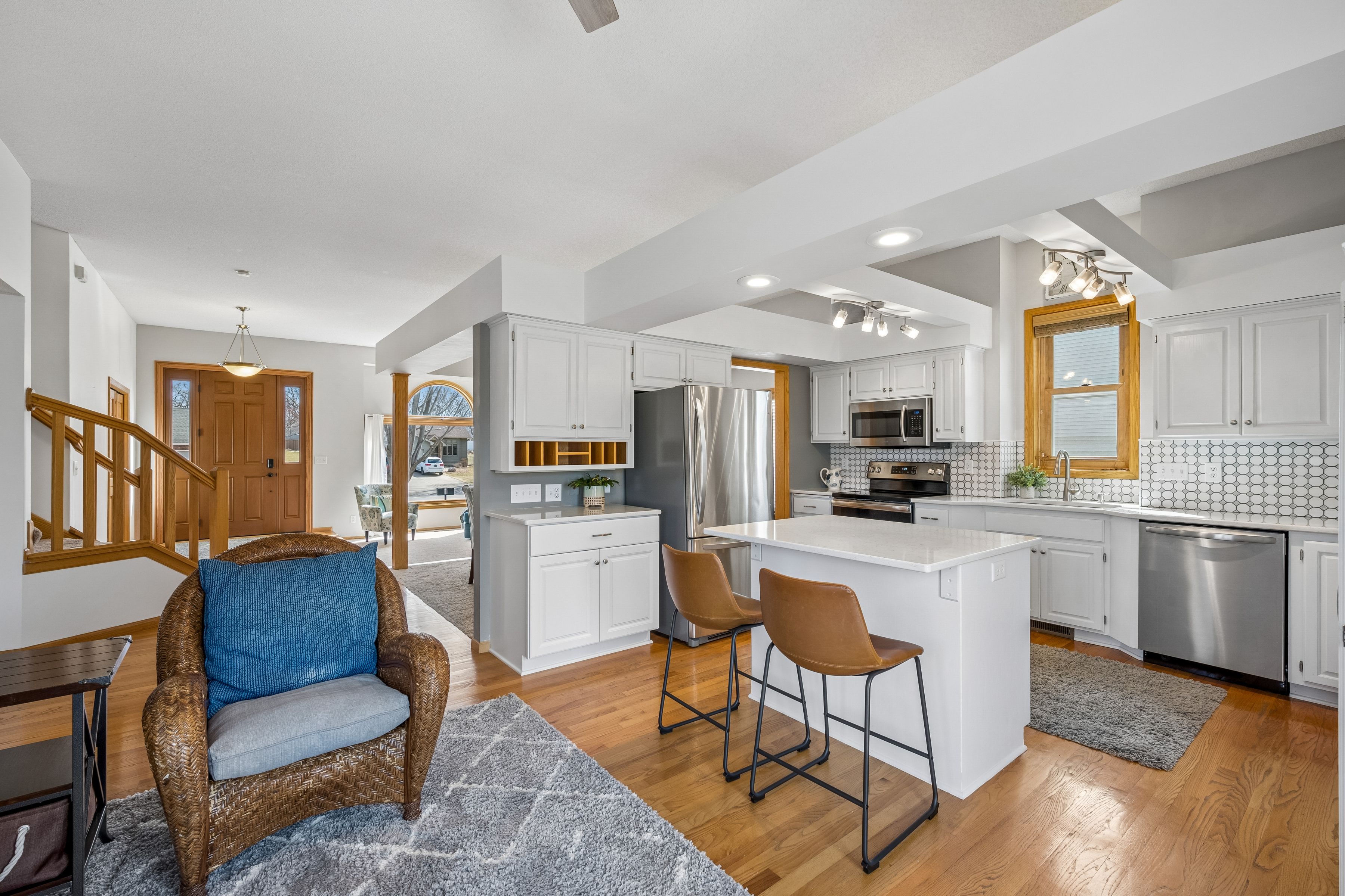 Set on a picturesque lot in Ramsey’s sought-after River’s Bend, this beautifully updated five-bedroom, four-bath home blends modern elegance with everyday comfort. Soaring ceilings and light-filled spaces define the main level, featuring an eat-in kitchen, formal dining, private office, and inviting living area with a gas fireplace.Upstairs, the serene primary suite offers a newly remodeled, spa-inspired bath, alongside two additional bedrooms and a full bath. The walkout lower level is designed for entertaining and relaxation, complete with a wet bar, home theater, fitness room, and guest accommodations.Enjoy peaceful evenings on the deck or around the fire pit, with nearby parks, trails, and downtown Anoka just moments away. Refined, functional, and effortlessly inviting—this is River’s Bend living at its finest.