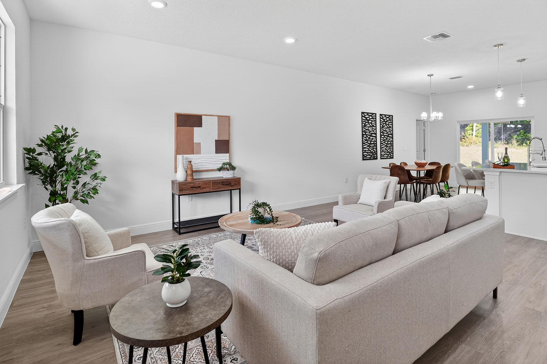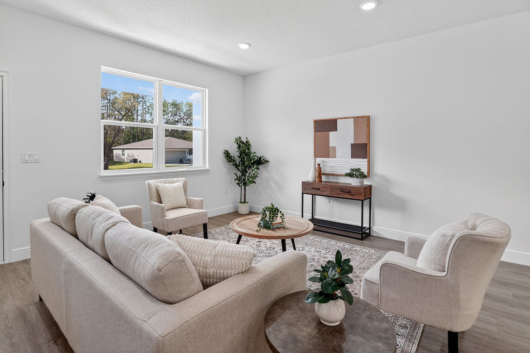 Seller is highly motivated and offering extra incentives, do not miss this opportunity. Discover this stunning, brand-new home in Citrus Springs, perfectly situated with no neighboring properties for added privacy. Located on the Beverly Hills side of Citrus Springs, you are just a short five-to-ten-minute drive from grocery stores, Walmart, Target, Primary, Central Ridge Elementary School and Lecanto Hight School and the new shops at Black Diamond Shopping Plaza. This home features a bright open concept layout with a spacious kitchen island and bar seating, stylish shaker cabinets, a pantry and modern stainless-steel appliances. The split floor plan offers great privacy, with the primary suite on one side and the guest bedrooms on the other. Go outside to a peaceful backyard, plus a covered patio that can easily be converted into a screened-in space, ideal for relaxing or entertaining. Citrus Springs is a deed-restricted community with no HOA fees and offers great amenities including the Withlacoochee State Trail for biking and walking, tennis courts, parks, a library and a community center. You are also just minutes from freshwater springs, boating, fishing, restaurants, shopping and more.