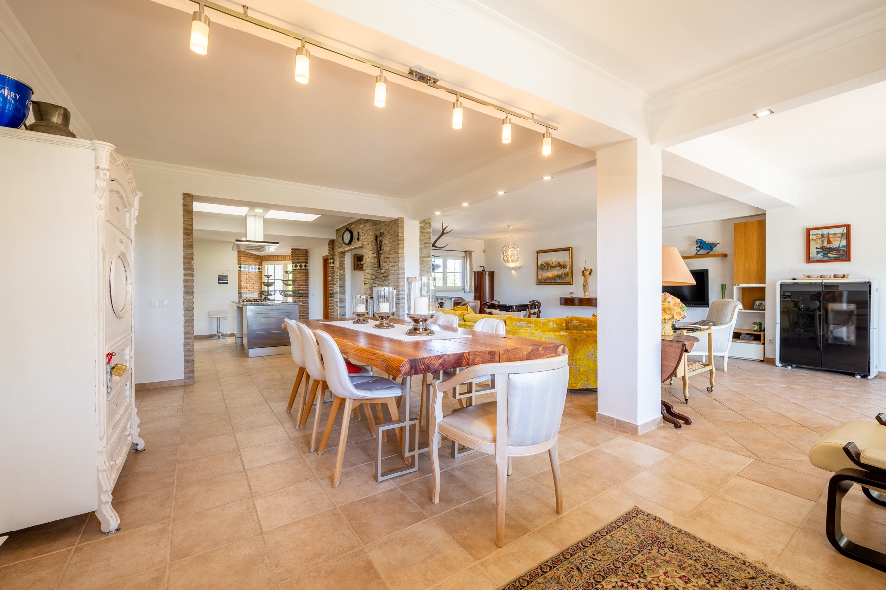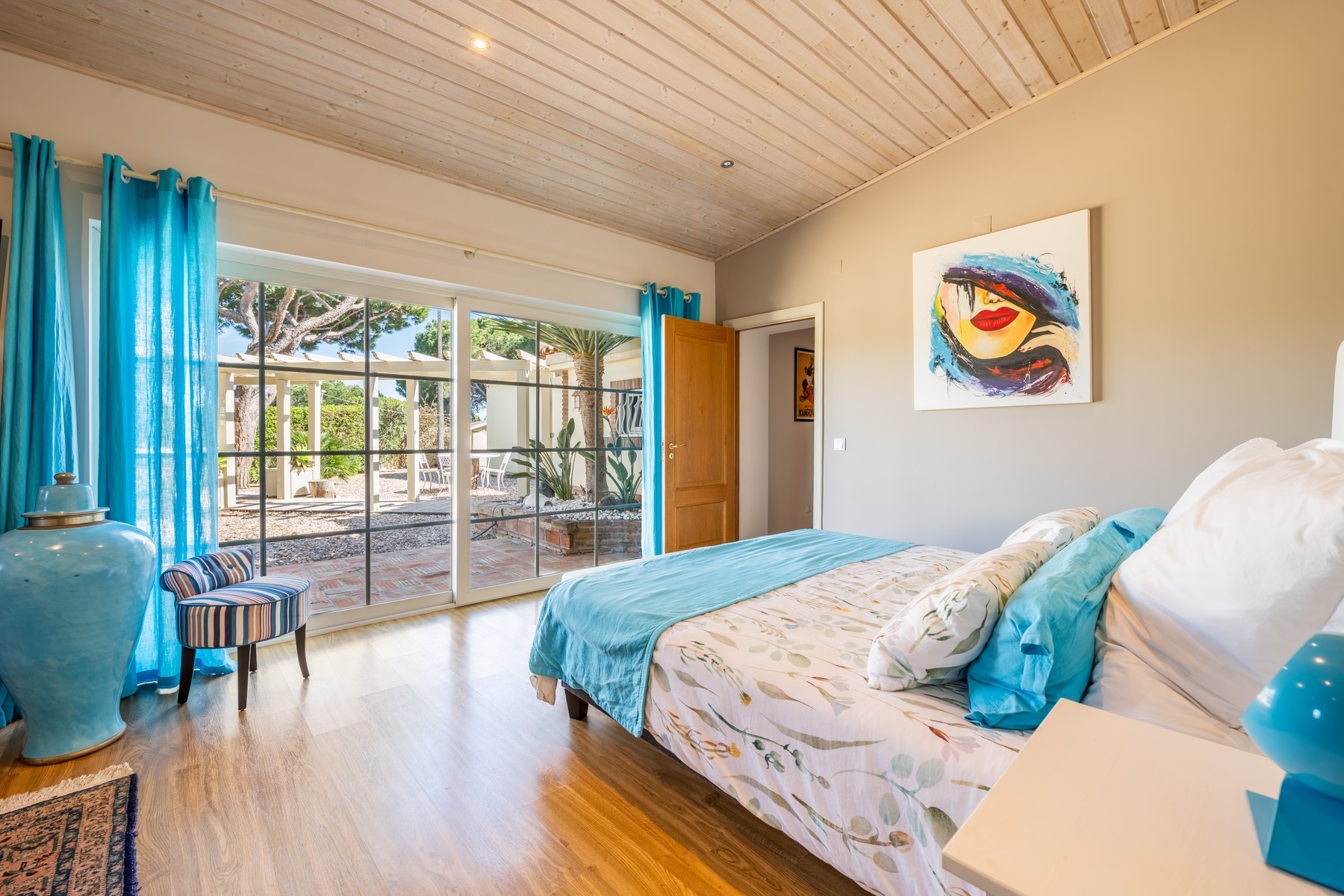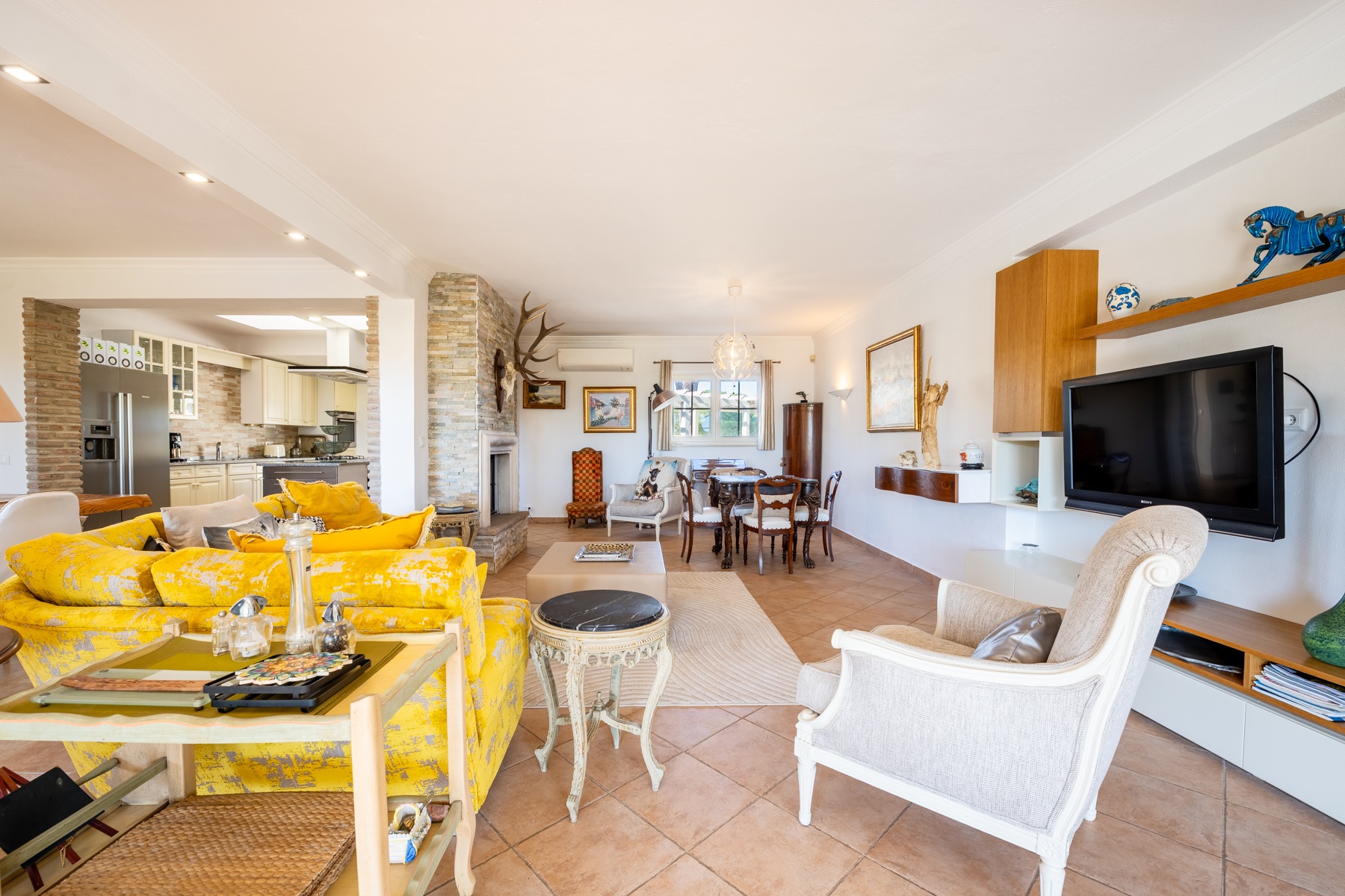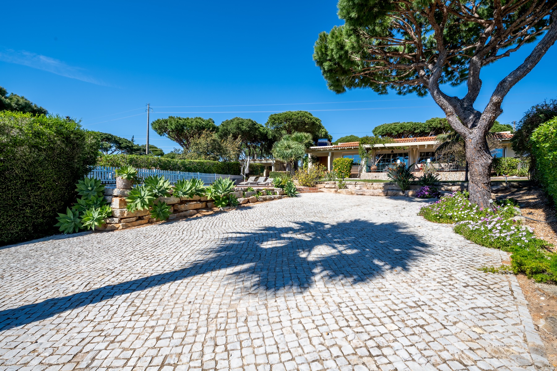 Between the countryside and the sea lies a property that redefines living in the Algarve. It is a true retreat where light, privacy and tranquility coexist in perfect harmony. Just minutes from Quarteira and its golden beaches, this villa stands out for its unique presence and seamless integration into the surrounding landscape. Nestled in a carefully designed garden and embraced by nature, it offers a rare sense of serenity without sacrificing proximity to essential amenities. Its excellent south-facing orientation ensures natural light throughout. Inside, the architecture blends contemporary lines with rustic touches full of character such as the striking schist stone wall and elegant double fireplace, creating a sophisticated yet welcoming atmosphere. The generous living areas flow effortlessly to the outdoors, fostering a continuous connection between interior and garden. The private quarters feature spacious suites and elegantly arranged bathrooms, offering comfort, functionality and total privacy for family and guests. Outside, the villa reveals its full charm with an inviting swimming pool, relaxing seating areas, a dining area with barbecue and a special corner with a jacuzzi perfect for moments of pure leisure. The Mediterranean garden, dotted with palm trees and bougainvillea, enhances the serene and elegant ambiance. Equipped with new solar panels and a water well, the villa combines comfort and efficiency, ensuring a sustainable and autonomous lifestyle. More than just a home, this property has its own identity where every detail is designed to provide well-being, privacy and an authentic connection to the Algarve lifestyle.