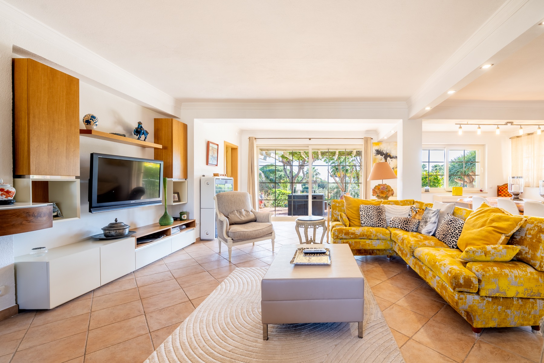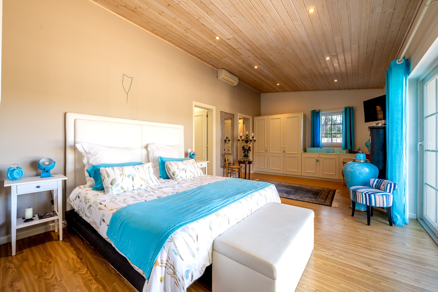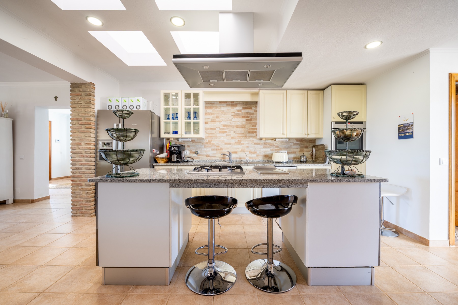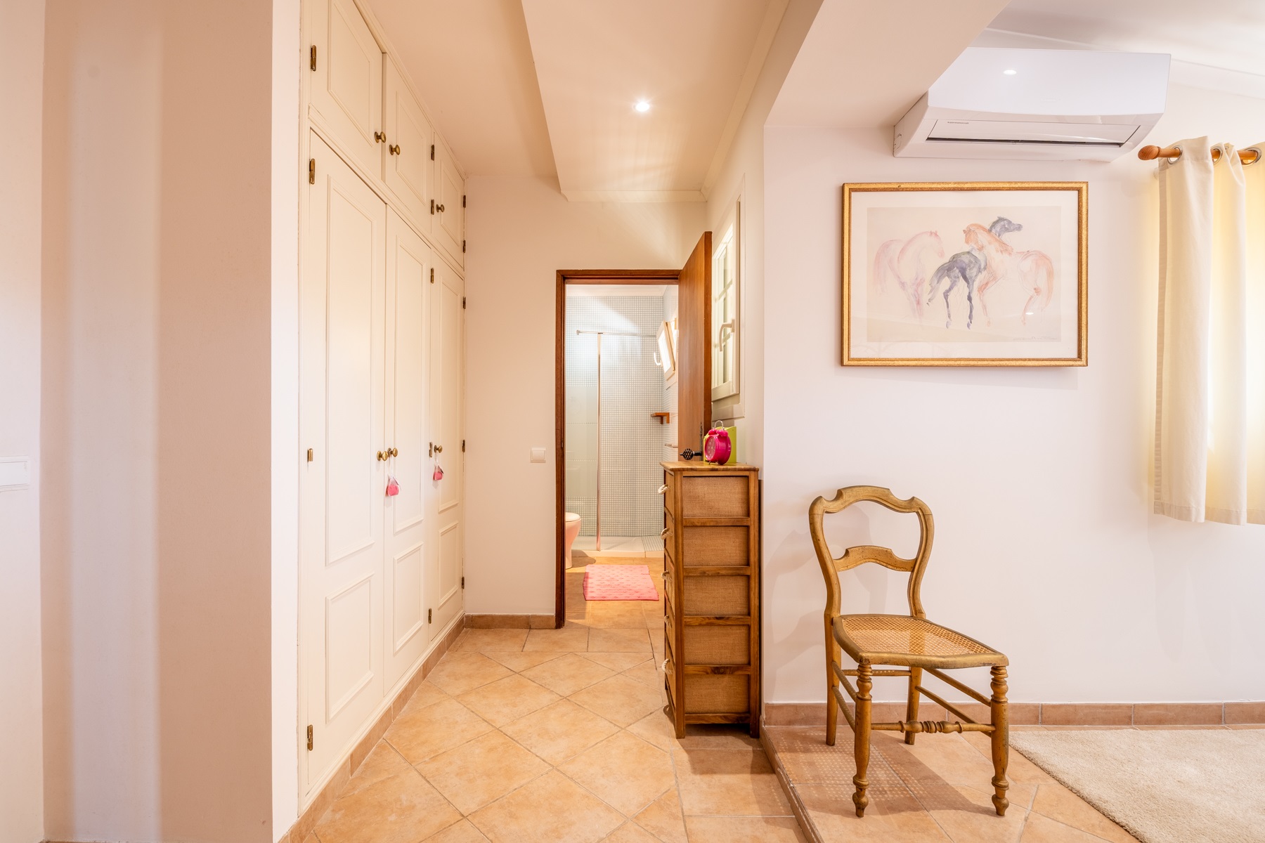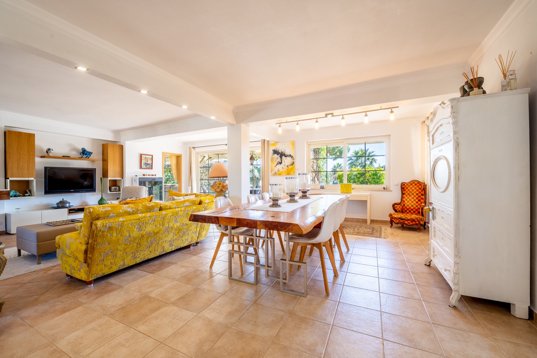 Between the countryside and the sea lies a property that redefines living in the Algarve. It is a true retreat where light, privacy and tranquility coexist in perfect harmony. Just minutes from Quarteira and its golden beaches, this villa stands out for its unique presence and seamless integration into the surrounding landscape. Nestled in a carefully designed garden and embraced by nature, it offers a rare sense of serenity without sacrificing proximity to essential amenities. Its excellent south-facing orientation ensures natural light throughout. Inside, the architecture blends contemporary lines with rustic touches full of character such as the striking schist stone wall and elegant double fireplace, creating a sophisticated yet welcoming atmosphere. The generous living areas flow effortlessly to the outdoors, fostering a continuous connection between interior and garden. The private quarters feature spacious suites and elegantly arranged bathrooms, offering comfort, functionality and total privacy for family and guests. Outside, the villa reveals its full charm with an inviting swimming pool, relaxing seating areas, a dining area with barbecue and a special corner with a jacuzzi perfect for moments of pure leisure. The Mediterranean garden, dotted with palm trees and bougainvillea, enhances the serene and elegant ambiance. Equipped with new solar panels and a water well, the villa combines comfort and efficiency, ensuring a sustainable and autonomous lifestyle. More than just a home, this property has its own identity where every detail is designed to provide well-being, privacy and an authentic connection to the Algarve lifestyle.