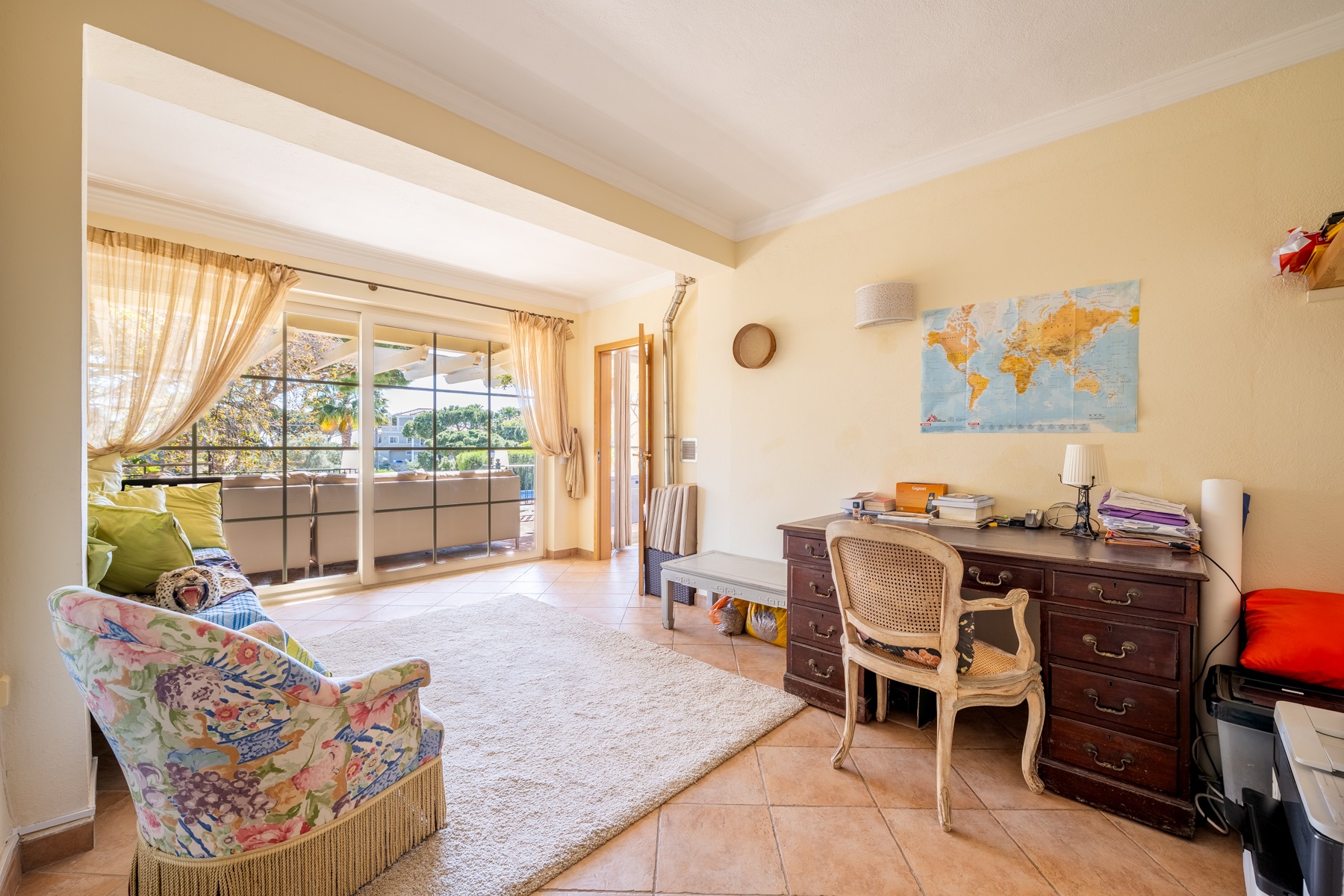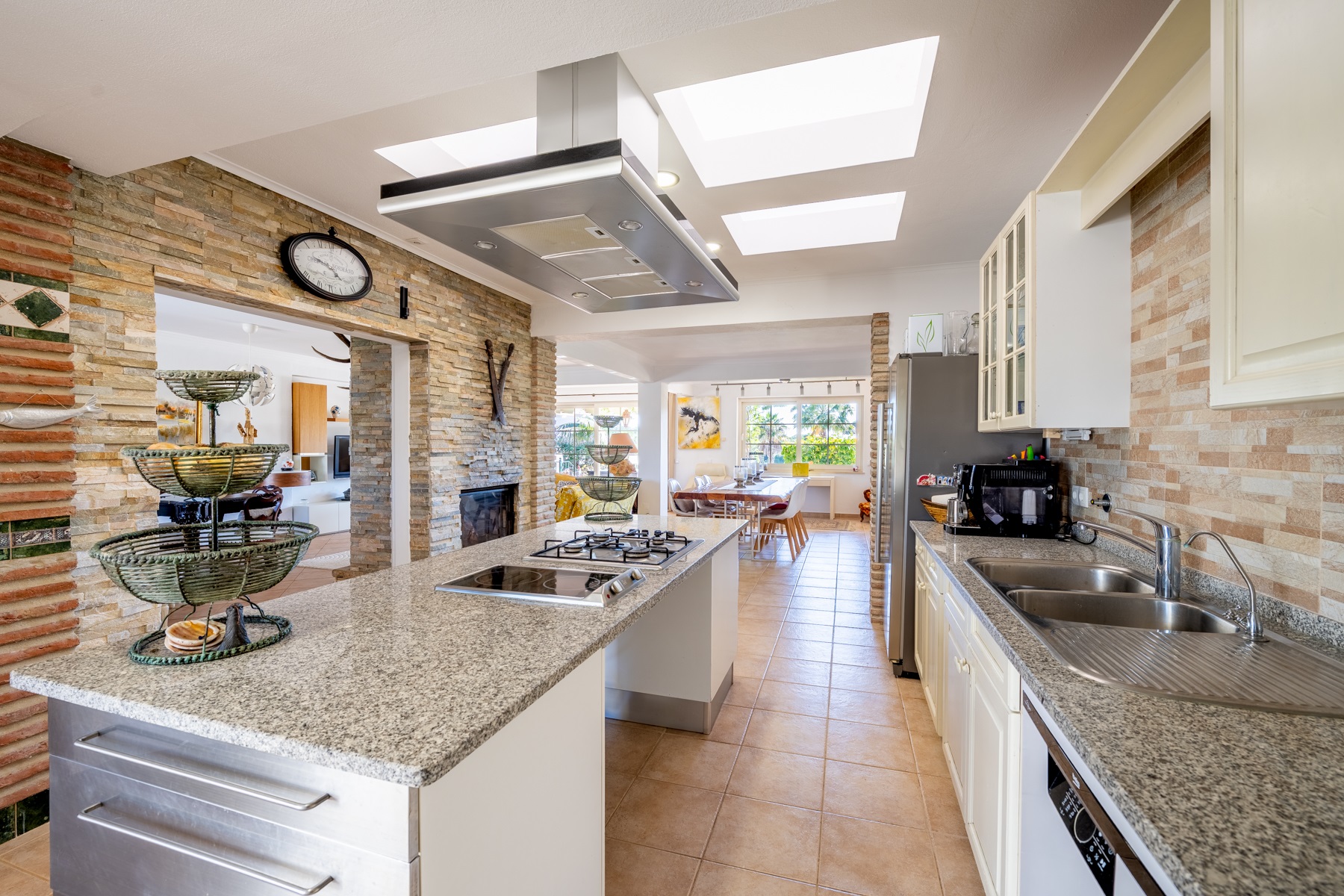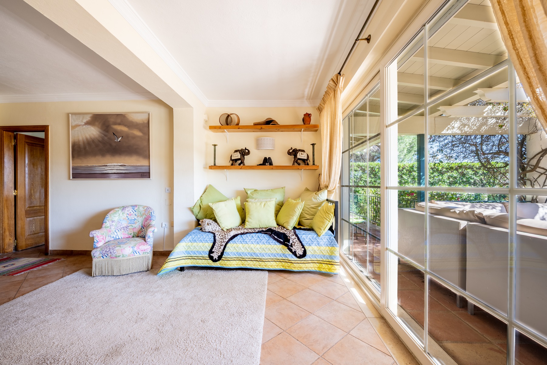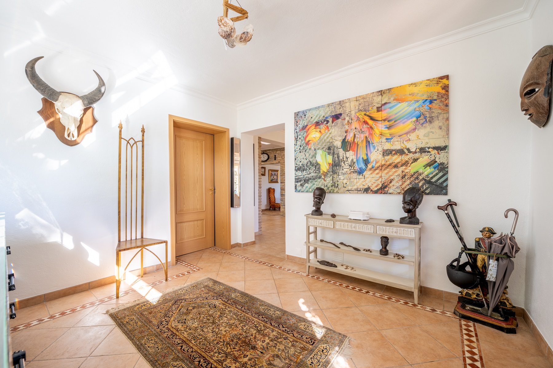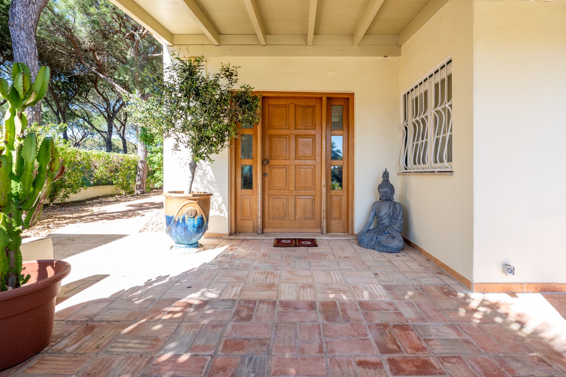 Between the countryside and the sea lies a property that redefines living in the Algarve. It is a true retreat where light, privacy and tranquility coexist in perfect harmony. Just minutes from Quarteira and its golden beaches, this villa stands out for its unique presence and seamless integration into the surrounding landscape. Nestled in a carefully designed garden and embraced by nature, it offers a rare sense of serenity without sacrificing proximity to essential amenities. Its excellent south-facing orientation ensures natural light throughout. Inside, the architecture blends contemporary lines with rustic touches full of character such as the striking schist stone wall and elegant double fireplace, creating a sophisticated yet welcoming atmosphere. The generous living areas flow effortlessly to the outdoors, fostering a continuous connection between interior and garden. The private quarters feature spacious suites and elegantly arranged bathrooms, offering comfort, functionality and total privacy for family and guests. Outside, the villa reveals its full charm with an inviting swimming pool, relaxing seating areas, a dining area with barbecue and a special corner with a jacuzzi perfect for moments of pure leisure. The Mediterranean garden, dotted with palm trees and bougainvillea, enhances the serene and elegant ambiance. Equipped with new solar panels and a water well, the villa combines comfort and efficiency, ensuring a sustainable and autonomous lifestyle. More than just a home, this property has its own identity where every detail is designed to provide well-being, privacy and an authentic connection to the Algarve lifestyle.