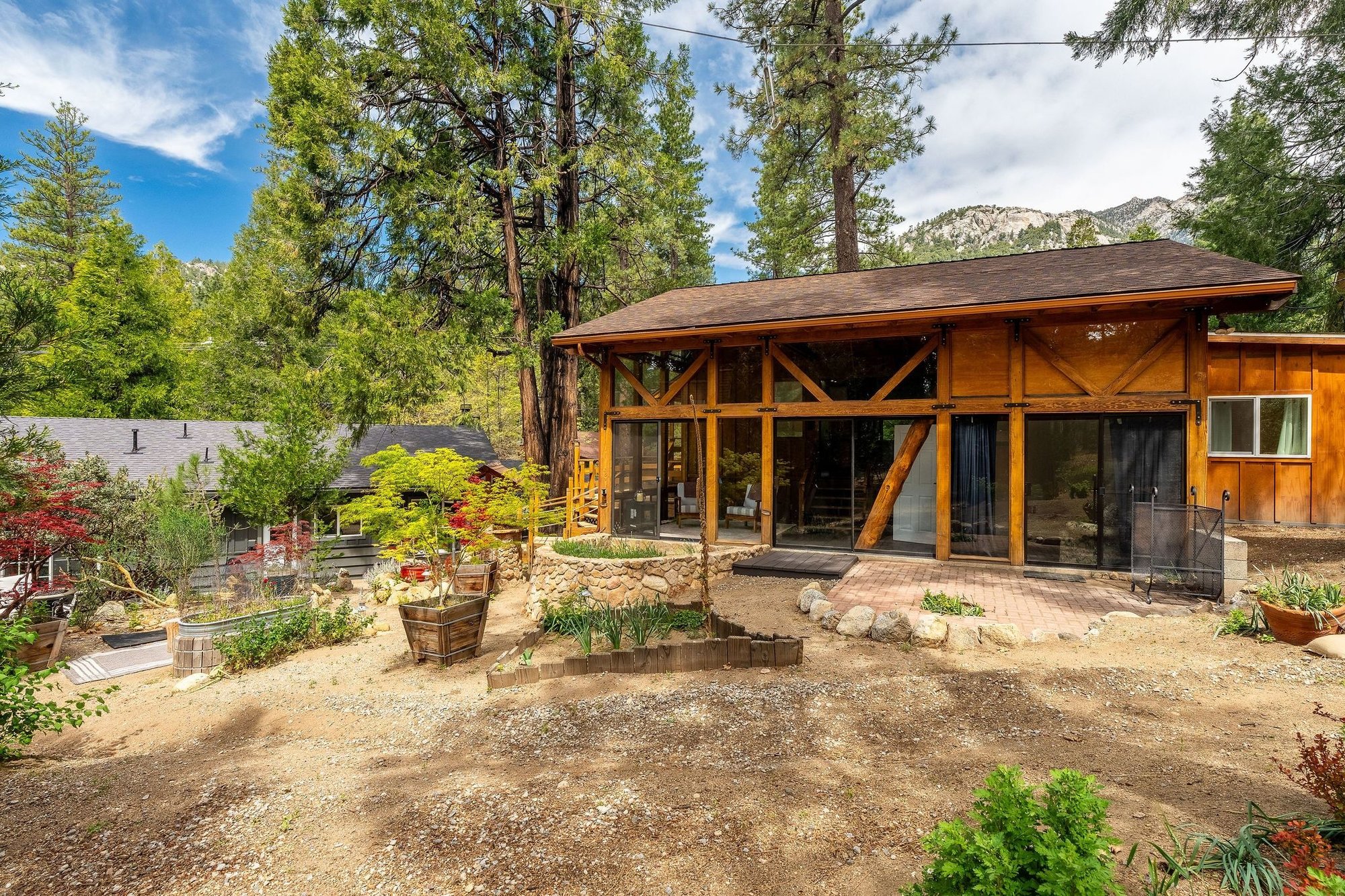 The secondary residence is a truly magical guest cabin designed for flexibility and elevated living, featuring 1 bedroom + Loft, & 2 baths. A dramatic sunlit atrium creates a striking architectural focal point, while the expansive outdoor space opens to an oversized backyard complete with a whimsical play structure and multiple areas for entertaining, relaxation, or stargazing under pristine mountain skies. This exceptional property is perfectly suited for multi-family living, Rental, or a luxurious retreat compound offering both privacy and connection. Enjoy breathtaking views of iconic Suicide Rock and Lily Rock, enhancing the serene alpine setting.