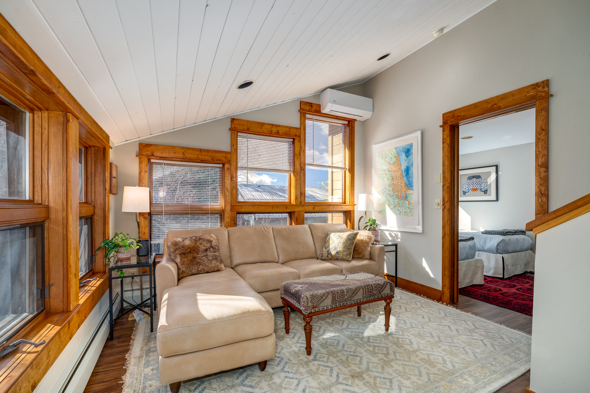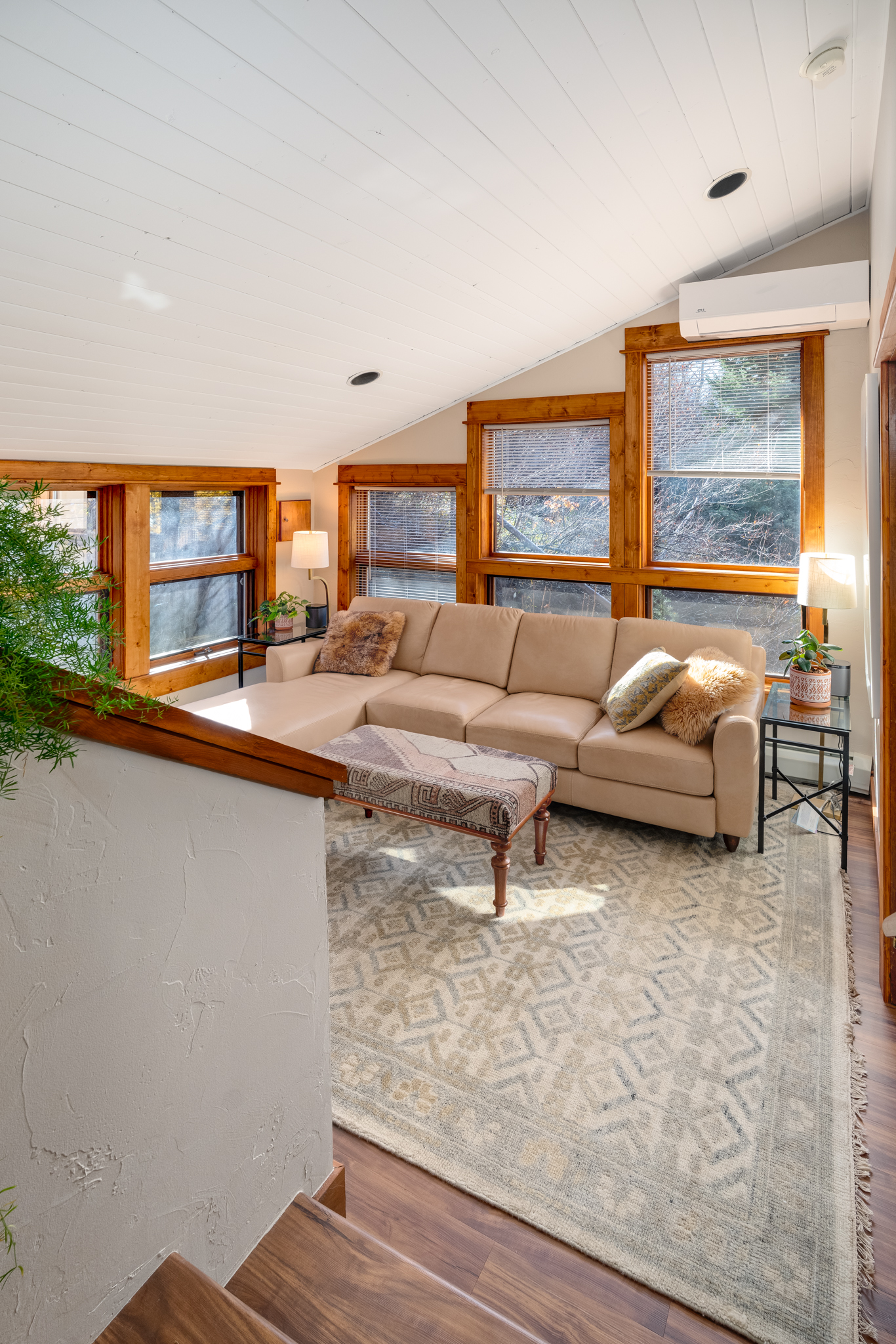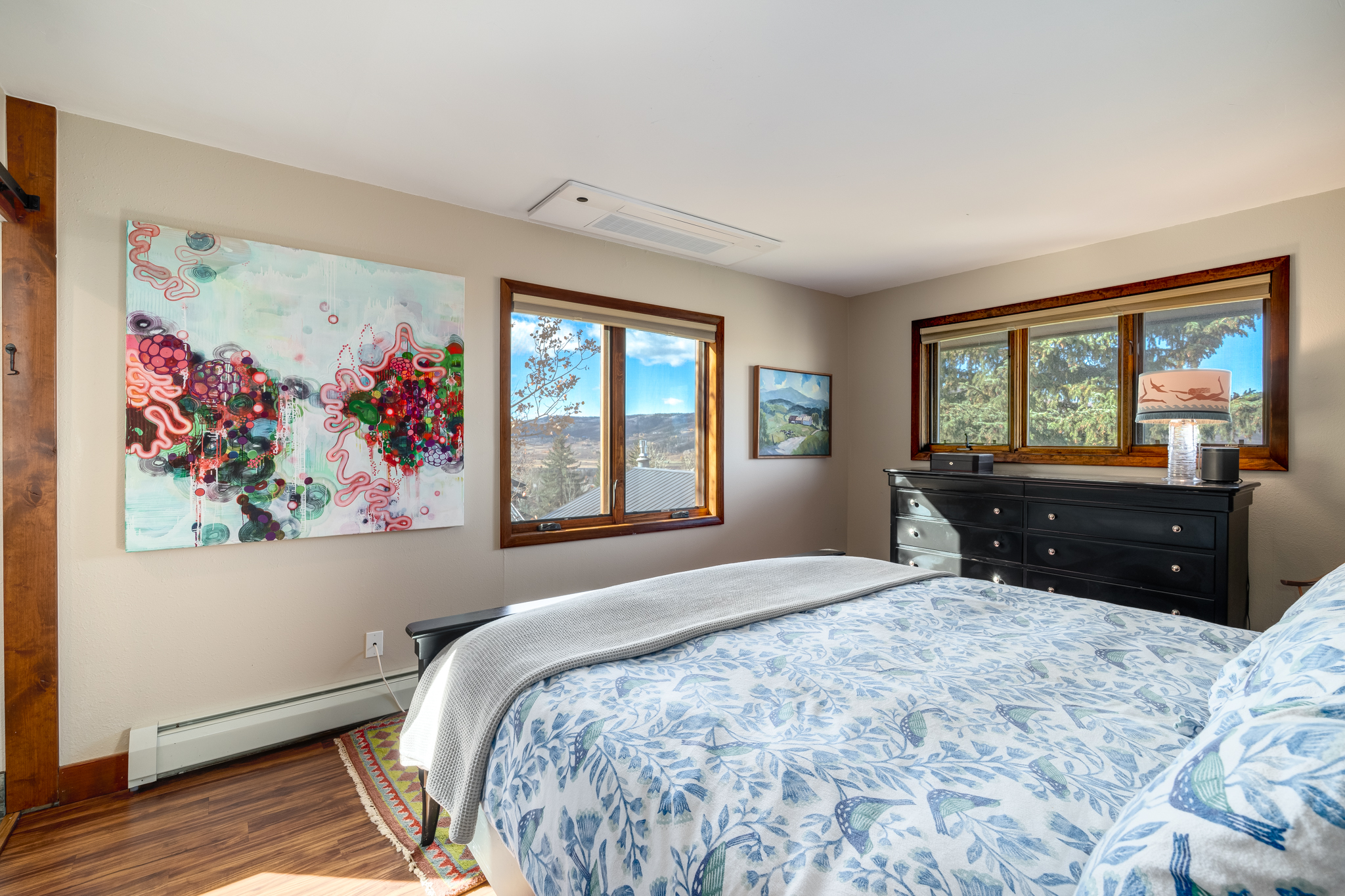 Overlooking the Rollingstone Ranch Golf Course, this Clubhouse Drive residence captures the essence of refined mountain living with the scale and privacy of a single-family home. Positioned as a rare end unit with no common walls, the property lives independently, framed by open skies and west-facing sunsets that pour across the valley each evening. The main level of the home is anchored by a dramatic floor-to-ceiling stone fireplace, where expansive windows draw in natural light and showcase the surrounding landscape. Radiant in-floor heat adds a quiet layer of comfort underfoot, while the open living, dining, and kitchen spaces create a seamless environment for gathering. The kitchen is both functional and inviting, featuring rich dark wood finishes, generous counter space, and bar seating designed for casual mornings or après-style evenings. A spacious deck extends the living experience outdoors, offering front-row seats to mountain views and golden hour skies. Thoughtful upgrades elevate every corner of the home. CoreTEC flooring runs throughout, complemented by a newer Lochinvar boiler system providing efficient heat and on-demand hot water, along with recently installed air conditioning for year-round comfort. The heated garage has been fully outfitted with an epoxy chip floor, custom shelving, and dedicated ski and gear storage. Upstairs, a secondary living area with vaulted ceilings offers a light-filled retreat, perfect for a media lounge or quiet reading space. A versatile bonus room on this level adapts easily as a home office or additional sleeping quarters. The upper floors continue with well-appointed bedrooms and updated bathrooms, including a private bedroom suite. With all utilities individually metered and a boutique four-unit association that is self-managed, the property offers low-maintenance living. New roof installed in 2025. Classy, vibrant, and thoughtfully designed, this Clubhouse Drive townhome delivers an elevated Steamboat lifestyle.