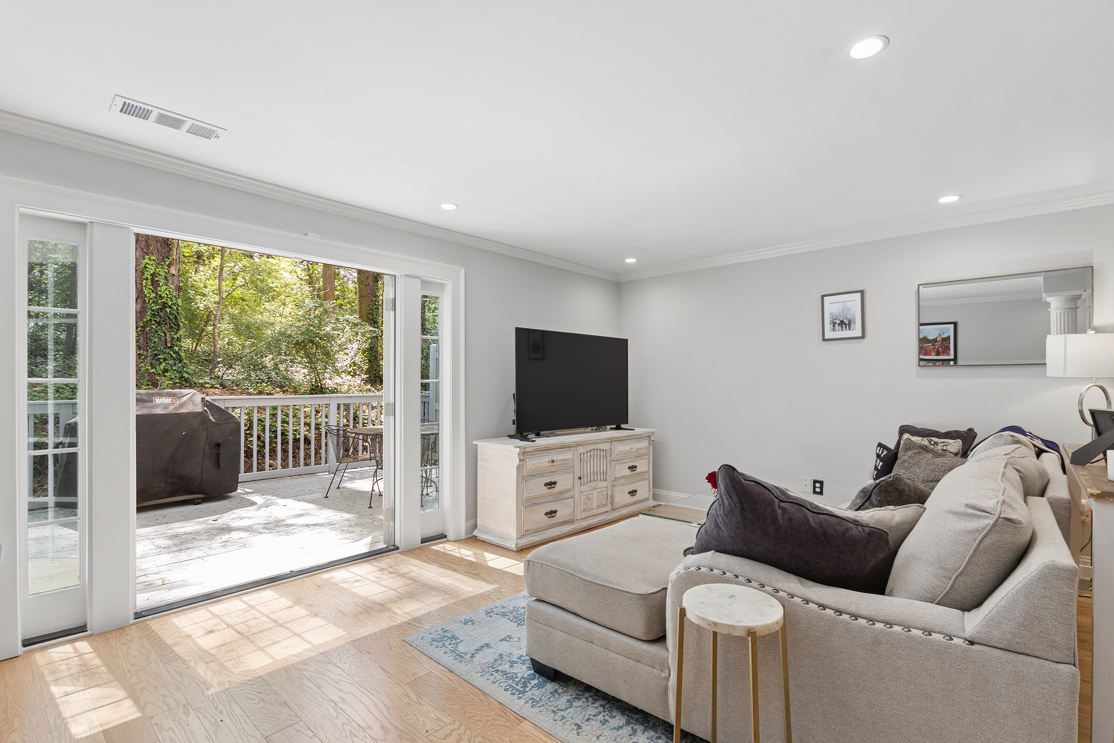Beautifully updated two-story townhome in the newly renovated Carlyle Heights community, located in the heart of Morningside / Morningside-Lenox Park. This three bedroom, two and one half bath home features an open floor plan with hardwood floors throughout the main level. The updated kitchen includes quartz countertops, tile backsplash, stainless steel appliances, and a breakfast bar overlooking the living and dining areas. New sliding glass doors lead to a private back deck and wooded backyard, offering great outdoor space and privacy. Upstairs, the primary suite features its own private deck with sliding glass doors—perfect for morning coffee. Two additional bedrooms are well-sized with ample closet space. Prime intown Atlanta location near Morningside, Virginia-Highland, Midtown, and Buckhead. Close to the Atlanta BeltLine, Piedmont Park, shopping, dining, and entertainment. Convenient access to I-85, GA-400, Emory, CDC, and downtown Atlanta.