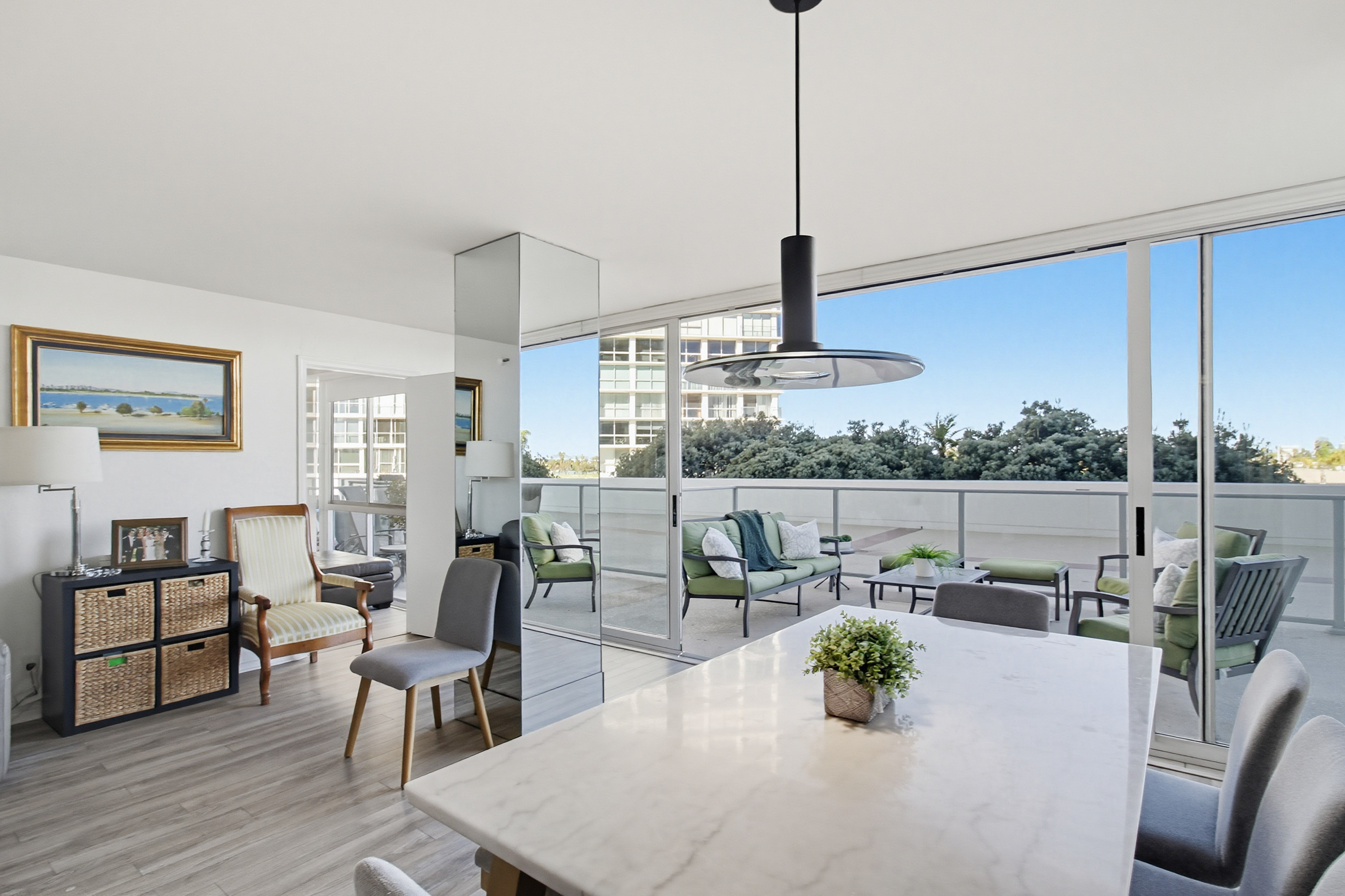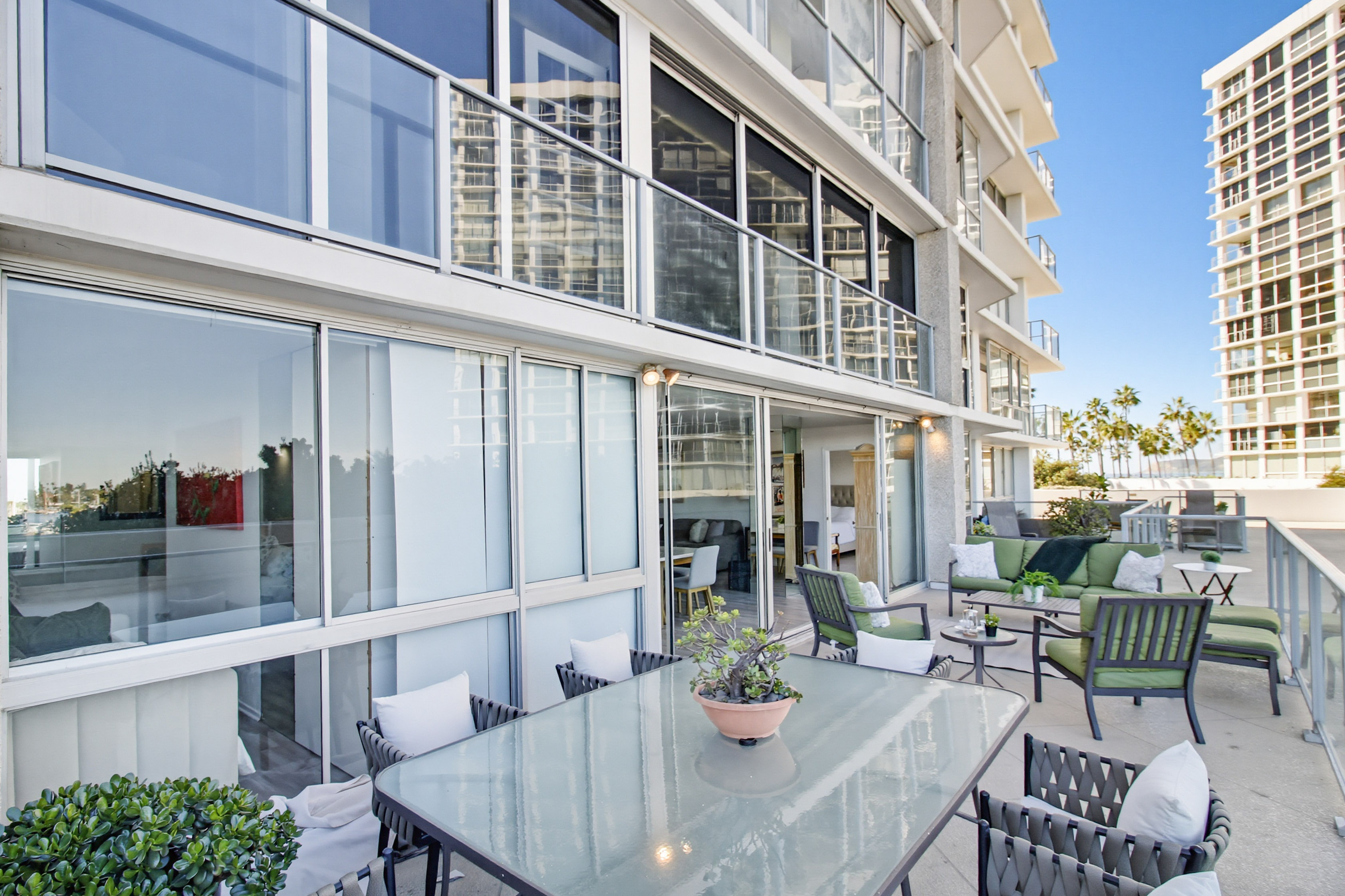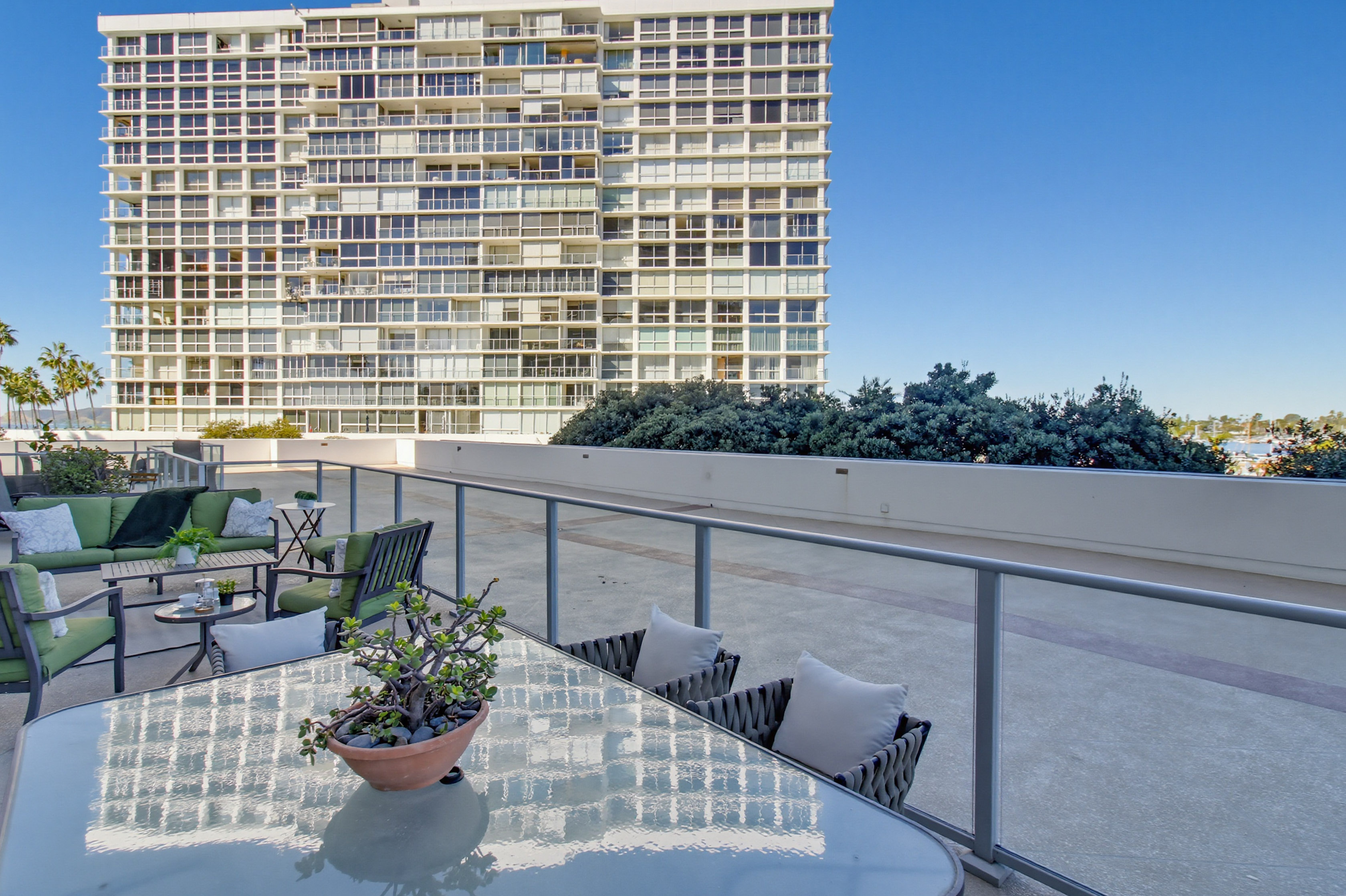 This terrace-level 2-bedroom, 3-bath residence at Coronado Shores offers something rare:Unlike a typical apartment, this home is designed for true indoor–outdoor living. The expansive terrace makes the living area feel substantially larger and allows you to host friends and family with ease. From this level you can enjoy beautiful bay views and effortless access to the beach — you can even head out without waiting for the elevator, ideal for morning walks and sunset strolls.The flexible floor plan offers great potential for a modern, open-concept design tailored to your style. With 2 bedrooms and 3 full bathrooms, including a bonus bath, you gain valuable versatility for a home office, media room, or comfortable guest space. While the interiors are not yet updated, this residence is a prime remodel opportunity; with thoughtful upgrades, it could become one of the most desirable units in Coronado Shores, combining lock-and-leave convenience with resort-style pools, tennis, and 24-hour security. the feeling of living in a private home with the comfort, amenities, and security of a full-service building.