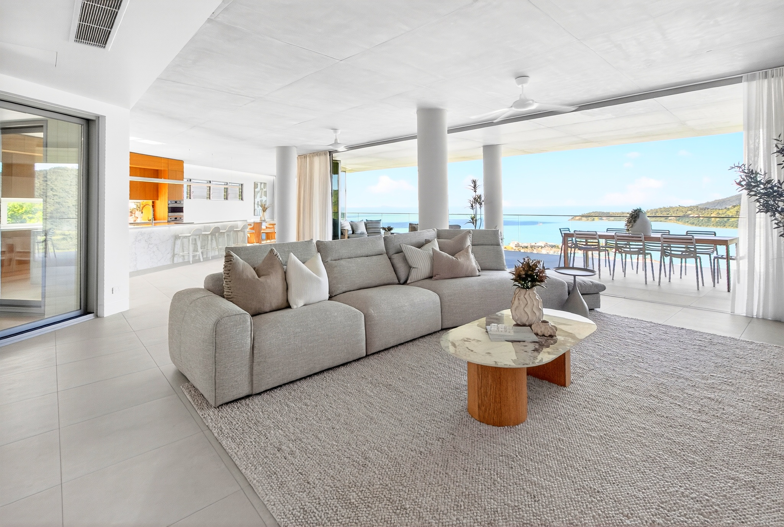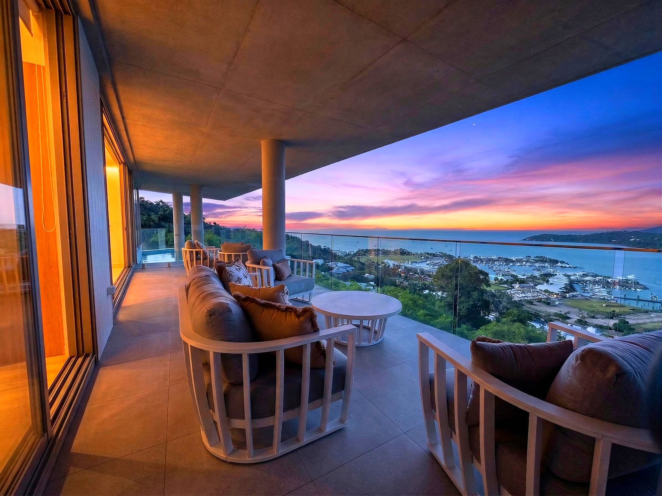 A newly completed bespoke residence that delivers the quality of a custom build without the two-year wait. Positioned high within the exclusive gated Mount Whitsunday Estate, this architecturally designed home captures sweeping Coral Sea and Island views while combining solid concrete construction with a refined contemporary coastal aesthetic.