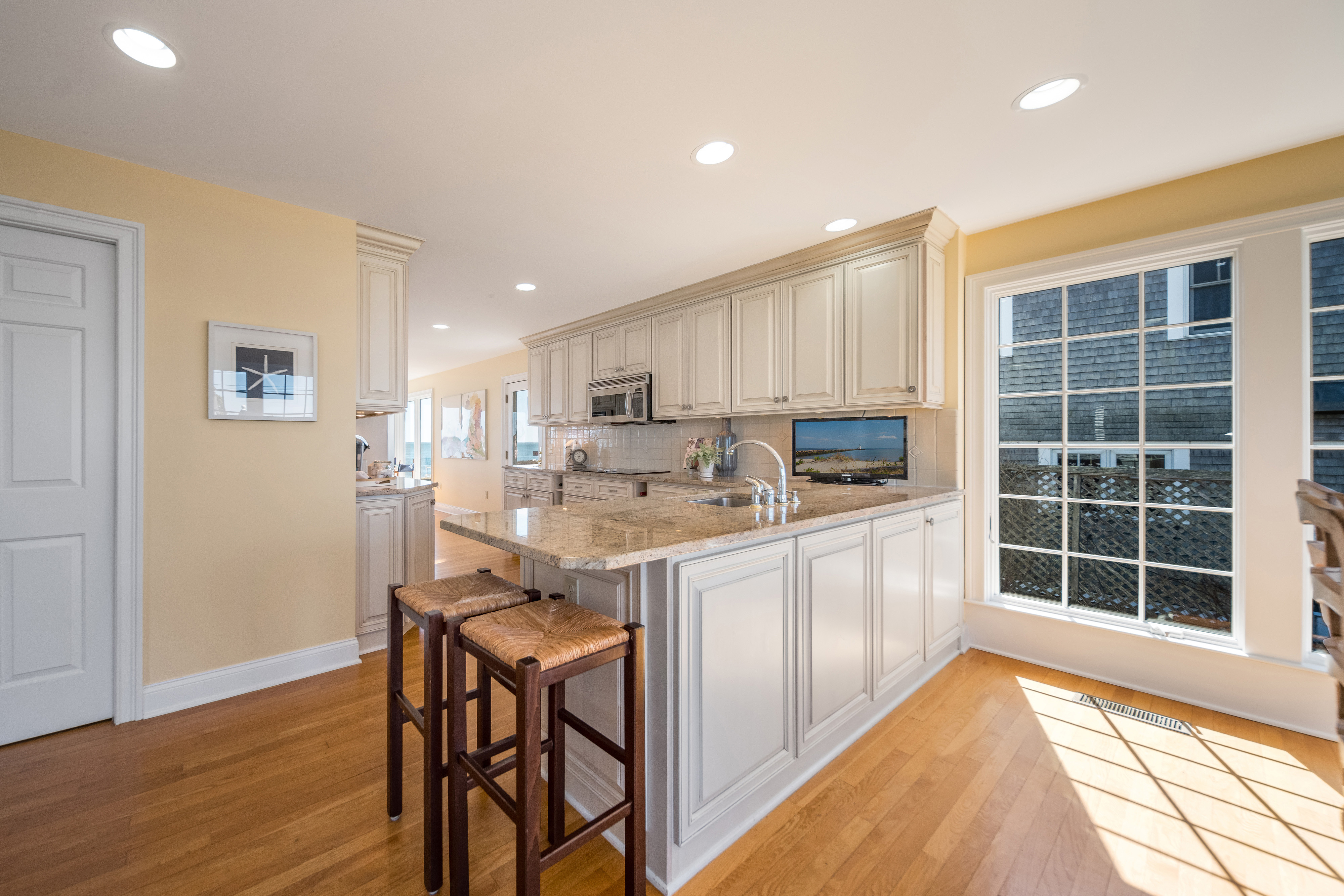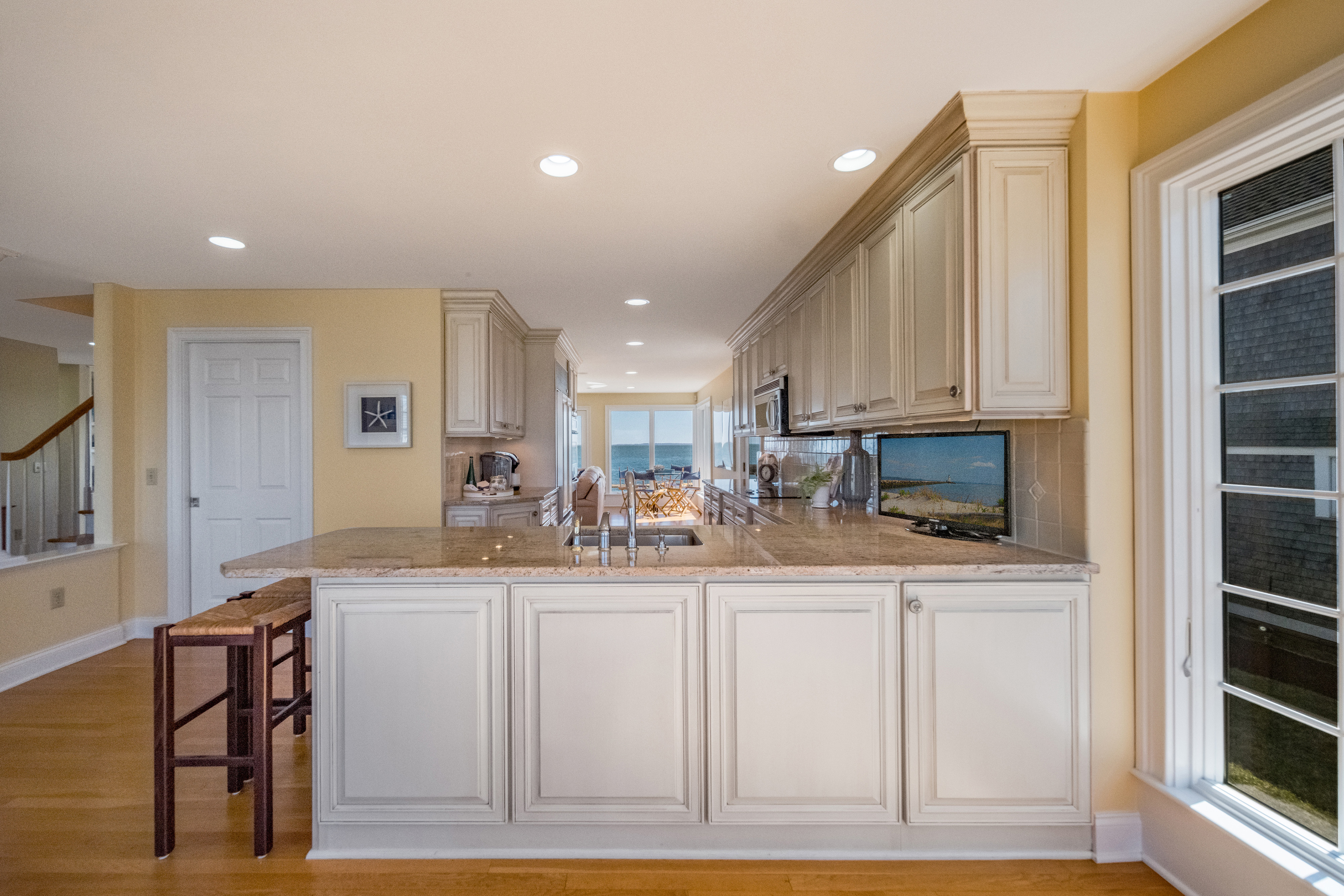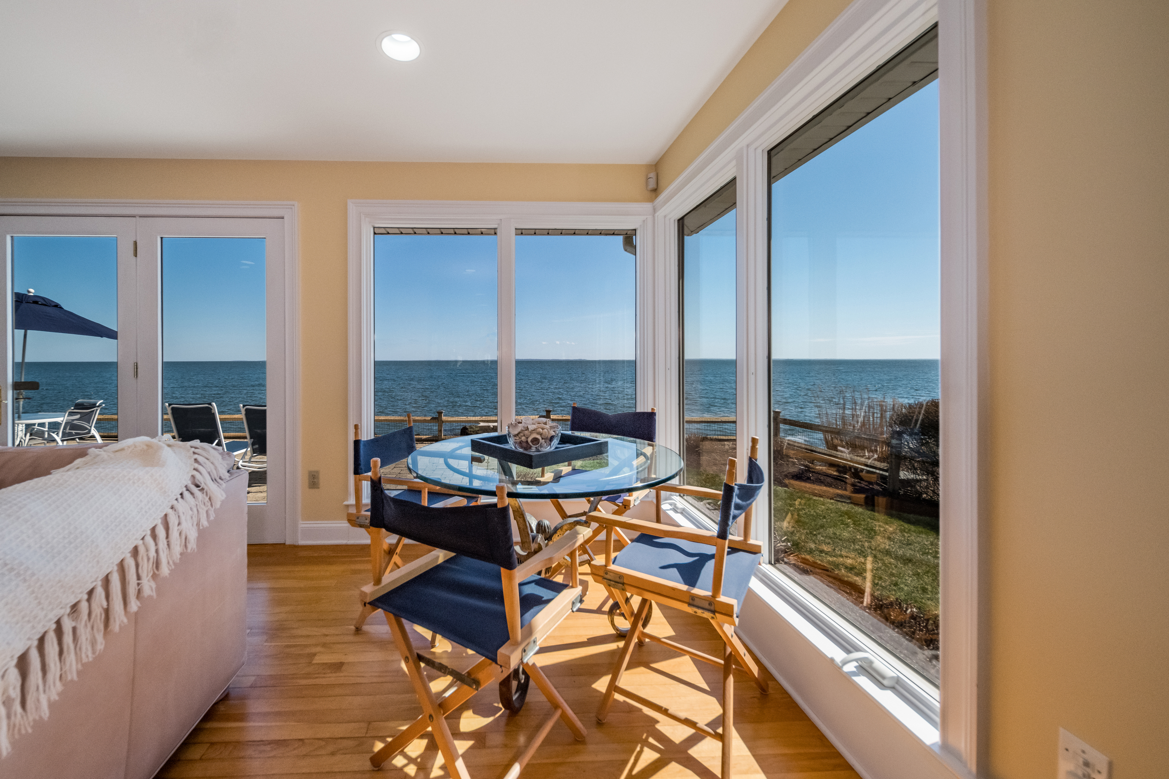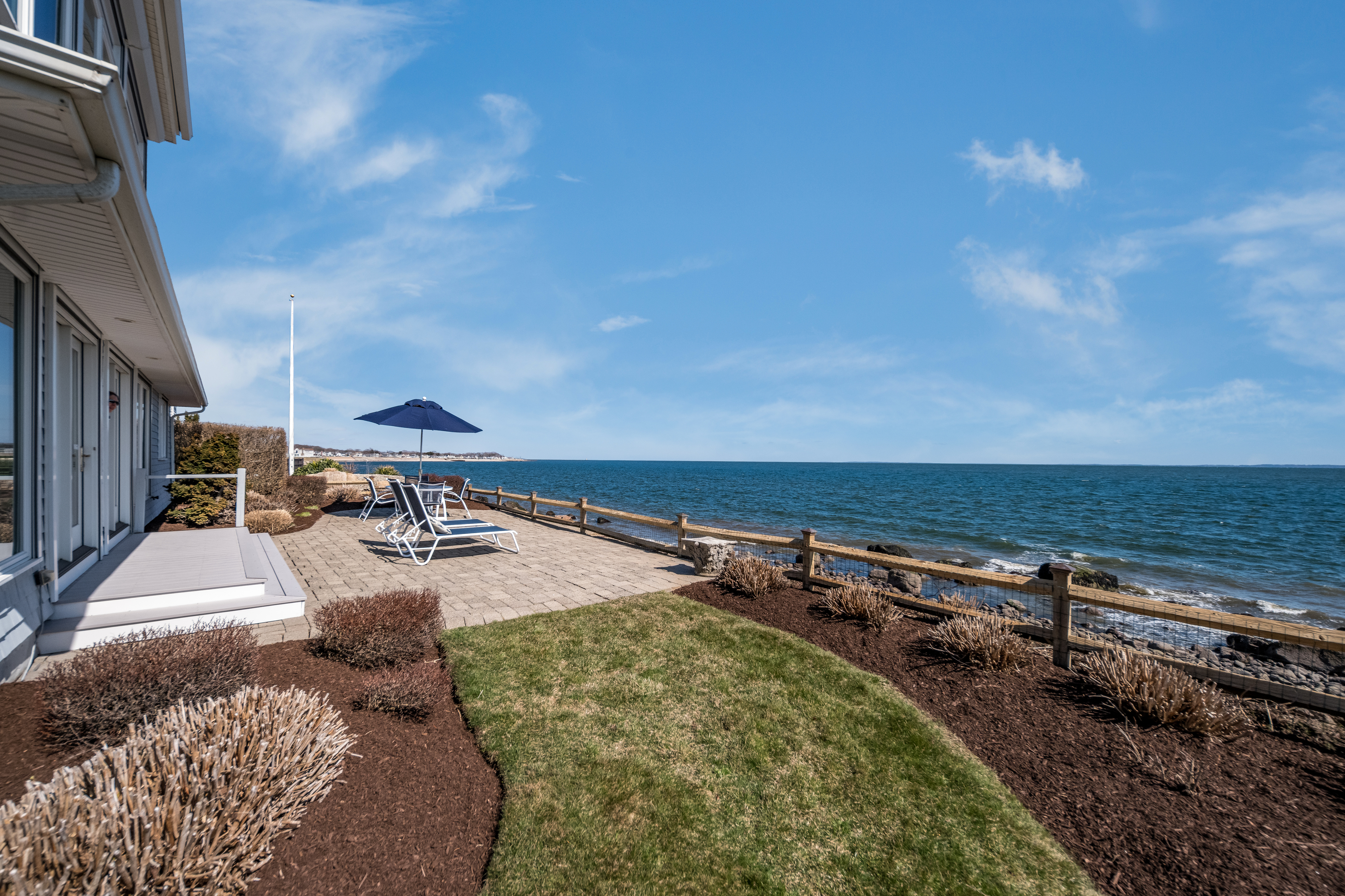 Direct waterfront with phenomenal views! Perched high on a bluff with 62 feet of shoreline frontage, this Nantucket-inspired residence provides an unparalleled, panoramic vantage point of Long Island Sound and the coastline. Perfectly positioned on the point to capture the essence of being on the water, this fabulous property maximizes water views from every room and boasts magnificent sunrises and sunsets. Tucked away on a quiet, dead-end street in highly coveted Cornfield Point, you'll enjoy ultimate privacy paired with Association perks including a sandy beach, kayak racks, boat launch ramp, tennis & basketball courts, playground and clubhouse. The 2,363 square feet of living space is drenched in sunlight, featuring a seamless open floor plan designed to bring the outside in and ensure the water remains your constant backdrop. The entire upstairs is dedicated to an incredible primary suite with floor-to-ceiling windows that frame breathtaking vistas. A sought-after first-floor bedroom suite offers the ease of one-level living. The kitchen, dining area and living room flow effortlessly and connect via French doors to a waterside patio - perfect for entertaining. Whether you are savoring morning coffee or dining alfresco, the calming sound of the waves and the cool sea breeze define the relaxing lifestyle of this seaside sanctuary. This well-maintained home is move-in ready and provides the ultimate peace of mind - no flood insurance required! The professionally landscaped .20-acre lot includes a one-car garage with a convenient walk-up storage area. Live like you're on vacation year-round in this golf-cart-friendly beach community great for walking, biking and jogging. Old Saybrook is ideally located only two hours from New York or Boston and easily accessible via I-95, Route 9 and the train. Minutes to iconic Main Street, local restaurants, shops, marinas, health clubs, golf, and the cultural charm of "The Kate." Properties on Point Road rarely hit the market! Don't miss the opportunity to own a piece of paradise and embrace the dream of waterfront living.
