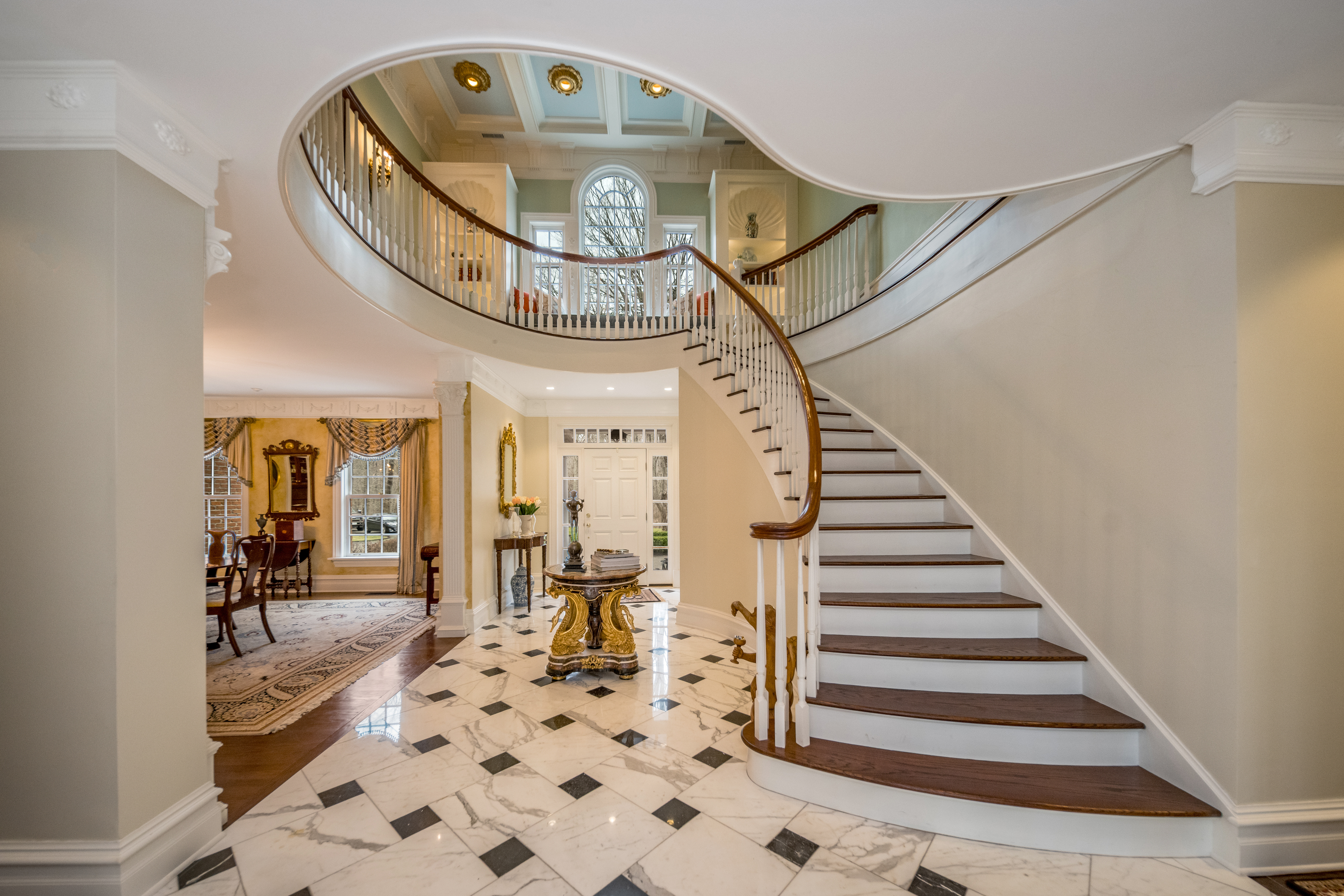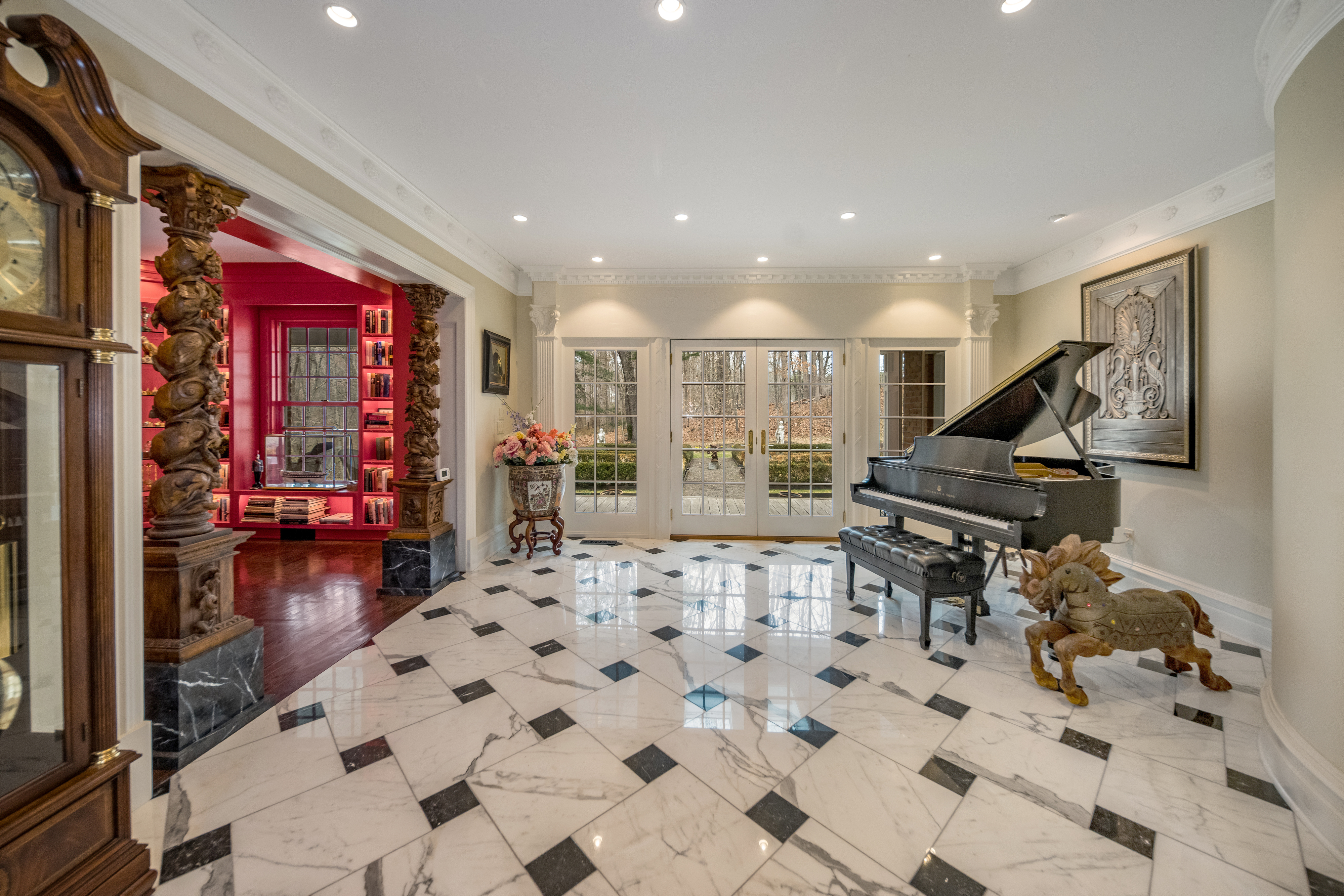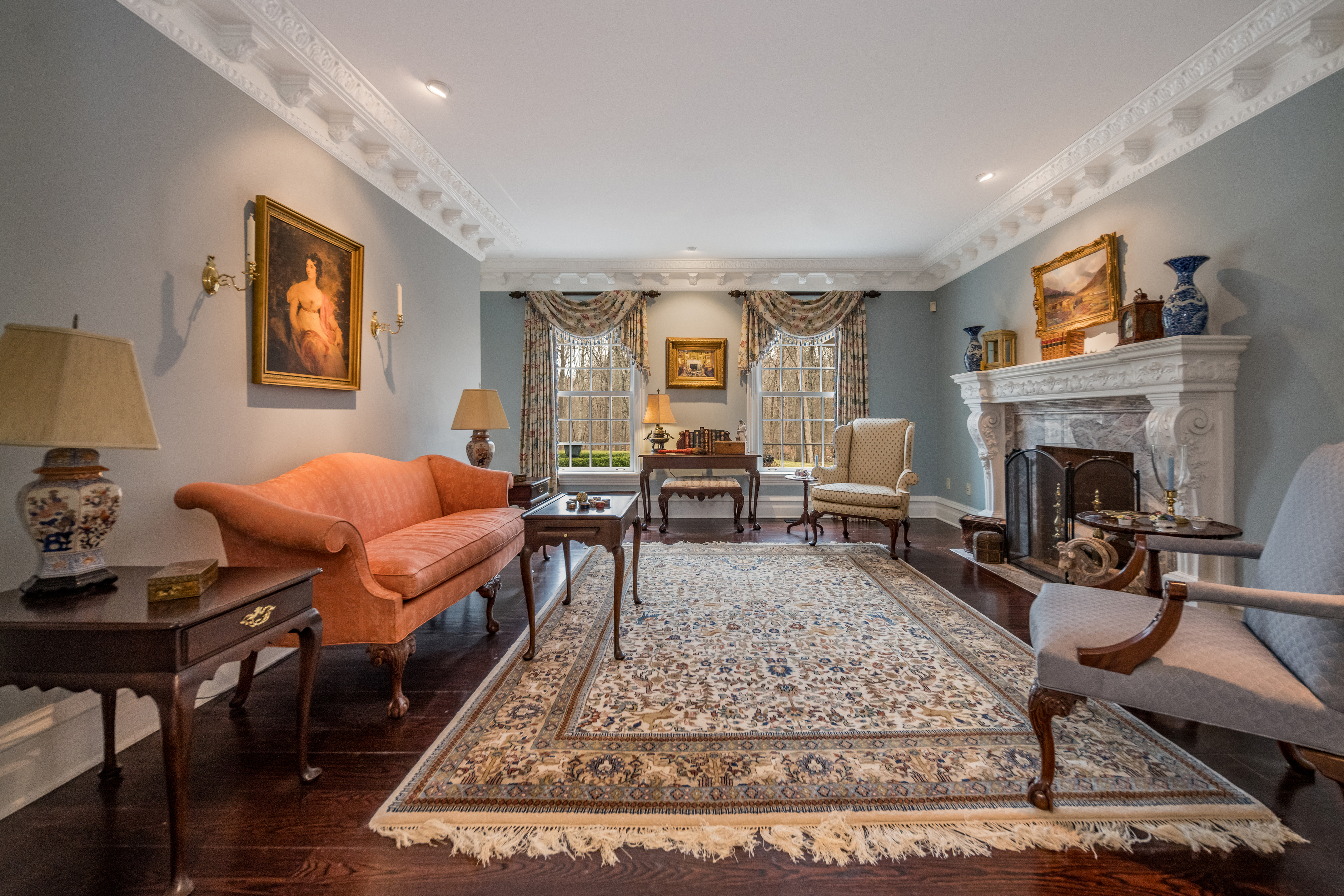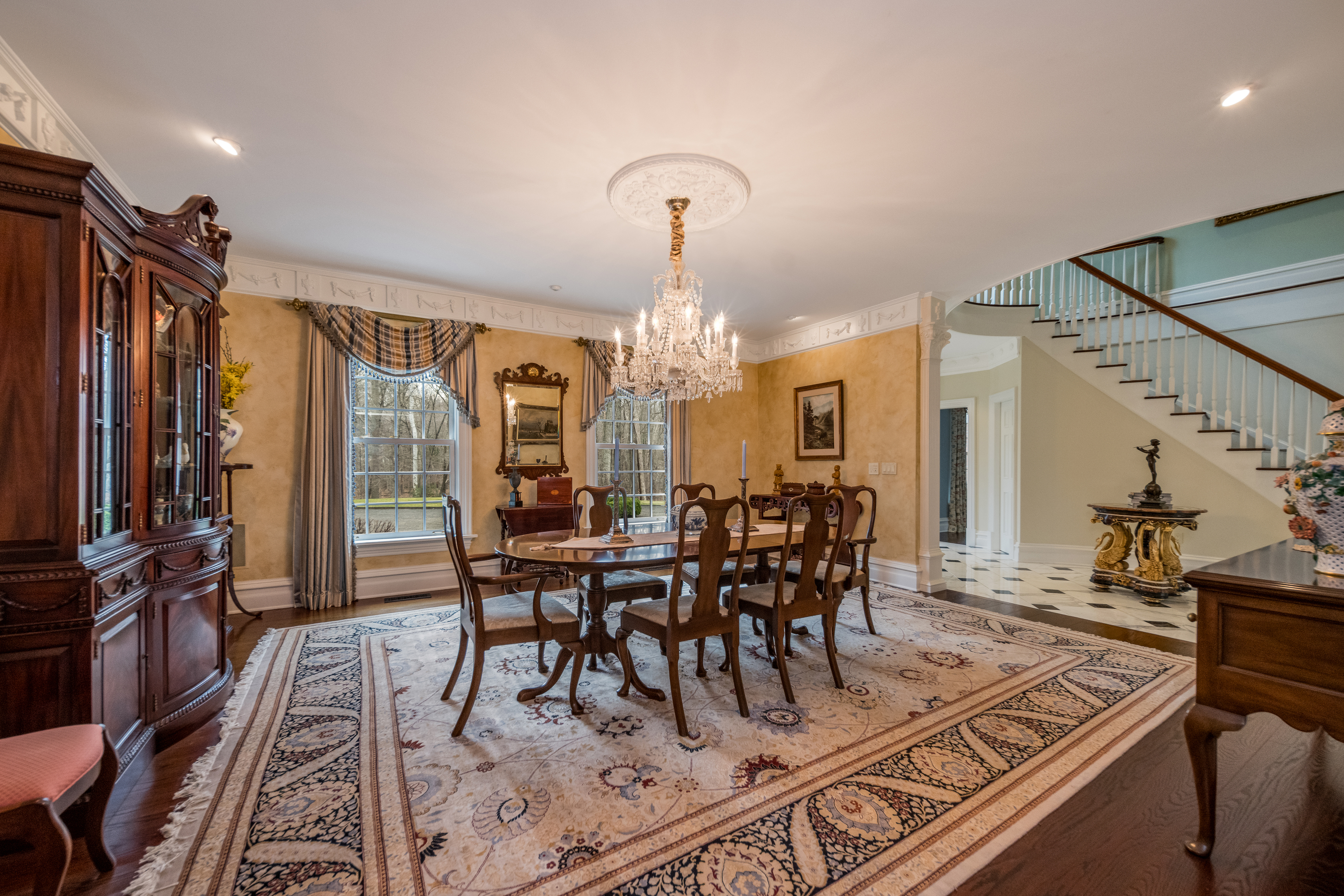 Set on 5.65 secluded acres in the heart of Madison, this exceptional English Georgian custom home offers a rare blend of timeless architecture, refined craftsmanship, and natural beauty. Surrounded by mature woodlands, the property is a private retreat, complete with a gently winding stream and the preserved stone remnants of a historic mill-an evocative nod to the land's rich past. Inside, the home is thoughtfully designed for both elegant living and everyday comfort, featuring expansive, light-filled spaces and exquisite millwork throughout. The custom chef's kitchen is a true centerpiece, appointed with premium appliances, striking imported granite countertops, and impeccable detailing. A grand entryway welcomes you with a sweeping staircase and a beautifully crafted coffered ceiling, setting the tone for the quality and sophistication found in every room. This is a home for those who appreciate enduring design, superior construction, and a setting that feels worlds away-yet remains close to everything Madison has to offer.
