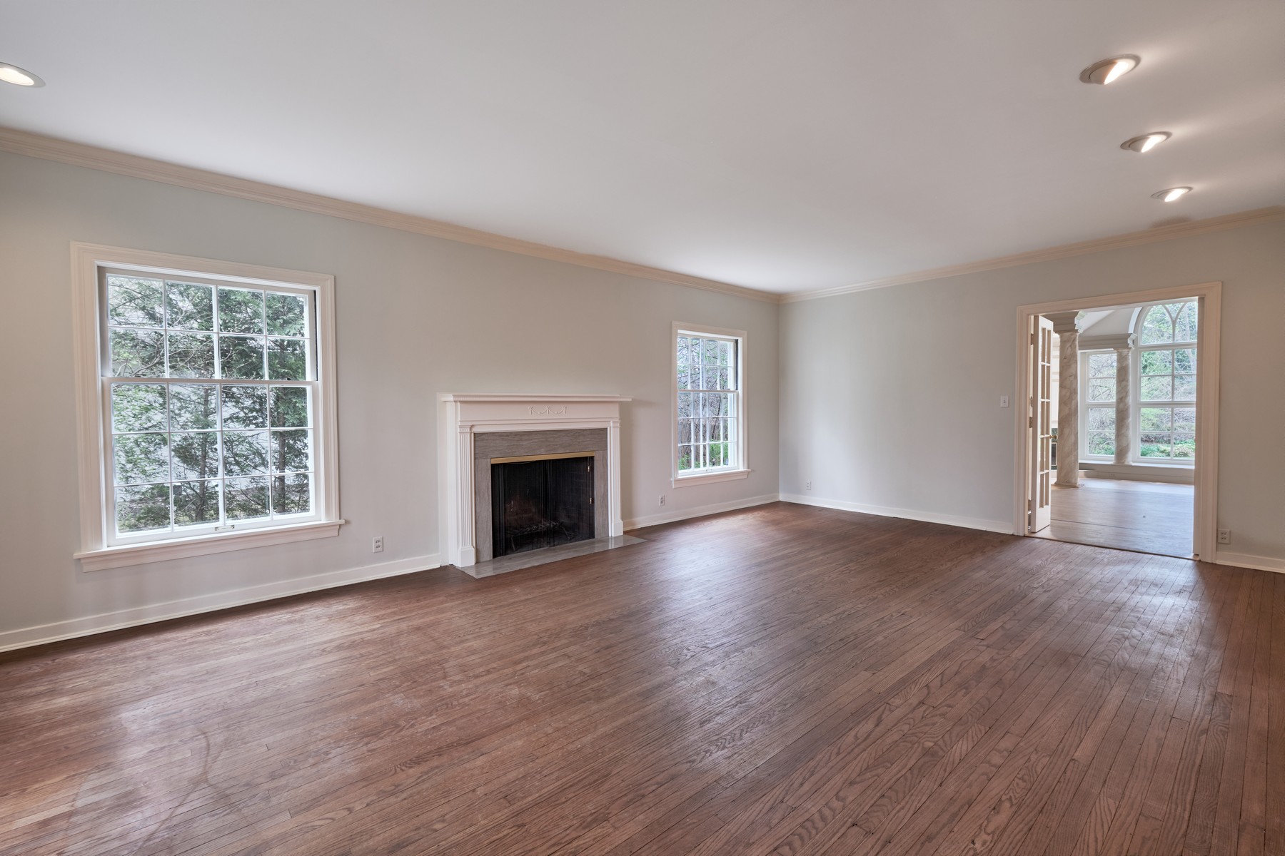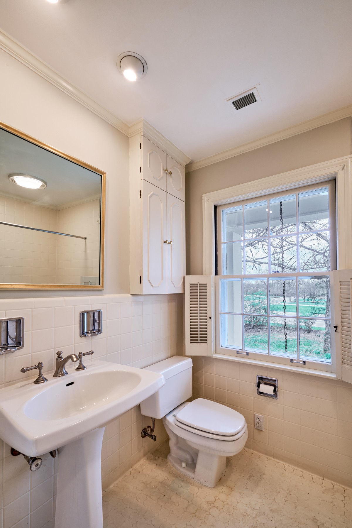 This Meridian Hills Colonial is situated on a lush lot defined by mature trees and formal gardens. It offers a serene retreat with an emphasis on graceful living and light-filled spaces. 4 bedrooms and 2.5 baths provide ample space for family and guests. The heart of the home is an expansive vaulted great room, where a stunning Palladian window serves as a focal point, offering panoramic views of the private gardens. This impressive space is anchored by a classic fireplace and custom built-in bookcases, creating an atmosphere that is both grand and inviting. For everyday comfort a separate living room and dining room provide versatile footprints for both intimate gatherings and large-scale entertaining. The updated kitchen provides functional elegance, featuring painted cabinetry, center island and luxury appliances. The primary retreat offers a private sanctuary, complete with a spacious walk-in closet and a vaulted en-suite bath. The spa-like configuration includes dual vanities, a deep soaking tub, a separate shower, and a private water closet. The basement includes daylight windows and a limestone fireplace offering the perfect location for a future media room or lounge. The property's charm extends to the outdoors, where the 2-car detached garage-accented by a signature cupola-complements the estate's traditional aesthetic. Enjoy professional landscaping, vibrant gardens, and the shade of established hardwoods. This is a rare opportunity to own a quintessential Colonial estate in one of the area's most coveted neighborhoods.