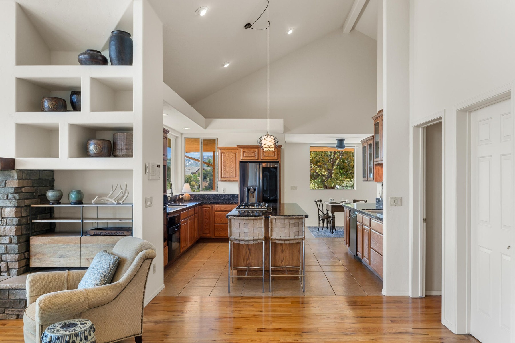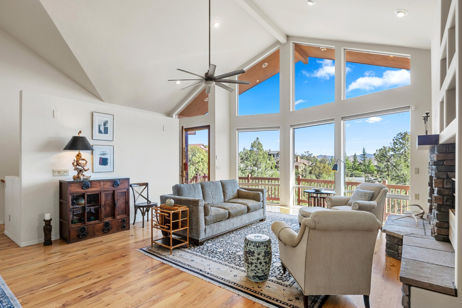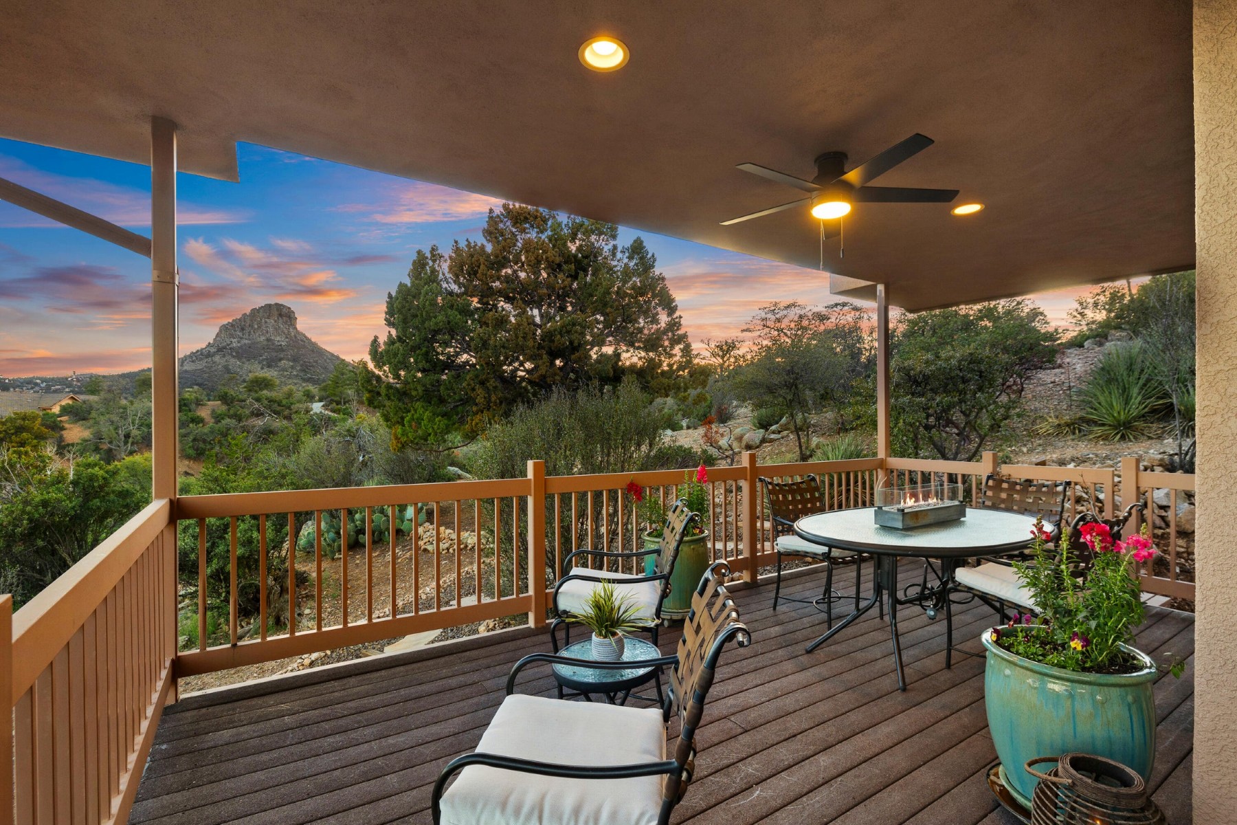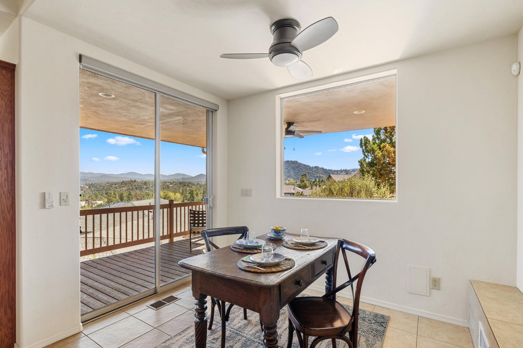 Set along a quiet hillside in Forest Trails, this custom residence has always been defined by its relationship to the land--long views, layered horizons, and a sense of elevation that feels bothexpansive and grounding. Thoughtfully positioned on just over .4 of an acre, the home was designed to frame its surroundings through generous windows, multiple decks, and a flowingmulti-level layout that invites the outdoors in. At the heart of the home, the great room remains a signature space, with a fireplace, and where soaring windows draw the eye toward distant city lightsbelow and forested slopes. The kitchen was intentionally designed as a gathering place rather than a pass-through, anchored by a substantial island, granite counters, two ovens, two sinks, and a walk-in pantry. Recent kitchen enhancements include Renewal by Andersen windows, updated pendant lighting above the island, and a Bosch dishwasher, all opening naturally to a dining area and view-facing decks that have long hosted quiet mornings and unhurried evenings. A peaceful breakfast room with another fireplace off the kitchen has a lovely, unmistakable profile of Thumb Butte. A rare dumbwaiter connects levels with subtle practicality, a detail that reflects the home's original custom intent. The primary suite is tucked away for privacy and enjoys its own sense of retreat, enhanced by personalized climate control,walk-in closet, en suite bath, and covered porch. The lower level offers flexibility and separation with a private guest suite featuring outdoor access, a spacious family or recreation room/hobby/studio, with wet-bar and storage spaces that adapt easily to changing needs. Luxury vinyl plank flooring adds durability and continuity on this level, complemented by updated lighting, ceiling fans, and refreshed interior paint throughout the main and lower living areas. Behind the scenes, the home has been carefully updated to support comfort and peace of mind. Improvements include a full tear-off roof, a modern HVAC system in 2024, with integrated humidification, a dedicated mini-split serving the primary suite, an upgraded electrical system, a newer (2024) water heater, and exterior lighting around the 21/2 car garage for improved function and arrival experience. The result is a home that feels both established and current--one that has evolved thoughtfully while preserving the views, craftsmanship, and architectural character that made it special from the beginning. Here privacy, comfort, and setting come together in a way that reflects the enduring appeal of life in the forested hills of Prescott, just minutes from downtown amenities. This is one of the better locations to access Prescott forested trails, hundreds of miles of hiking, biking, and equestrian trails, await.