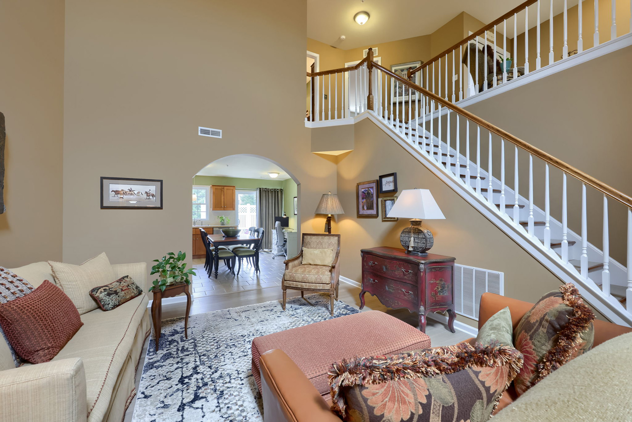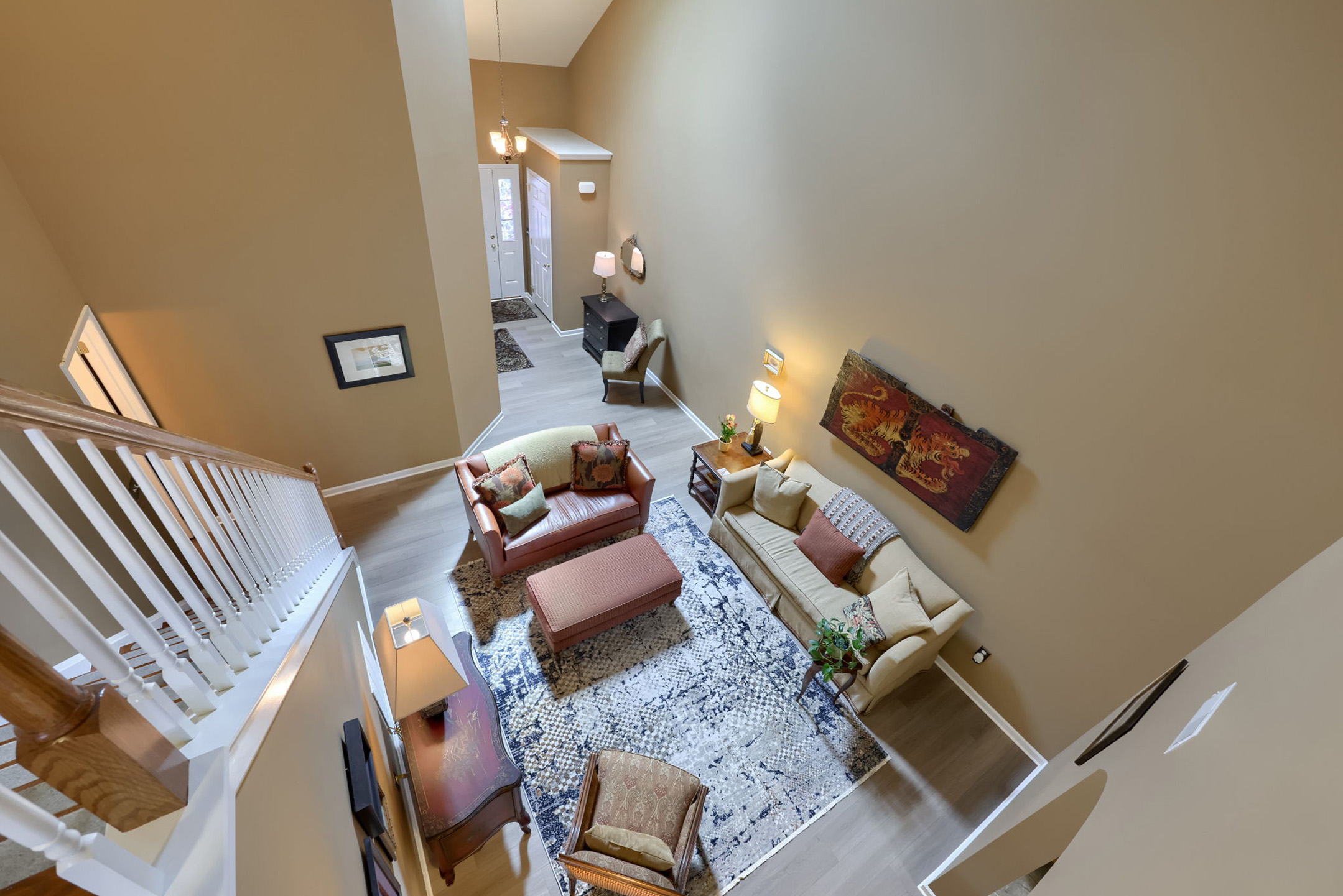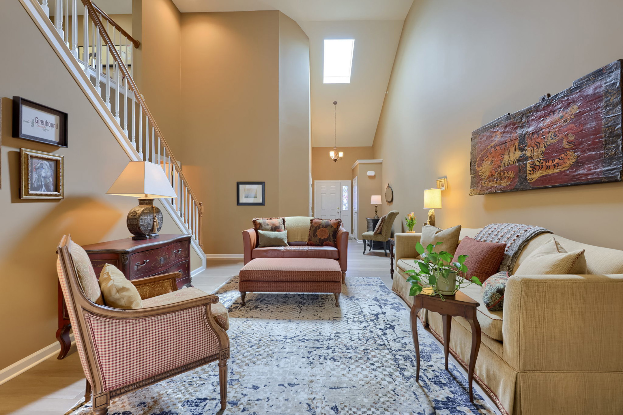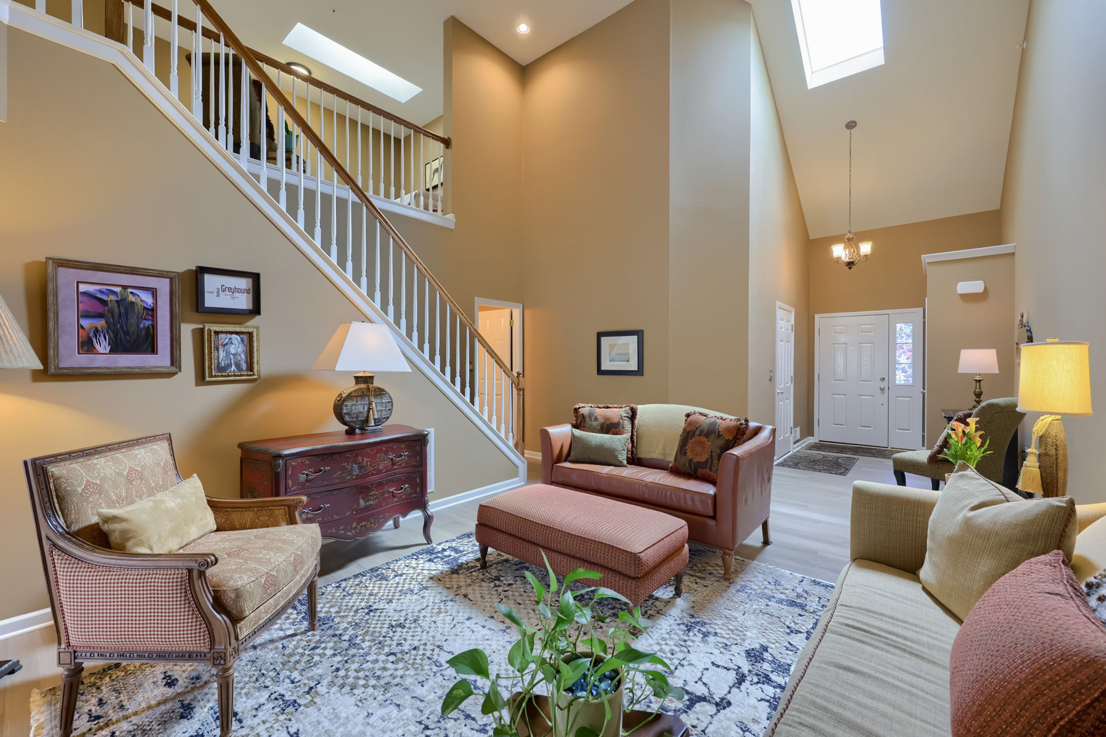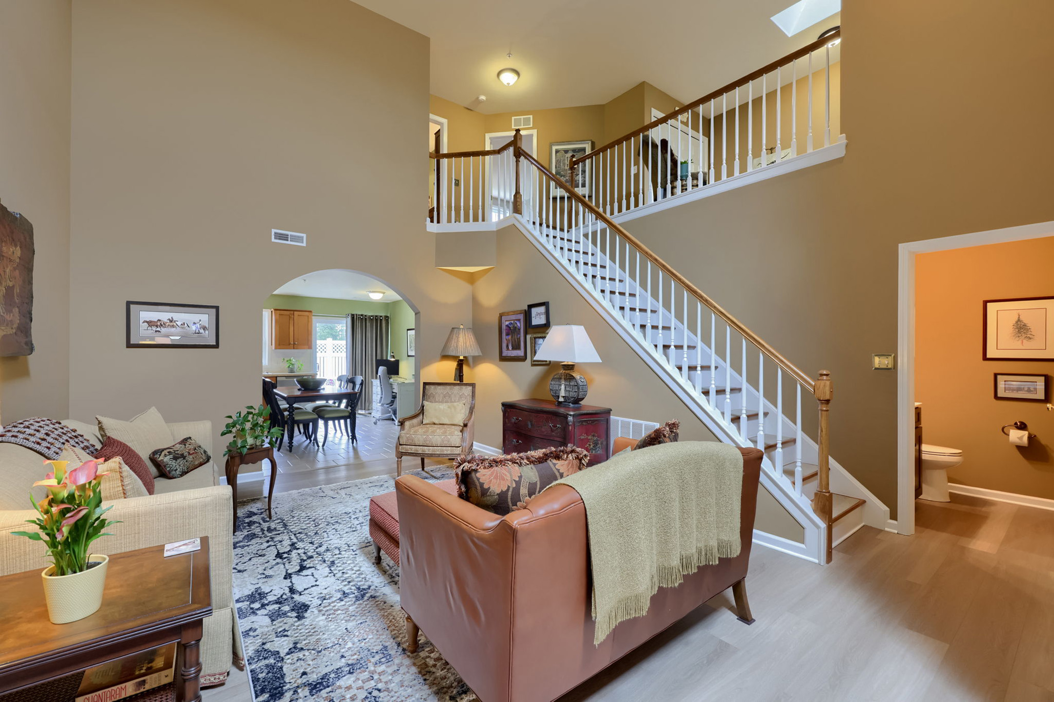 Discover a beautifully maintained home in Mount Joy, offering an airy layout and well-appointed spaces throughout. From the moment you step into the two-story foyer, you’re welcomed by soaring ceilings, warm lighting from the chandelier, and a sense of openness that carries throughout the home. The space flows effortlessly into the stunning two-story living room, where natural light pours in from the skylight above, highlighting the luxury vinyl plank flooring and subtle crown molding details that frame the room. A conveniently located first-floor powder room is tucked just off the living room.