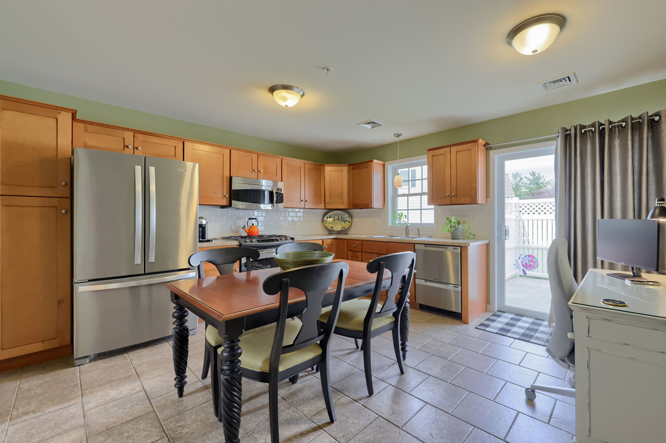 Just steps away, sliding glass doors open to a fenced patio and gravel area—ideal for soaking up the sun or unwinding outdoors, where even a few neighborhood bunnies like to stop by and make themselves at home.