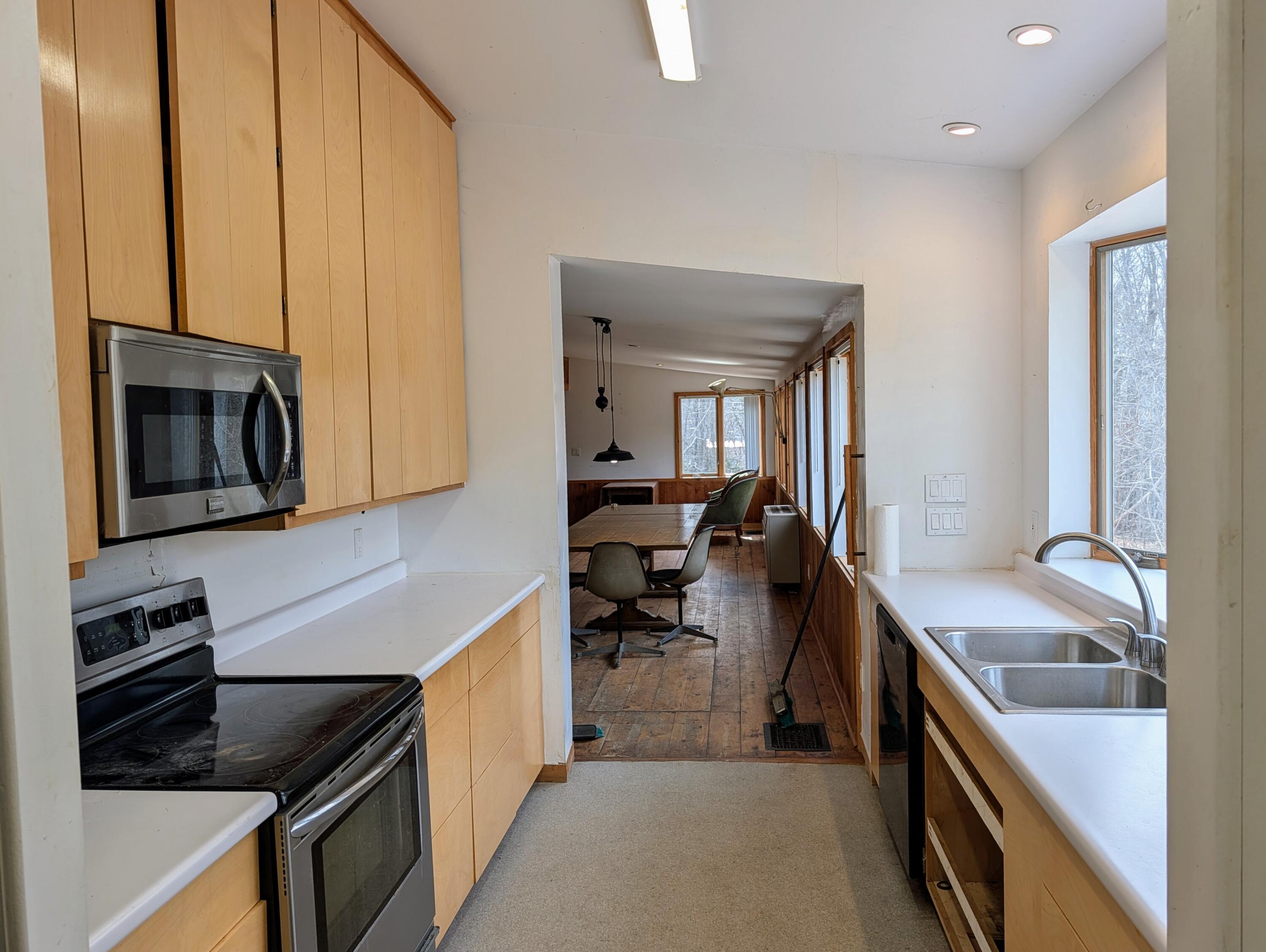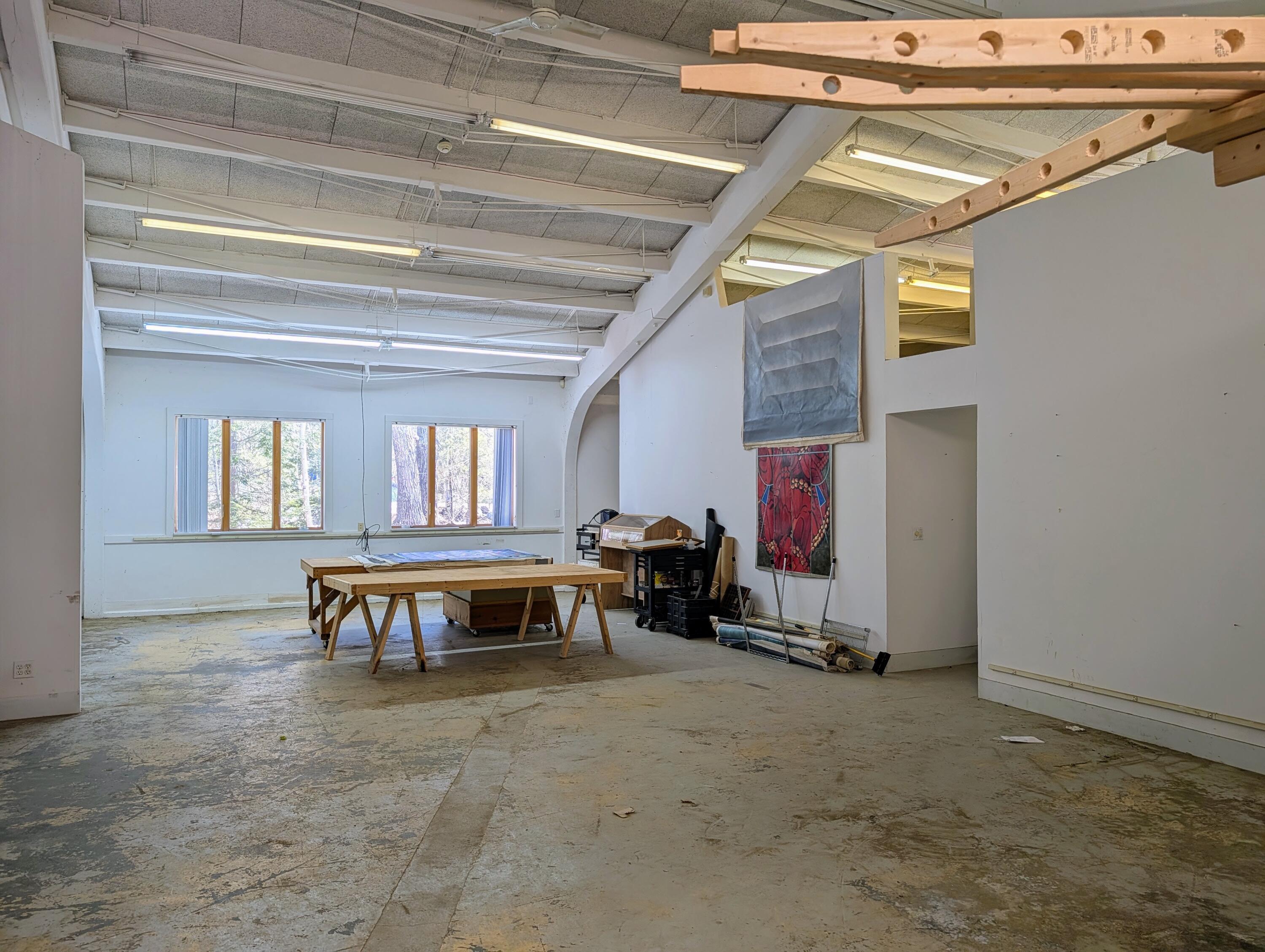 This building is full of possibilities and waits for its next chapter. Originally built as a teen center with a roller rink it was most recently used by a artist and an architect as their own center for creative projects as well as an open concept living space. The building sits on a 14.5 acre lot on the main thoroughfare of the Pemaquid Peninsula and is about 7 miles to the center of Damariscotta and a little over 8 miles to the lighthouse at Pemaquid Point. The main building is 50' wide and 80' and appears to have been originally a single large open space. Currently it is 3 separate spaces with the art studio on the bright south side of the building, a large gallery space in the center and the workshop on the north side with a 12' high garage door. The original building also has a bathroom with a shower.The living space was added on in 2004 and is a large open concept ''studio'' apartment with a full bath and a separate kitchen with lots of cabinets and counter space as well as a pantry area with removable shelving. The building offers all sorts of possibilities where 18' high ceilings, a 12' x 12' door and a 80' by 40' space might come in handy. The separate living space could be used separately as offices or a showroom for whatever you decide to create. Besides the 14.5 acre lot where the building is there is another 20 acre non-contiguous lot that is part of the package.