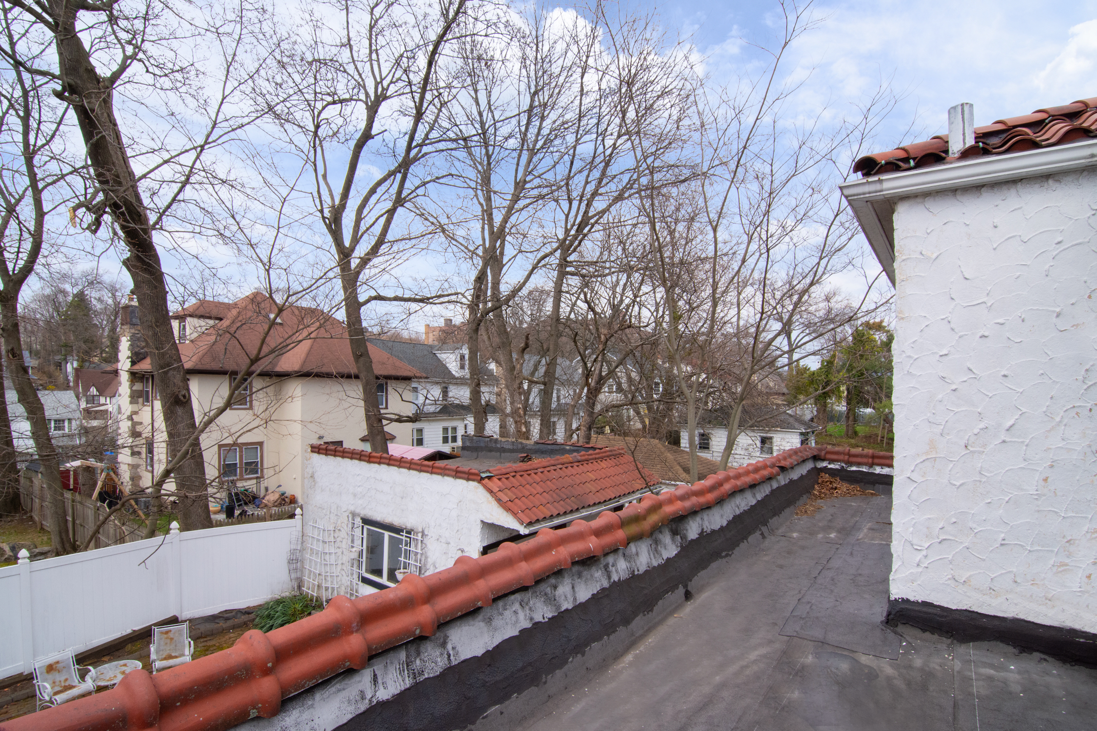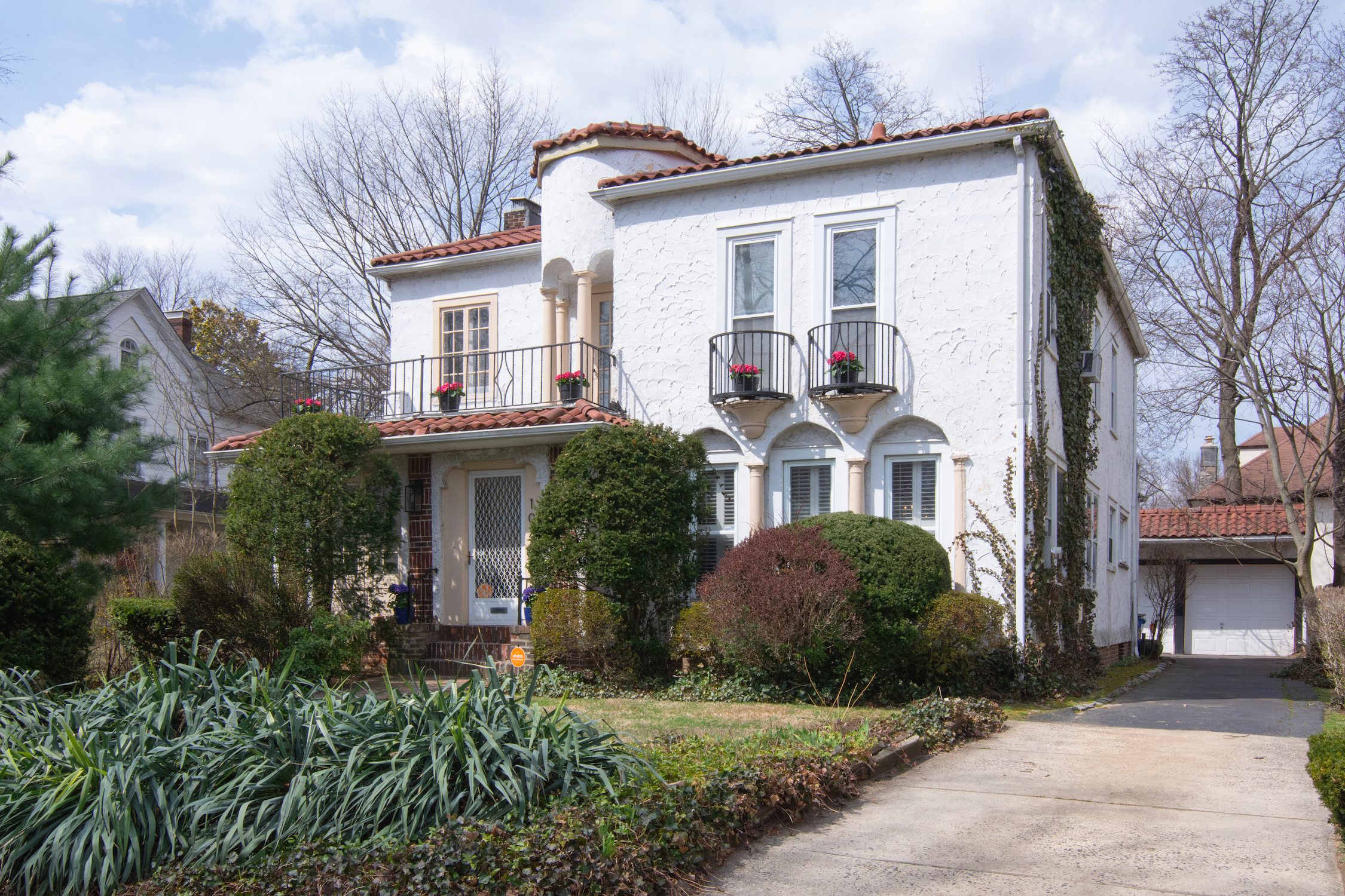 Welcome to this enchanting Mediterranean-style single-family home with four bedrooms and three full bathrooms where classic architectural details meet modern potential. A picturesque brick walkway leads you past mature landscaping to a welcoming windowed mudroom featuring timeless brick flooring. Step through the original door into an expansive living room boasting gleaming hardwood floors, crown molding, a cozy fireplace, and elegant arched entryways.