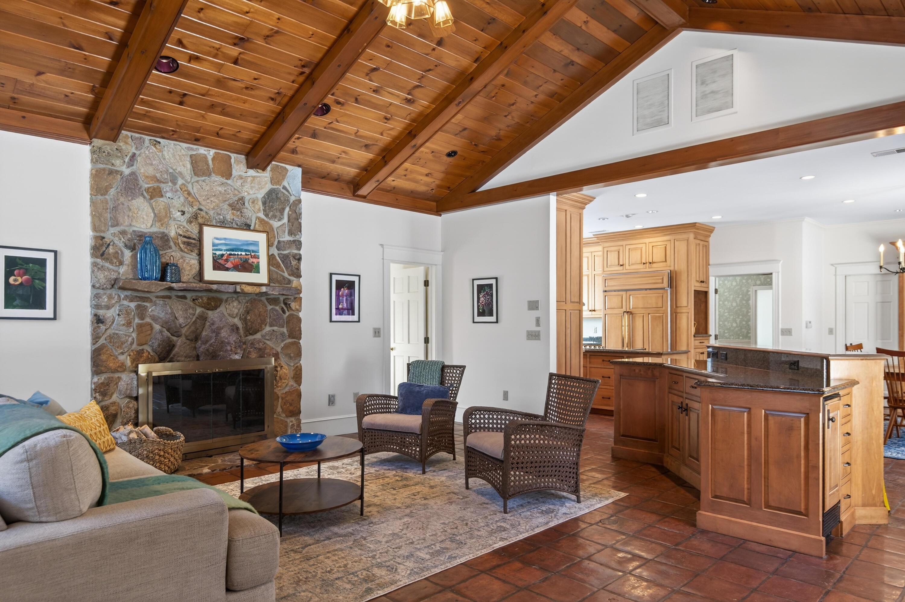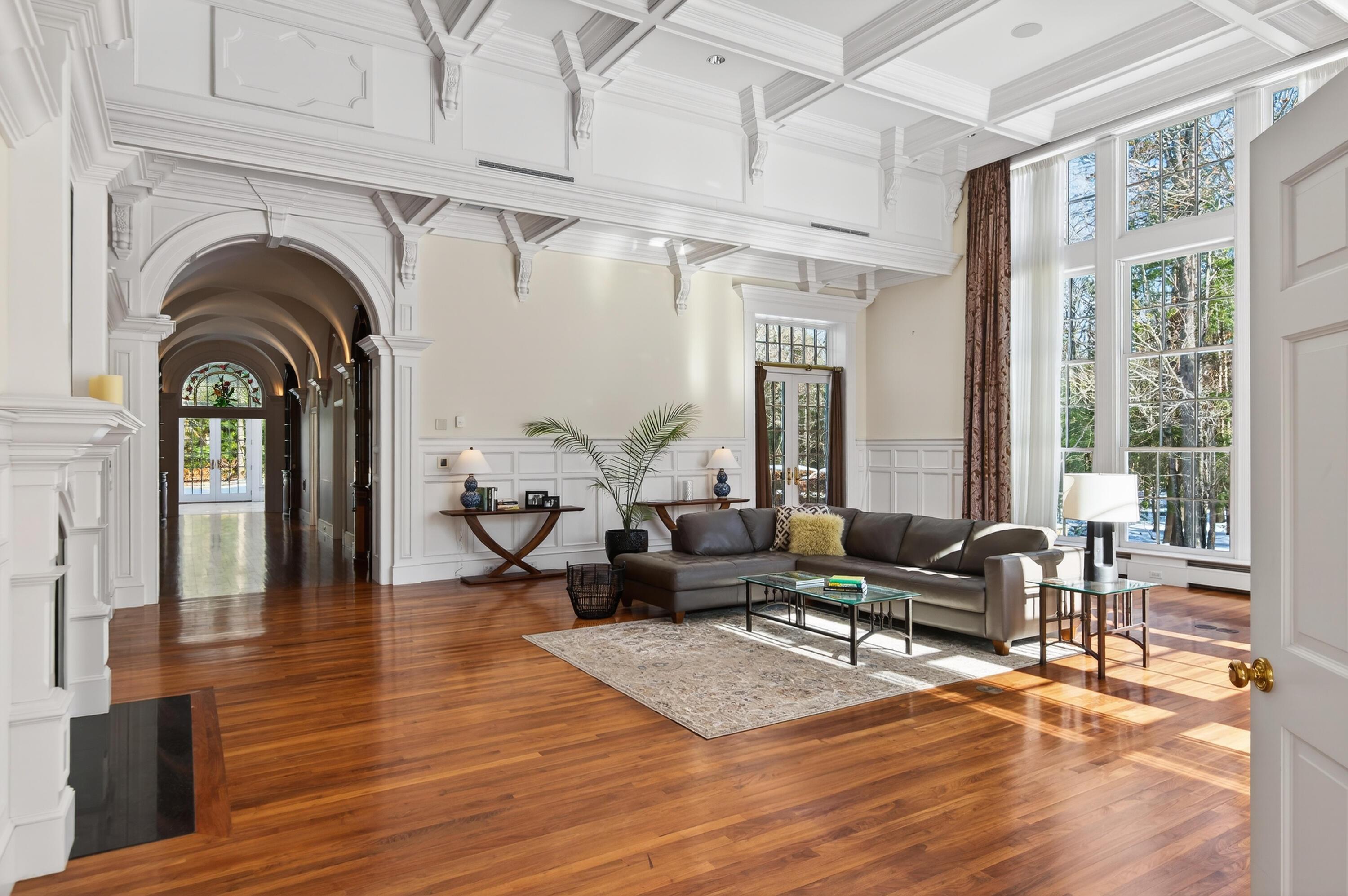 A Luxury Residence inspired by Nature: Sited on 16.1 private acres in the heart of Cape Elizabeth, Great Woods Lodge at 3 Canter Lane offers a rare blend of seclusion and convenience. Bold architecture meets warm, livable elegance throughout. The home unfolds with a gourmet kitchen, refined library, living and sitting rooms, four bars, six bedrooms, two offices, a gym, sauna, steam room, and a private movie theater. Thoughtfully appointed baths, multiple fireplaces, and a detached carriage house complete the estate. Outside, curated grounds feature exquisite hardscaping, fountains, and lush landscaping, along with deeded access to a peaceful pond. Canter Lane connects directly to sidewalks leading to village shops, schools, dining and abutting preservation land trails bring you to the Atlantic Ocean. This extraordinary estate offers endless exploration opportunities! Just moments from Portland International Jetport (PWM) and the celebrated dining, art, and music scene of Portland, Maine - this is a lifestyle of both retreat and refinement!