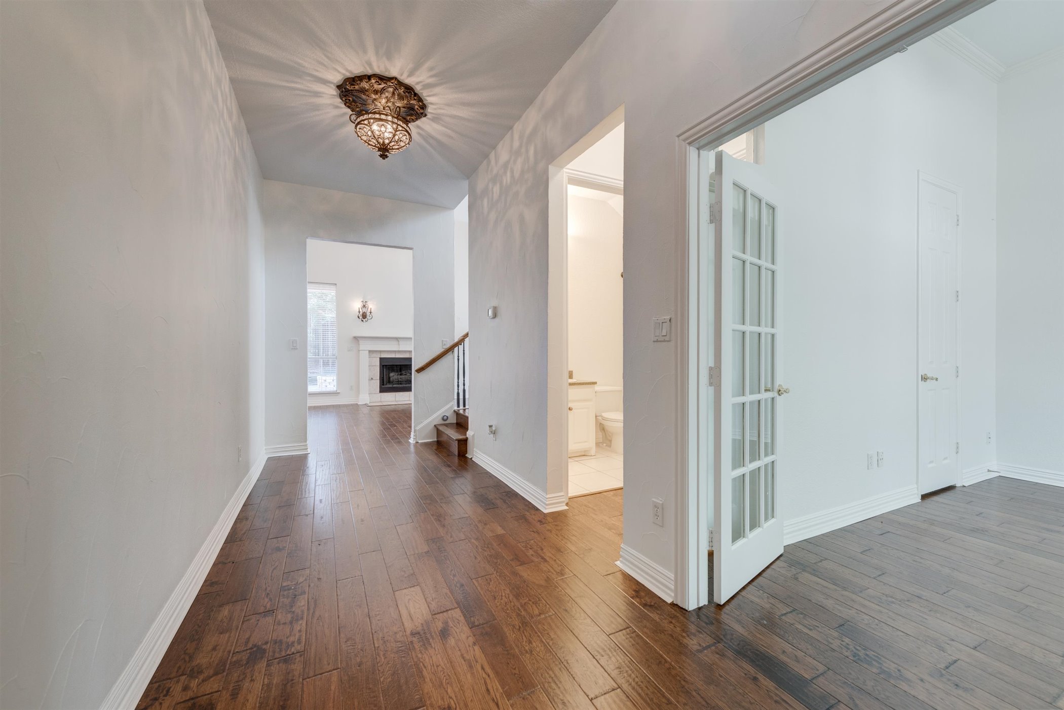 Beautiful home just minutes from downtown Grapevine, DFW Airport, and quick access to highways. You’ll find gorgeous hardwood floors, soaring ceilings an expansive entry-way, crown molding and a decorative fireplace. Open floor plan with spacious living room and dining room. Large kitchen boasts granite counters, island with more storage, breakfast bar, refrigerator and large pantry. First level bedrooms boasts large walk-in closet, it can be used as a second living room or office. Second level owner’s retreat hosts large sitting are and ensuite bath with separate vanities, large shower, and walk-in closet. Two additional bedrooms, full bath on the second level. Walk out attic storage on 2nd level!! Home comes with washer and dryer. Relax in your private backyard featuring an open patio with paver stones a fountain and a grill.