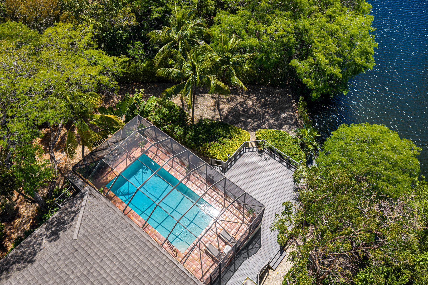 Tucked away along a quiet, tree-lined street in the Hammock area of Ocean Reef Club, 12 Mahogany Lane offers a rare opportunity to enjoy privacy, natural beauty, and a peaceful lakefront setting. Known for its lush landscapes, world class golf course, and tranquil atmosphere, the Hammock neighborhood is a favorite for those seeking a more relaxed pace—yet remains just minutes by golf cart to all of Ocean Reef's world-class amenities. Set on a generously sized homesite with serene lake views, the property is surrounded by mature tropical trees adorned with a striking variety of orchids, creating a setting that feels both private and distinctly special. With only a handful of homes along Mahogany Lane, this is a truly quiet and intimate enclave. The home is elevated on pilings and offers generous covered parking and storage below. An elevator provides convenient access from the garage level to the main living areas and pool deck. The single-level floor plan features three bedrooms and three baths, with vaulted ceilings and sliding glass doors that open to outdoor living spaces, filling the home with natural light and capturing the peaceful lakefront views. Lovingly maintained over the years, the residence presents a wonderful opportunity for its next owner. Whether reimagined with thoughtful updates or used as the foundation for a brand-new custom home, the property offers flexibility to create a vision tailored to today's lifestyle. With its idyllic Hammock setting, picturesque lake views, and close proximity to the Club's amenities, 12 Mahogany Lane represents a compelling opportunity to enjoy the best of Ocean Reef living—private, peaceful, and full of potential.