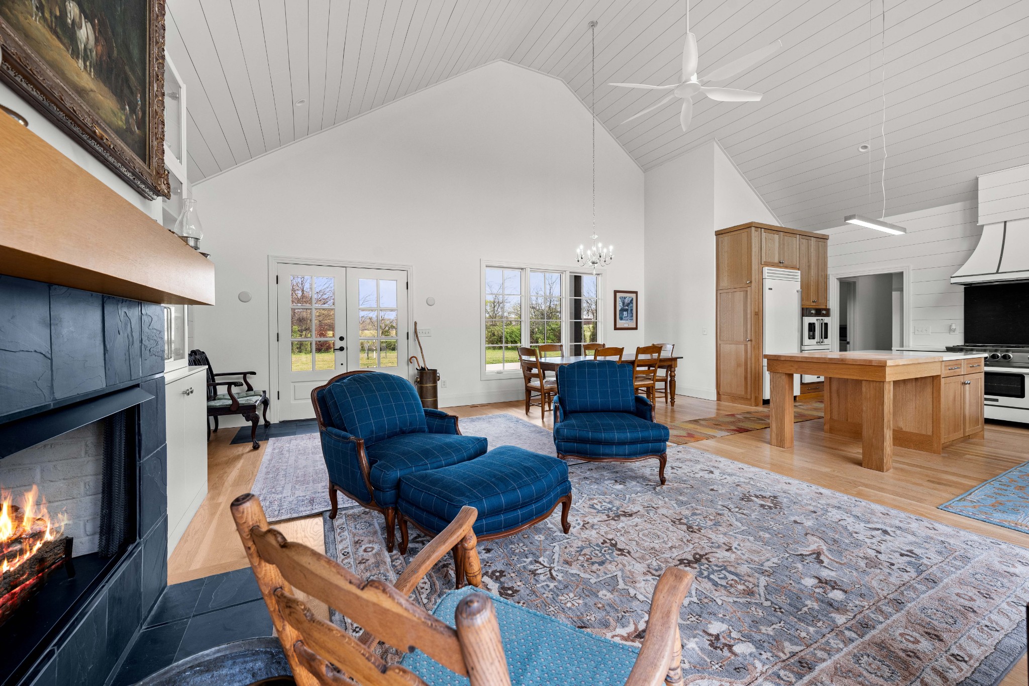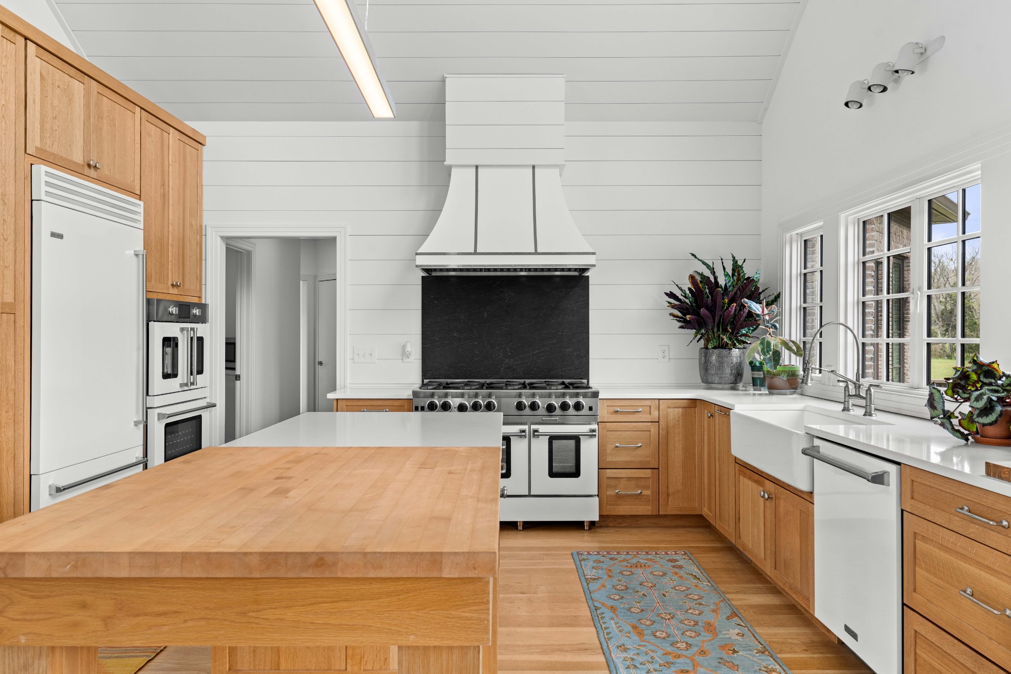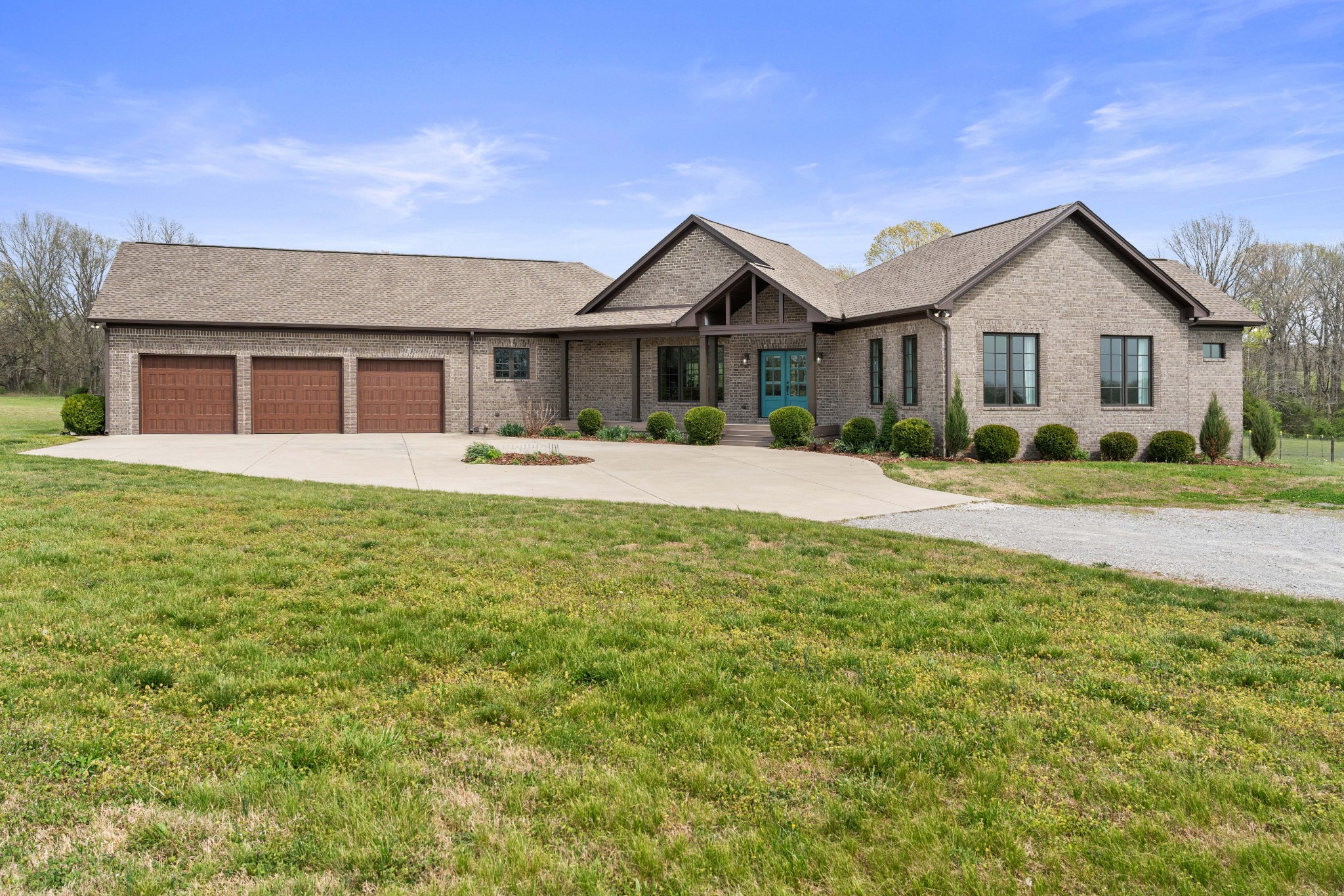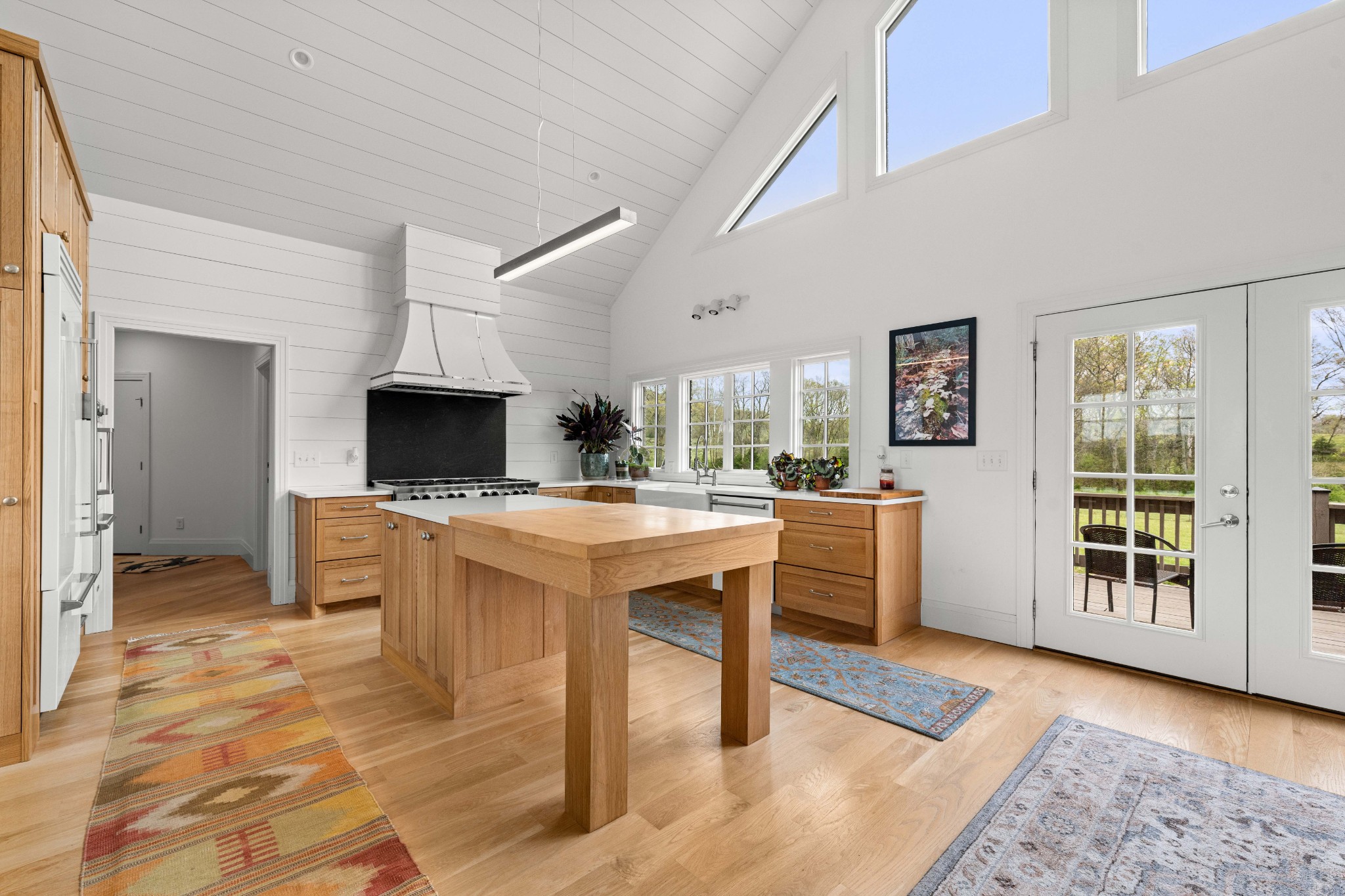 Tucked behind a long private drive on 14± acres of rolling Sumner County countryside, this custom brick home delivers the privacy, land, and quality that are increasingly hard to find this close to Gallatin's amenities. The property features open pasture, established fencing, and a creek along the edge — ready for horses, livestock, or a hobby farm — all framed by wooded ridgelines and long pastoral views from the rear deck. Inside, the soaring shiplap cathedral ceiling anchors a grand open great room and kitchen that few custom builds in this price range can match. Wide-plank hardwood floors, clerestory windows flooding the space with natural light from above, a wood-burning fireplace flanked by built-in cabinetry, and French doors opening to the oversized rear deck make this a space built for both everyday living and large-scale entertaining. The kitchen is a serious cook's environment — custom white oak cabinetry, professional BlueStar range, designer range hood, farmhouse sink with pasture views, quartz countertops, butcher block prep island, and a large walk-in pantry. The primary suite is privately situated with direct deck access and open field views, and features a spa-quality ensuite with double vanity, quartz counters, and an oversized tile shower with frameless glass enclosure. An additional en-suite bedroom, a generously sized flex room with fourth bedroom potential, a dedicated laundry room with utility sink and full cabinetry, and an enlarged two-car garage complete the thoughtful one-level floorplan. Zoned for Liberty Creek Schools — one of Sumner County's most sought-after school assignments. Whether your vision is a private retreat, a working hobby farm, or simply a custom home with room to breathe, 989 Franklin Road checks every box without compromise. The home's east-to-west orientation maximizes natural light throughout the day, and the rear deck's sweeping pasture and tree line views remind you at every turn exactly why you chose this property.