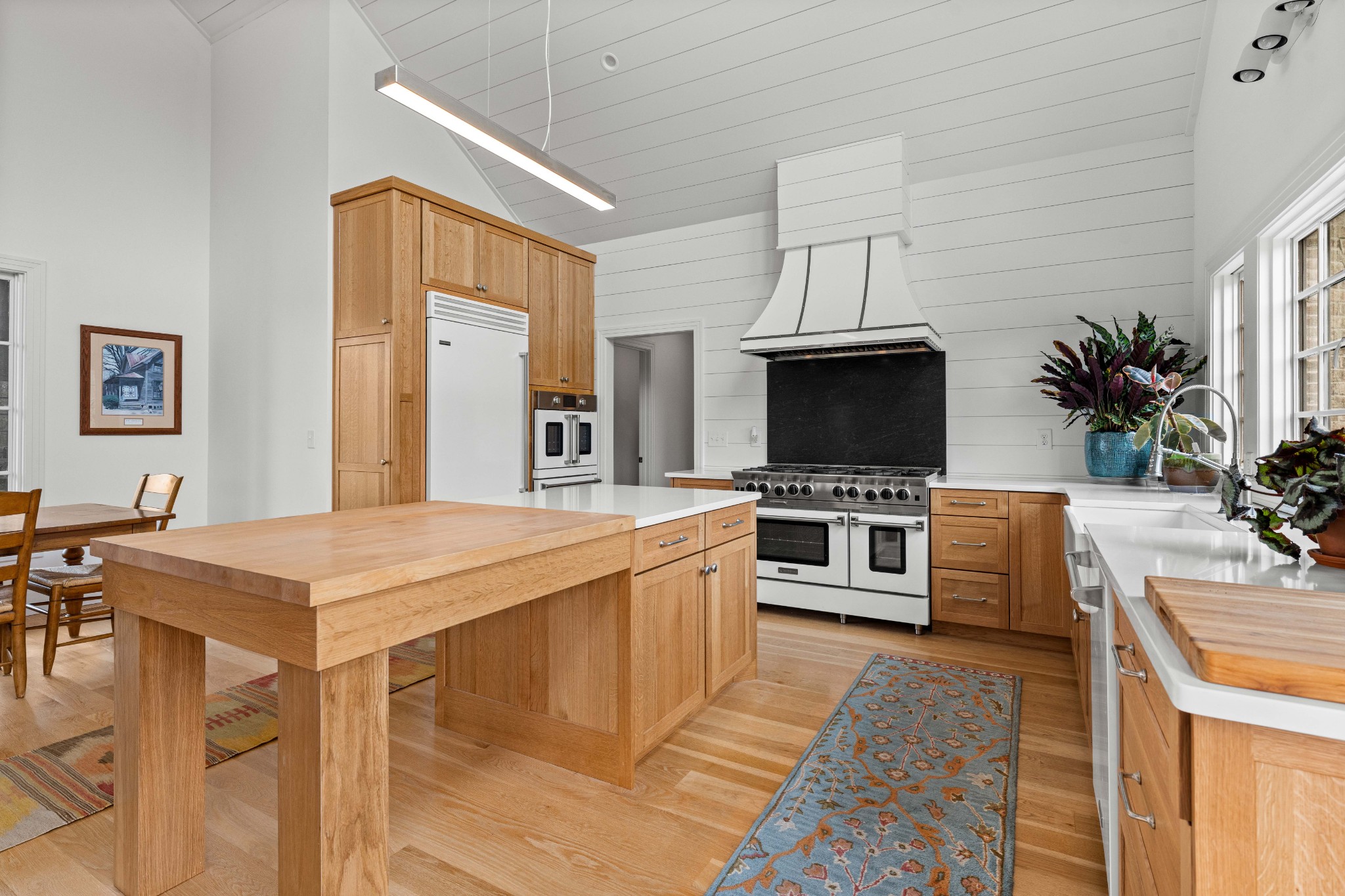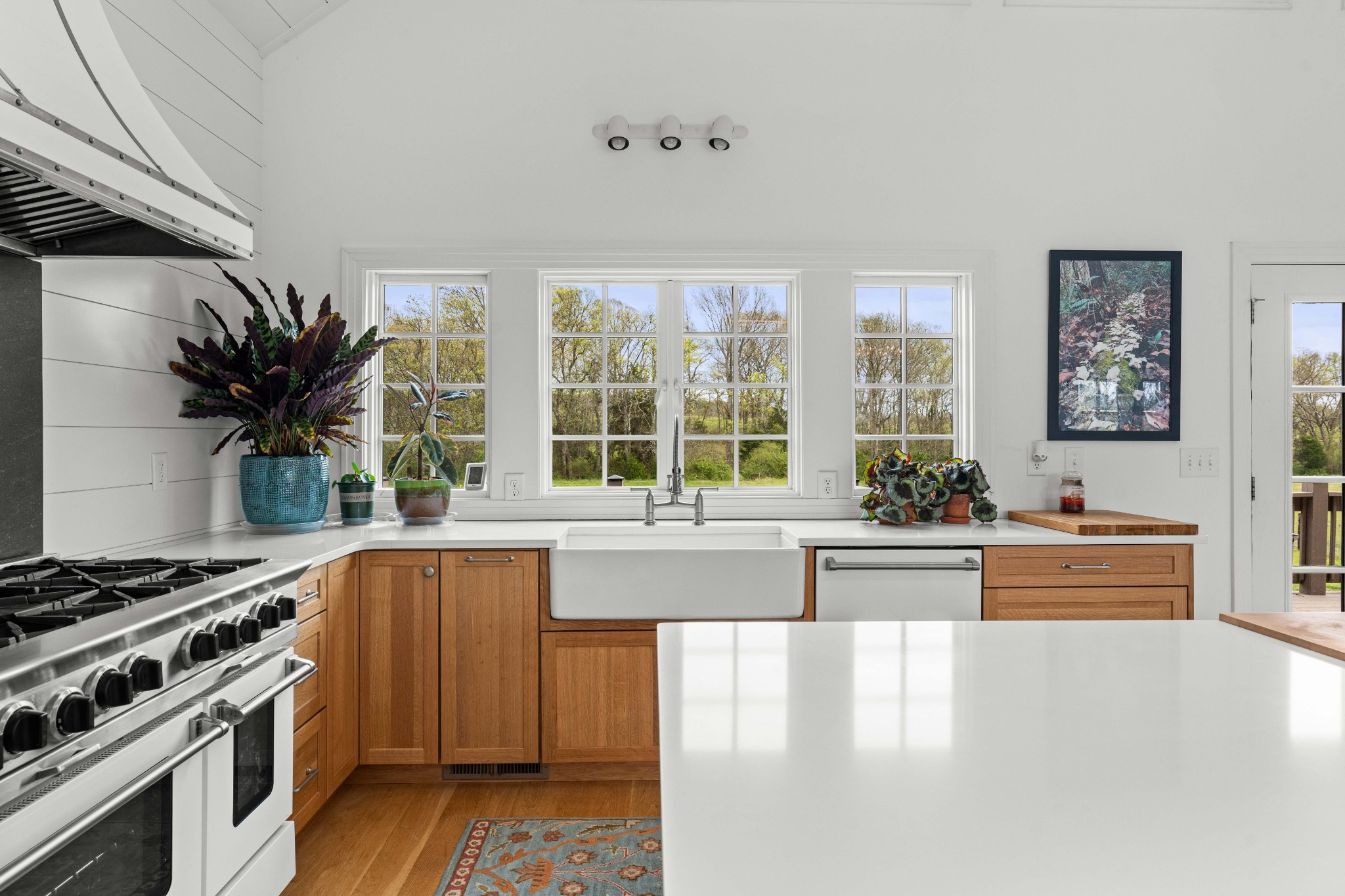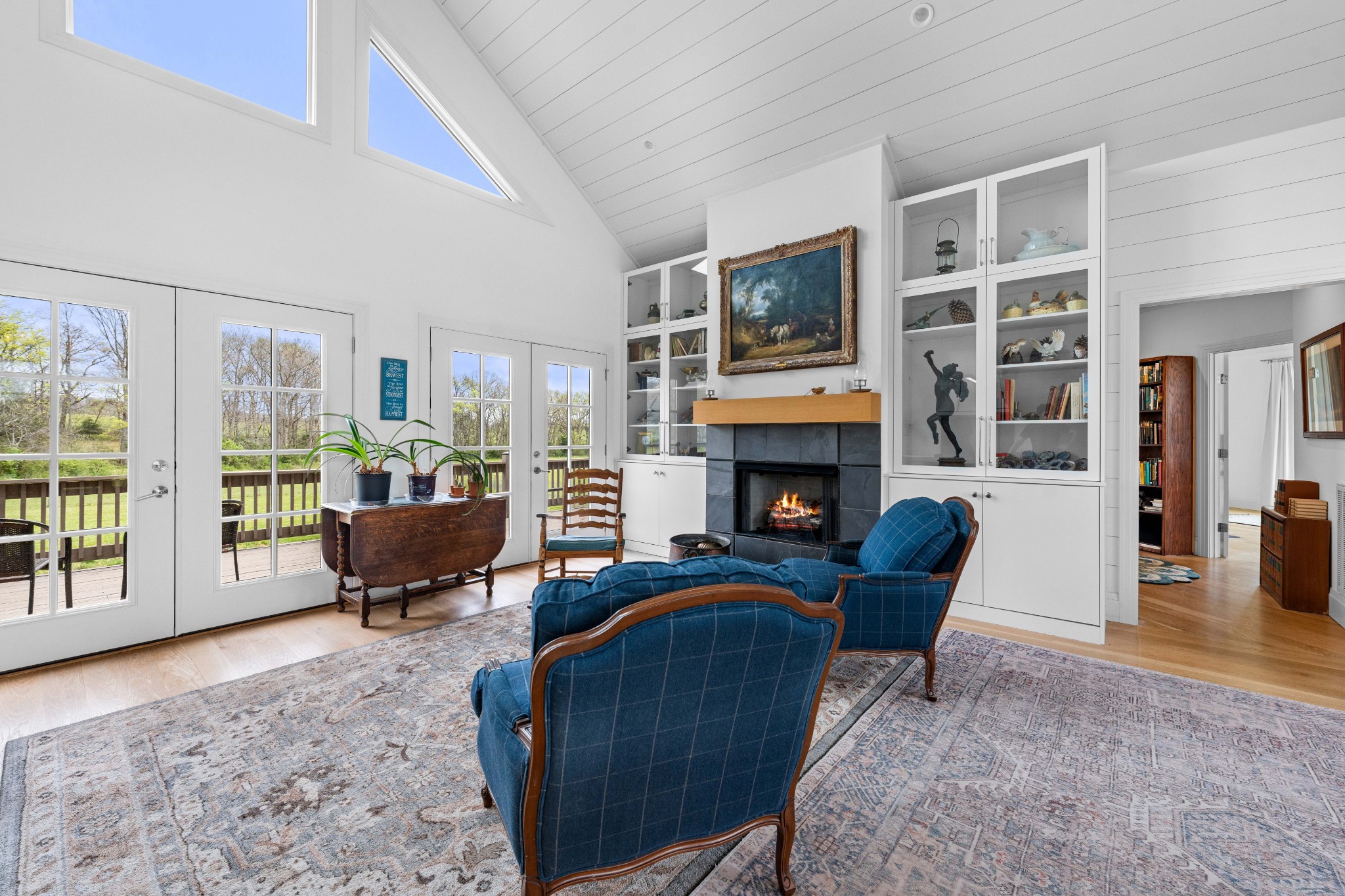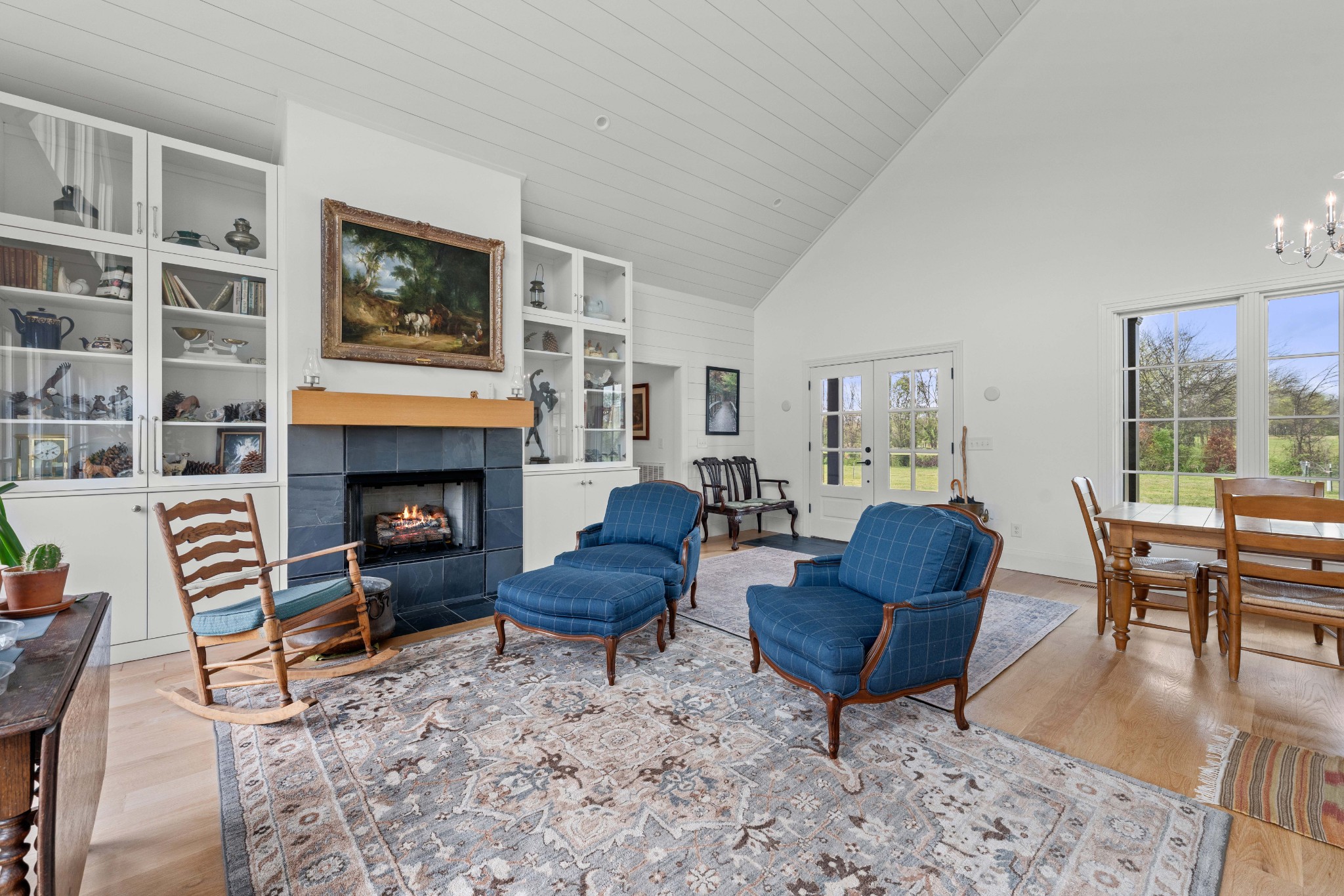 Tucked behind a long private drive on 14± acres of rolling Sumner County countryside, this custom brick home delivers the privacy, land, and quality that are increasingly hard to find this close to Gallatin's amenities. The property features open pasture, established fencing, and a creek along the edge — ready for horses, livestock, or a hobby farm — all framed by wooded ridgelines and long pastoral views from the rear deck. Inside, the soaring shiplap cathedral ceiling anchors a grand open great room and kitchen that few custom builds in this price range can match. Wide-plank hardwood floors, clerestory windows flooding the space with natural light from above, a wood-burning fireplace flanked by built-in cabinetry, and French doors opening to the oversized rear deck make this a space built for both everyday living and large-scale entertaining. The kitchen is a serious cook's environment — custom white oak cabinetry, professional BlueStar range, designer range hood, farmhouse sink with pasture views, quartz countertops, butcher block prep island, and a large walk-in pantry. The primary suite is privately situated with direct deck access and open field views, and features a spa-quality ensuite with double vanity, quartz counters, and an oversized tile shower with frameless glass enclosure. An additional en-suite bedroom, a generously sized flex room with fourth bedroom potential, a dedicated laundry room with utility sink and full cabinetry, and an enlarged two-car garage complete the thoughtful one-level floorplan. Zoned for Liberty Creek Schools — one of Sumner County's most sought-after school assignments. Whether your vision is a private retreat, a working hobby farm, or simply a custom home with room to breathe, 989 Franklin Road checks every box without compromise. The home's east-to-west orientation maximizes natural light throughout the day, and the rear deck's sweeping pasture and tree line views remind you at every turn exactly why you chose this property.