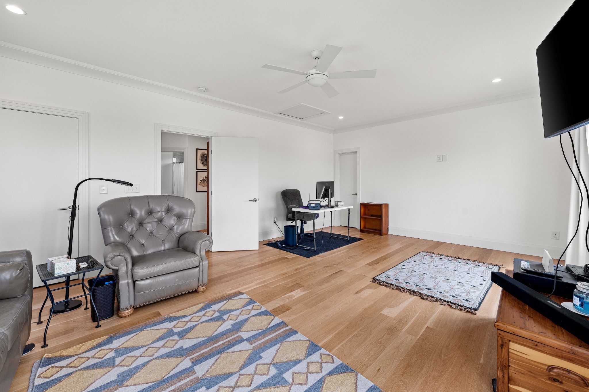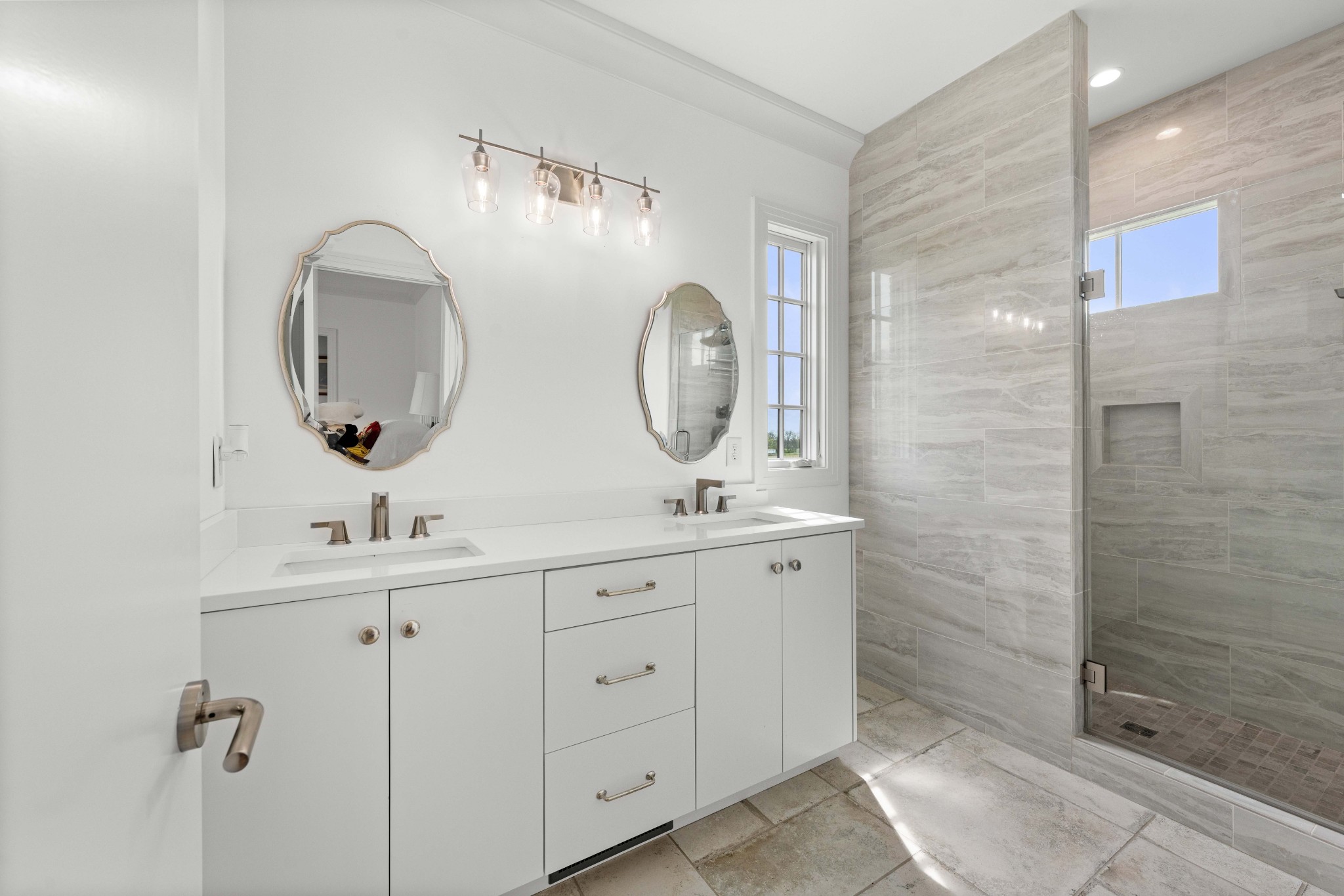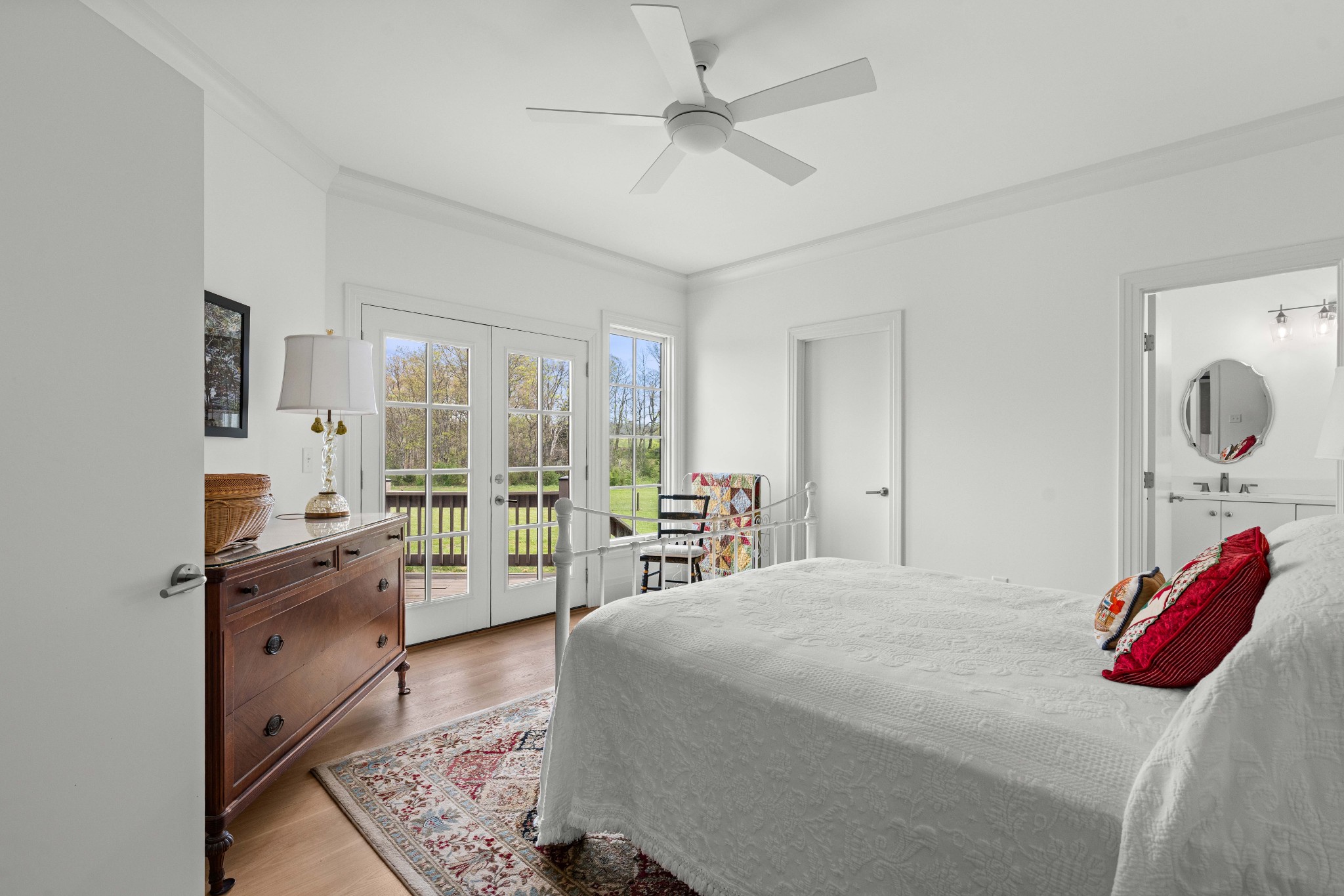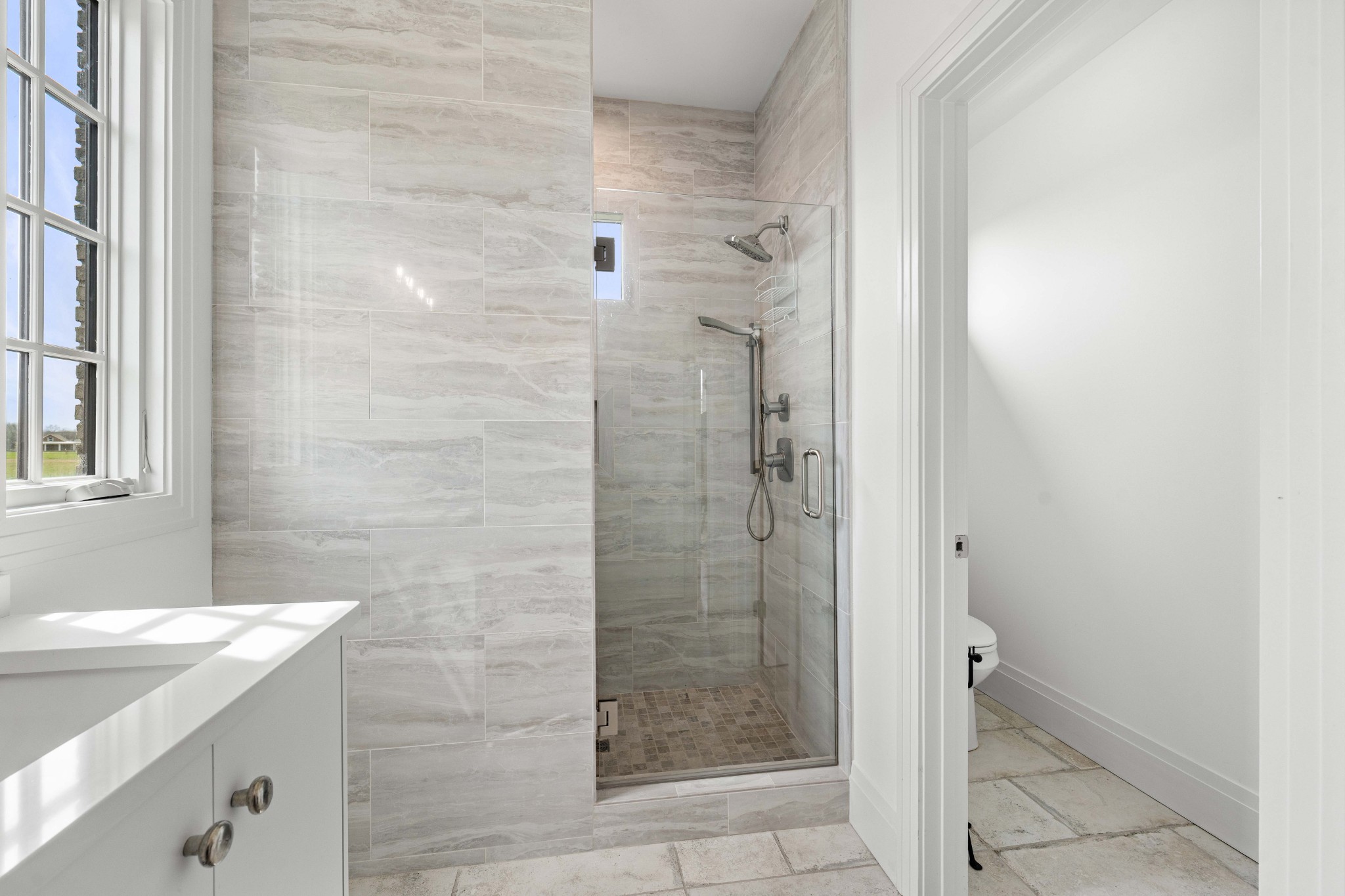 Tucked behind a long private drive on 14± acres of rolling Sumner County countryside, this custom brick home delivers the privacy, land, and quality that are increasingly hard to find this close to Gallatin's amenities. The property features open pasture, established fencing, and a creek along the edge — ready for horses, livestock, or a hobby farm — all framed by wooded ridgelines and long pastoral views from the rear deck. Inside, the soaring shiplap cathedral ceiling anchors a grand open great room and kitchen that few custom builds in this price range can match. Wide-plank hardwood floors, clerestory windows flooding the space with natural light from above, a wood-burning fireplace flanked by built-in cabinetry, and French doors opening to the oversized rear deck make this a space built for both everyday living and large-scale entertaining. The kitchen is a serious cook's environment — custom white oak cabinetry, professional BlueStar range, designer range hood, farmhouse sink with pasture views, quartz countertops, butcher block prep island, and a large walk-in pantry. The primary suite is privately situated with direct deck access and open field views, and features a spa-quality ensuite with double vanity, quartz counters, and an oversized tile shower with frameless glass enclosure. An additional en-suite bedroom, a generously sized flex room with fourth bedroom potential, a dedicated laundry room with utility sink and full cabinetry, and an enlarged two-car garage complete the thoughtful one-level floorplan. Zoned for Liberty Creek Schools — one of Sumner County's most sought-after school assignments. Whether your vision is a private retreat, a working hobby farm, or simply a custom home with room to breathe, 989 Franklin Road checks every box without compromise. The home's east-to-west orientation maximizes natural light throughout the day, and the rear deck's sweeping pasture and tree line views remind you at every turn exactly why you chose this property.