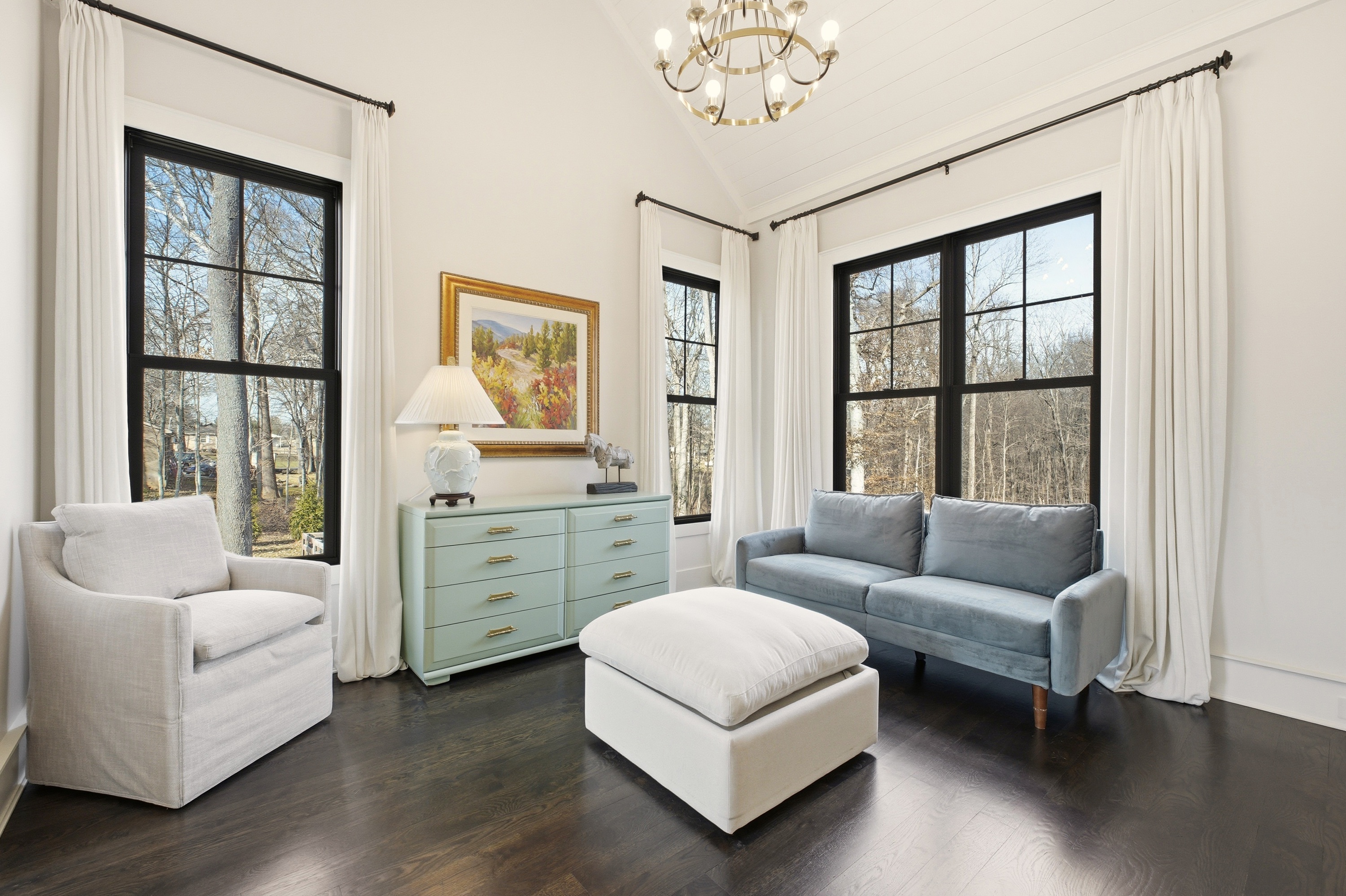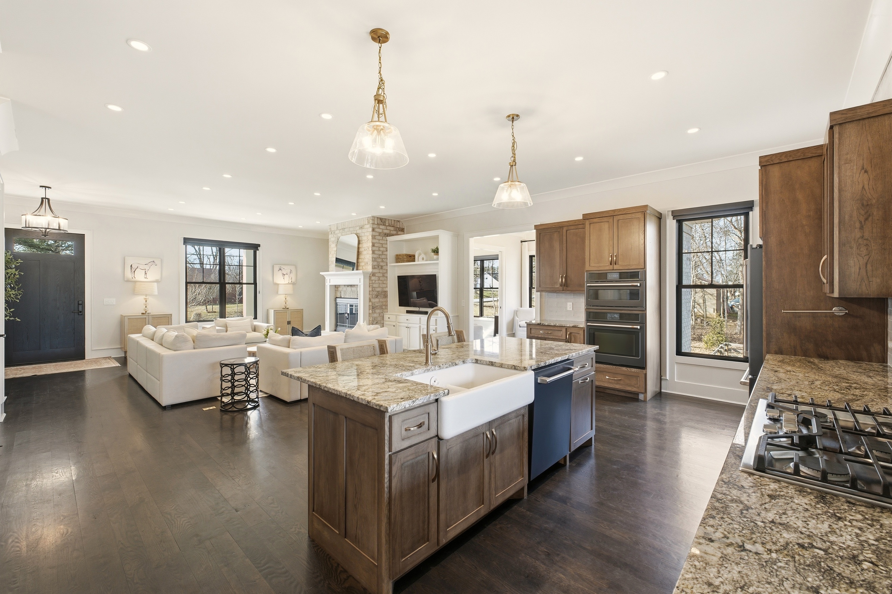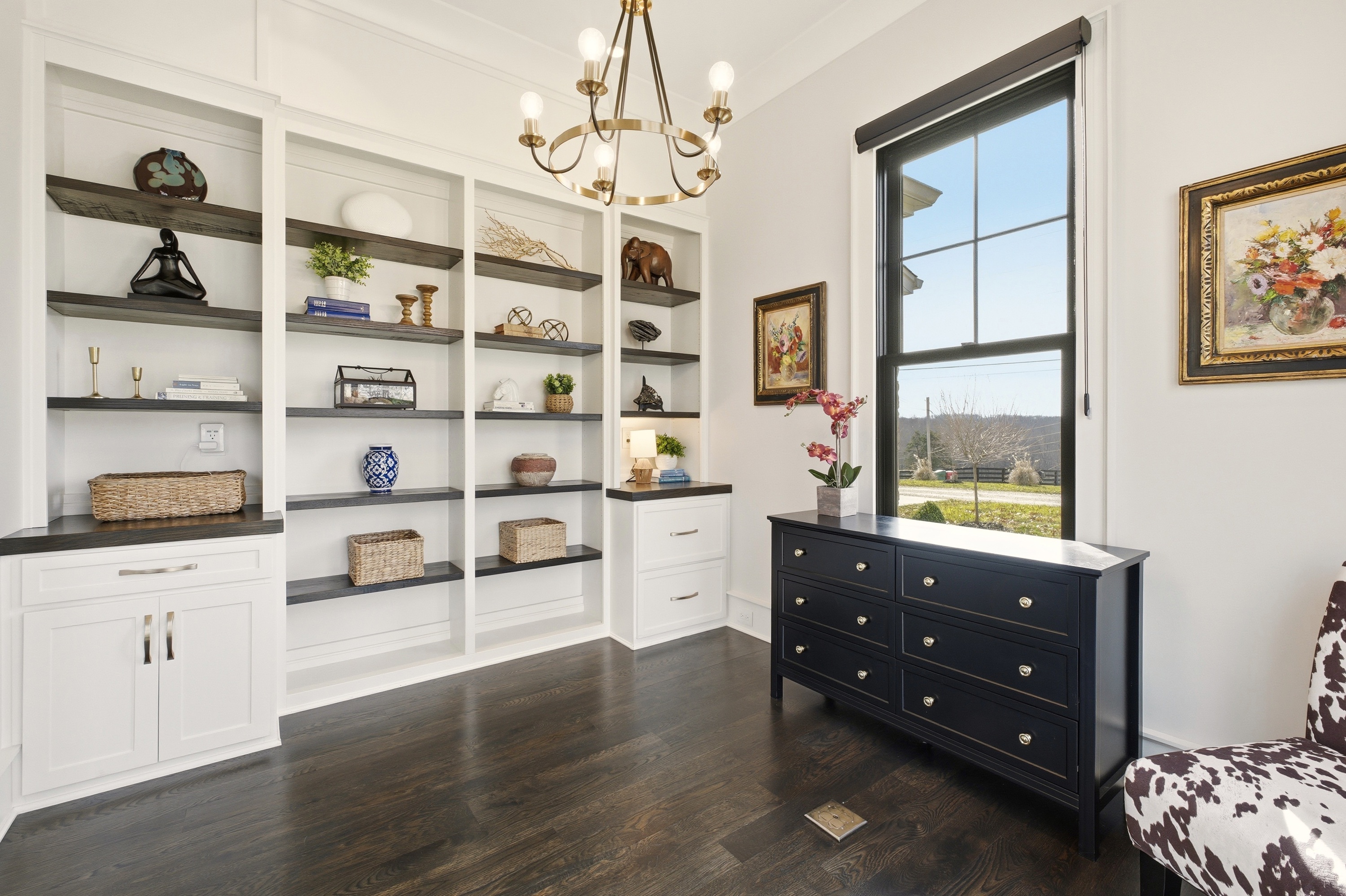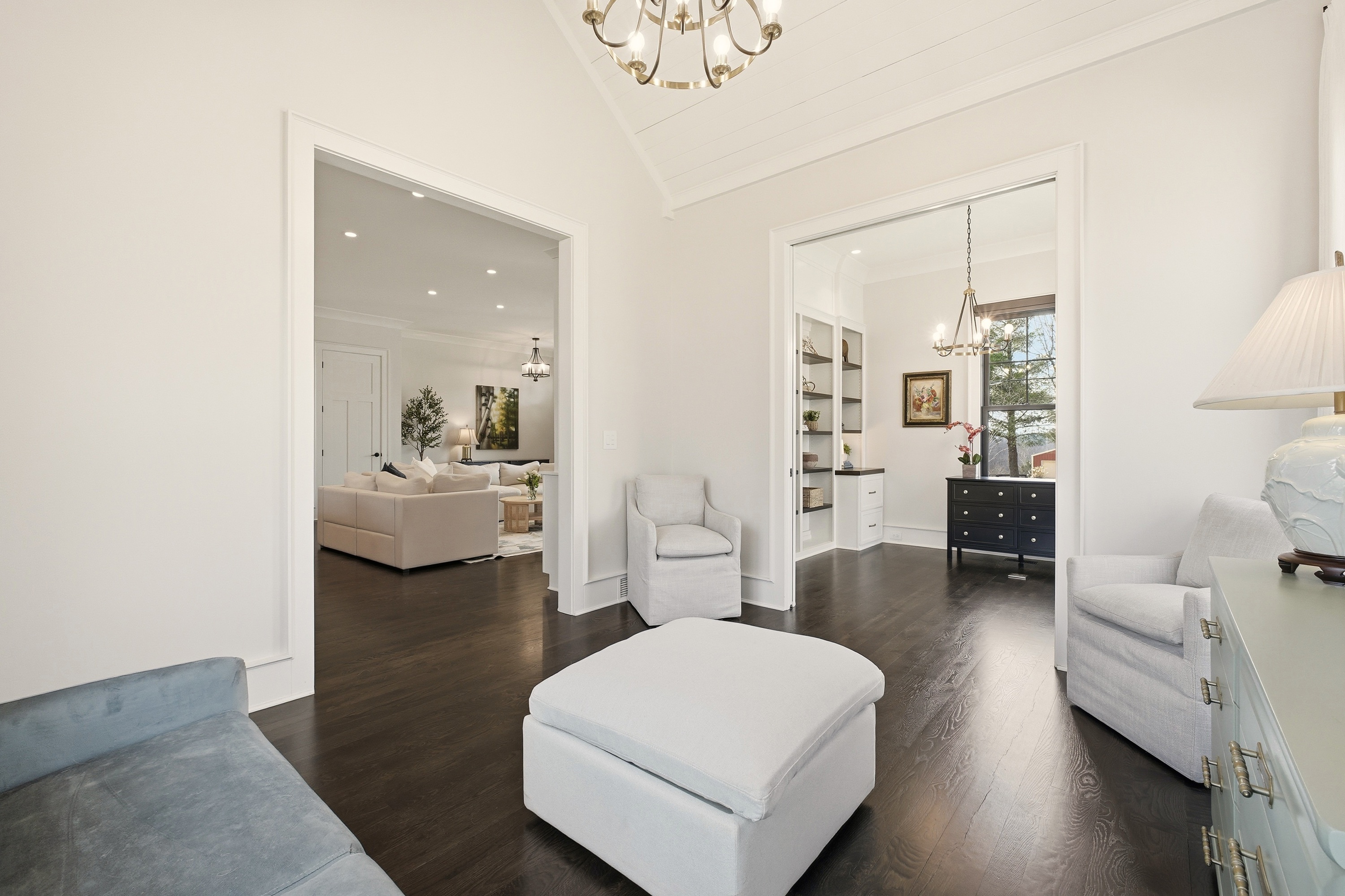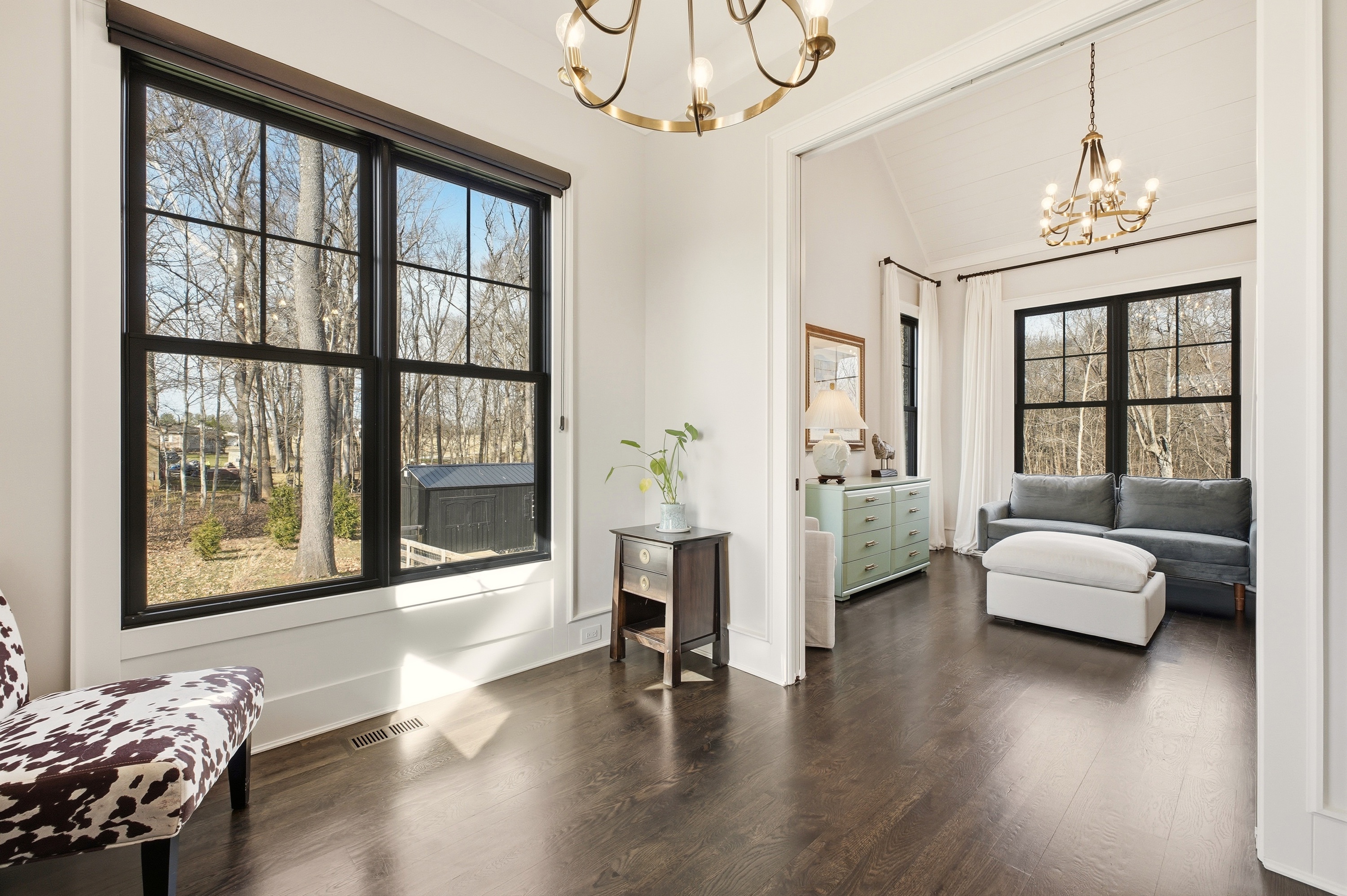 Situated on over 4 acres in Floyds Knobs, this custom built home offers the feel of new construction with the finishes and attention to detail today's buyers love. Enjoy picturesque land with no HOA, all while being just minutes from amenities and schools. An expansive covered front porch welcomes you inside, where abundant natural light, high ceilings, detailed trimwork, and hardwood flooring run throughout the first floor. The gourmet kitchen features a row of windows overlooking the park like backyard, custom cabinetry, granite countertops, a large center island, and top of the line appliances including a gas range and warming drawer. Tucked just off the kitchen is a walk in pantry with custom built ins. Just beyond the kitchen, a covered porch offers peaceful views, ideal for enjoying evenings at home. A recently added fence provides added convenience. The kitchen also opens to a bright morning room with a vaulted shiplap ceiling and attached office space with built ins. The private primary suite is a true retreat, featuring a spa like bathroom with dual sinks, soaking tub, large tiled walk in shower, and a custom closet. A second bedroom with its own en suite bath and walk in closet, large laundry room, and powder room complete the first floor. The walkout lower level offers 1,669 square feet of finished living space with stained concrete flooring, built in cabinetry, wet bar, second fireplace, bedroom with en suite bath, additional half bath, and a recently finished hidden safe room behind the bar area. Additional updates include a 12 x 20 outdoor garden shed, whole home water softener system, radon system, backyard fence, and new landscaping including green giants for added privacy. With over 4,000 finished square feet, an additional nearly 1,000 square feet of unfinished space, and 3 bedrooms with 5 bathrooms, this exceptional Floyds Knobs property offers the perfect blend of luxury, privacy, and convenience. Contact us to arrange your private viewing.