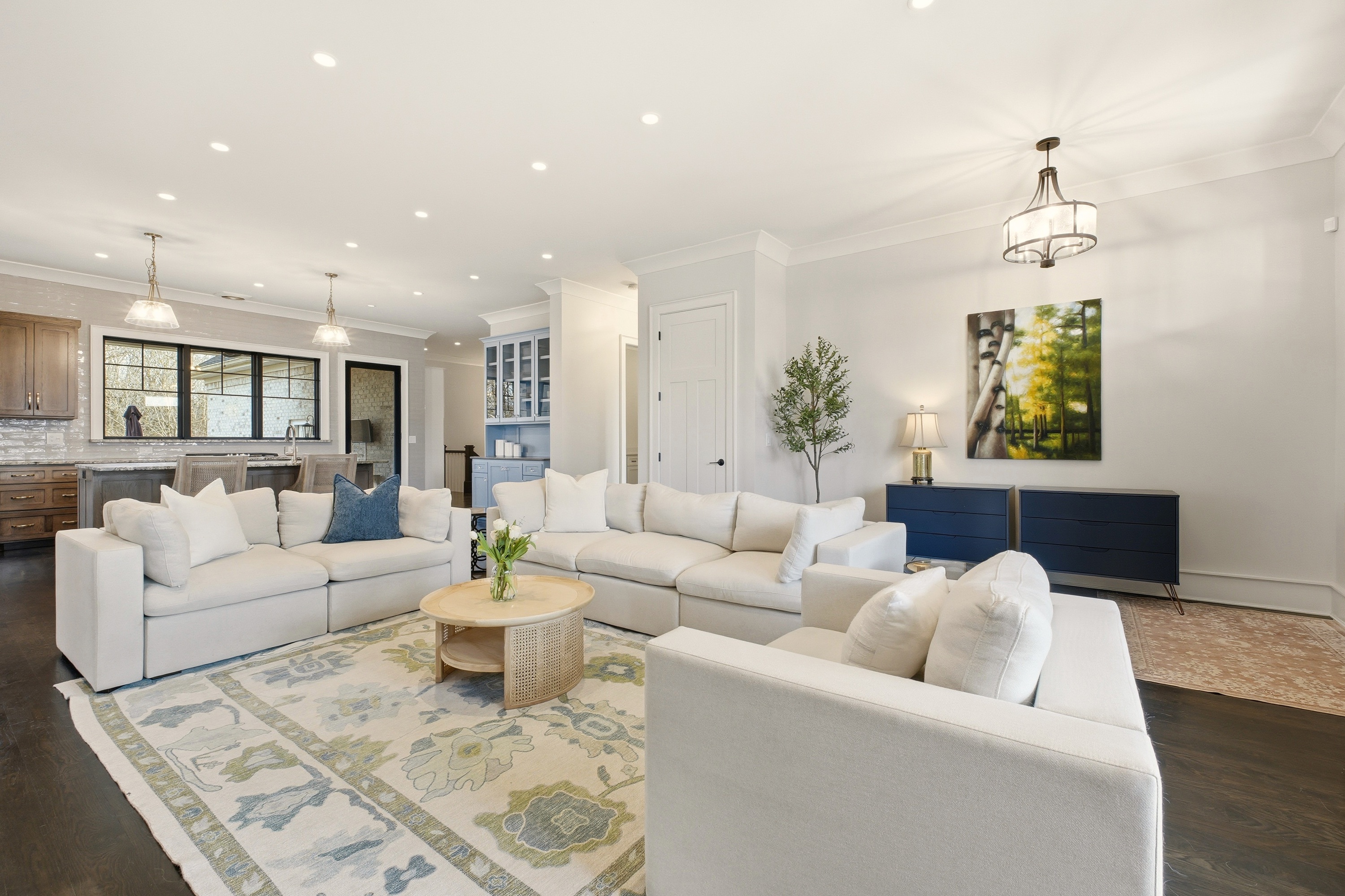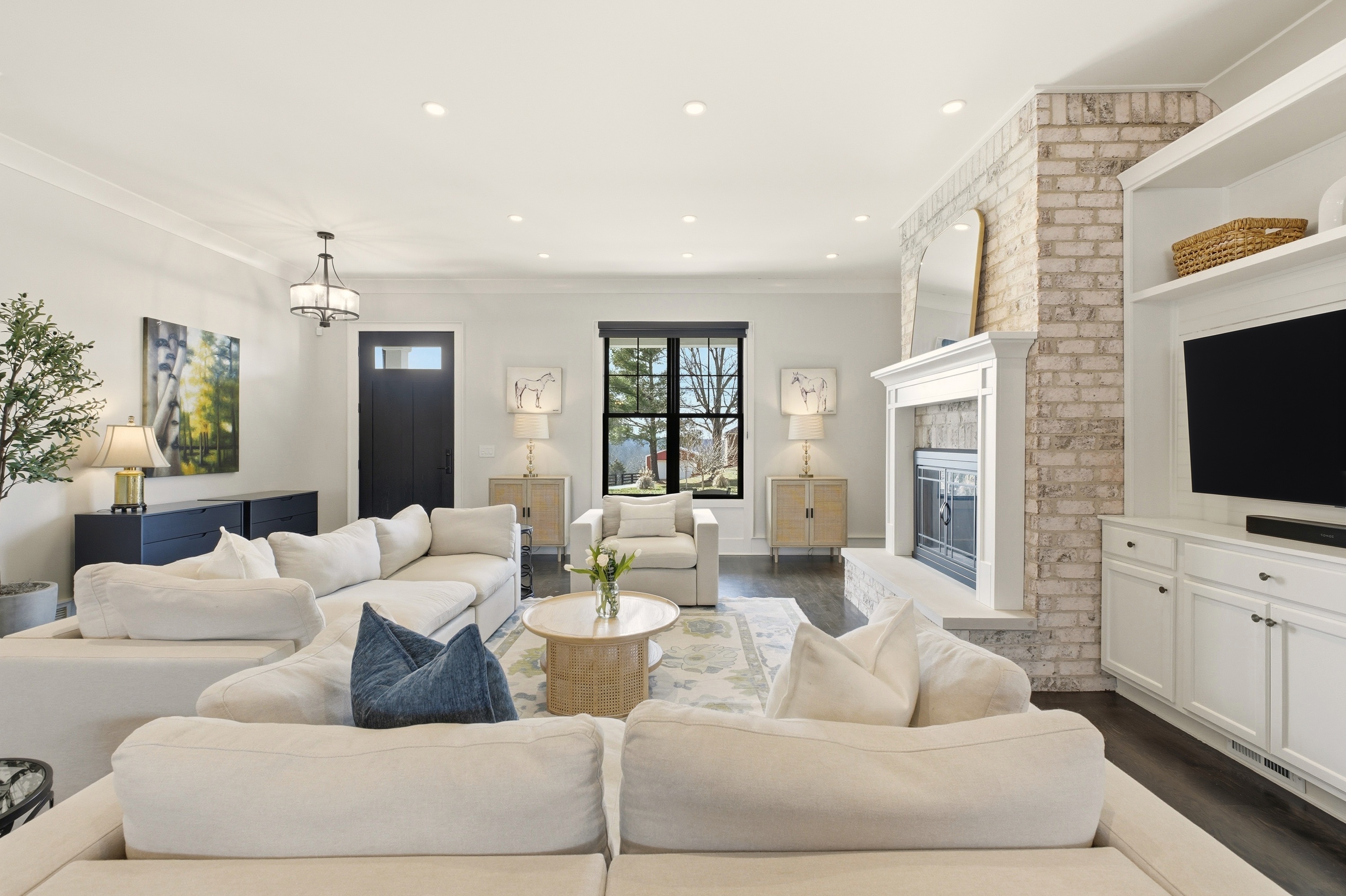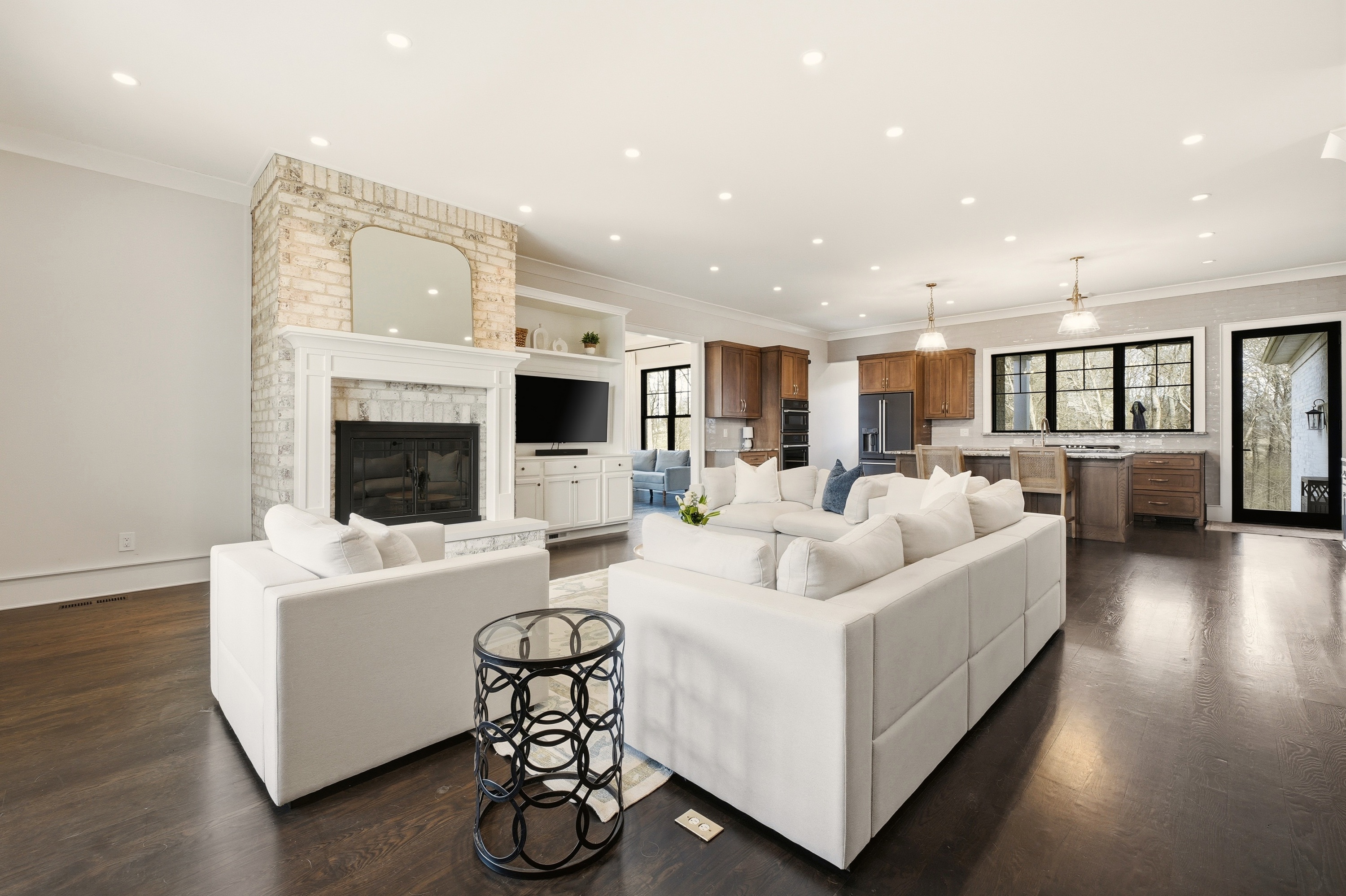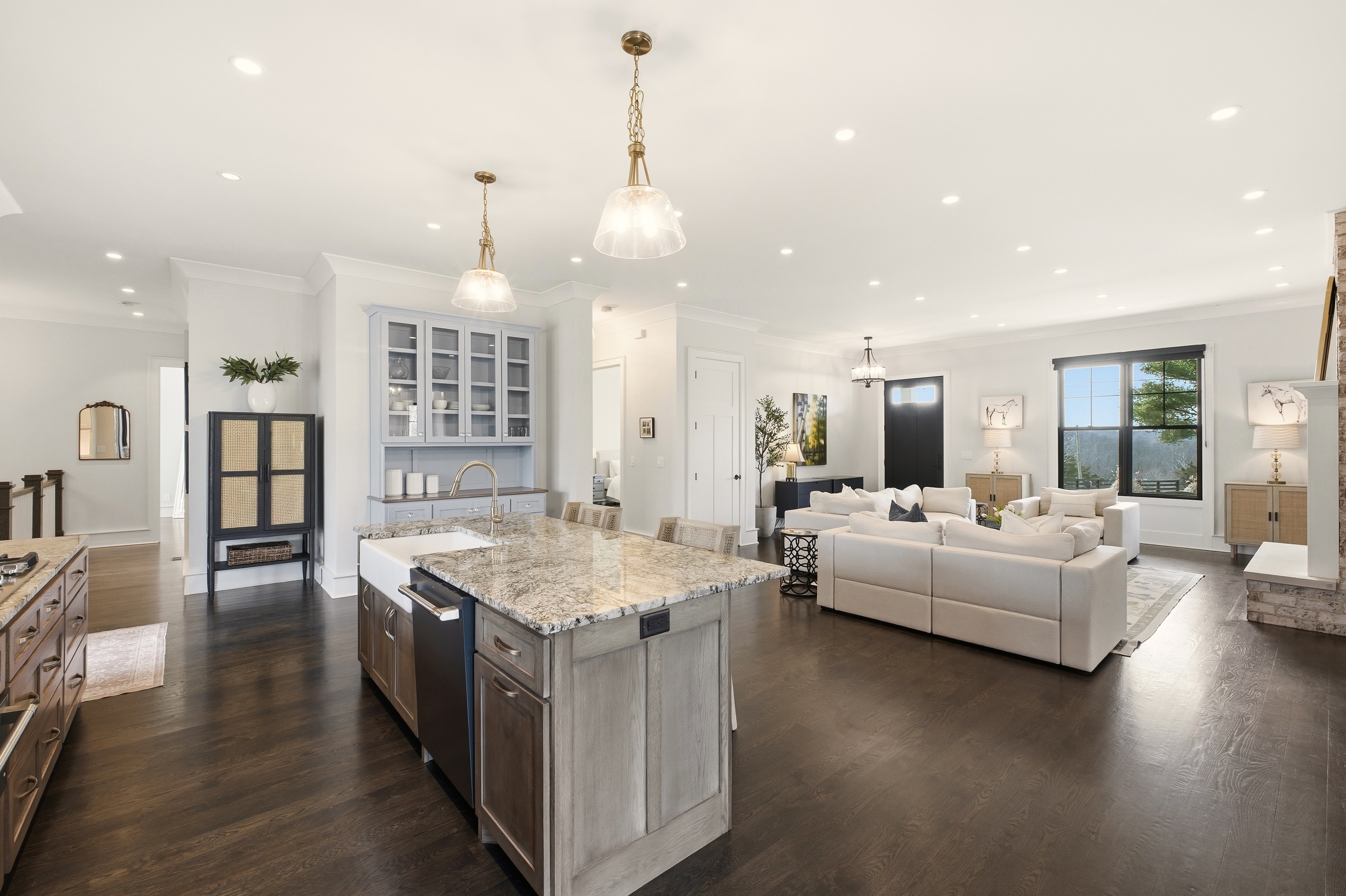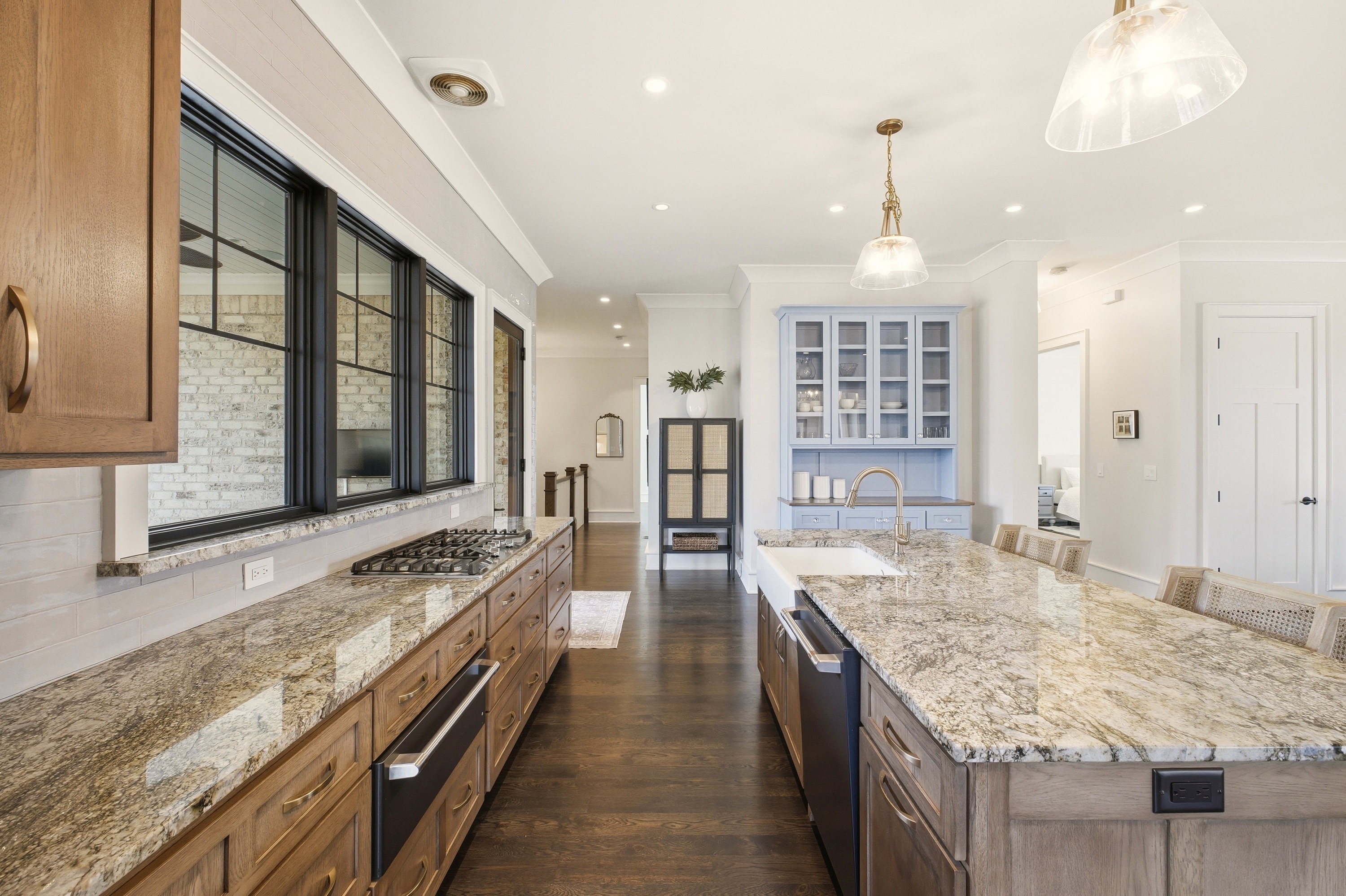Situated on over 4 acres in Floyds Knobs, this custom built home offers the feel of new construction with the finishes and attention to detail today's buyers love. Enjoy picturesque land with no HOA, all while being just minutes from amenities and schools. An expansive covered front porch welcomes you inside, where abundant natural light, high ceilings, detailed trimwork, and hardwood flooring run throughout the first floor. The gourmet kitchen features a row of windows overlooking the park like backyard, custom cabinetry, granite countertops, a large center island, and top of the line appliances including a gas range and warming drawer. Tucked just off the kitchen is a walk in pantry with custom built ins. Just beyond the kitchen, a covered porch offers peaceful views, ideal for enjoying evenings at home. A recently added fence provides added convenience. The kitchen also opens to a bright morning room with a vaulted shiplap ceiling and attached office space with built ins. The private primary suite is a true retreat, featuring a spa like bathroom with dual sinks, soaking tub, large tiled walk in shower, and a custom closet. A second bedroom with its own en suite bath and walk in closet, large laundry room, and powder room complete the first floor. The walkout lower level offers 1,669 square feet of finished living space with stained concrete flooring, built in cabinetry, wet bar, second fireplace, bedroom with en suite bath, additional half bath, and a recently finished hidden safe room behind the bar area. Additional updates include a 12 x 20 outdoor garden shed, whole home water softener system, radon system, backyard fence, and new landscaping including green giants for added privacy. With over 4,000 finished square feet, an additional nearly 1,000 square feet of unfinished space, and 3 bedrooms with 5 bathrooms, this exceptional Floyds Knobs property offers the perfect blend of luxury, privacy, and convenience. Contact us to arrange your private viewing.