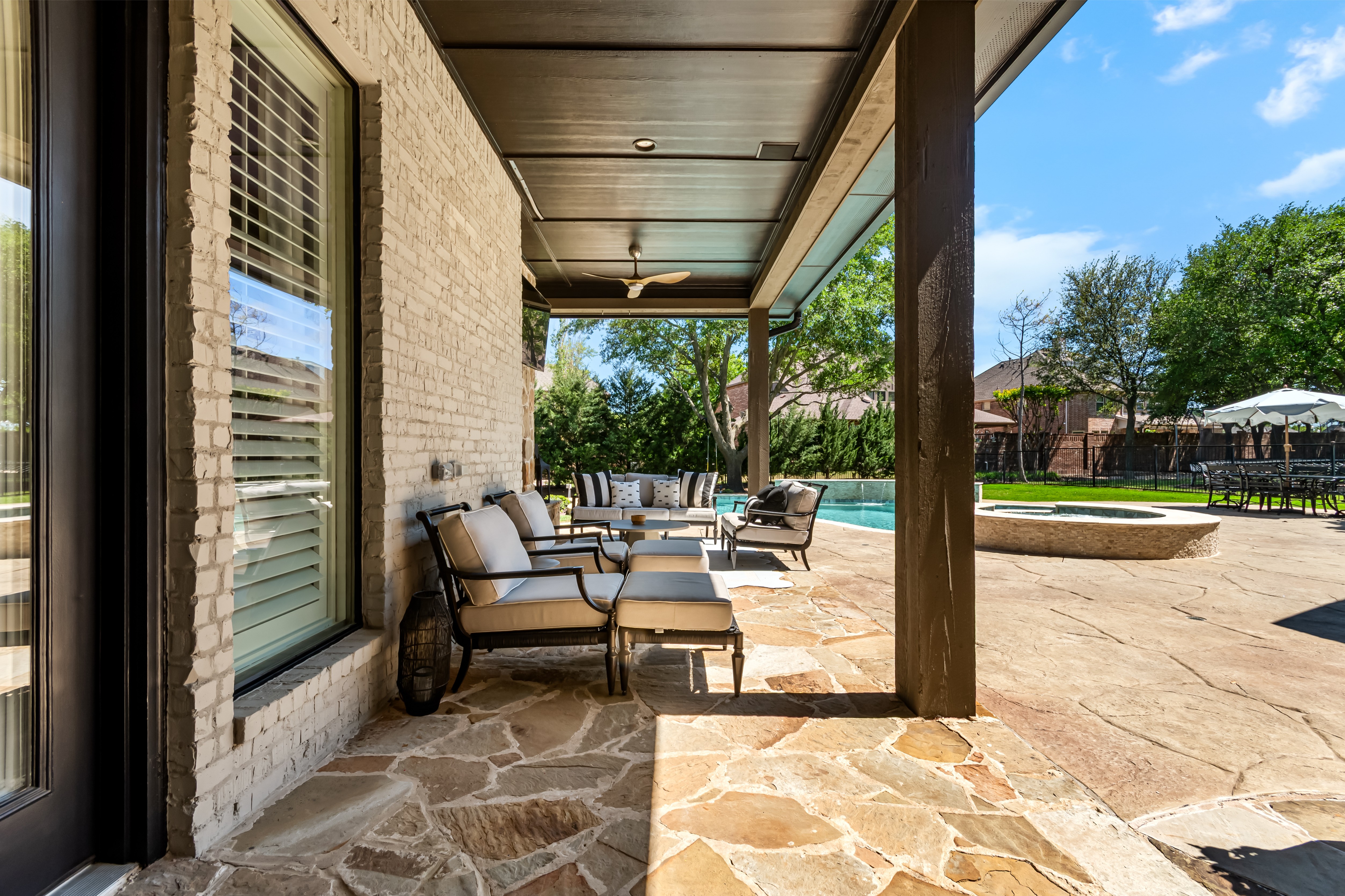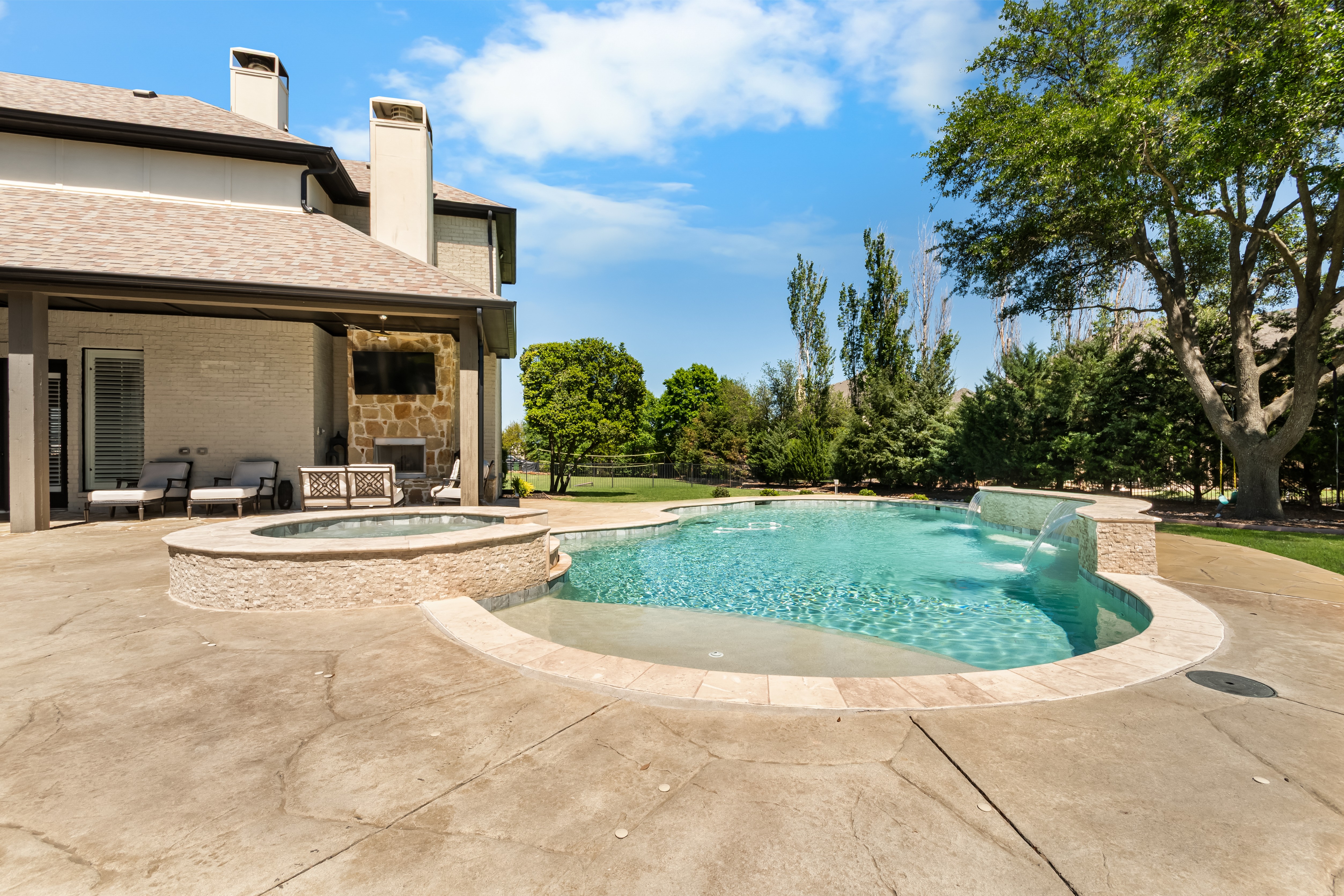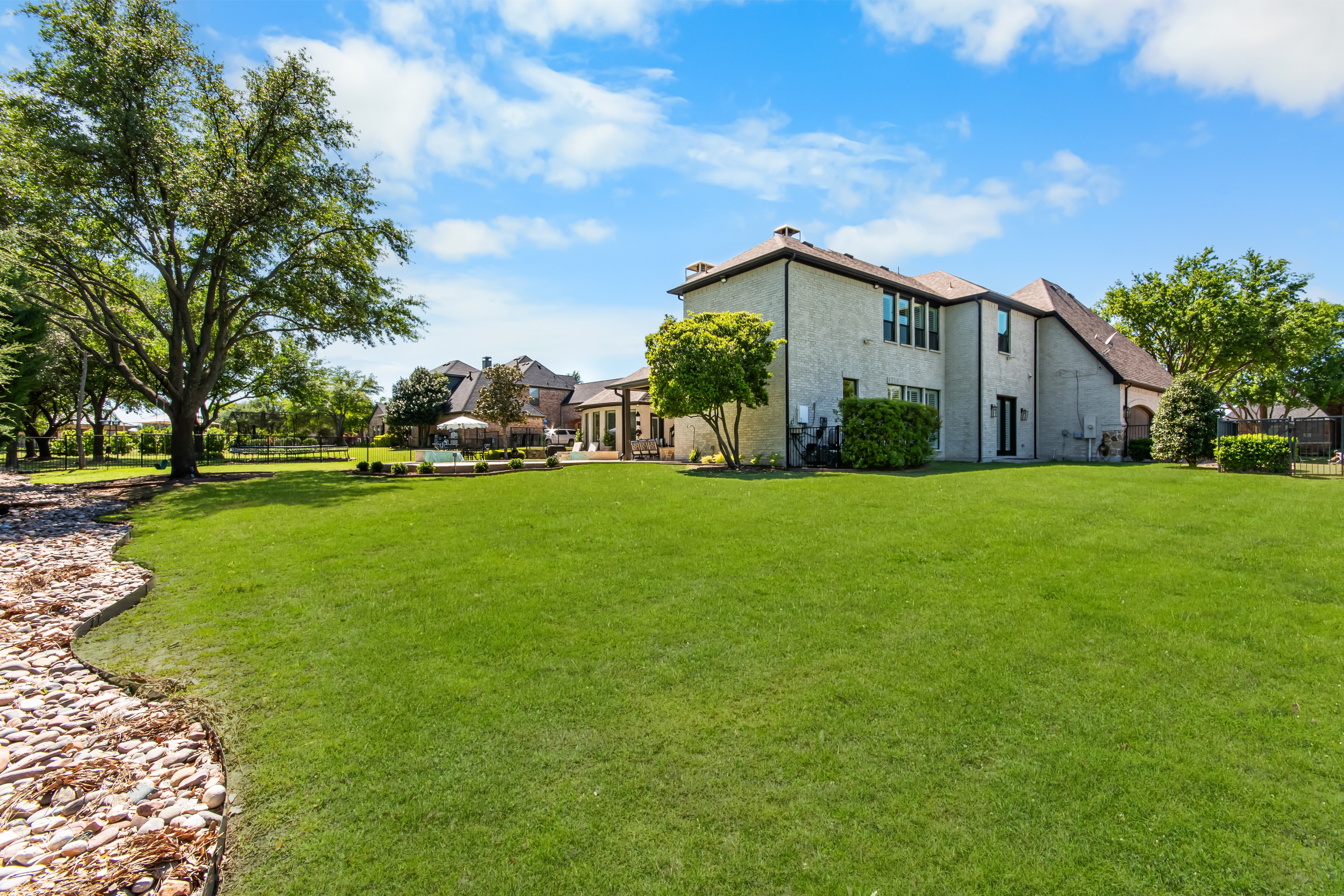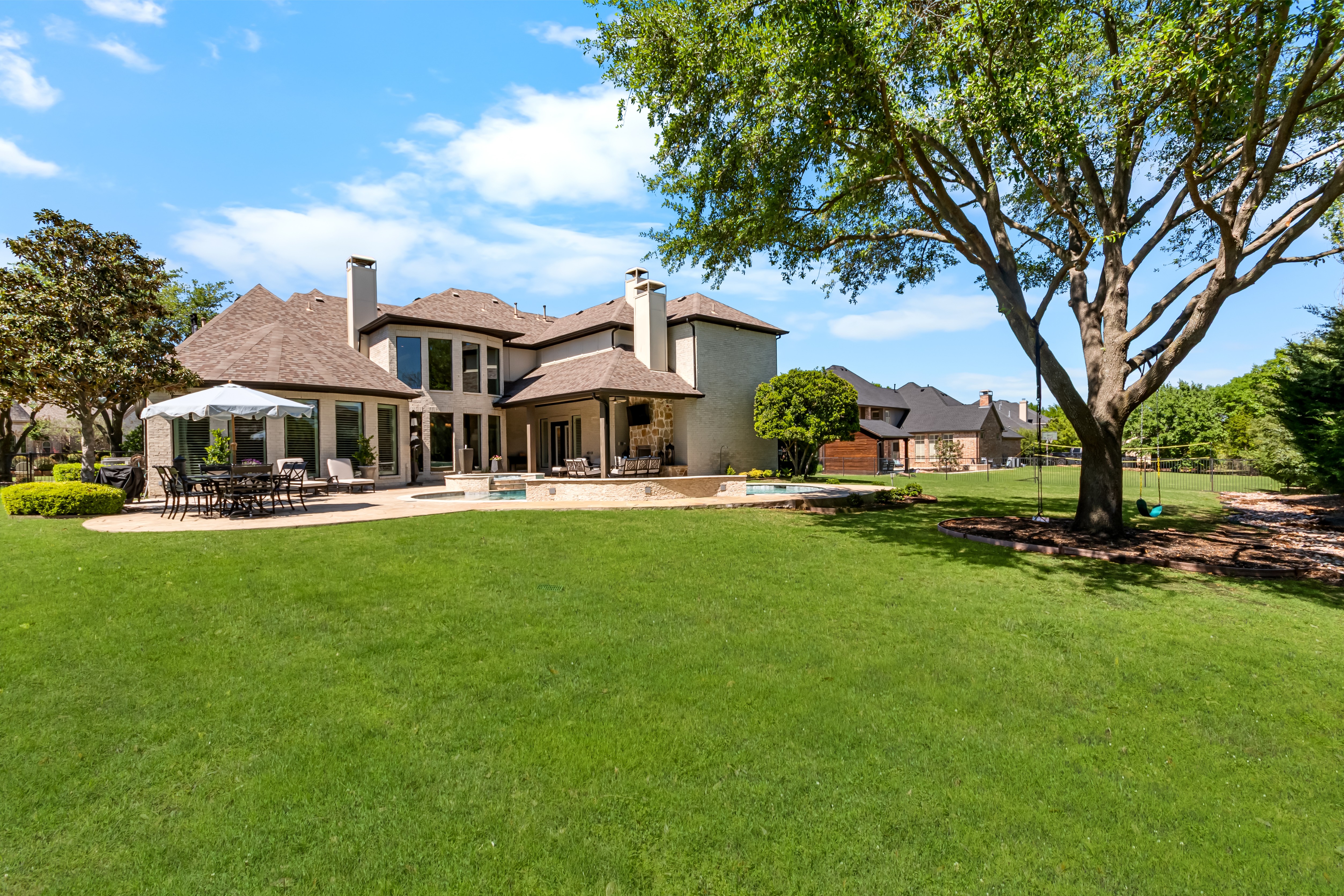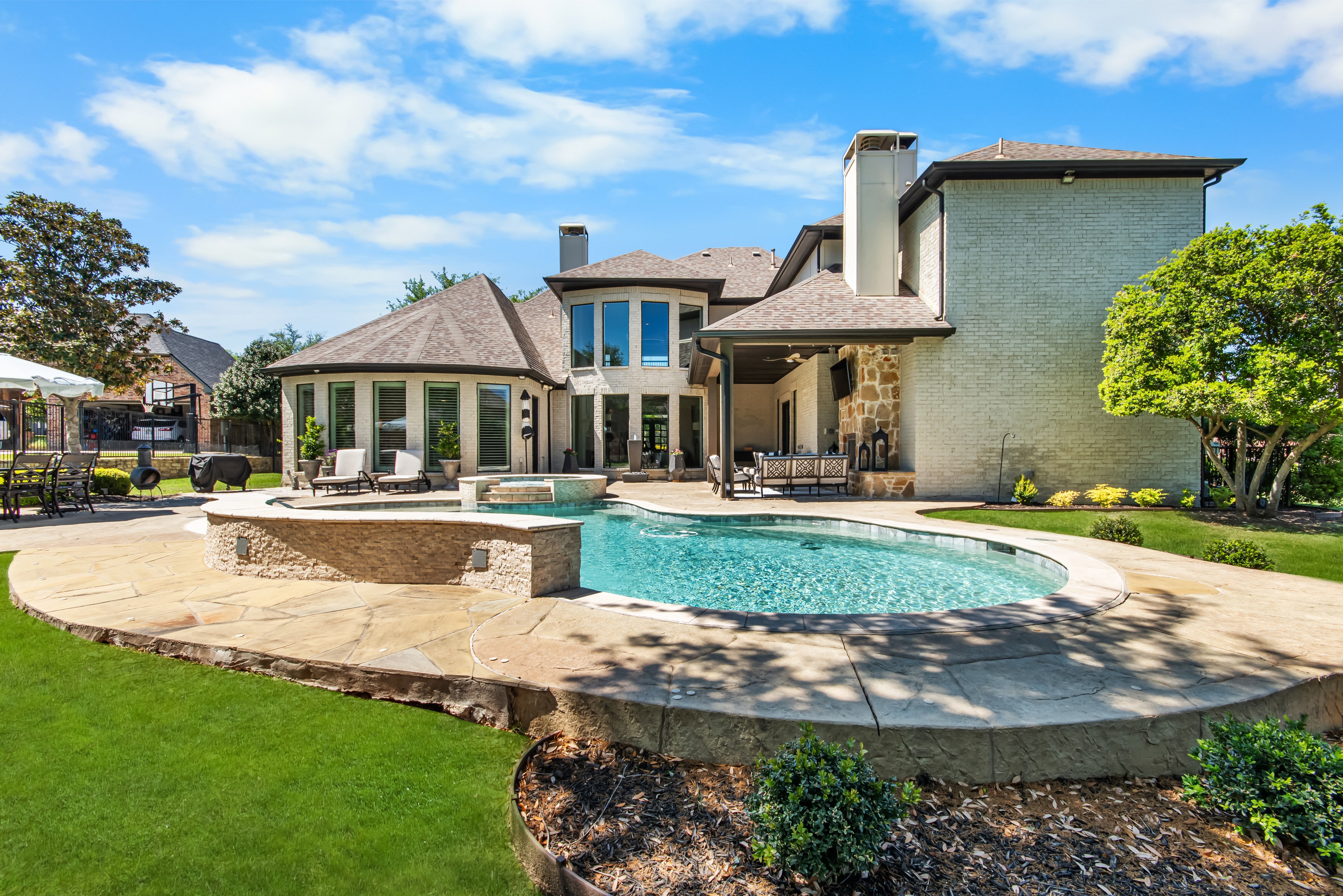 Experience the height of luxury living in Prosper with this exceptional, one-of-a-kind estate—originally designed and built by a custom luxury builder as his personal residence. Showcasing unparalleled craftsmanship, the home has been extensively updated with over $700,000 in thoughtful, high-end renovations, blending timeless elegance with today’s most sought-after finishes. Located within the acclaimed Prosper ISD, this home offers not just a place to live, but a lifestyle defined by excellence. From the moment you step inside, you’re greeted by soaring ceilings and exquisite architectural details including rich millwork, solid-core doors, and designer touches throughout.At the heart of the home, the fully reimagined chef’s kitchen is stunning—featuring an oversized quartz island, custom white cabinetry, a walk-in prep pantry, and top-tier commercial-grade appliances, including a 48-inch Viking dual-fuel range and Dacor refrigerator-freezer. The kitchen opens seamlessly to the inviting family room, highlighted by a custom beamed ceiling and a beautifully updated stone fireplace.Designed for both everyday living and elegant entertaining, the home also offers formal living and dining spaces, along with a stylish wet bar. The main-level primary suite is a true retreat, complete with bay windows overlooking the private backyard and a spa-inspired bath featuring dual vanities, a soaking tub, and a custom steam shower. A dedicated office with exterior access provides the perfect work-from-home setup.Step outside to your own private resort. The expansive covered patio, complete with a third stone fireplace, creates the ideal setting for year-round gatherings. The remodeled heated pool and spa—with a tranquil waterfall feature—serve as the centerpiece of the freshly landscaped lush backyard, surrounded by mature trees for added privacy.This a statement home located in the prestigious Gentle Creek Estates community.