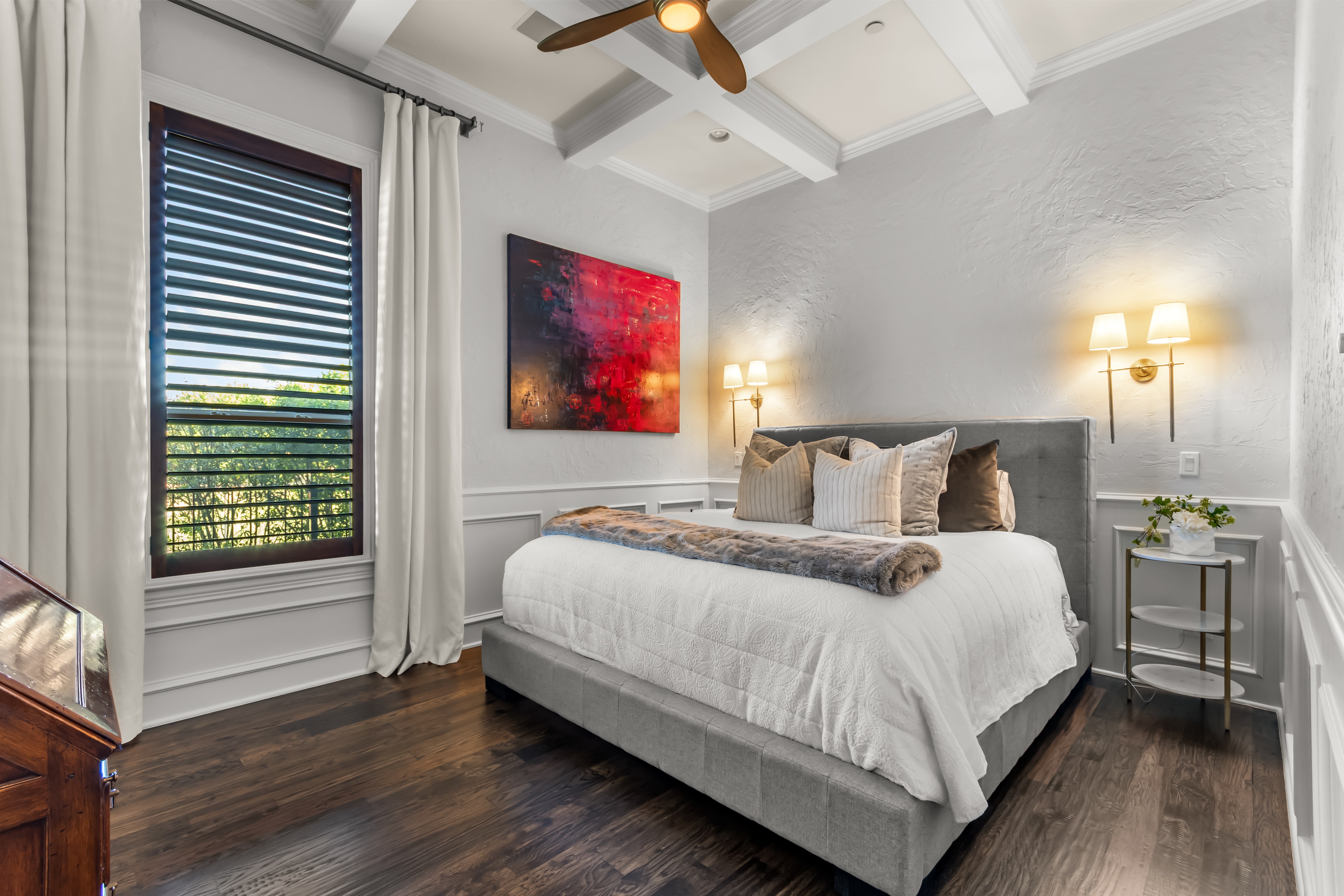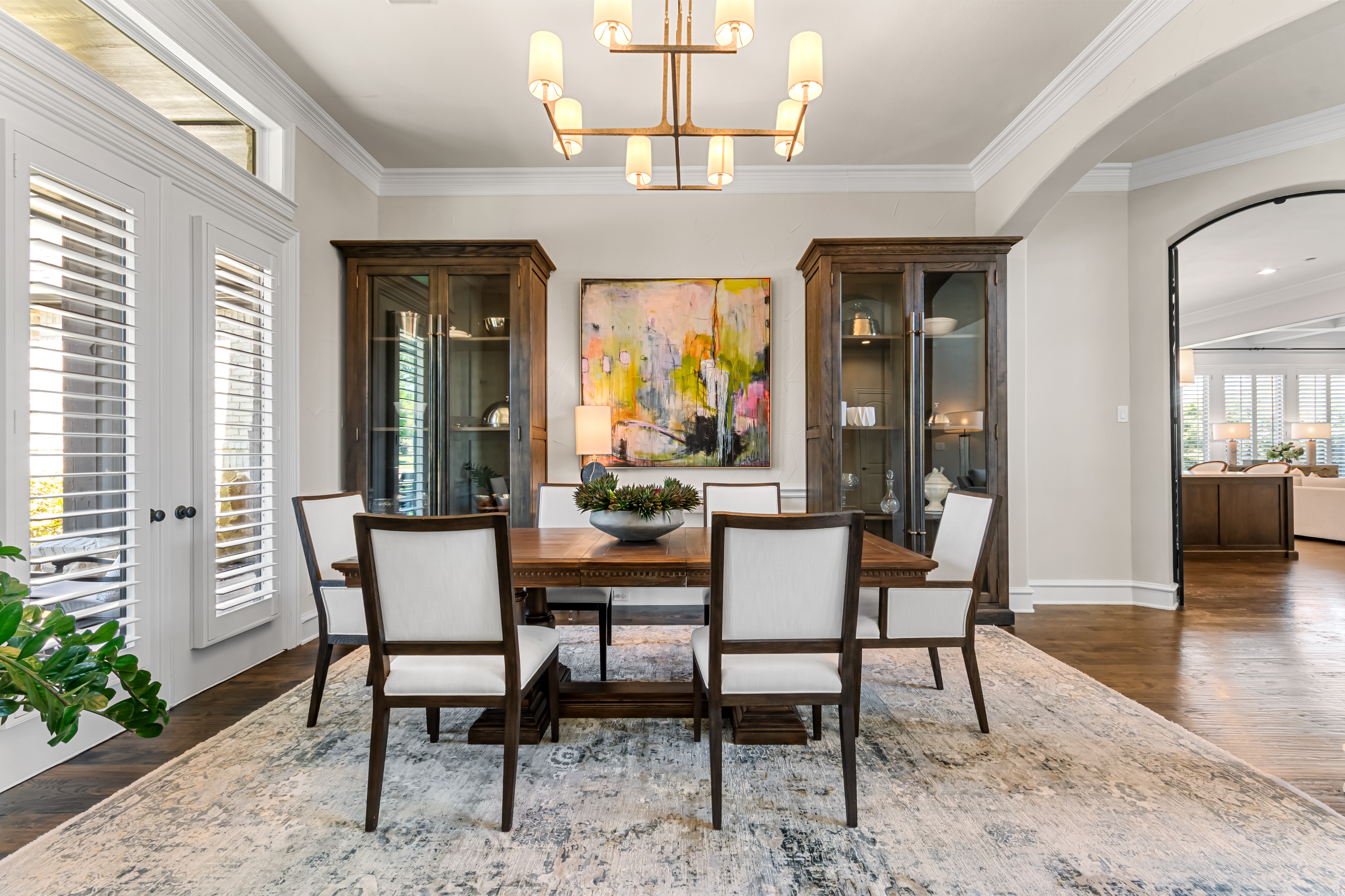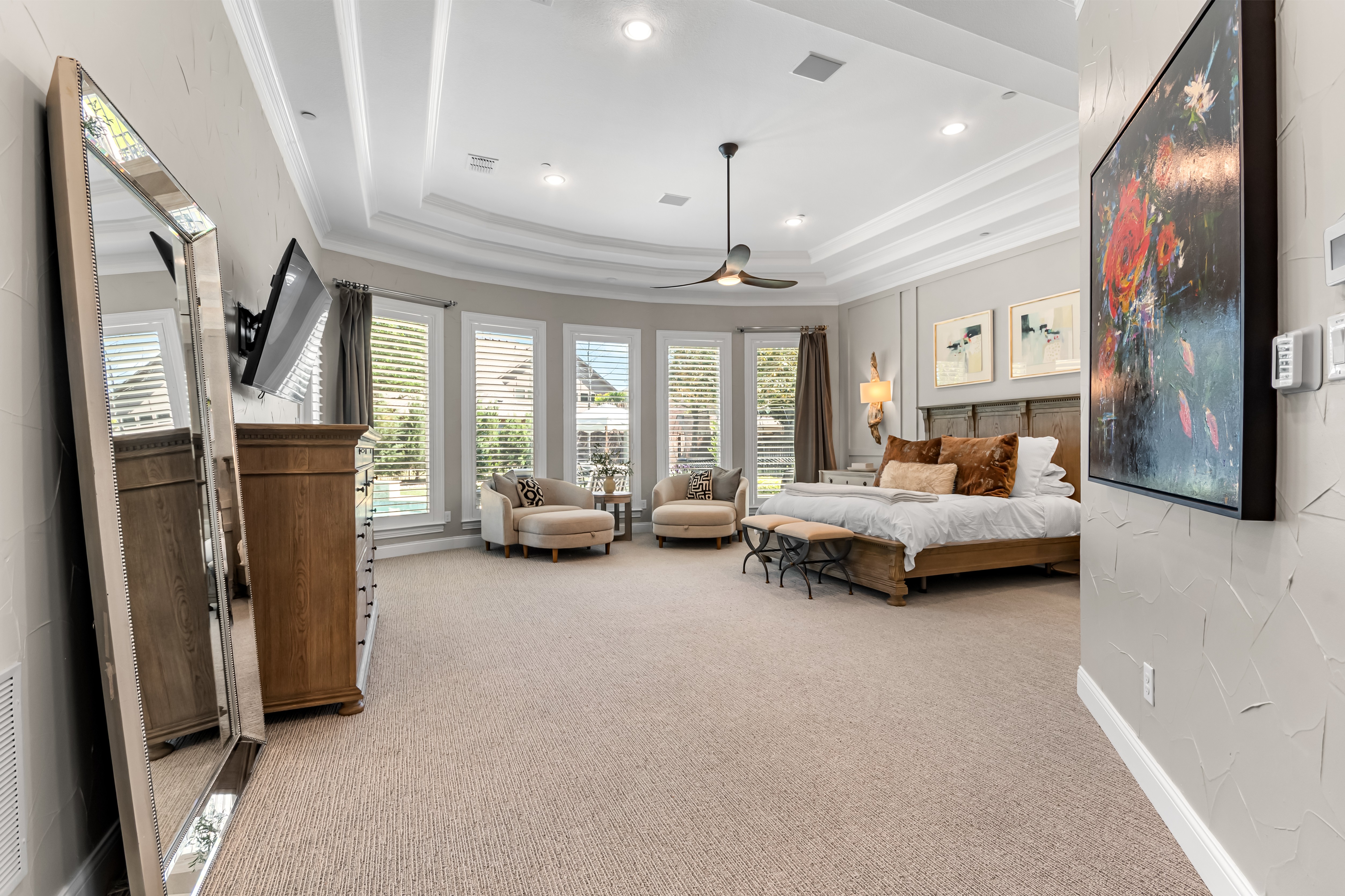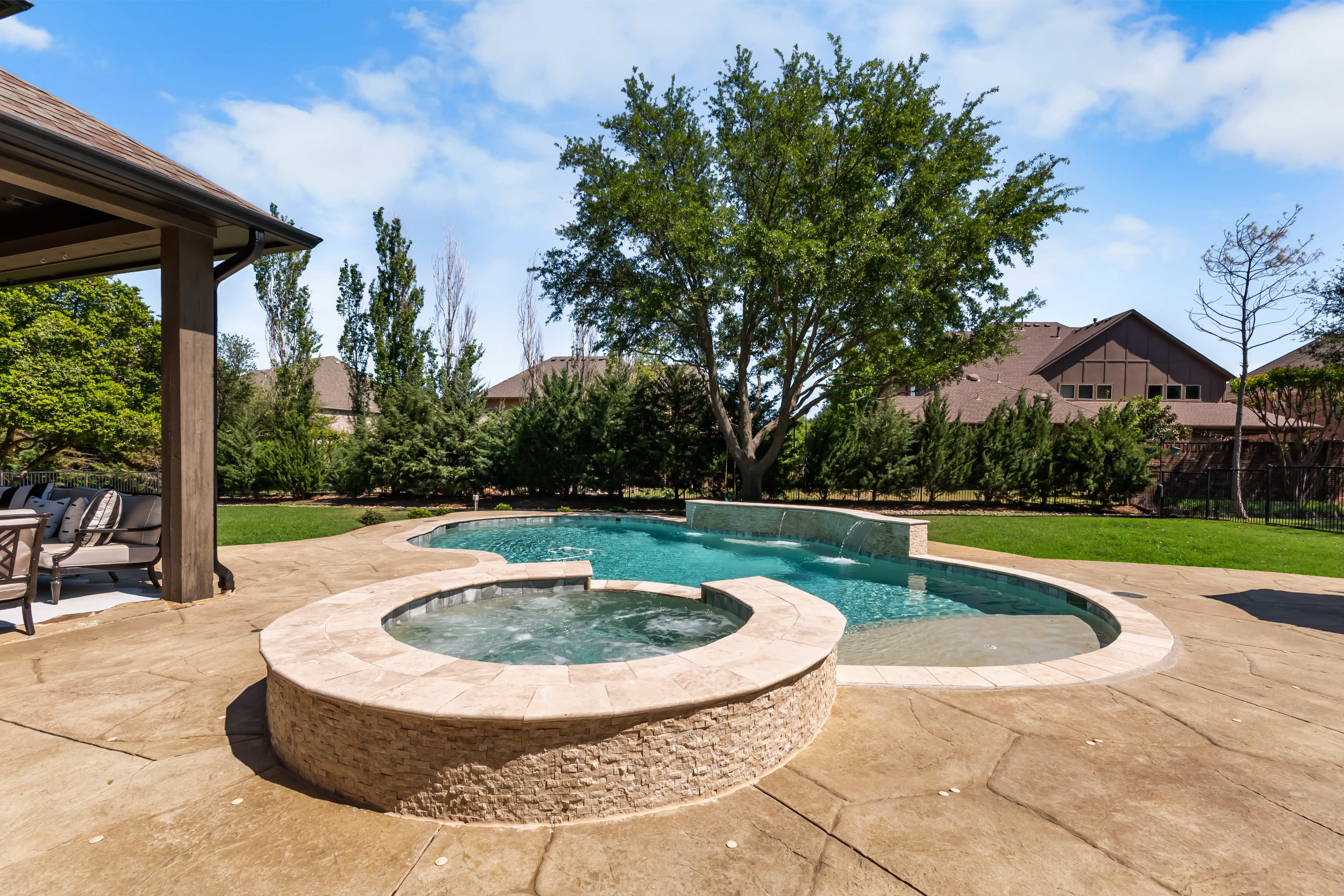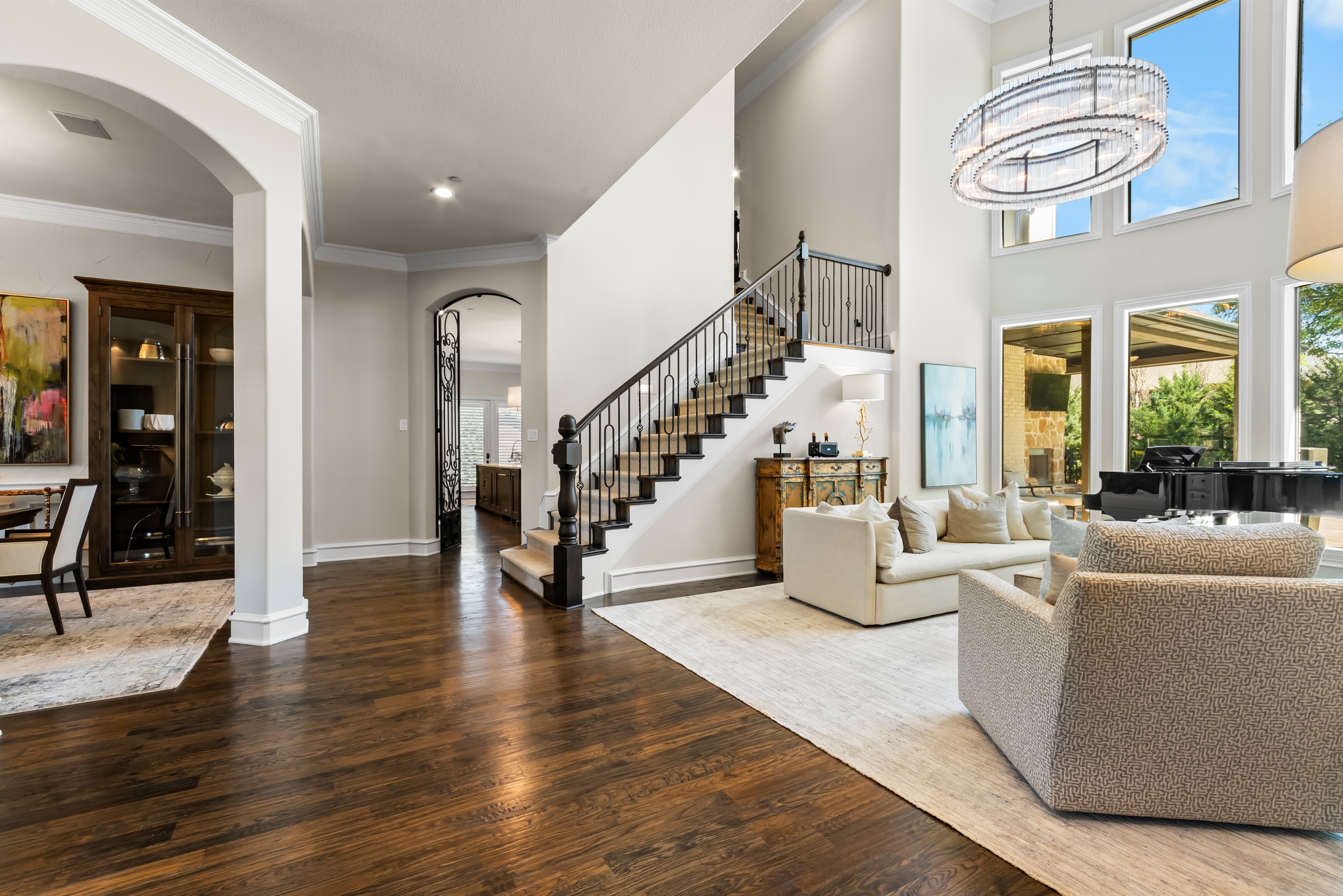 Experience the height of luxury living in Prosper with this exceptional, one-of-a-kind estate—originally designed and built by a custom luxury builder as his personal residence. Showcasing unparalleled craftsmanship, the home has been extensively updated with over $700,000 in thoughtful, high-end renovations, blending timeless elegance with today’s most sought-after finishes. Located within the acclaimed Prosper ISD, this home offers not just a place to live, but a lifestyle defined by excellence. From the moment you step inside, you’re greeted by soaring ceilings and exquisite architectural details including rich millwork, solid-core doors, and designer touches throughout.At the heart of the home, the fully reimagined chef’s kitchen is stunning—featuring an oversized quartz island, custom white cabinetry, a walk-in prep pantry, and top-tier commercial-grade appliances, including a 48-inch Viking dual-fuel range and Dacor refrigerator-freezer. The kitchen opens seamlessly to the inviting family room, highlighted by a custom beamed ceiling and a beautifully updated stone fireplace.Designed for both everyday living and elegant entertaining, the home also offers formal living and dining spaces, along with a stylish wet bar. The main-level primary suite is a true retreat, complete with bay windows overlooking the private backyard and a spa-inspired bath featuring dual vanities, a soaking tub, and a custom steam shower. A dedicated office with exterior access provides the perfect work-from-home setup.Step outside to your own private resort. The expansive covered patio, complete with a third stone fireplace, creates the ideal setting for year-round gatherings. The remodeled heated pool and spa—with a tranquil waterfall feature—serve as the centerpiece of the freshly landscaped lush backyard, surrounded by mature trees for added privacy.This a statement home located in the prestigious Gentle Creek Estates community.