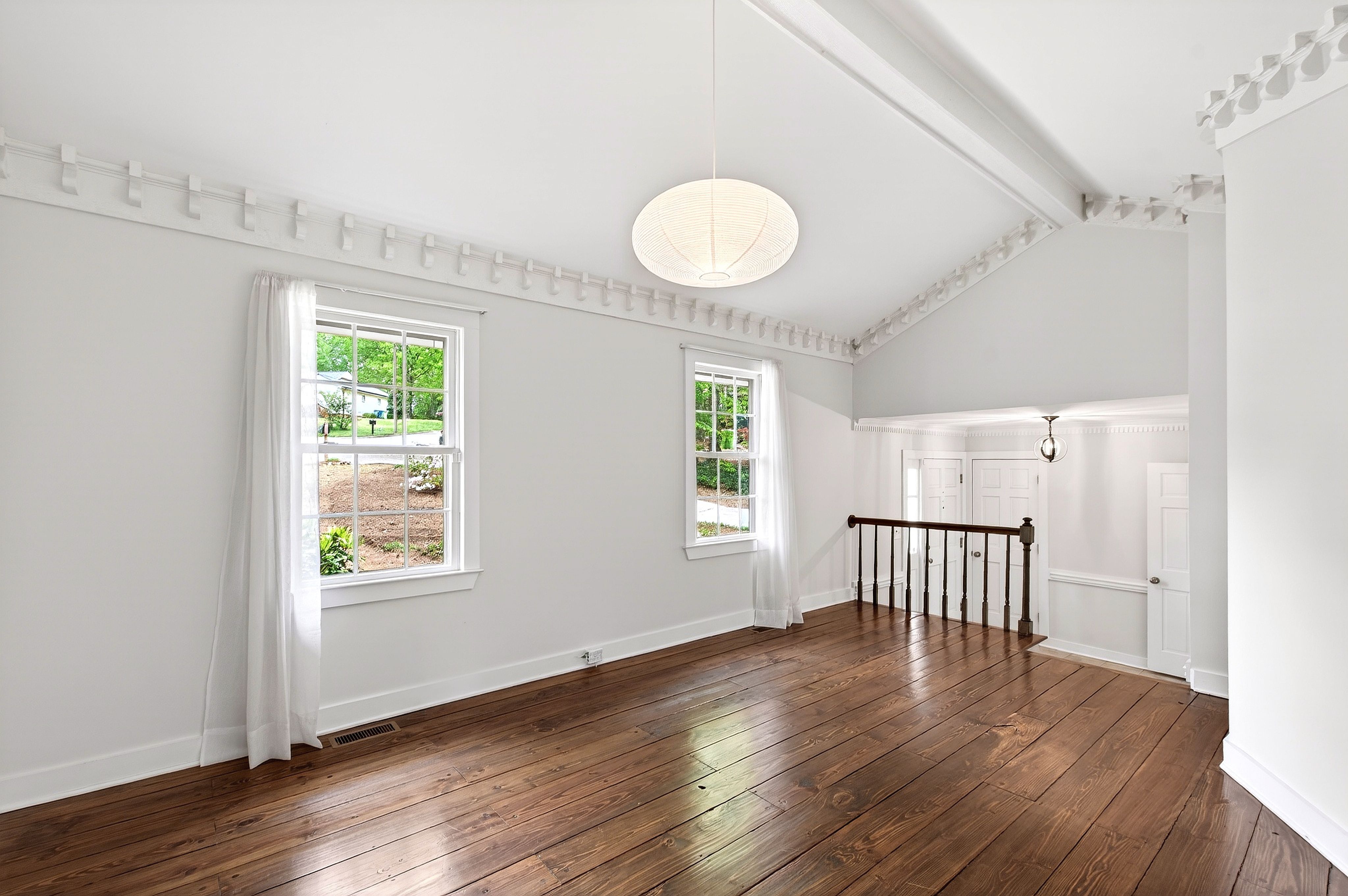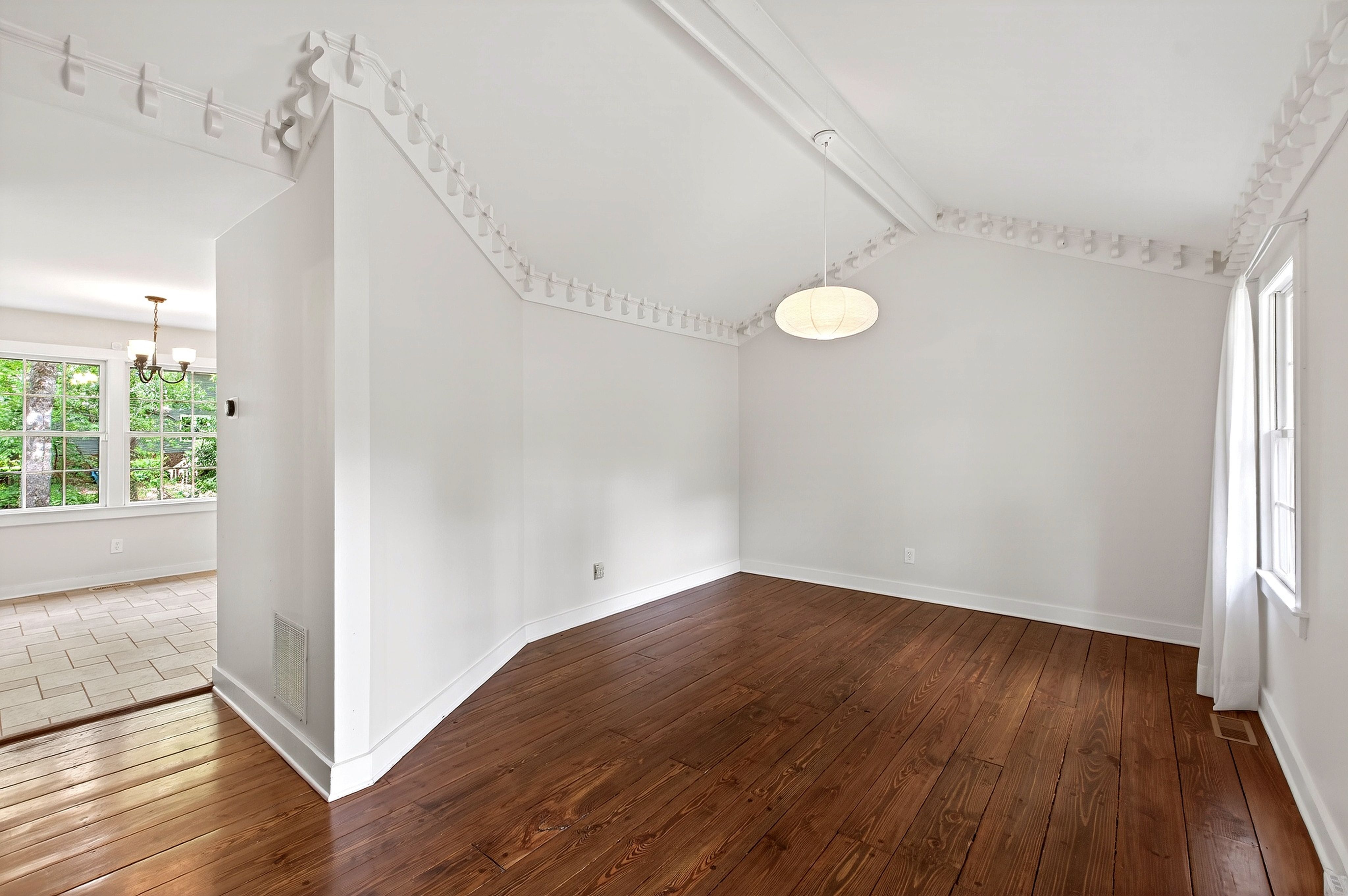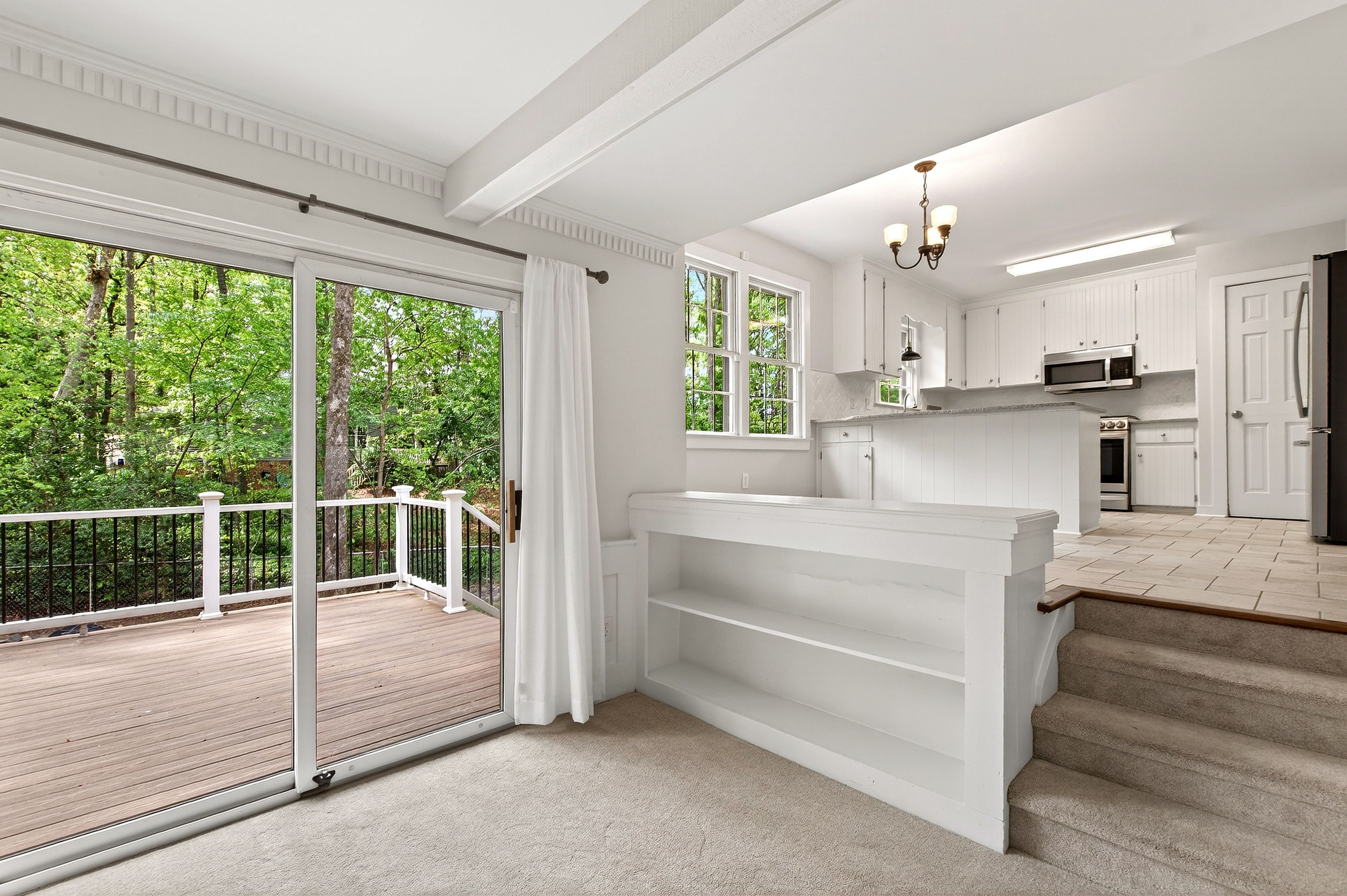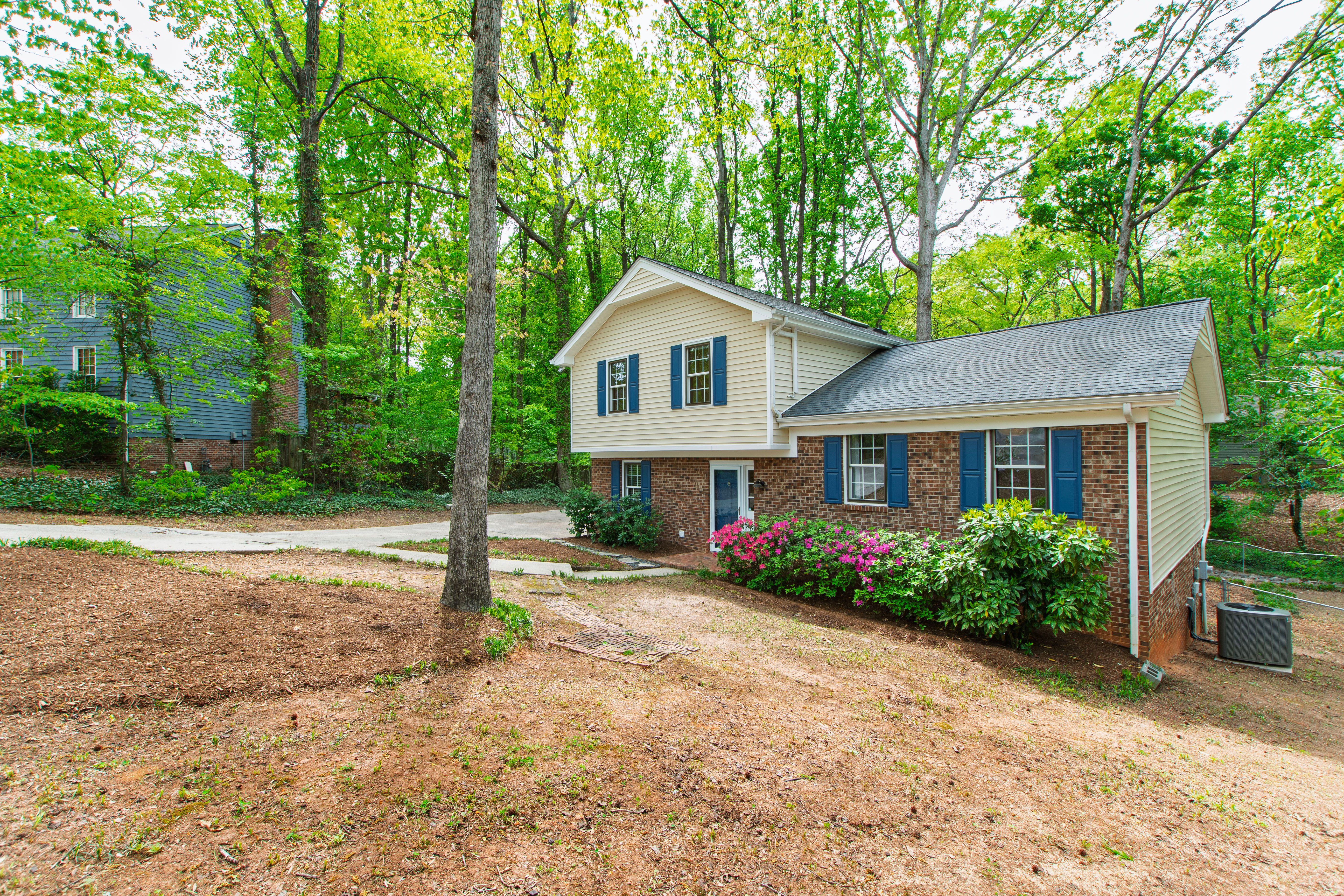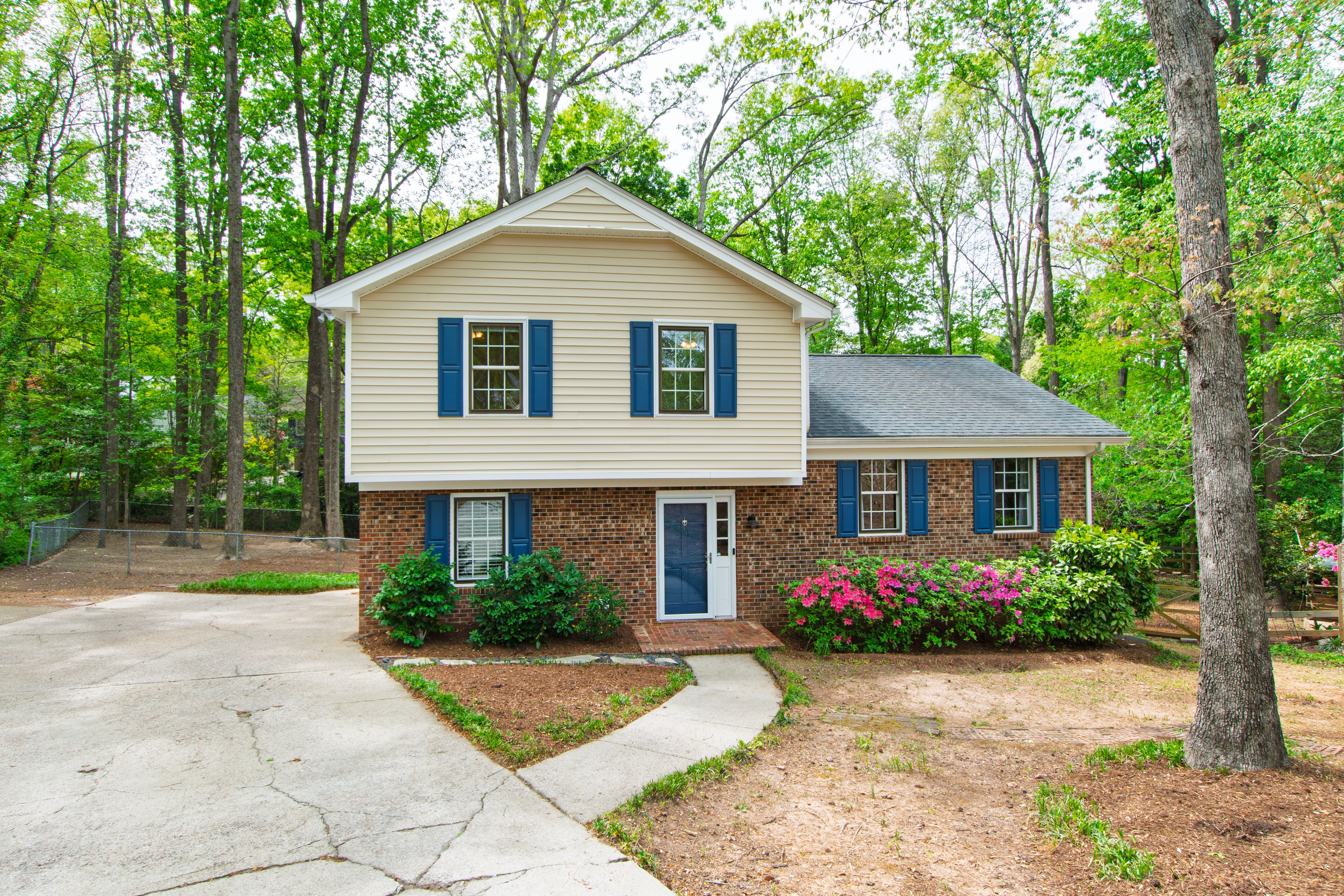 Conveniently located just minutes from North Hills in the desirable North Haven neighborhood, 404 Lynchester Court offers a prime North Raleigh location with thoughtful updates and plenty of character. This well-maintained home features a number of improvements and a functional floor plan to suit a variety of needs. Unique wood details can be found throughout, including custom cabinetry, built-in bookshelves, wainscoting, and dentil molding. The dining room features vaulted ceilings and hardwood floors that add warmth and charm, while the mudroom and multiple closets provide excellent storage and flexibility. In addition to its character, the home has seen many important updates, including improvements to insulation, electrical panel, hot water heater, and carpet. The kitchen includes updated appliances such as a Bosch dishwasher and LG range, and the upstairs primary suite features a beautifully remodeled bathroom. Mitsubishi mini-splits in the bedrooms offer added comfort and efficiency, and updated vinyl windows bring in great natural light. The newly added back deck overlooks a spacious fenced backyard with a fire pit, perfect for entertaining, relaxing, or enjoying outdoor living. With a sought-after North Raleigh location, distinctive details throughout, and meaningful updates, 404 Lynchester Court is move-in ready.