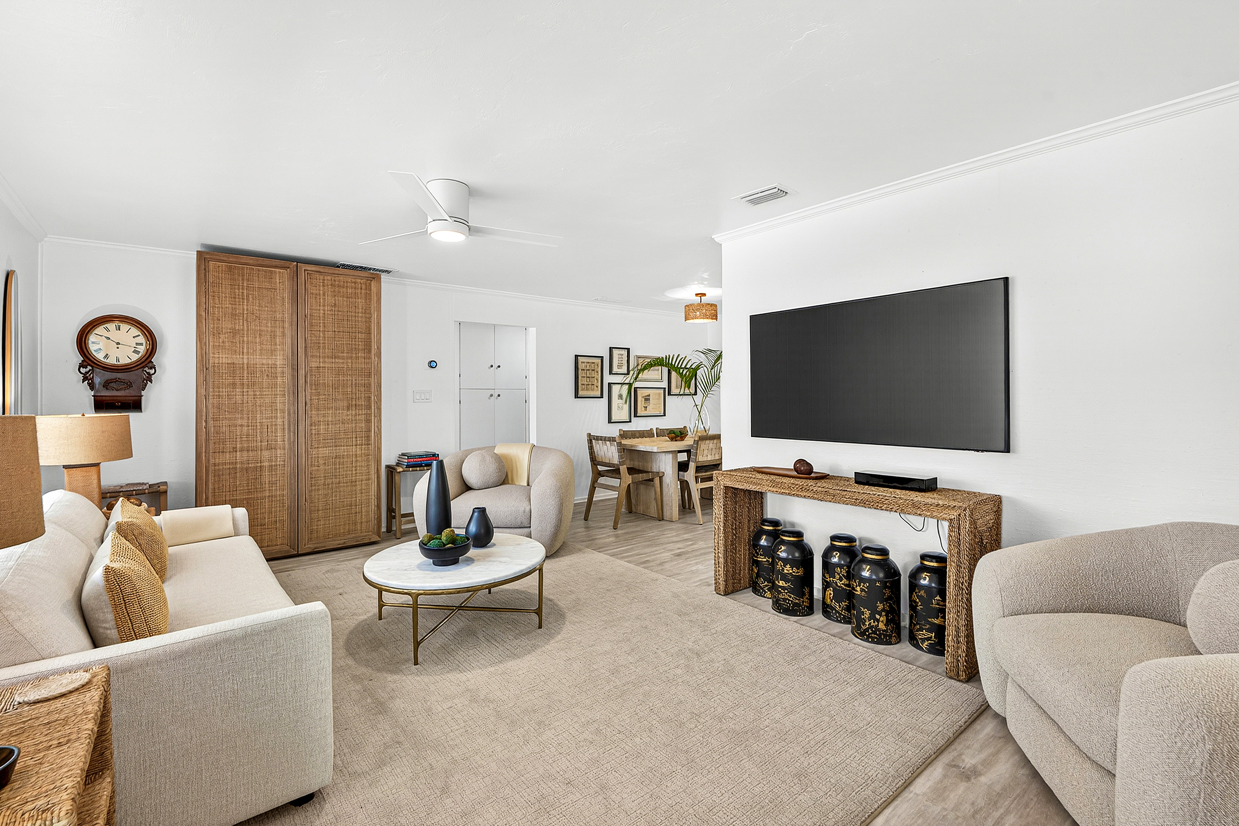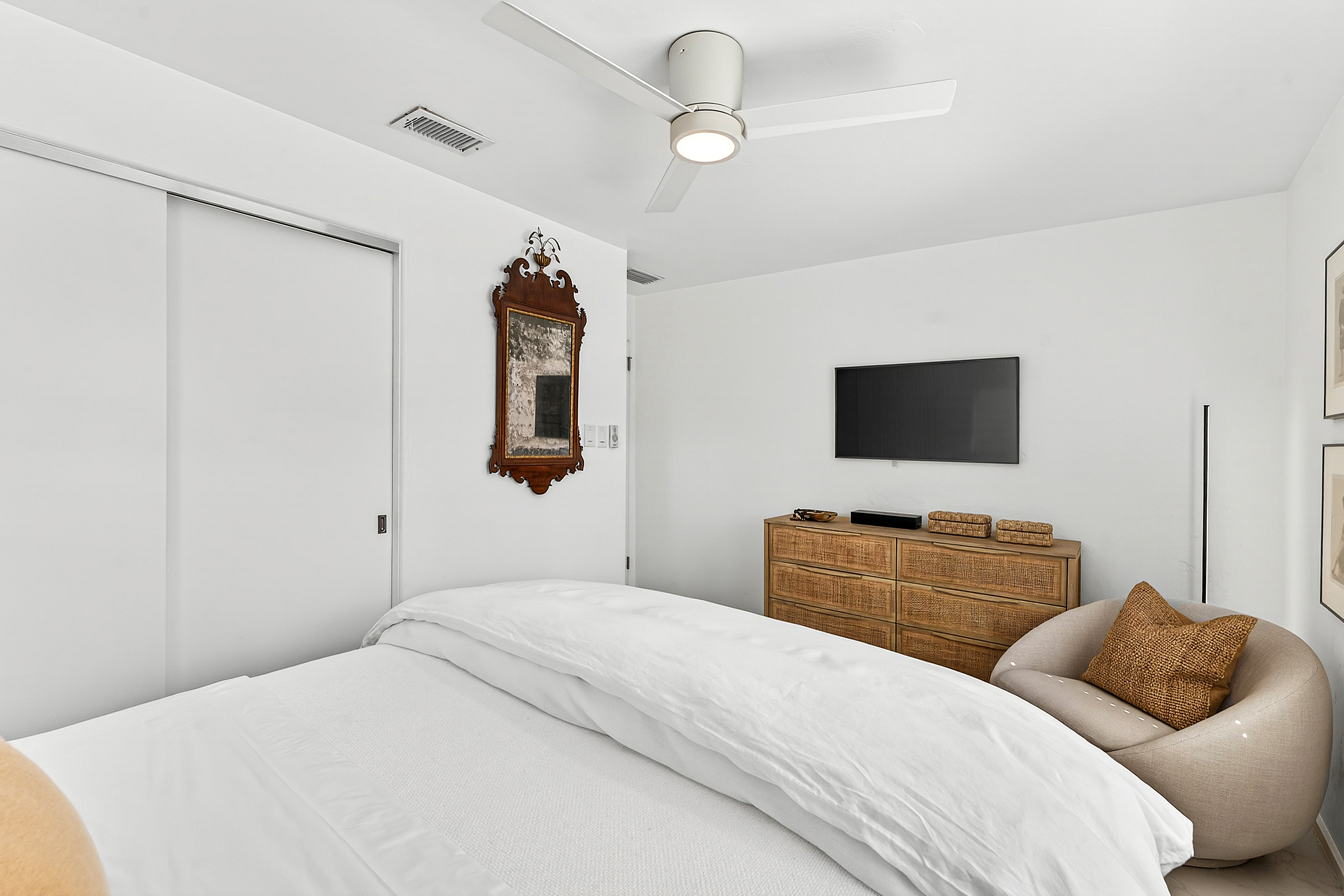 Well-designed Mid-Century 3 Bedrooms/2 Bathrooms home with a detached 1 Bedroom/1 Bathroom guest house in the Southland Park Historic District, just off Flagler Drive and seconds from the Intracoastal. This impeccably furnished home features luxury bedding and linens, new flooring, refreshed baths, and brand-new appliances for comfortable, modern living. The private guest house includes its own kitchen and laundry—ideal for guests, extended family, or a home office. Enjoy a circular drive, ample parking, and a large, covered patio perfect for outdoor living and entertaining. Minutes to Palm Beach Island, downtown West Palm Beach, and Palm Beach International Airport with dining, shopping, and beaches just minutes away. Pets considered.