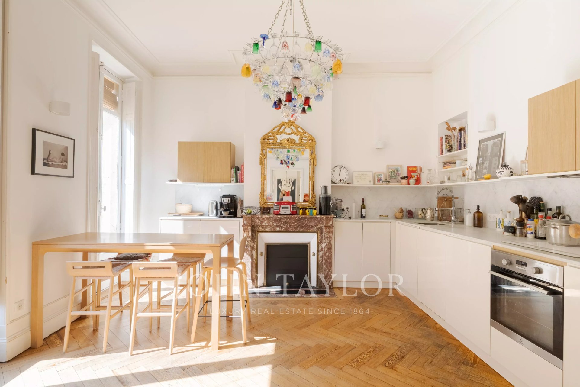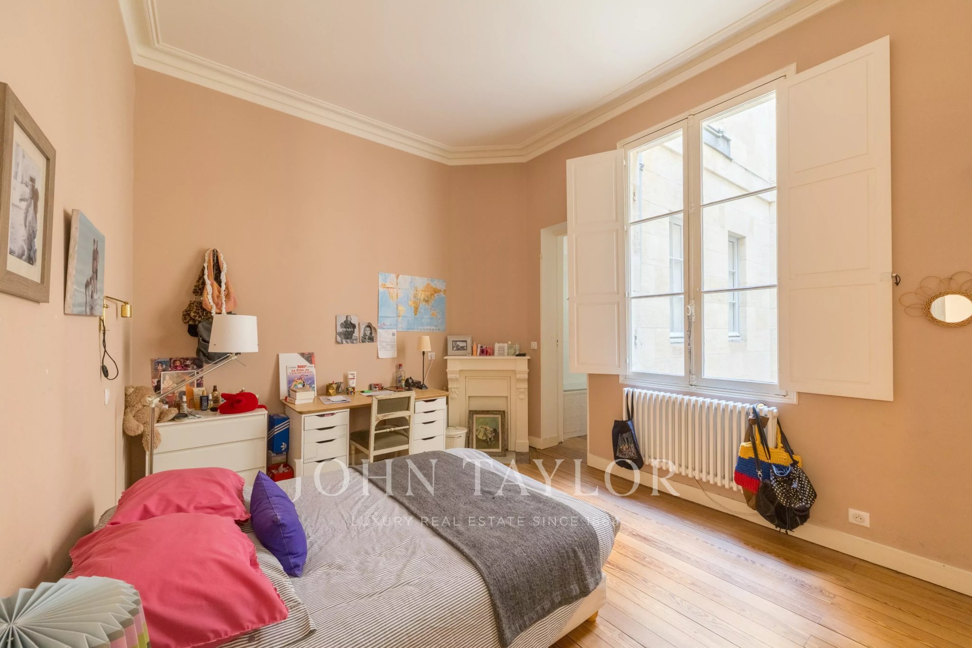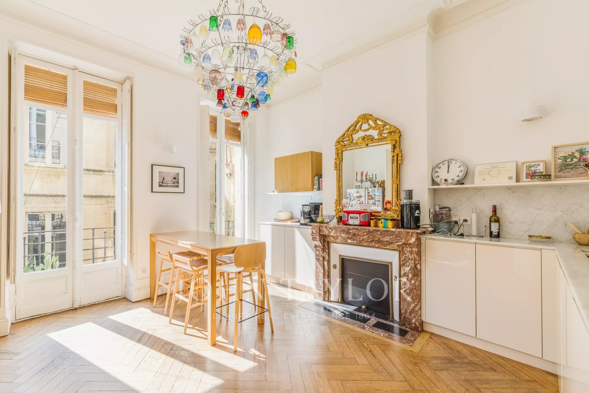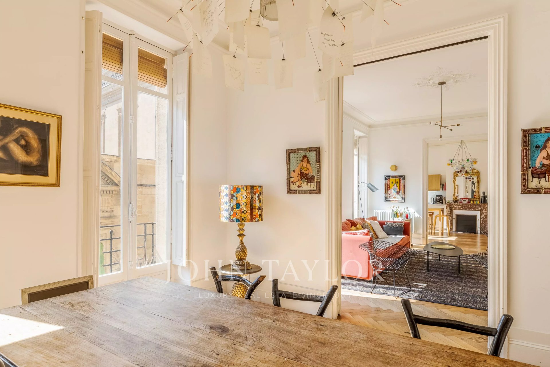 John Taylor Bordeaux is pleased to present this sumptuous bourgeois apartment, located near the Golden Triangle and Bey Berland square, within a recently renovated 19th-century building.Features:- Ground-floor apartment, extremely bright, located on the first floor, known as the 'noble floor'.- Private elevator directly serving the interior of the apartment.- Beautiful entrance with vestibule, triple corridor including living room, dining room, and dining kitchen.- Night area composed of three bedrooms, two shower rooms, and a bathroom. Stunning rear master suite, flooded with light, with custom dressing.- Cross-ventilated and ideally exposed: five large front-facing windows ensure constant brightness.Character and finishes:- Carefully preserved and enhanced original features: ceiling heights, herringbone parquet flooring, marble fireplaces, moldings, and cornices.- Elegant and authentic atmosphere, combining Bordeaux charm and contemporary comfort.Location:- Exceptional: in the heart of Bordeaux's historic center, close to shops, restaurants, and transportation.Rare asset:- Parking space 50 meters from the building for rentFor a private visit or more information, contact John Taylor Bordeaux.
