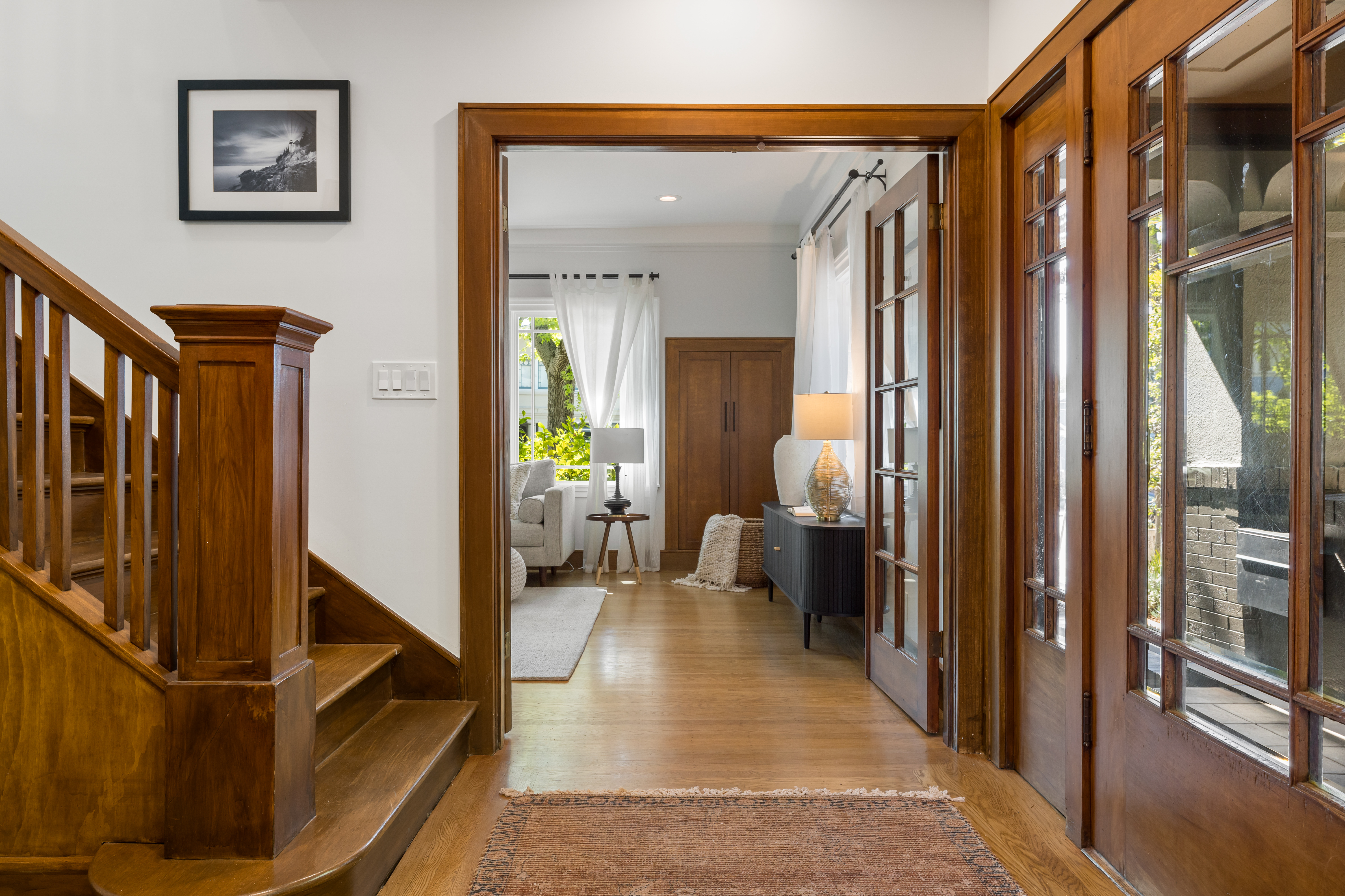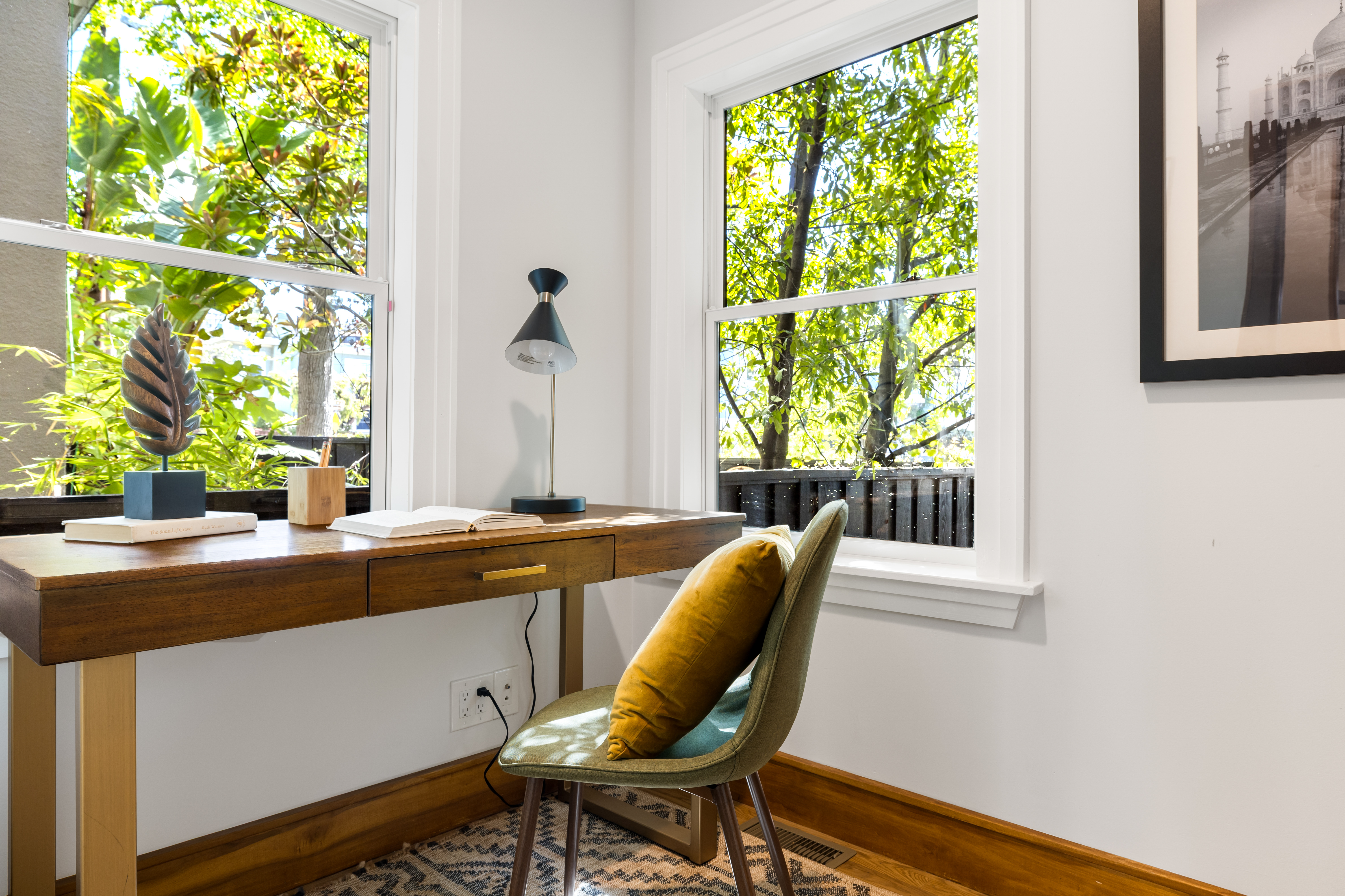 Rare and stunning Timbre Architects–designed remodel of a classic Elmwood Craftsman, ideally located for an easy, walkable lifestyle near the shops, cafés, dining, and everyday conveniences of College and Claremont. With ample off-street parking, you may hardly need your car once you’re home.This gracious three-bedroom/two-and-a-half bathroom residence also includes a bonus office and detached garage ideal for storage, studio, or flexible use. Thoughtful modern updates beautifully complement the home’s original character. Delicate picture-rail soffits and custom wood trim echo the original entry doors and staircase, creating a seamless dialogue between old and new. Heath tile accents elevate the kitchen bar, powder room, and living room fireplace, while the chef’s kitchen features custom cabinetry, a Bluestar range, and drawer microwave.Designed for easy indoor-outdoor living, the home opens to a landscaped, café-lit yard ready for summer entertaining. With new windows, updated electrical and plumbing, hardwood floors, and turnkey condition throughout, this is a rare Elmwood offering that pairs architectural quality with exceptional neighborhood convenience.Features include: new windows, updated electrical, updated plumbing, hardwood floors, heath tile, and landscaped entertaining yard.