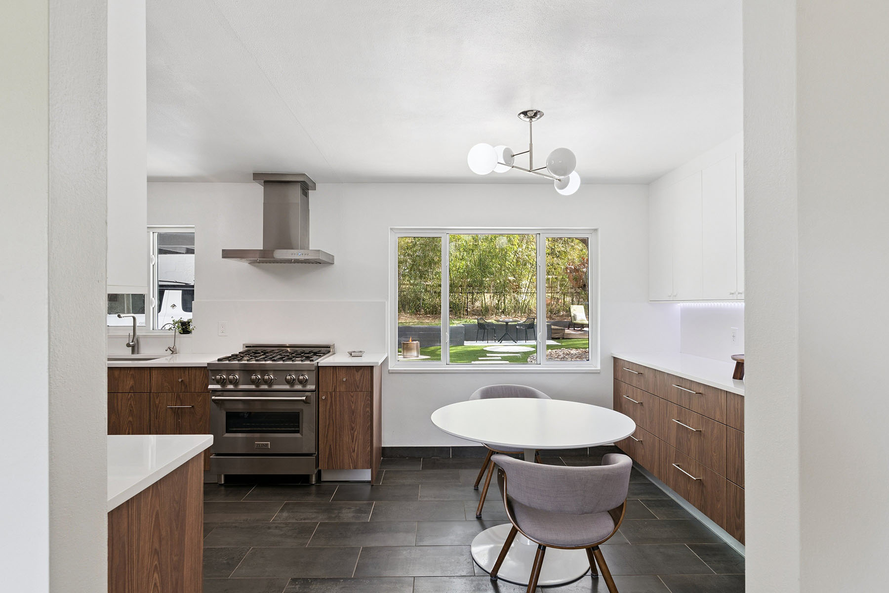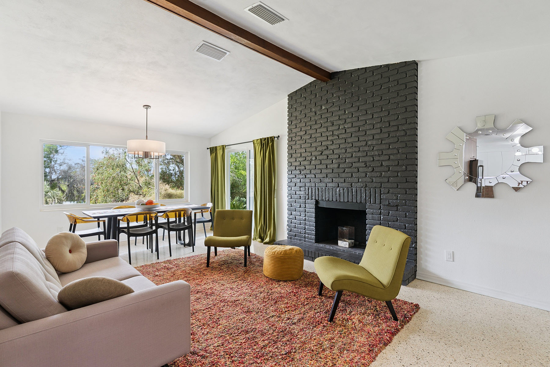 Welcome to a beautifully reimagined home on sought-after Lakeshore Drive, where modern design meets relaxed Florida living on a private, gated property. Set behind an electric gate and surrounded by a fully fenced yard, this home immediately impresses with a new driveway, expansive green space and a peaceful setting framed by mature trees. Go inside and you are greeted by a clean, light-filled interior with a refined mid-century modern feel. The open living spaces flow effortlessly, anchored by a spacious family room where large windows draw your eye to the natural backdrop beyond. Enjoy tranquil evenings as the sun sets behind the trees with a glimpse of the lake adding to the serene atmosphere. Throughout the home, the original terrazzo floors have been painstakingly refinished, preserving their character and charm, while the kitchen and dinette feature new slate tile that adds durability and style. The heart of the home is the stunning, fully remodeled kitchen designed for everyday living and entertaining. It features all new appliances, sleek cabinetry, thoughtful built-ins and generous workspace, all complemented by a modern aesthetic that carries throughout the home. Just beyond, additional living and dining areas offer flexibility and warmth, including a cozy space highlighted by a statement fireplace.